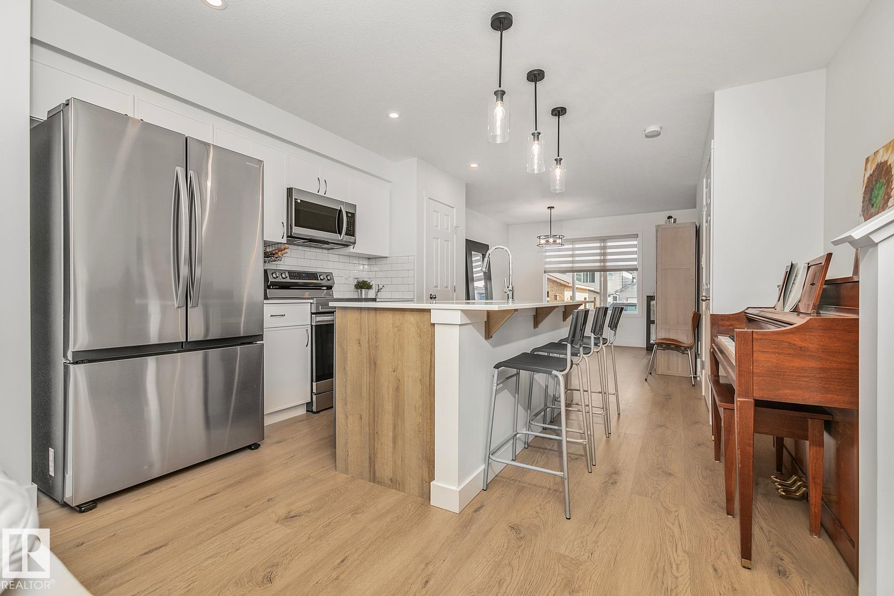 It doesn't get better than this. Experience a new build yet be turn-key, move-in ready with this 1,397 SqFt 2-Storey home (2024). This 3 Bedroom / 2.5 Bathroom stunner is across from a park that will boast the new school build in 2026 - walk your kids across the street! Buy now. Meticulously maintained & well-appointed with Upgrades, this home is perfect for a family, 1st-Time home buyer or investor. The side-entrance to the Basement will allow for a future suite. The Main floor has Vinyl Plank flooring throughout - starting with the spacious Living Room. The Kitchen is absolutely gorgeous - a chef's dream. Plenty of Quartz Countertops & Cabinets (soft-close, dove-tail); a large Eat-Up Island; S/S appliances & a pantry. A 1/2 Bathroom completes this floor. The Upper floor has 3 Bedrooms including a large Primary Bedroom featuring a W/I Closet & an Ensuite (Quartz, 2 Sinks; Tiled 5' Shower). Lastly, is the Main Bathroom & Laundry. Located in Crystallina Nera East - close to everything you need! WOW!