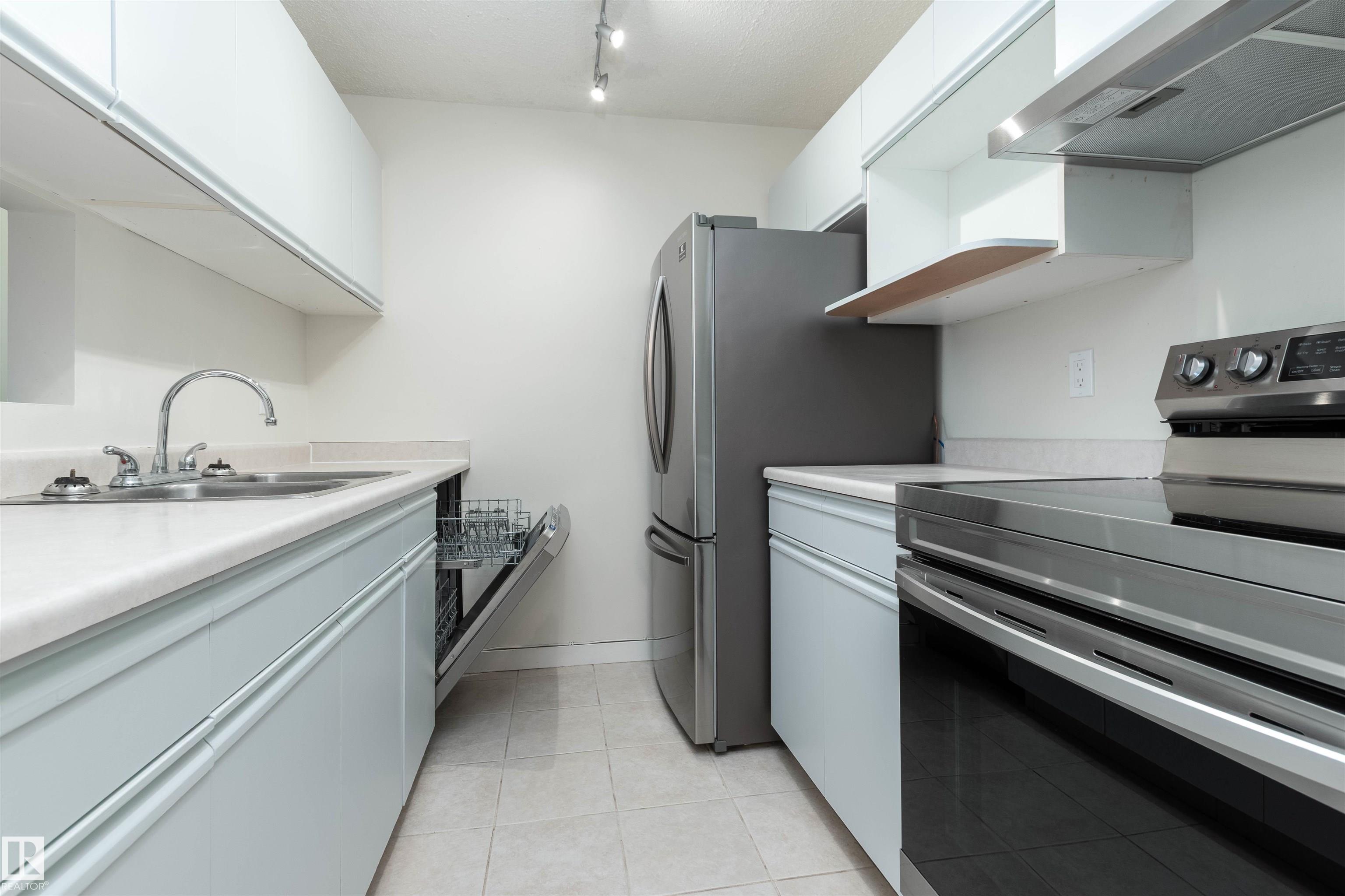 Very clean and move-in condition Top floor unit! 2 bedrooms and 2 full upgraded baths! Cozy corner gas fireplace in spacious and bright living room. Kitchen has newer stainless appliances. Ceramic flooring in kitchen and dining area and laminate in living room and bedrooms. Master bedroom has his and her walk through closets. Newer washer and dryer. Separate from laundry room is a large storage room with shelving. Bedrooms are on opposite sides of layout, great for sharing/privacy. Covered good size balcony with gas hook-up. You can with a remote, start and view your car from the balcony. Minutes to Oliver Brewery district, Roger's Place, Macewan, U of A, Nait and downtown. A lovely short walk to all 124 street has to offer. Plenty of visitor parking.