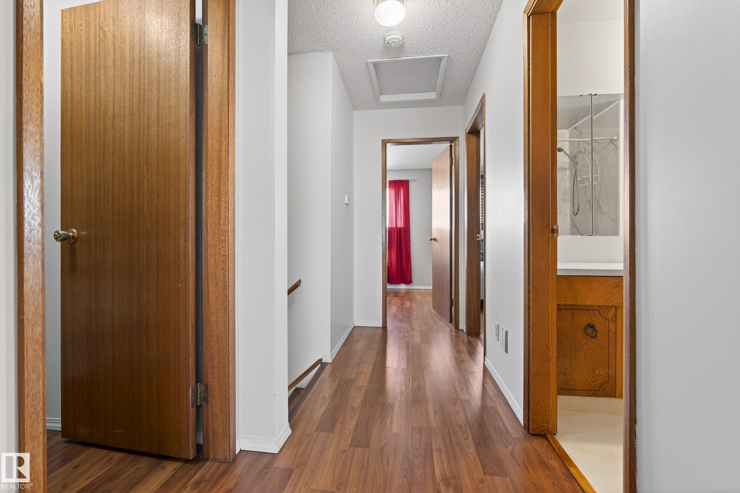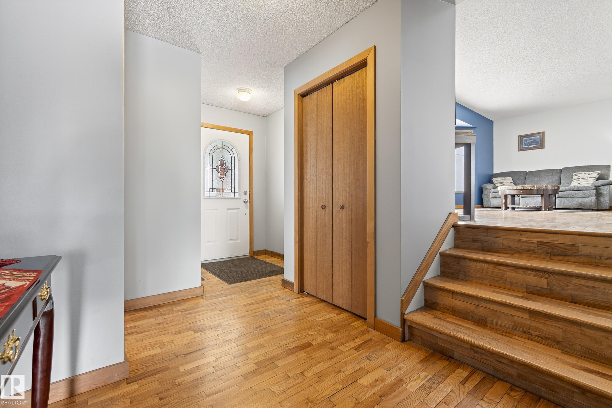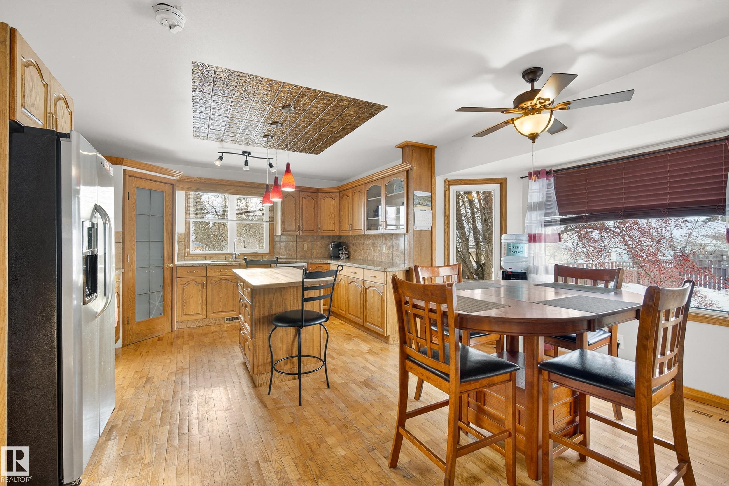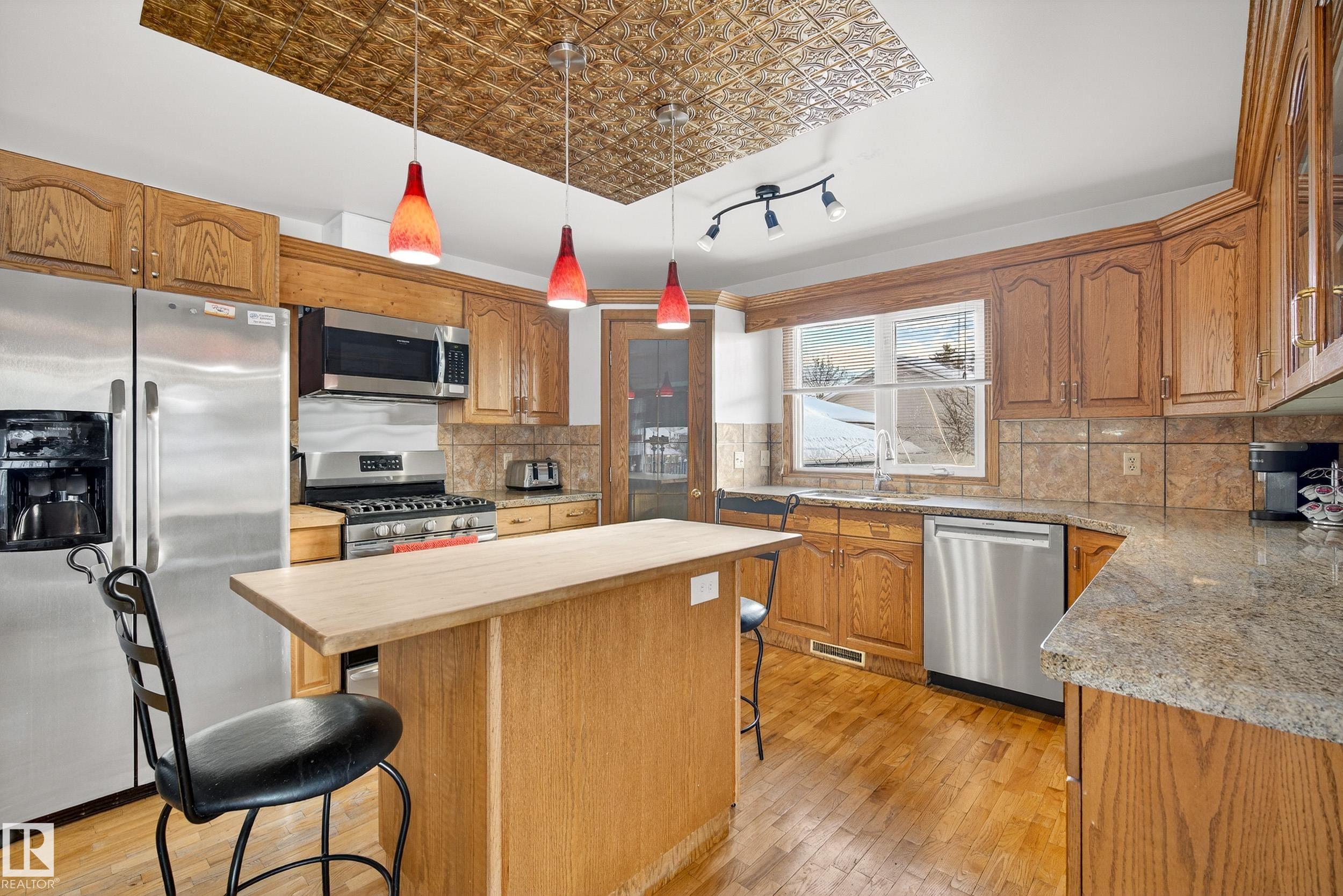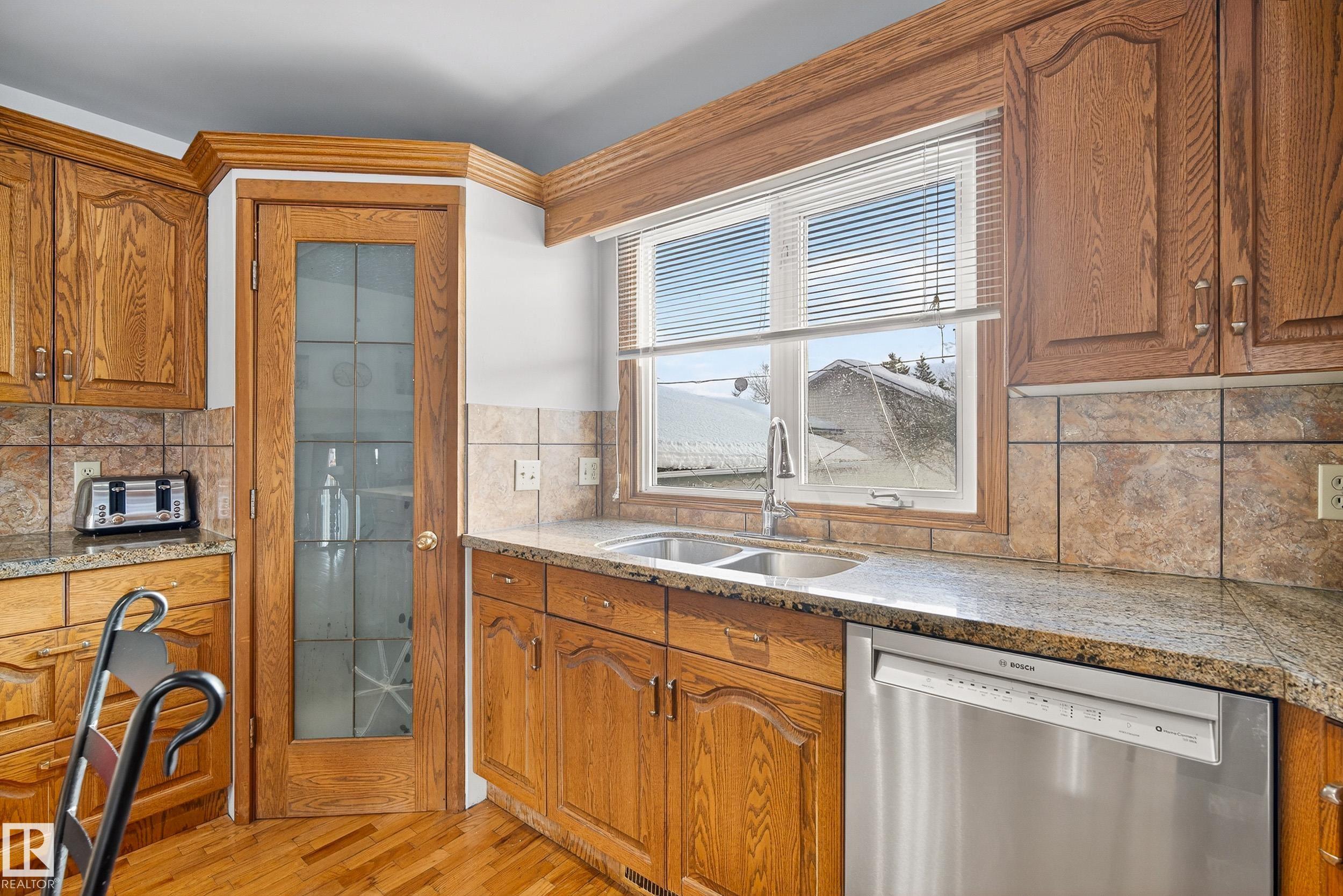 Character in this expansive 2,100 sq ft split-level Home, attached insulated heated Garage -prime 840 sq ft corner Lot, Shed+ back alley close to downtown. Spacious functionality to accommodate variety of lifestyles, 4 bed, 3 bath home features multiple living spaces+ hardwood floors: main Foyer with storage is offset from 4th Bedroom ideal for mobile challenged occupant /guest or home office. Bright front Livingroom, well-appointed open-concept Kitchen to cook+ prep with clutter free workspace. Island/breakfast bar, corner Pantry, granite Counters+ ample Cabinets. Step down to Family area: wood Fireplace -access door to Patio with brick pavers+ Fenced backyard. Convenient Bath/Laundry room with jet tub - side door Entry+ storage Closet complete main levels. Retreat to upper level laminate throughout :Primary suite with 2 pce Bath & walkin Closet, 2 more Bedrooms, linen Closet, full Bath with soaker Tub. Lower level 2 good flex spaces with windows to be finished- plus tons of dry storage in crawlspace.