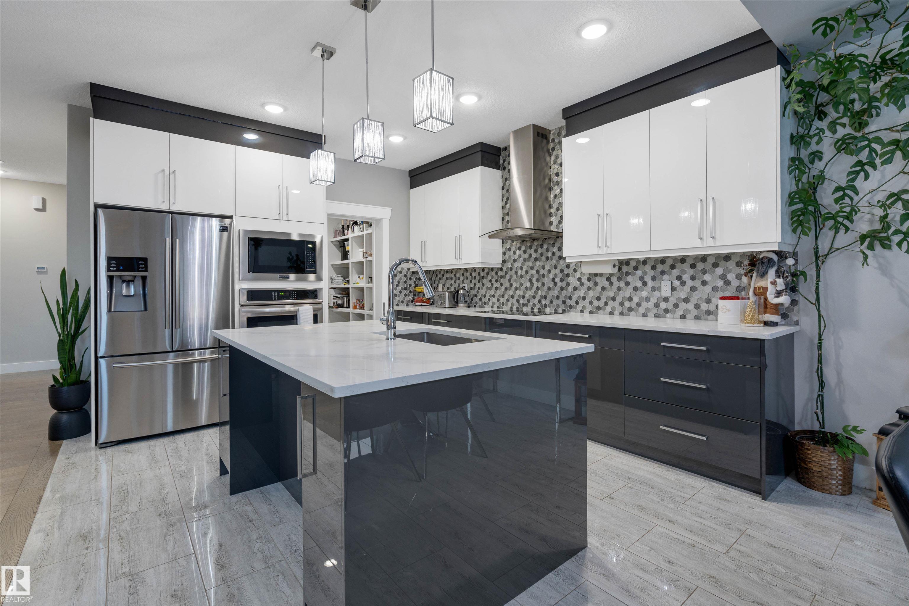 Welcome to this immaculate home located in the desirable community of McConachie. Offering over 2,500 sq. ft. of thoughtfully designed living space, this property features 4 bedrooms, 3 bathrooms, and a main-floor den, perfect for a home office or flexible living space. The main level showcases a bright, open-concept layout highlighted by an impressive open-to-below design, a functional walk-through pantry, and a convenient 4-piece bathroom. Upstairs, the spacious primary bedroom offers a true retreat with a walk-in closet and a luxurious 5-piece ensuite. The unfinished basement with a separate entrance provides excellent future suite potential or the opportunity to customize to your needs. Additional highlights include a finished double attached garage with built-in storage at the entrance. Well maintained and move-in ready, this home stands out for its space, functionality, and thoughtful design