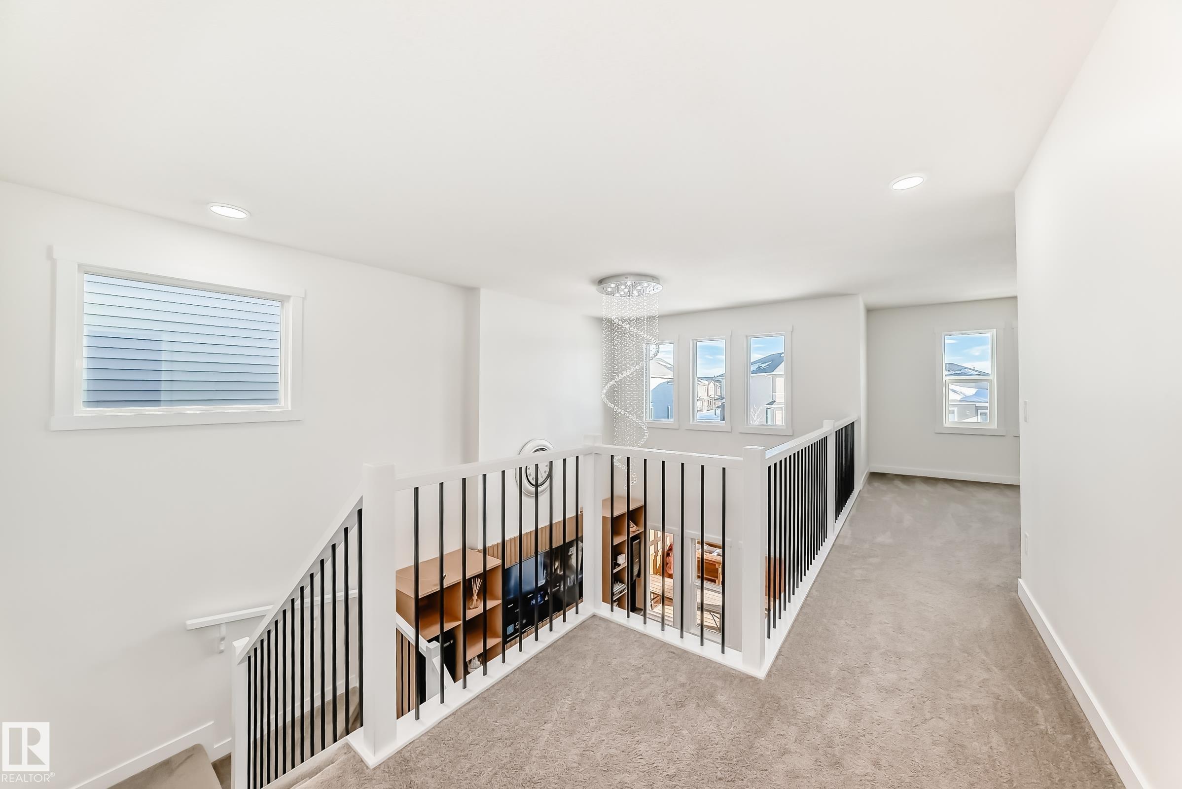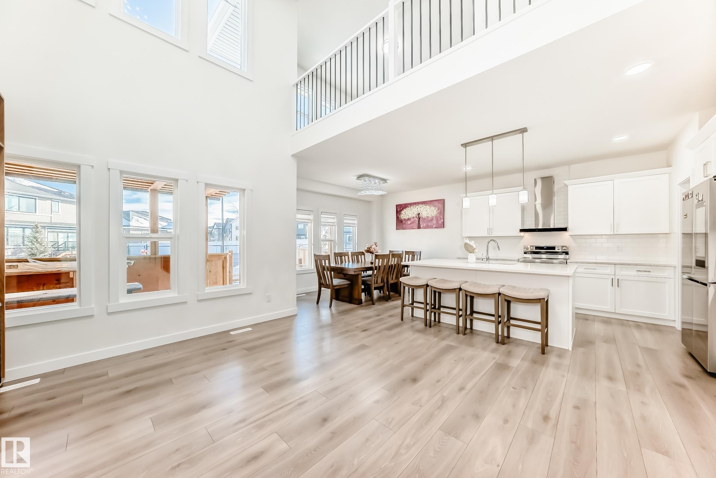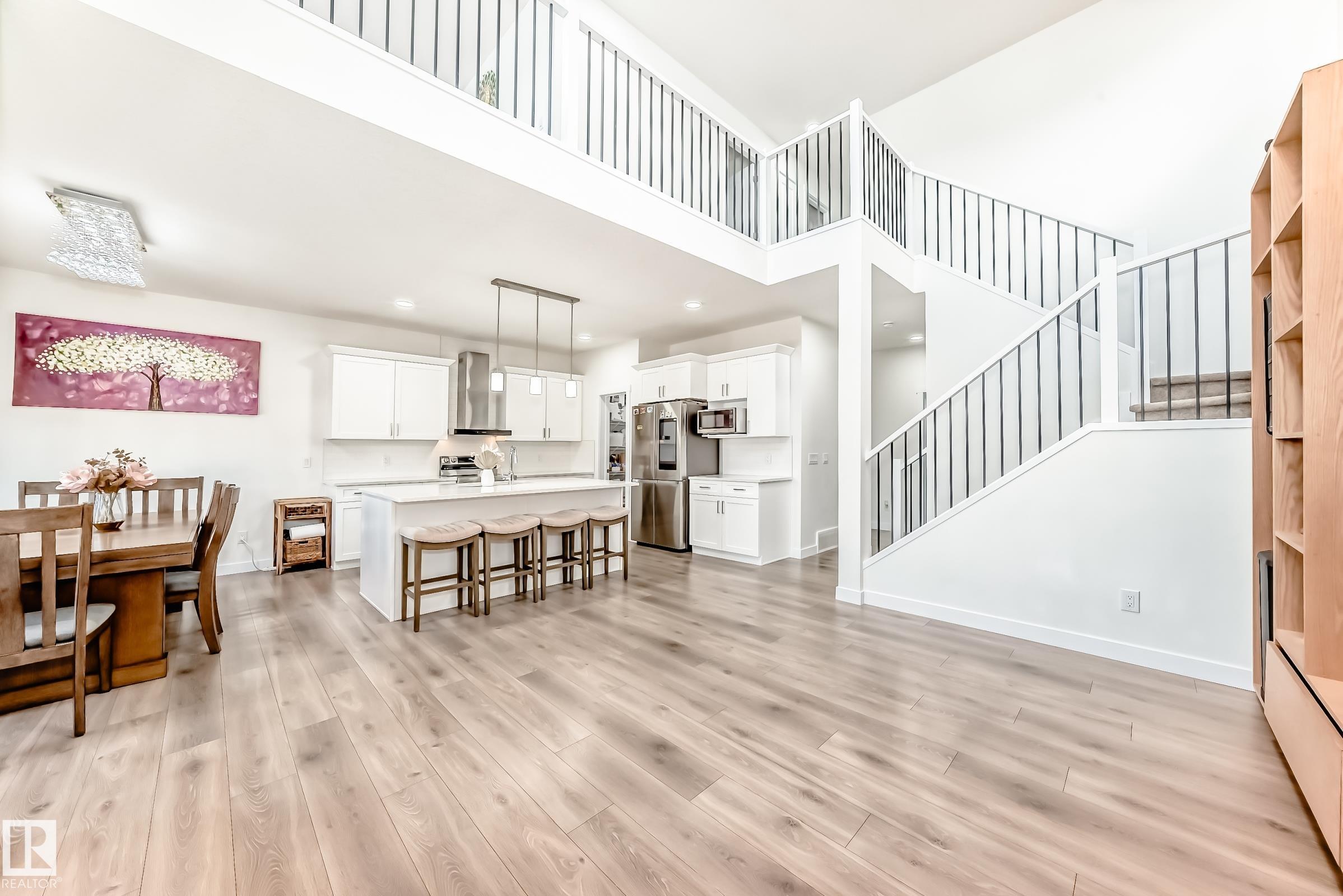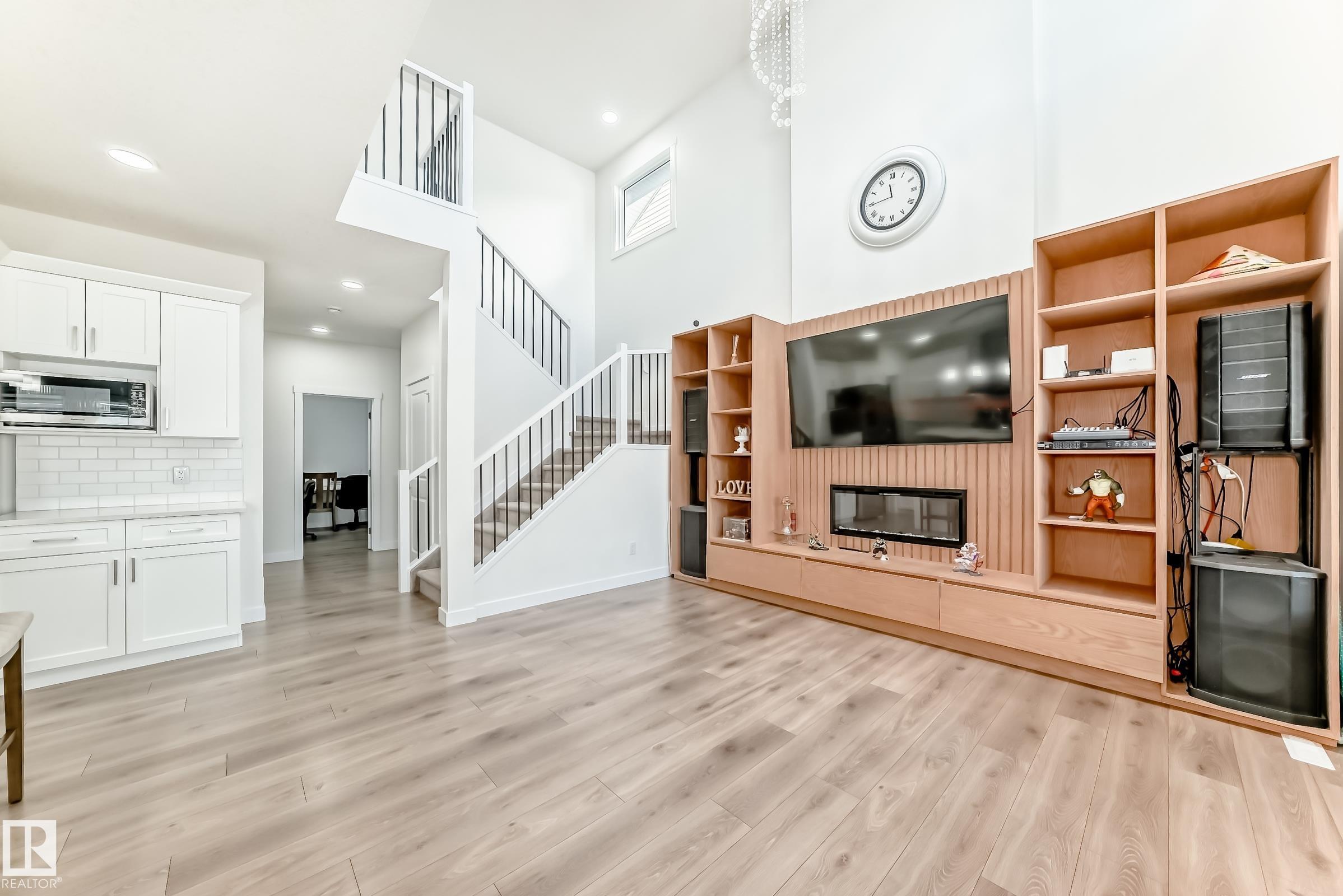 Magnificent Dream Home! This stunning 2-storey home located in the desirable community of Crystallina! Main floor welcomes you with an open-concept living room featuring open-to-below ceilings, large & bright windows & an over $5,000 value of custom-built entertainment unit. High-end vinyl plank flooring throughout. Spacious kitchen offers quartz countertops, upgraded white-color cabinetry, large central island, walk-through pantry, stylish backsplash, gorgeous chandelier lighting & SS appliances. Main floor den & 1/2 bath. Nice spindle staircase leads you to upper level, offers a large family rm, 3 generous-sized bedrooms, a 4-piece bath & laundry rm. King-sized master bedroom w walk-in closet & a luxurious 5-pc ensuite. SEPARATE entrance to basement with insulted and framed for 2 bedrooms/living rm/full bath & utility rm, ready for your finishing touches. Back yard access to walking trails. UPGRADED roof-top deck & fully landscaped. Easy access to transit, schools & all amenities. Just move-in & enjoy!