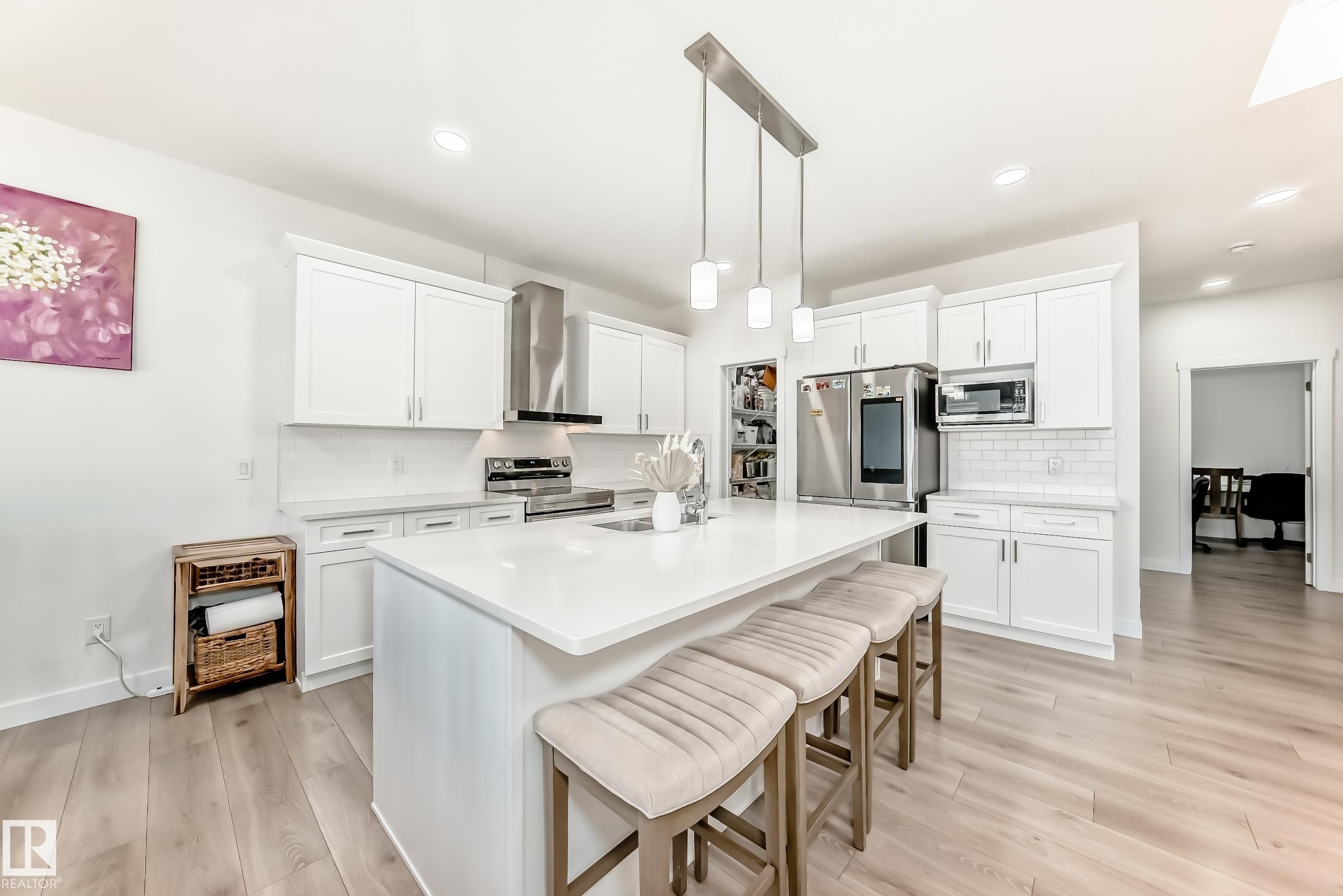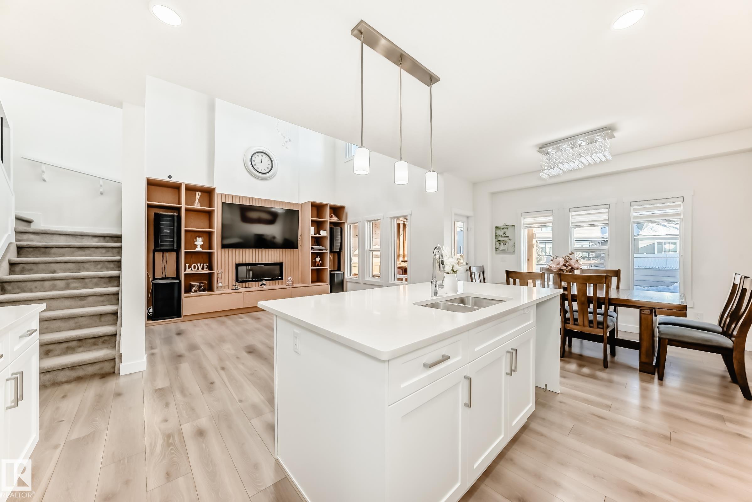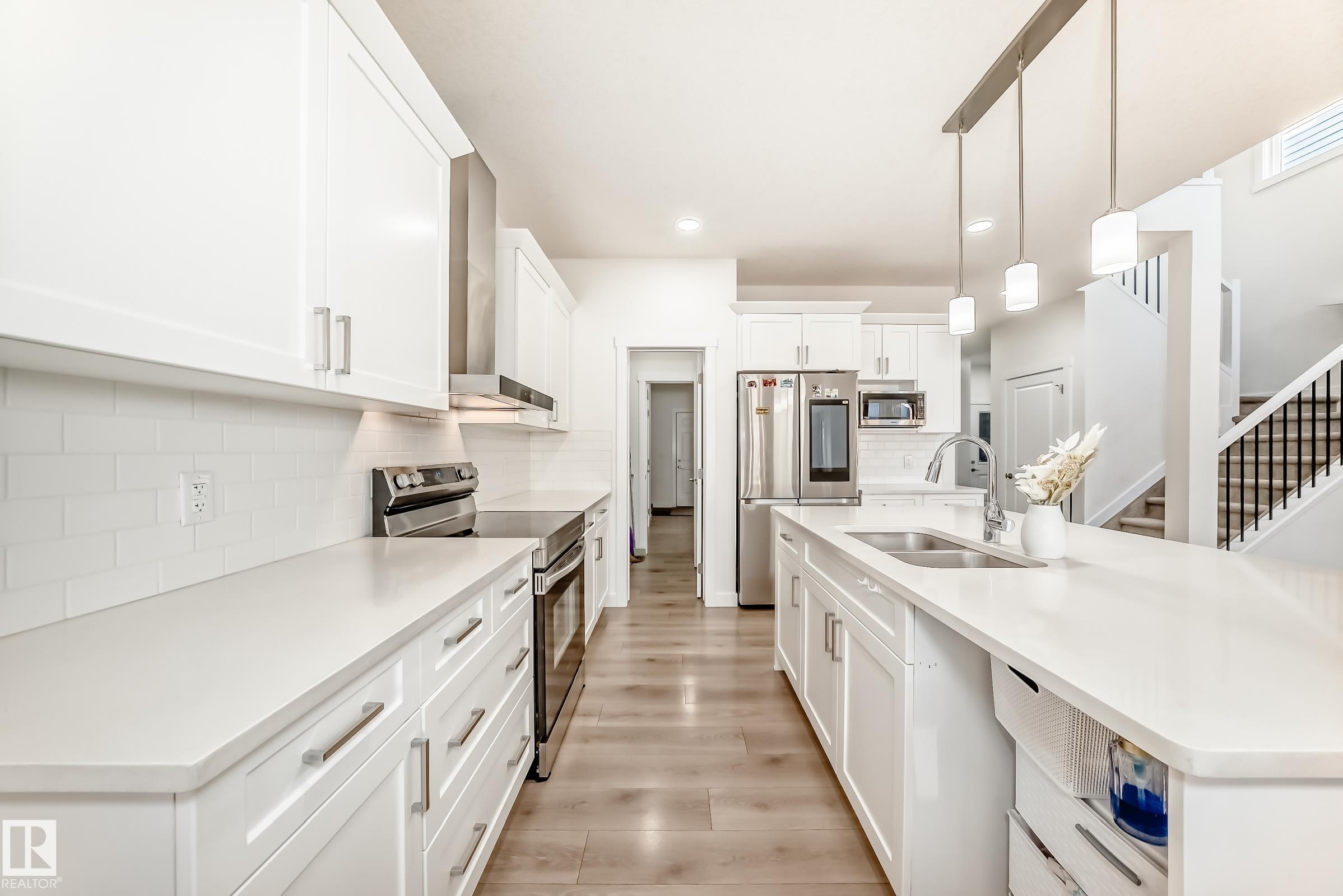 Magnificent Dream Home! This stunning 2-storey home located in the desirable community of Crystallina! Main floor welcomes you with an open-concept living room featuring open-to-below ceilings, large & bright windows & an over $5,000 value of custom-built entertainment unit. High-end vinyl plank flooring throughout. Spacious kitchen offers quartz countertops, upgraded white-color cabinetry, large central island, walk-through pantry, stylish backsplash, gorgeous chandelier lighting & SS appliances. Main floor den & 1/2 bath. Nice spindle staircase leads you to upper level, offers a large family rm, 3 generous-sized bedrooms, a 4-piece bath & laundry rm. King-sized master bedroom w walk-in closet & a luxurious 5-pc ensuite. SEPARATE entrance to basement with insulted and framed for 2 bedrooms/living rm/full bath & utility rm, ready for your finishing touches. Back yard access to walking trails. UPGRADED roof-top deck & fully landscaped. Easy access to transit, schools & all amenities. Just move-in & enjoy!