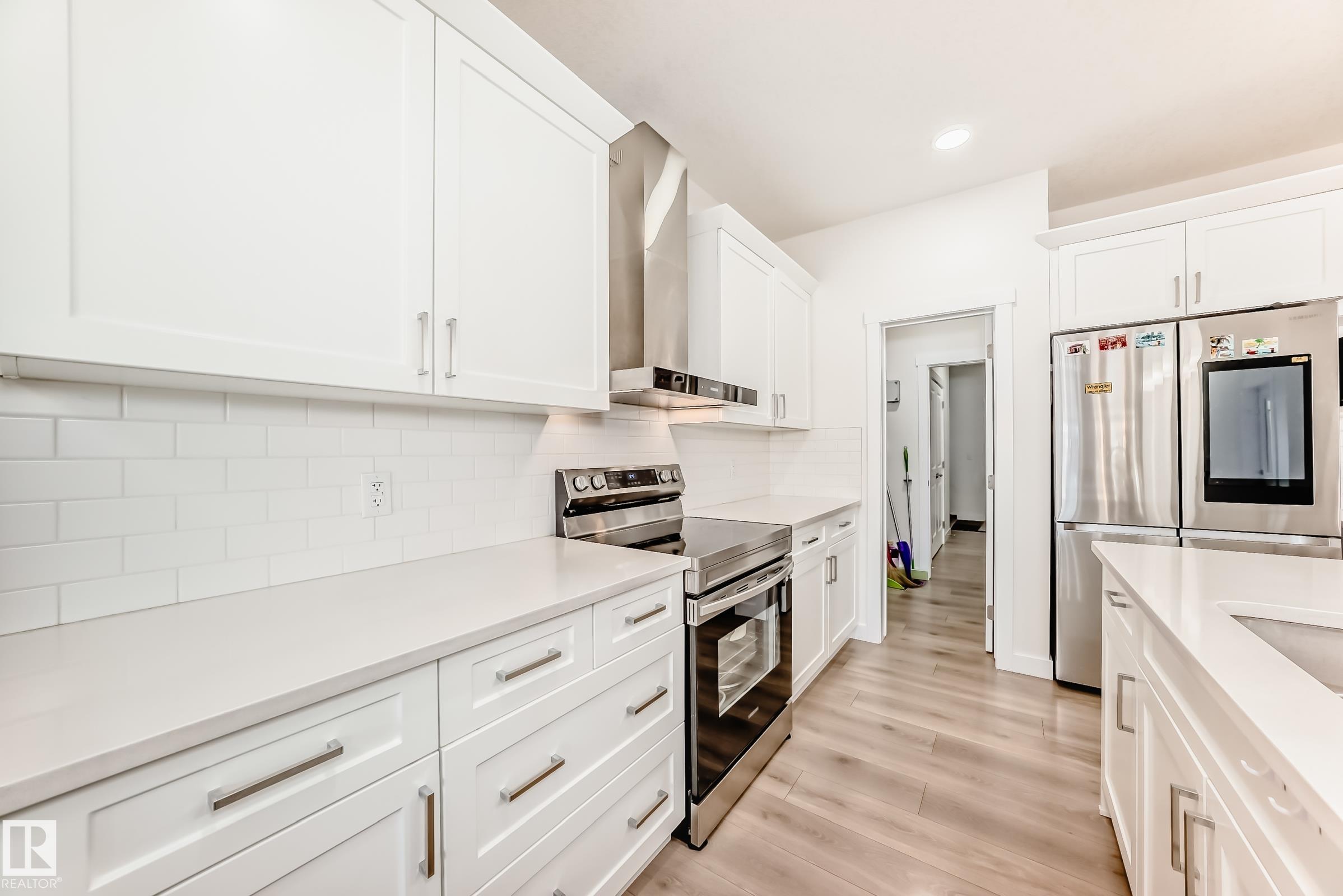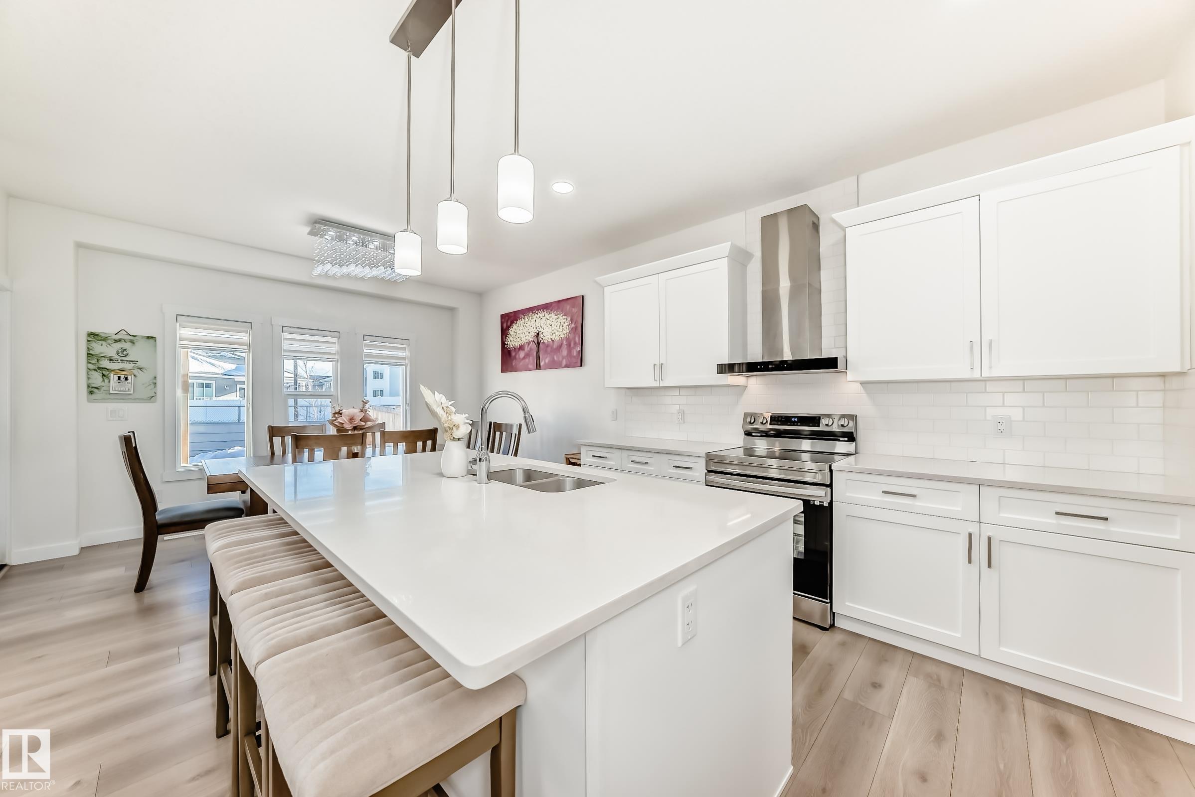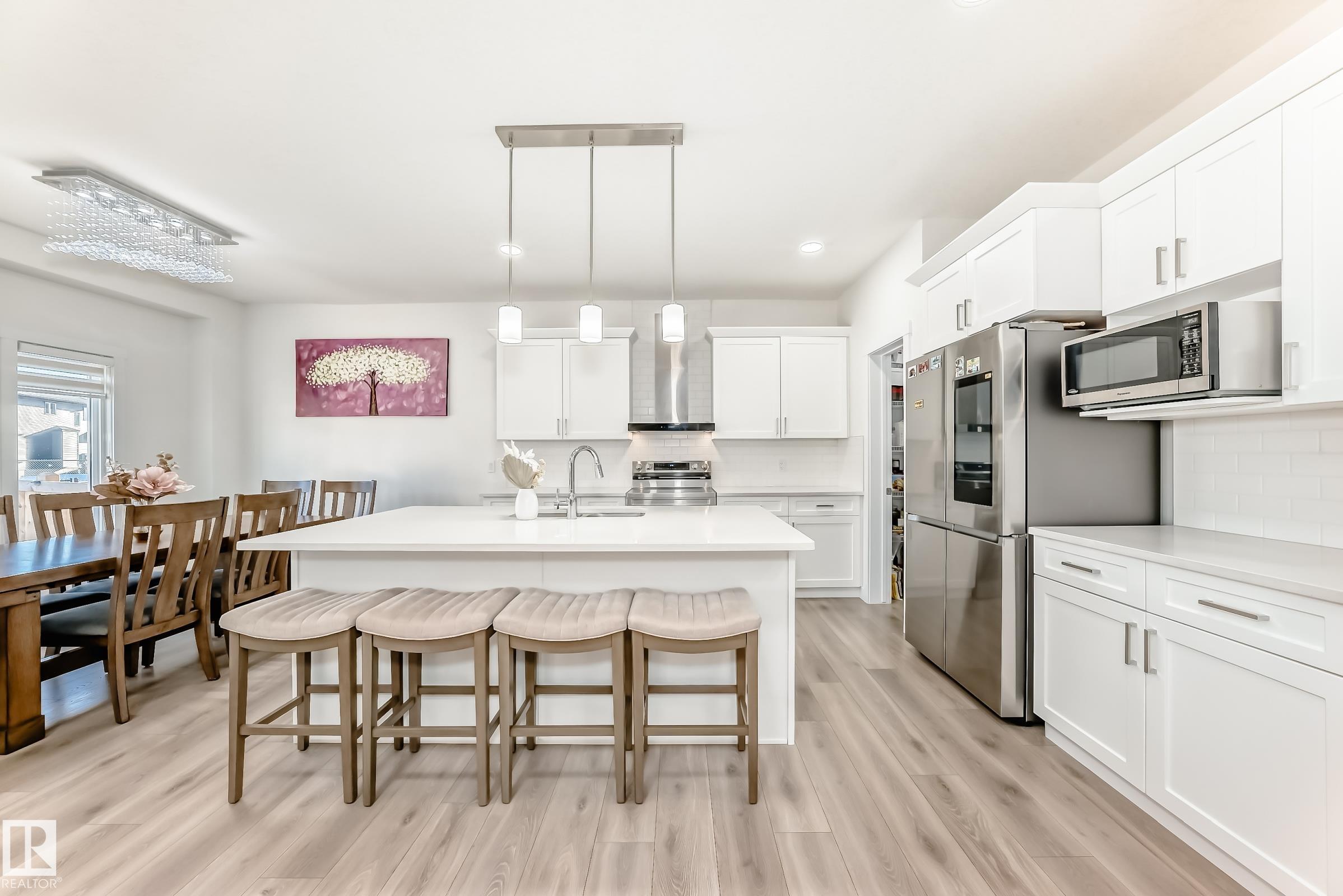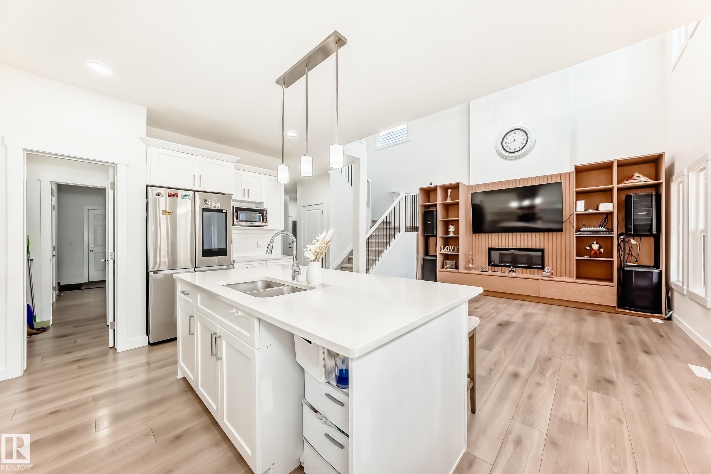 Magnificent Dream Home! This stunning 2-storey home located in the desirable community of Crystallina! Main floor welcomes you with an open-concept living room featuring open-to-below ceilings, large & bright windows & an over $5,000 value of custom-built entertainment unit. High-end vinyl plank flooring throughout. Spacious kitchen offers quartz countertops, upgraded white-color cabinetry, large central island, walk-through pantry, stylish backsplash, gorgeous chandelier lighting & SS appliances. Main floor den & 1/2 bath. Nice spindle staircase leads you to upper level, offers a large family rm, 3 generous-sized bedrooms, a 4-piece bath & laundry rm. King-sized master bedroom w walk-in closet & a luxurious 5-pc ensuite. SEPARATE entrance to basement with insulted and framed for 2 bedrooms/living rm/full bath & utility rm, ready for your finishing touches. Back yard access to walking trails. UPGRADED roof-top deck & fully landscaped. Easy access to transit, schools & all amenities. Just move-in & enjoy!
