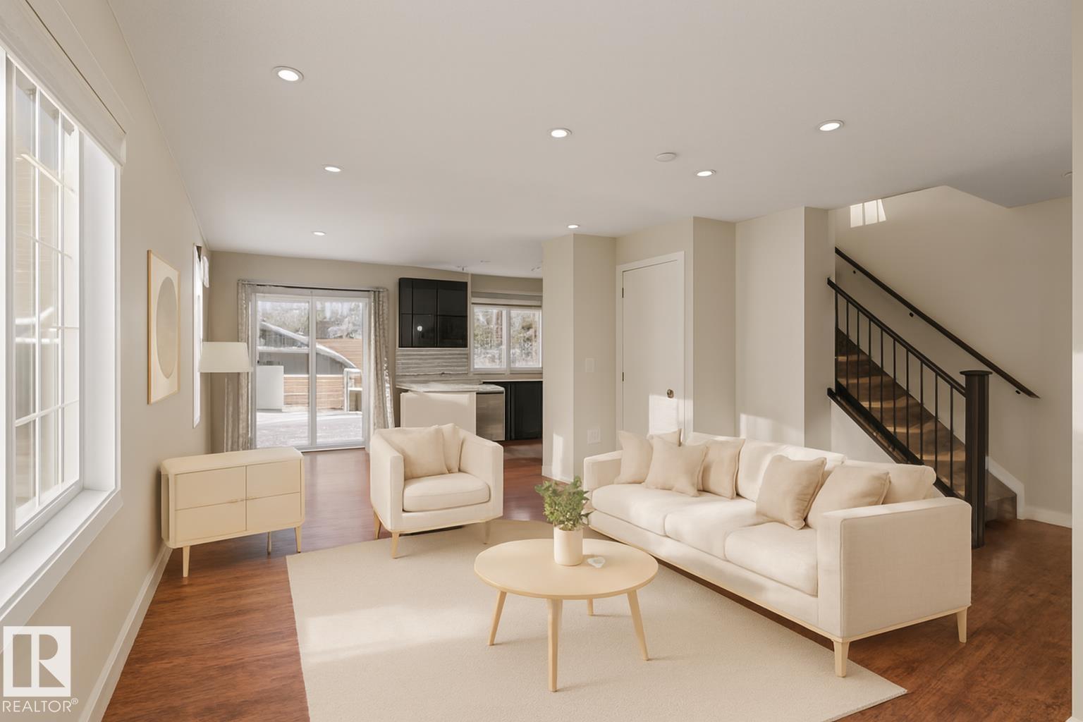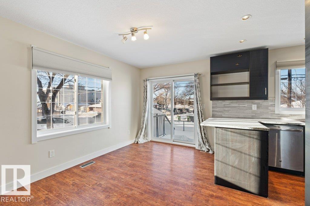 With NO CONDO FEES, this well-maintained half duplex was built in 2013 and is especially suited for first time buyers, investors, small or young families. Walking into the house, you'll see spacious foyer with ceramic flooring and a large closet. On the left side are open-concept massive living room, decent sized dining area and modern kitchen with high end laminate flooring, pot lighting, and large windows. The kitchen features granite counters, sleek black cabinets, stainless steel appliances. And a good sized 2-pc bathroom then completes the entire main floor. Going up to the second floor, you will find three good sized bedrooms and one 4-pc full bathroom. Laundry room and 3-pc full bathroom are located in the partially finished basement which waits for your creative touch-ups. Very close to schools (one block to St. Patrick Elementary School, a few bocks to NAIT), public transits, and downtown amenities. Easy access to Yellowhead Drive. Come to see this beautiful house and you'll surely like it!