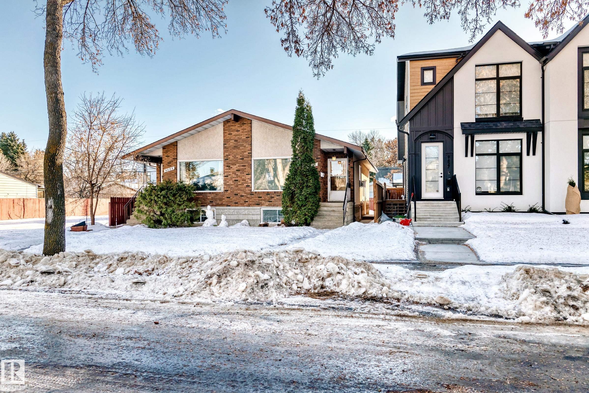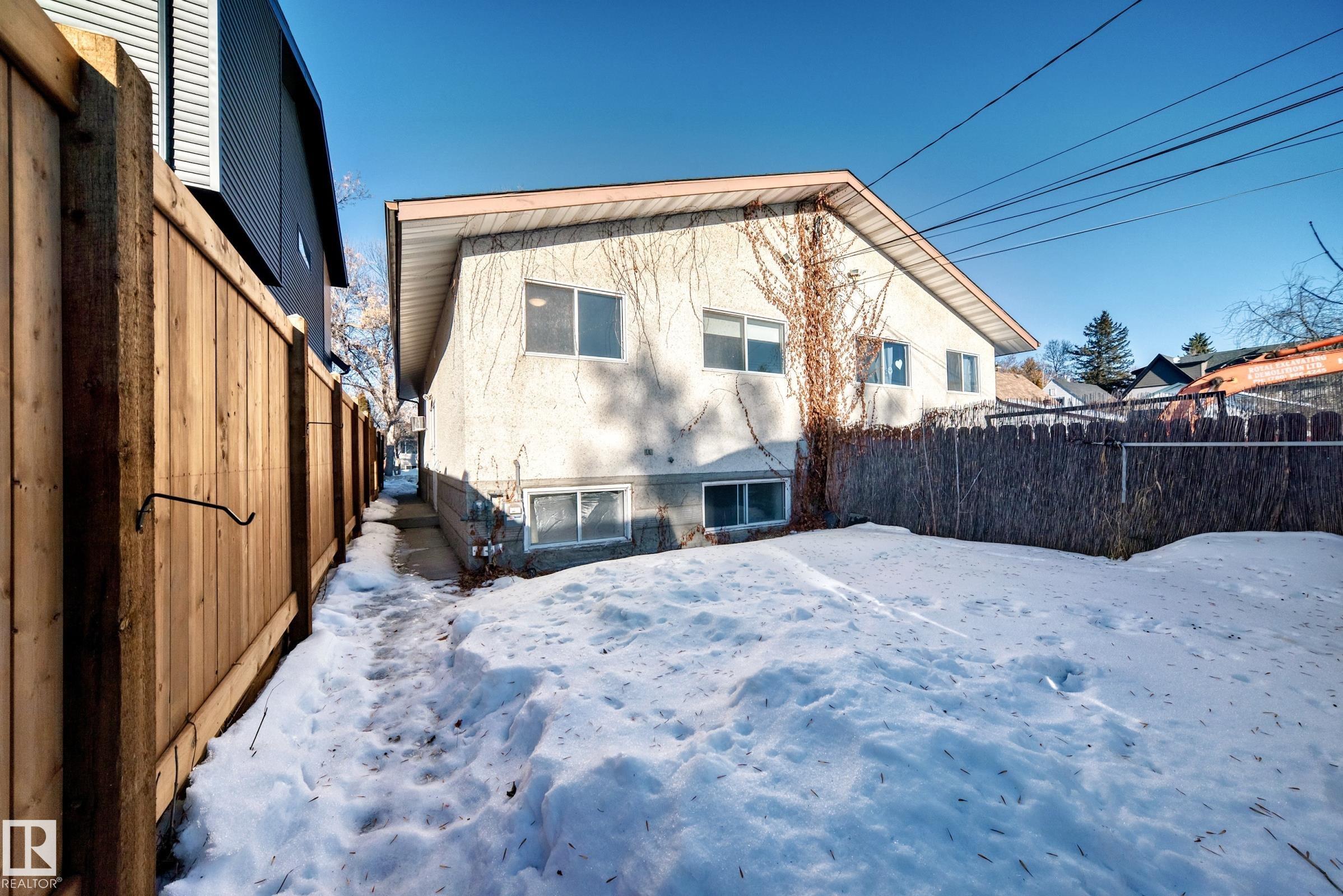 Attention Investors! Unbeatable Location in RITCHIE. Fully developed duplex located in one of the most desirable neighbourhood in Edmonton. Steps from Mill Creek Ravine park. Total of 6 bedrooms & 4 bathrooms. Featuring 2 spacious Bedrooms up and 1 bedroom down on each side. Separate side entrances. Basement units also have a private Kitchen! Some renovations completed about 7 years ago including new vinyl flooring, new paint, 2 stainless steel stoves, fridges, stainless steel hood fans, ceramic tile surrounds in the kitchen and bathrooms, newer bathrooms sinks/vanities, all new light fixtures, some doors, etc. There are 4 newer separate furnaces and 1 newer hot water tank on each side. huge back yards, Double garage was built about 13 years ago (has an interior separation wall). Close proximity to all major transportation including 3 blocks to Mill Creek Ravine park, schools, 1/2 block to playground, close to Whyte ave and U OF A. GREAT INVESTMENT OPPORTUNITY!
