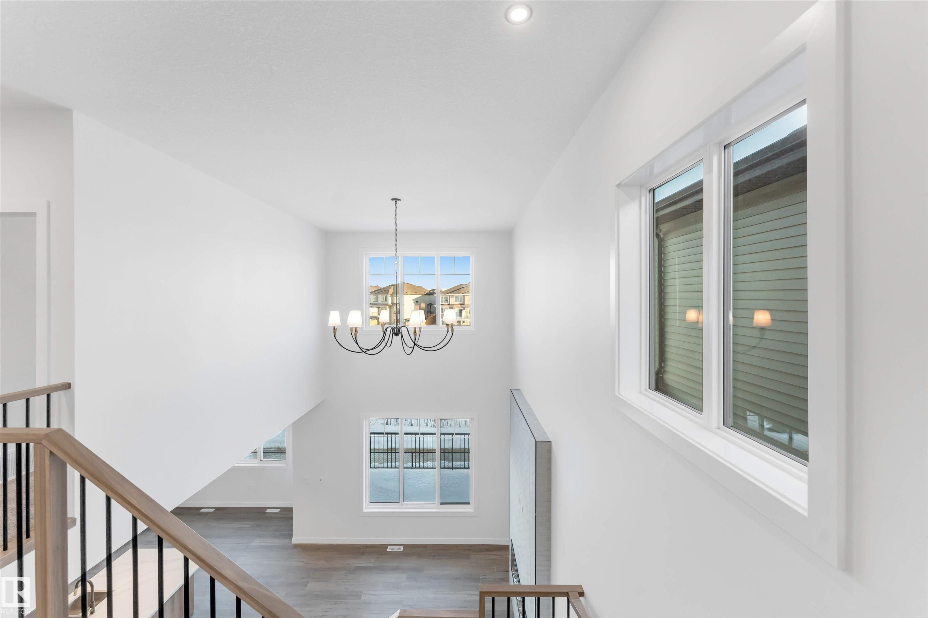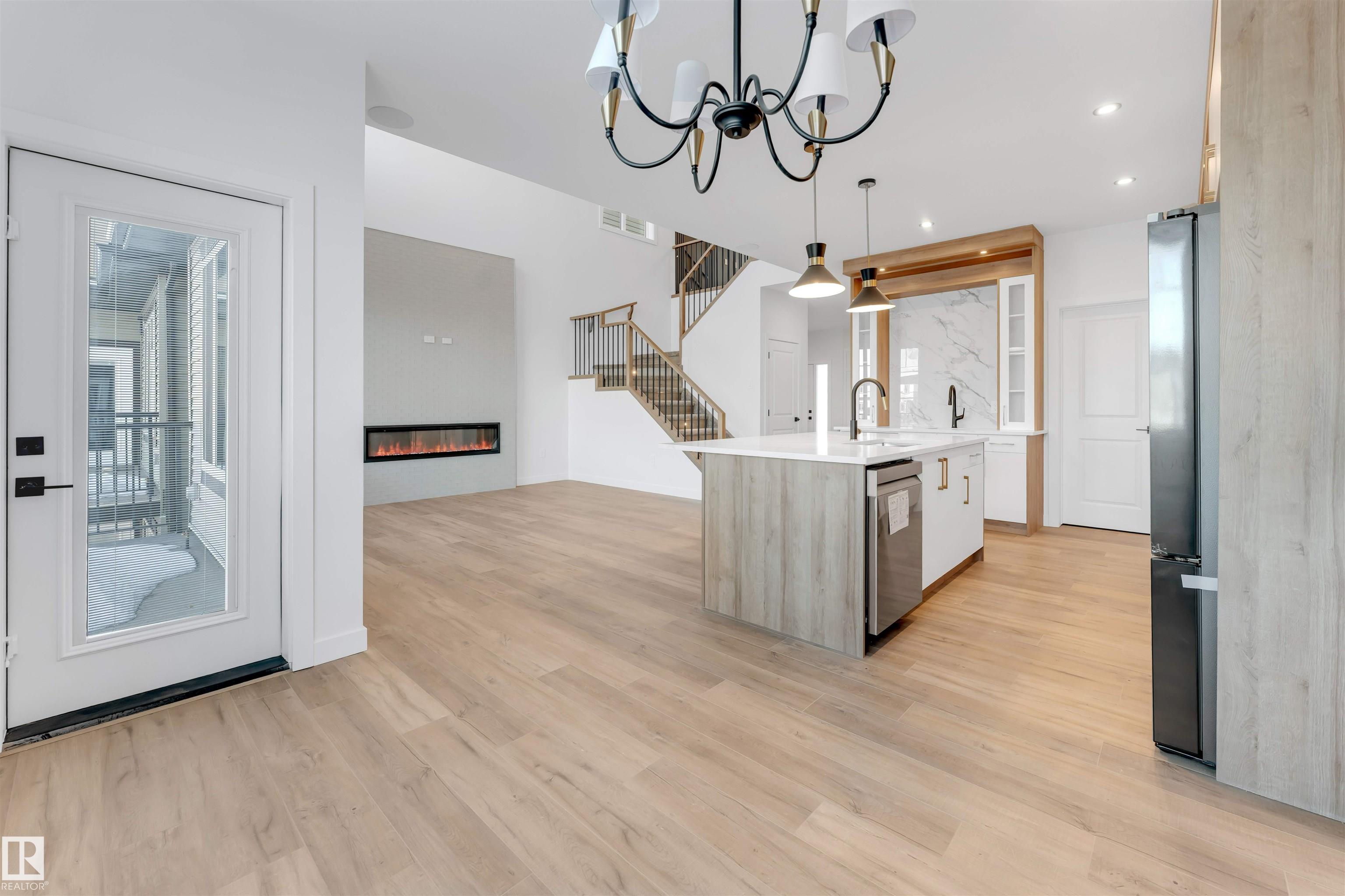 4 BED | 3 BATH | MAIN FLOOR BED/DEN | OPEN-TO-ABOVE | WALK-OUT BASEMENT | POND BACKING| BONUS ROOM This pond-backing, open-to-above walk-out home offers 4 bedrooms, 3 bathrooms, a BONUS room, and a STUDY area. The MAIN FLOOR features luxury vinyl plank flooring, a BEDROOM with full bath, a spacious family room with cozy fireplace, and a bright dining area filled with natural light. The modern kitchen is designed for both cooking and entertaining, showcasing quartz countertops, high-end cabinetry, a large island, stainless steel appliances, and a pantry. Upstairs, the PRIMARY BED includes a 5-piece ensuite and a spacious walk-in closet, along with two additional bedrooms, a full bath, bonus room, study area, and upper-floor laundry. The unfinished WALKOUT basement with SEPEARTE entrance offers excellent future development potential. Close to parks, ponds, walking trails, schools, and shopping.
