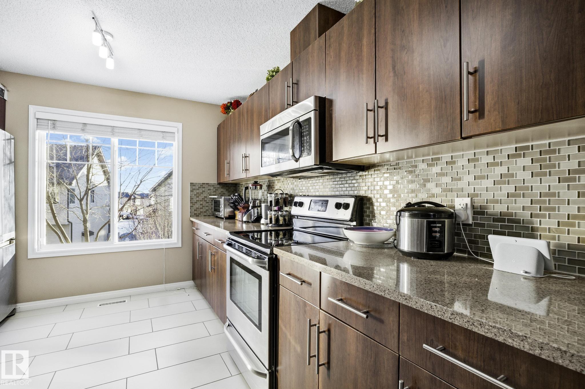 This well maintained home offers 3 bedrooms and 2.5 bathrooms, along with a double attached garage. The main floor features a spacious living area and dining space, perfect for everyday living and entertaining. The kitchen is equipped with a refrigerator, stove with oven, hood fan, dishwasher, and microwave, complemented by a stylish glass tile backsplash, large quartz countertops, and upgraded hardwood and ceramic tile flooring throughout. Upstairs you?ll find three bedrooms, including a comfortable primary suite with its own en-suite bathroom. The home is finished with a high-efficiency furnace, central air conditioning, and a water filtration system. A washer is conveniently located in the basement. Outside, enjoy a fully fenced yard with a patio ideal for relaxing or hosting guests. Located in Edmonton?s desirable west-end community of The Hamptons, this property is close to schools, shopping, and public transportation. Furniture available upon request.