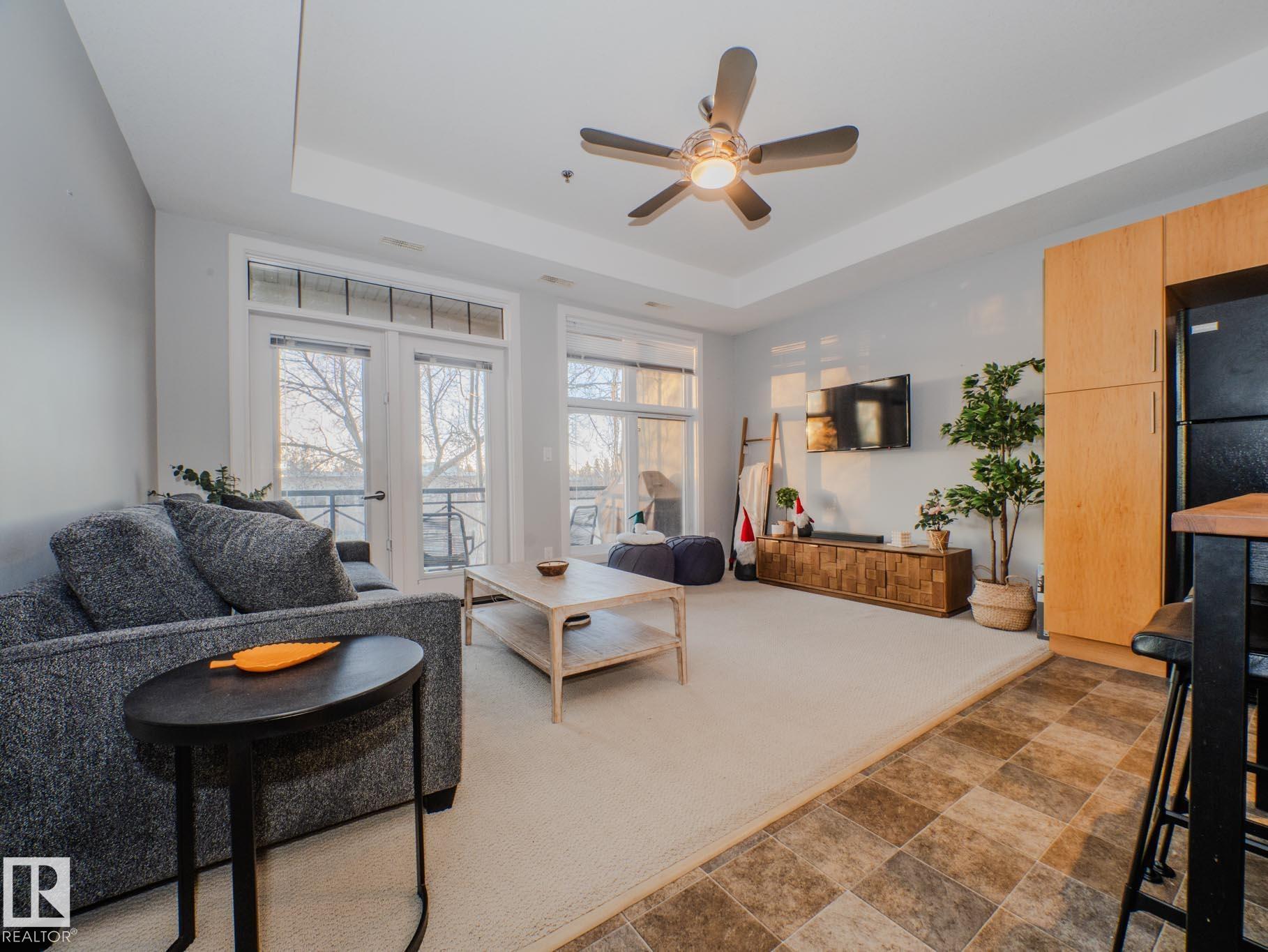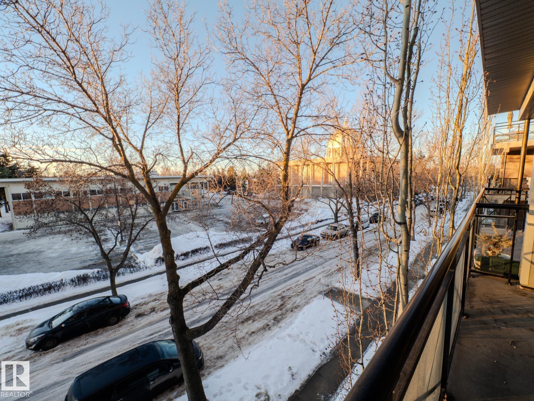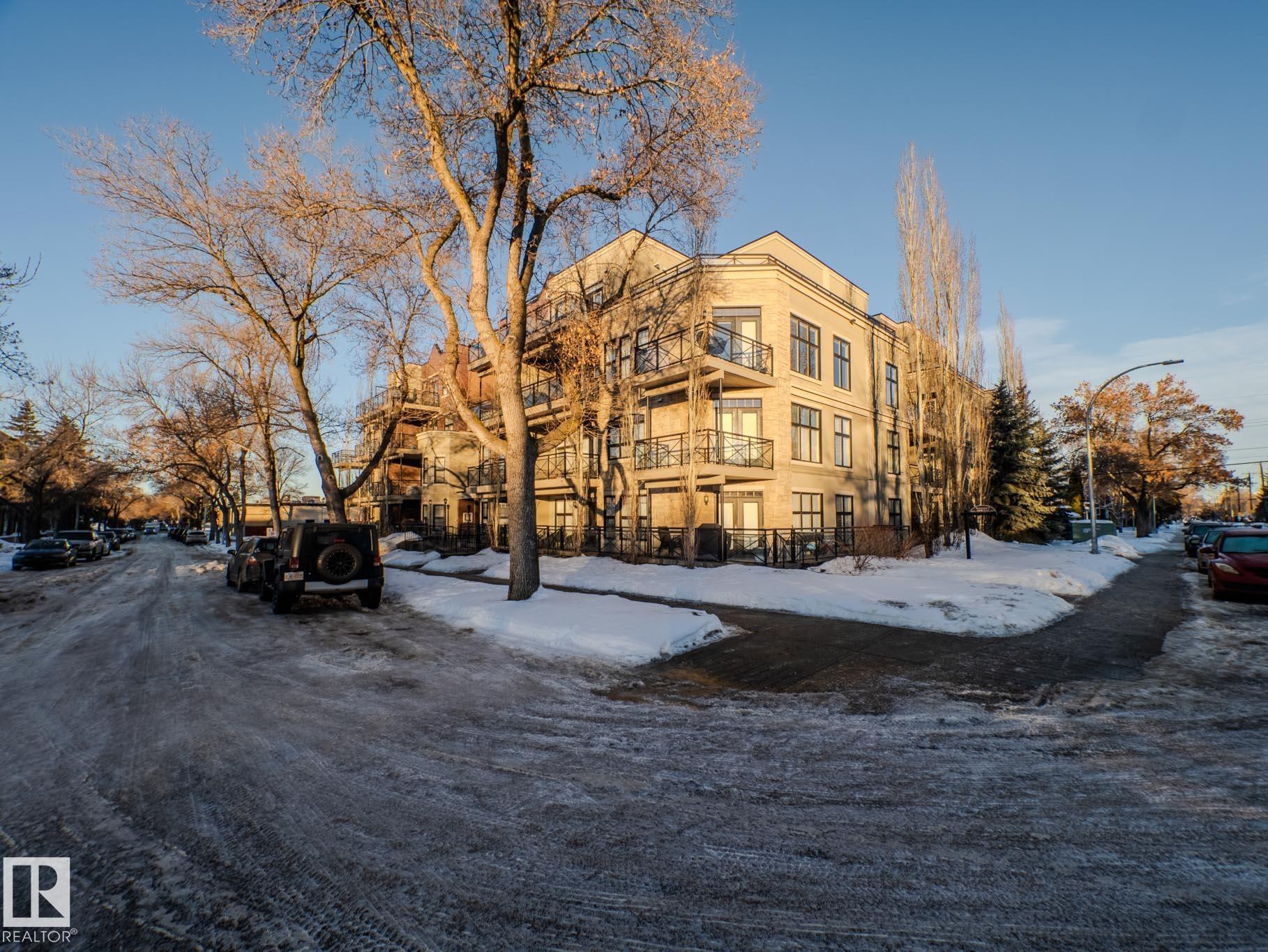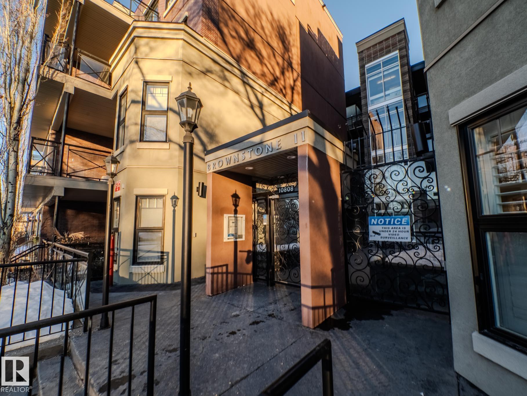 THIS IS SUCH A COOL BUILDING...ALMOST 700 SQ FT....THIS IS A LIFE STYLE...ATTN STUDENTS/PROFESSIONALS...~!WELCOME HOME!~ This 1 bed / 1 bath condo in the highly sought-after Brownstones II sits on the 3rd floor and delivers 650 sq. ft. of smart, functional space?perfect for students, first-time buyers, or young professionals who want to be close to everything. The open-concept layout features a bright living room with floor-to-ceiling windows, plus patio access for some fresh air and sunshine. The kitchen brings the style with great cabinet space, open shelving, and a sleek black subway tile backsplash. You?ll also love the in-suite laundry, a clean 4-piece bathroom, and a spacious bedroom with a mirrored double closet. This professionally managed building includes a gated courtyard, elevator, and assigned parking. Walkable, central, and dialed-in for lifestyle?minutes to U of A, transit, McKernan/Belgravia LRT, and just blocks from Whyte Ave, 109 Street, University Ave++
