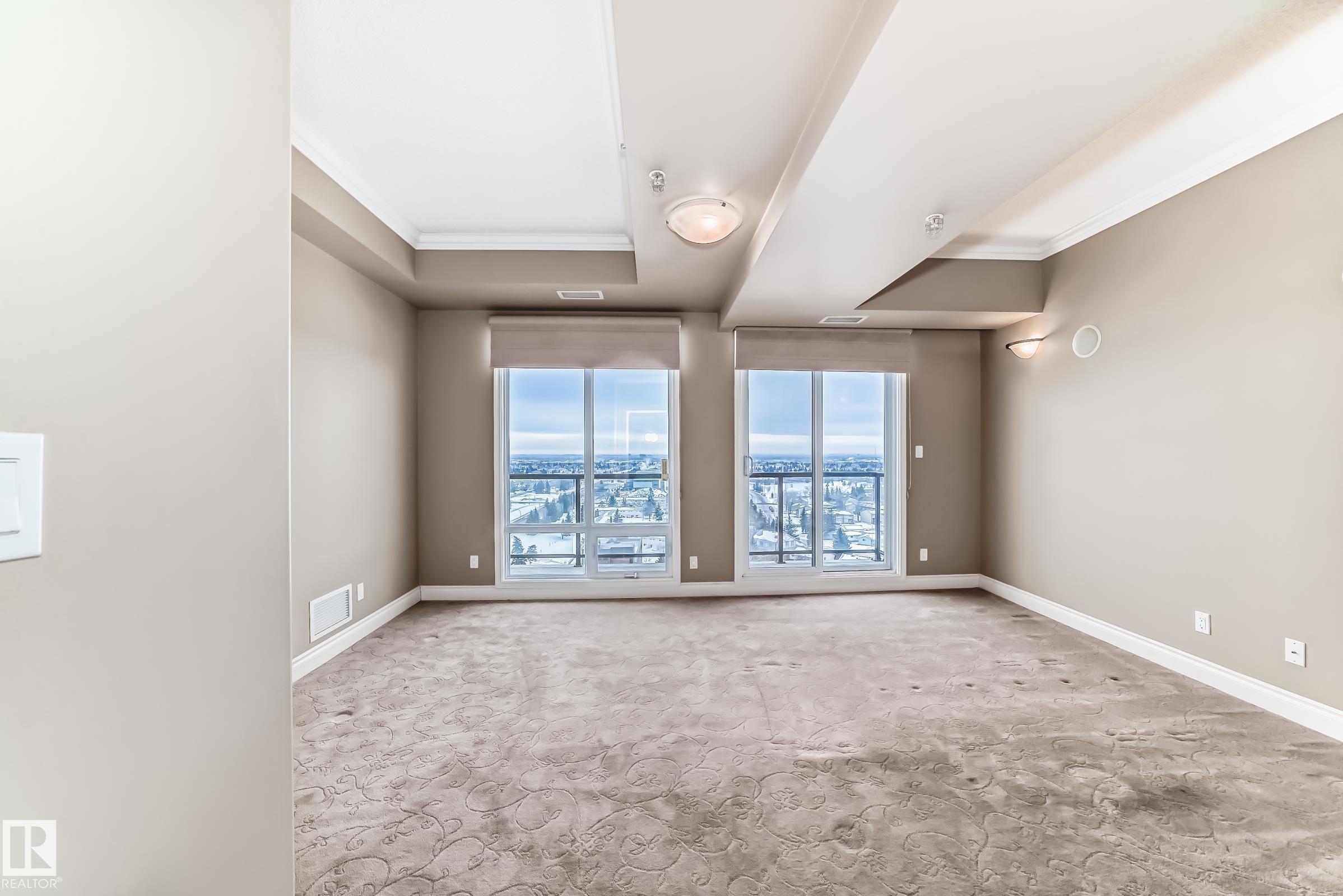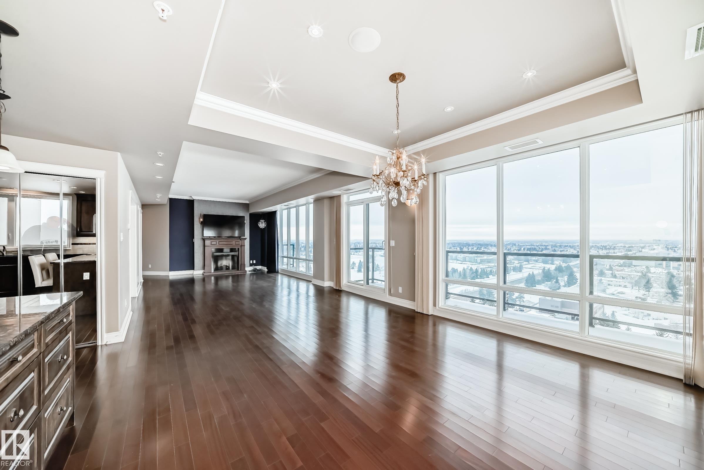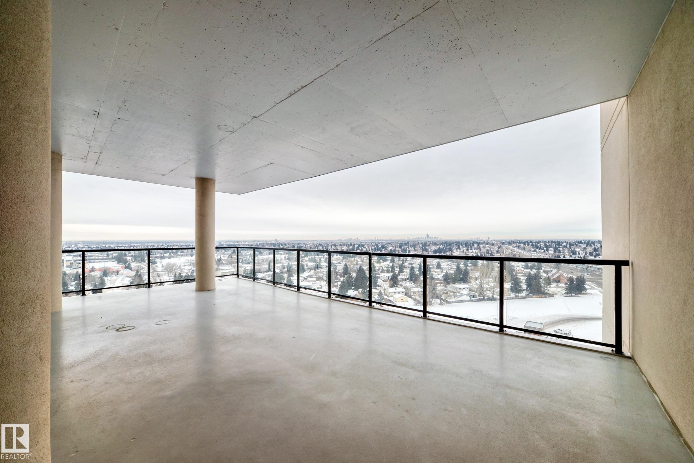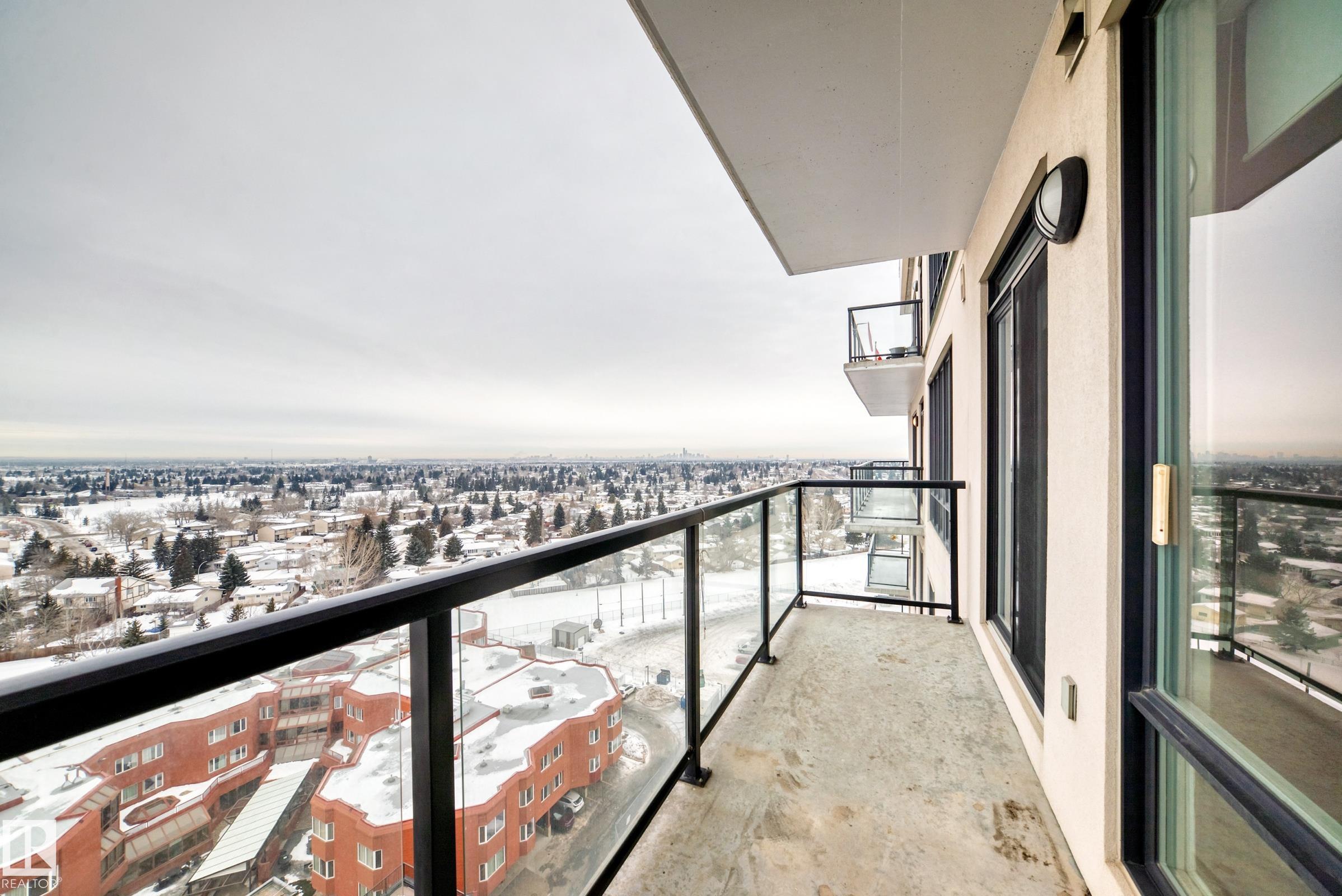 Welcome to this impressive 55+ PENTHOUSE! Over 1,850 sq ft of beautifully designed living space. Featuring 2 spacious bedrooms plus a versatile den, the functional layout is filled with natural light from floor-to-ceiling windows. The stunning kitchen boasts granite countertops, SS appliances, and an abundance of cupboards. Enjoy the expansive living room with a cozy fireplace, perfect for relaxing or entertaining. Step outside to two massive balconies showcasing incredible views. The home includes a glamorous 5-piece bathroom, an additional 3-piece bath, and a large laundry room with sink, extra cabinetry, and storage. Condo fees include ALL utilities (even electricity) and basic cable. Comes with a titled underground parking stall. This adult community is connected to Shepherd?s Care Facility, offering access to full care services if needed. Amenities include a full-service dining room (in-suite delivery available for a fee), guest suite, 4th floor patio & garden, chapel, and social room. Welcome home!!