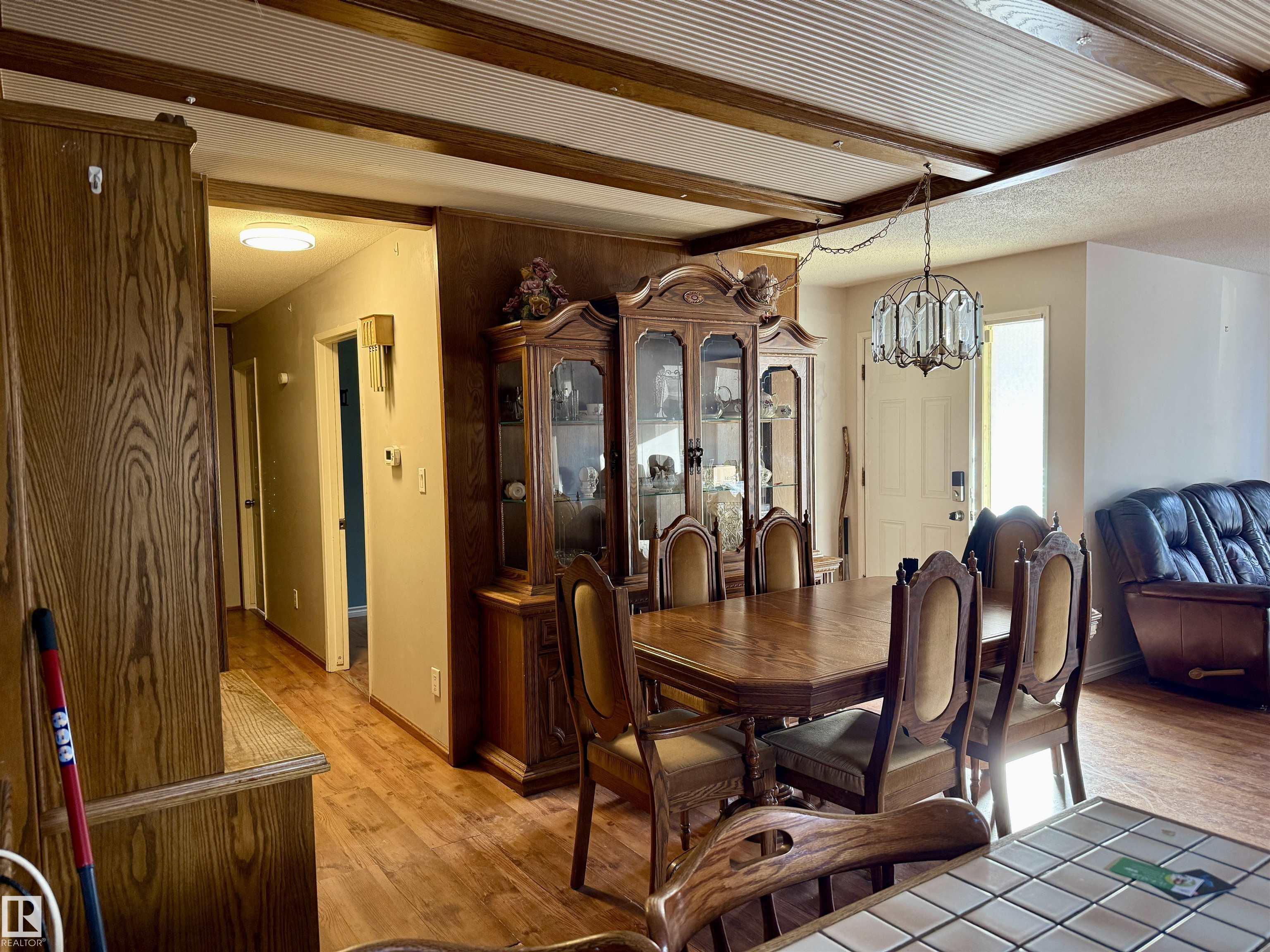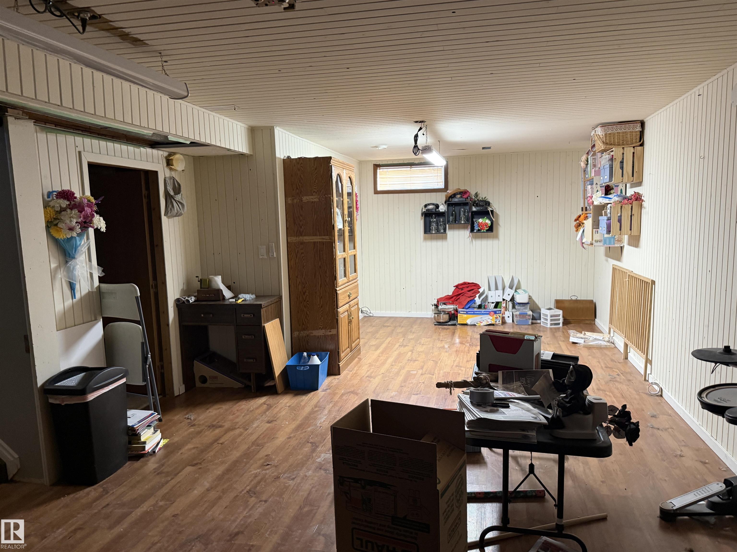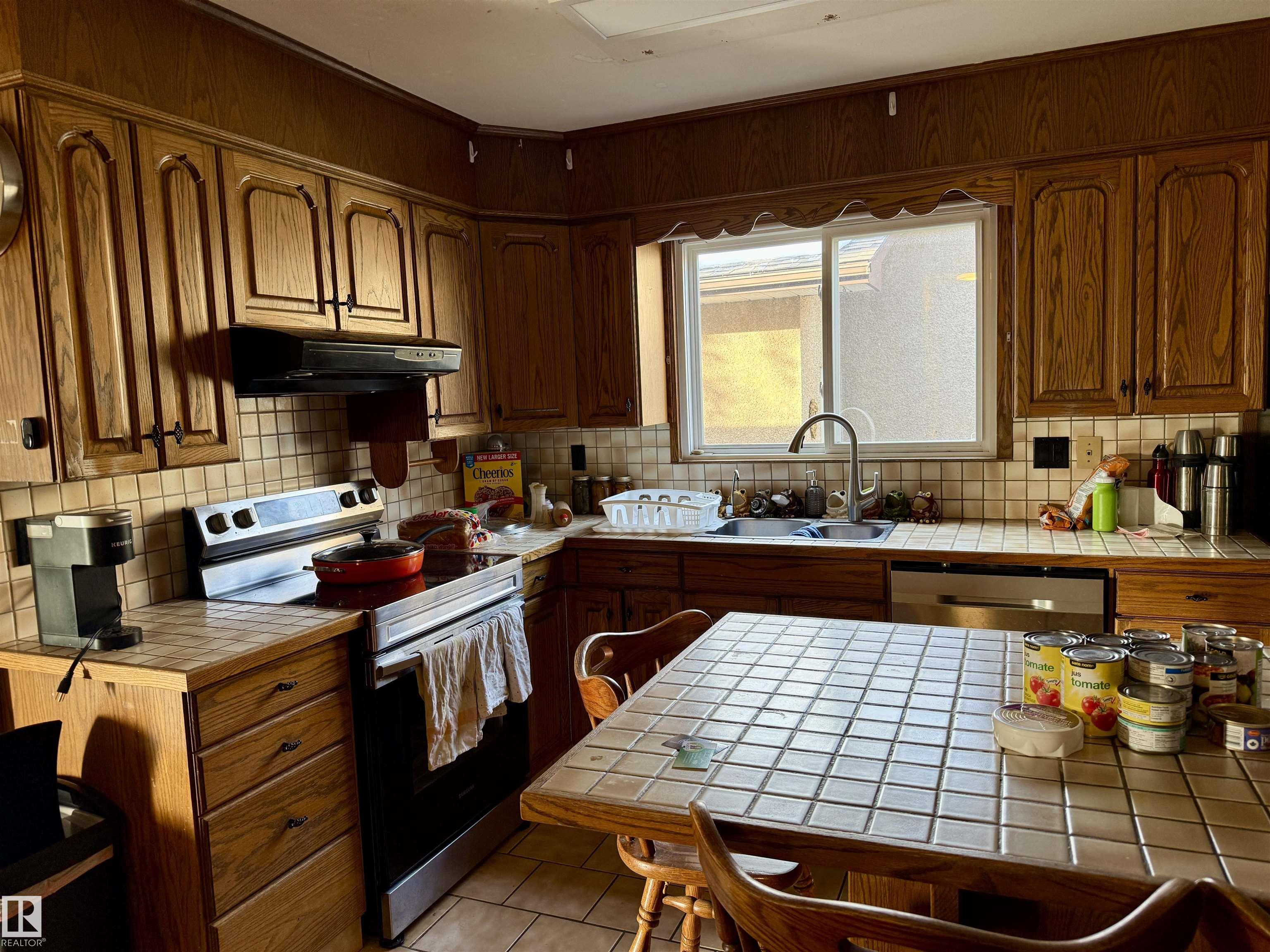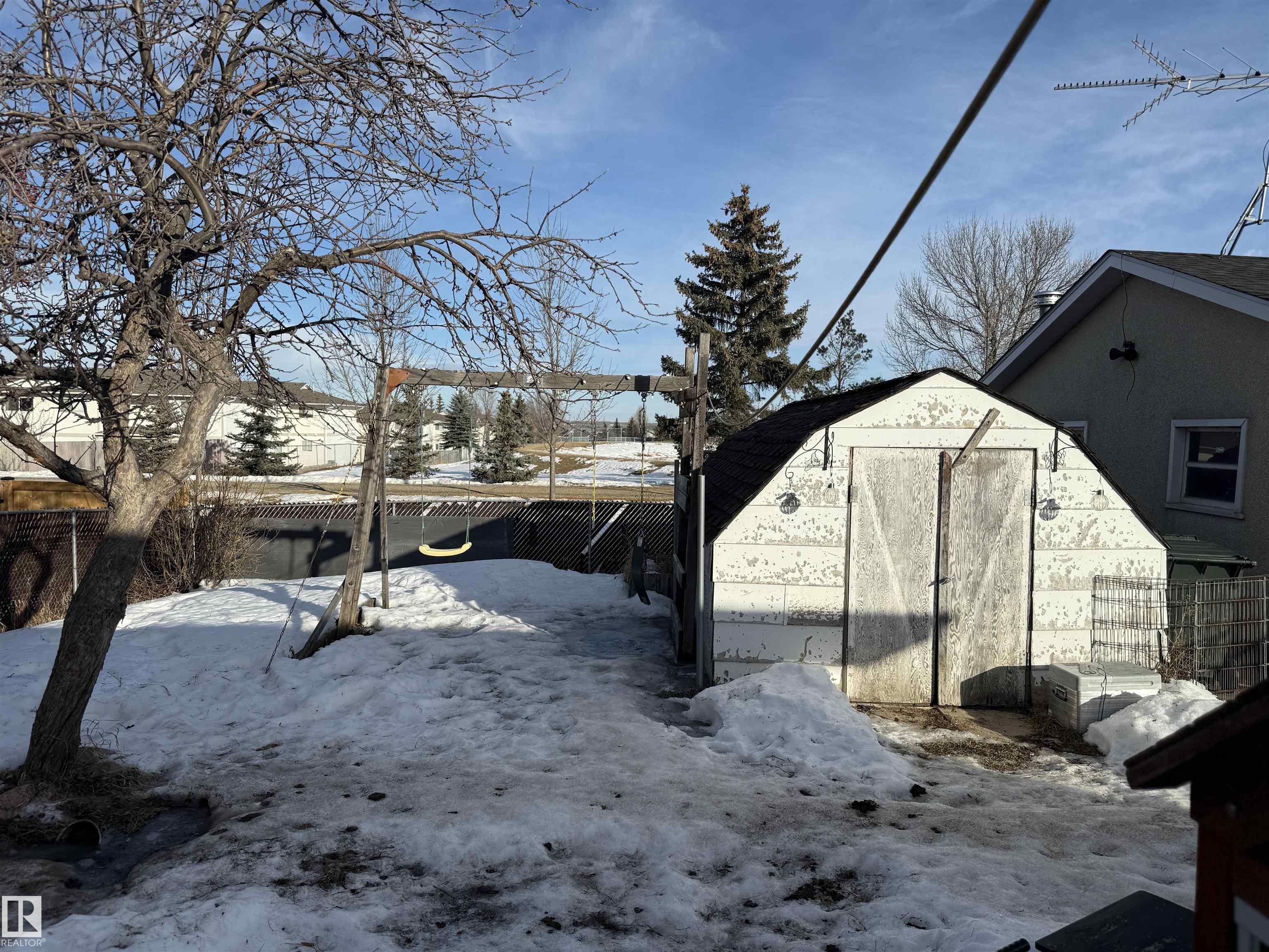 Located in the mature community of Brookwood, Spruce Grove, this 1972 bungalow offers 1,300 sq ft above grade plus a fully finished basement. Featuring 3+1 bedrooms, 2 full bathrooms, a 2-piece primary ensuite. The south-facing living room is filled with natural light from large windows. The kitchen includes oak cabinets, sunshine ceiling, tile flooring, and a breakfast bar. A wood-stove insert warms the main-level family room, while the spacious lower level provides room for a games or play area. Upgrades include shingles, some windows, and hot water on demand. Enjoy a 24? x 30? heated double detached garage, plus a fully fenced backyard with deck, shed, dog run, and direct access to the Heritage Grove Trail System.