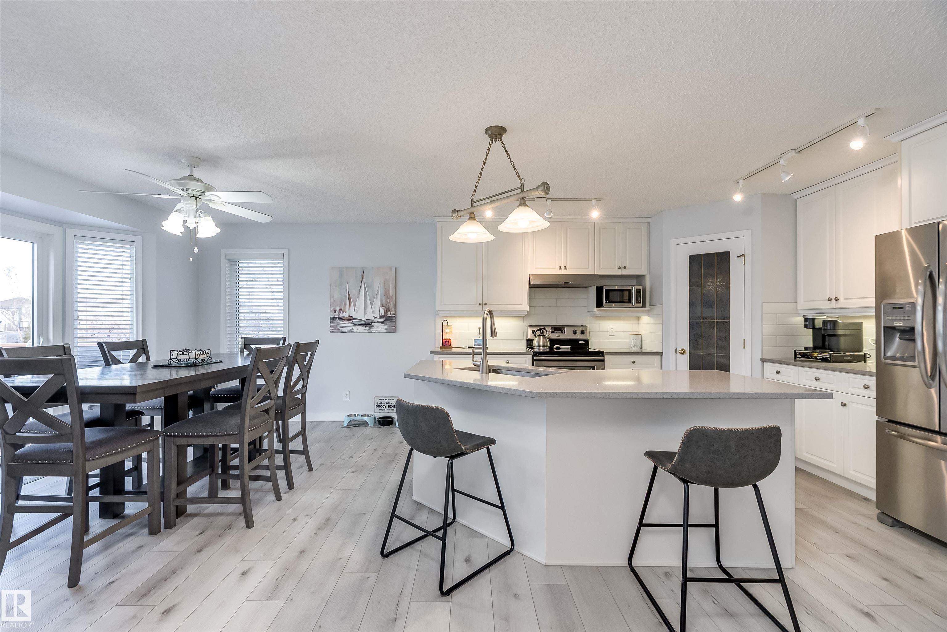 Fully finished home in a fantastic neighbourhood backing the multiway path. This home shows 10/10! The spacious entryway leads to a huge kitchen w/ tons of (quartz) counterspace, ample cabinetry, a large island, & an oversized walk-in pantry. Generous dining nook w/ sliding glass patio doors leading to the large backyard & spacious deck. The main floor also features two-way fireplace & a spacious living room. PLUS 2 pc bath w/ quartz countertop, & main floor laundry. Upstairs offers 3 large bedrooms, w/ primary suite showcasing a large walk-in closet and spa-like ensuite w/ jetted tub, separate shower, & a water closet. The finished basement includes a full bath, huge rec room, and another bedroom that just needs flooring. This home offers plenty of storage space. Updates include new paint (last 3 years), new flooring, new counters and backsplash on the main floor, new furnace and heat pump (Nov 2024), new baseboards throughout, and much more. Top it all off with a heated large double attached garage.