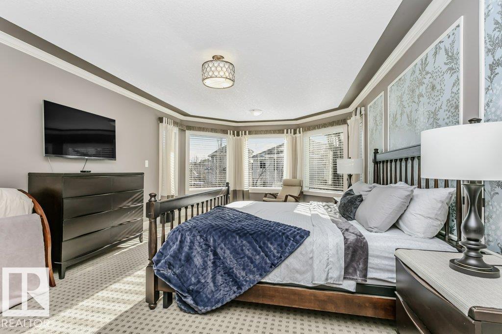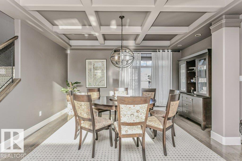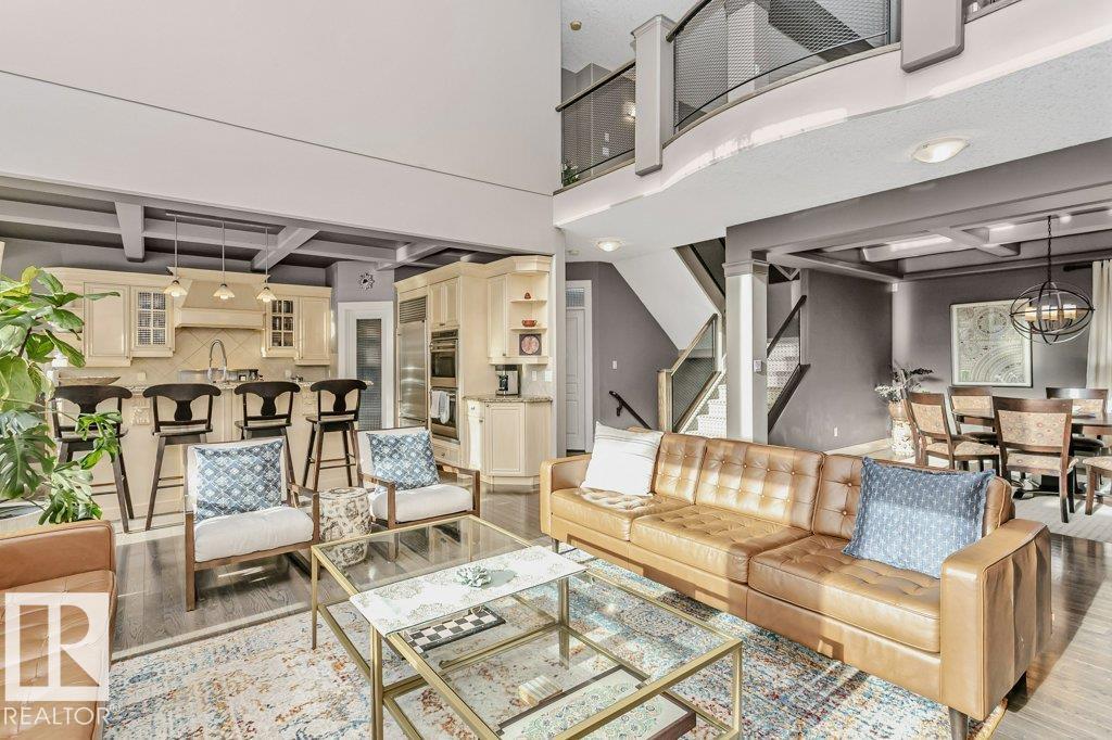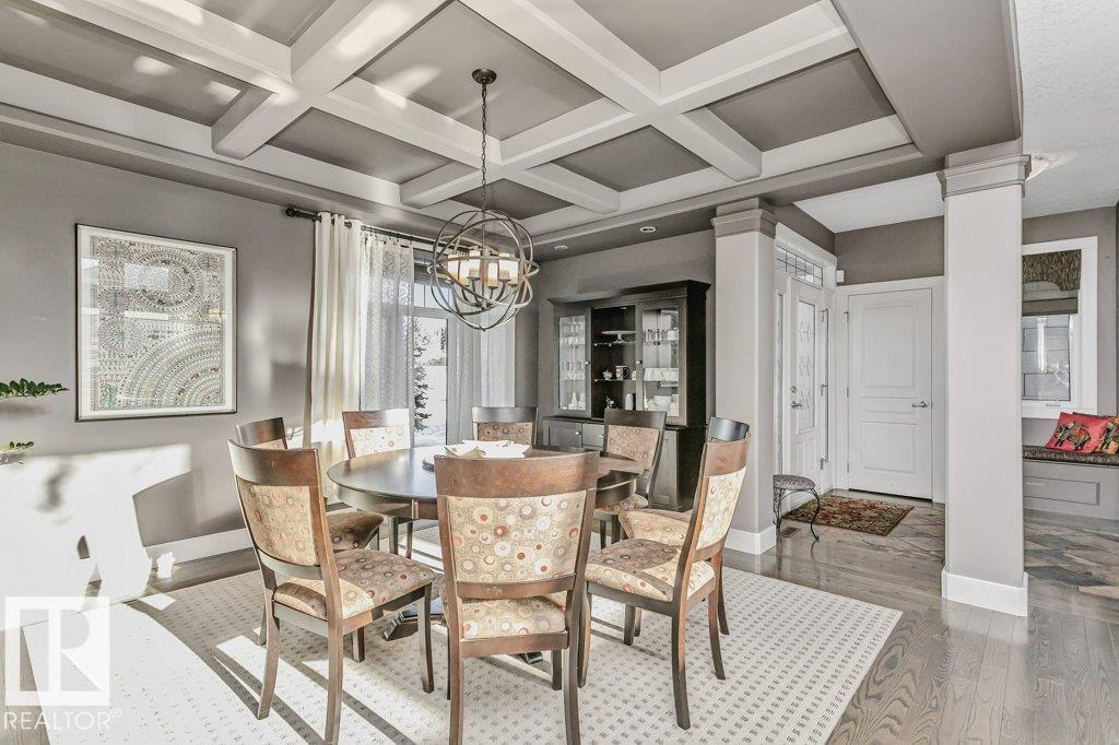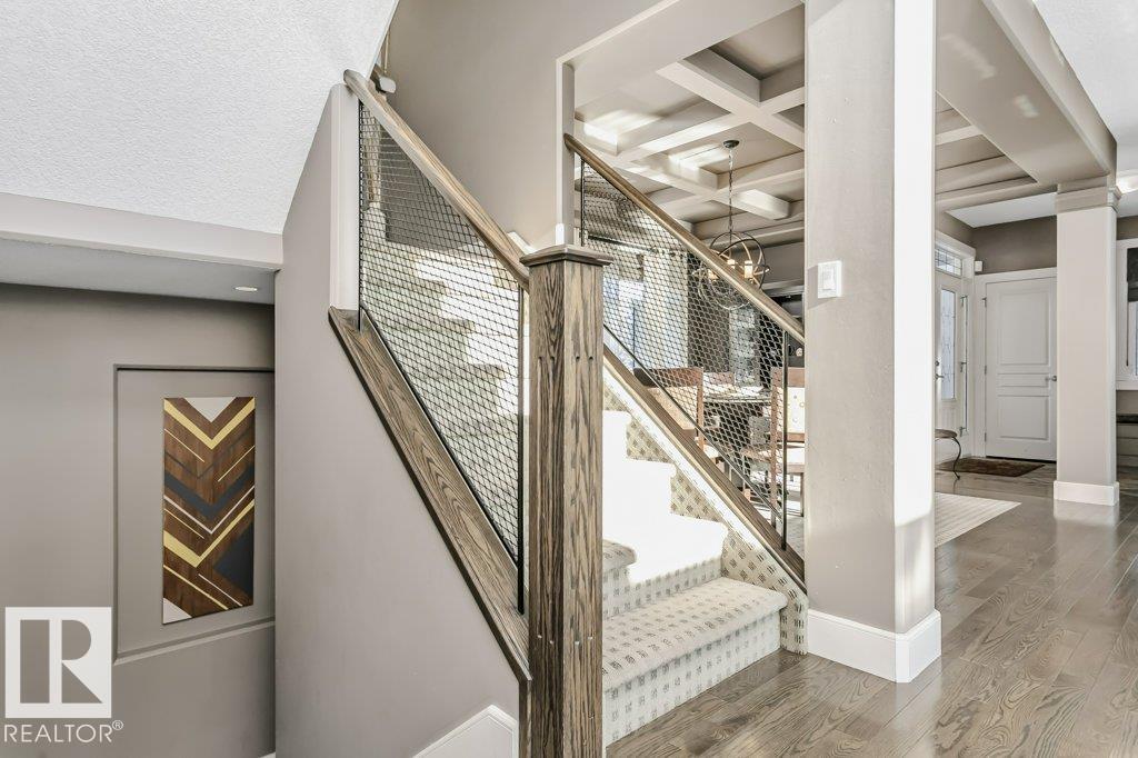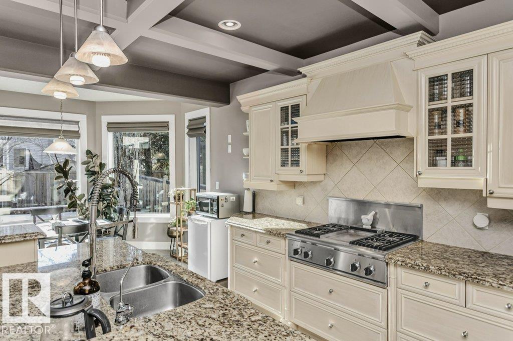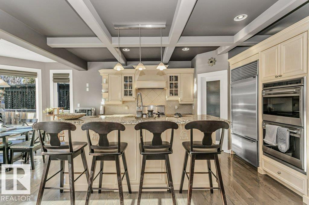 Outstanding Former Aacropolis showhome 2 storey 4198 total sq ft (incl basement)3+2 bedroom home in prestigious College Woods featuring an impressive great room design with formal dining area, soaring ceilings & natural light. Exceptional craftsmanship & quality throughout, including hardwood & ceramic tile, custom built-in wall units, & refined architectural details. The gourmet kitchen is equipped with glass-accent cabinetry, pot drawers, granite countertops, premium SS appliances, with a walk-through pantry to the laundry room & garage. The large primary suite has updated luxurious ensuite with jacuzzi tub & walk-in shower with glass-on-glass doors. Main floor den with double-sided fireplace, a unique upper level loft & a fully finished lower level ideal for family living & recreation. New A/C & Hot water tank. Aggregate driveway, $100,000 maintenance free backyard prof landscaped with flagstone patio, fireplace mature trees for privacy.Stylish curb appeal it?s the perfect choice.