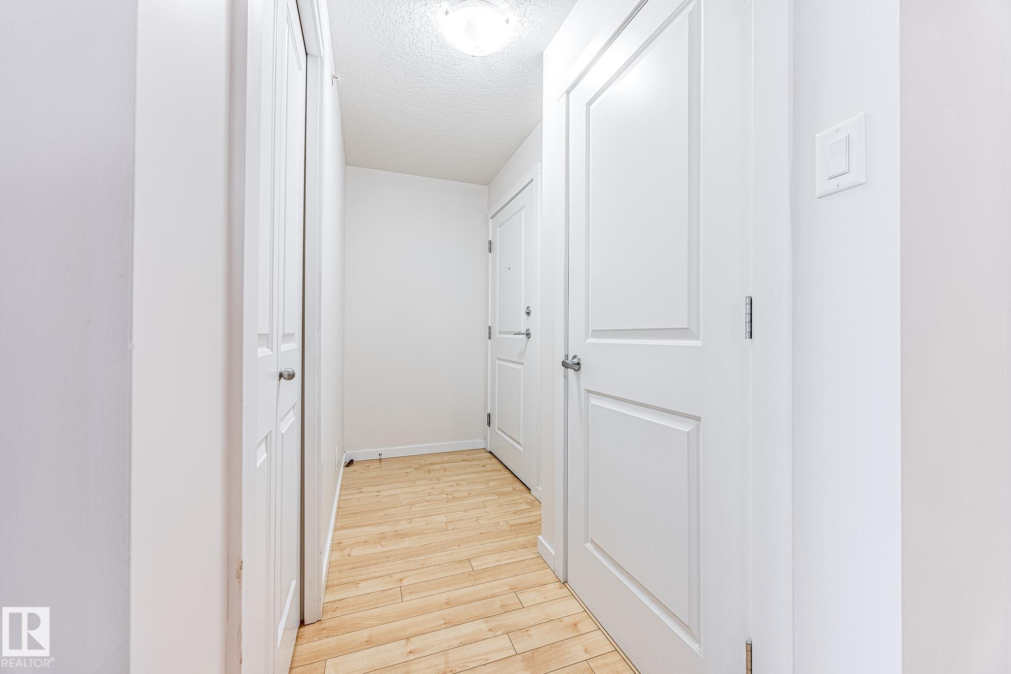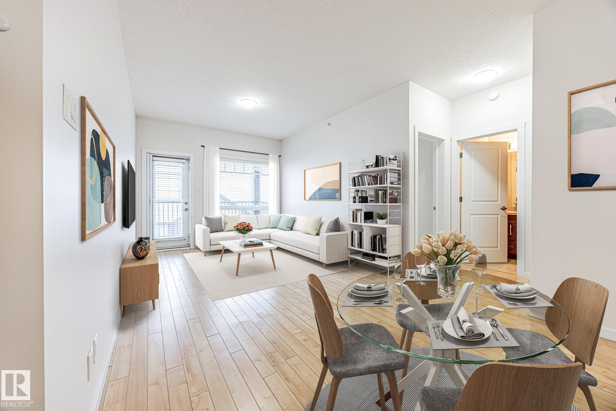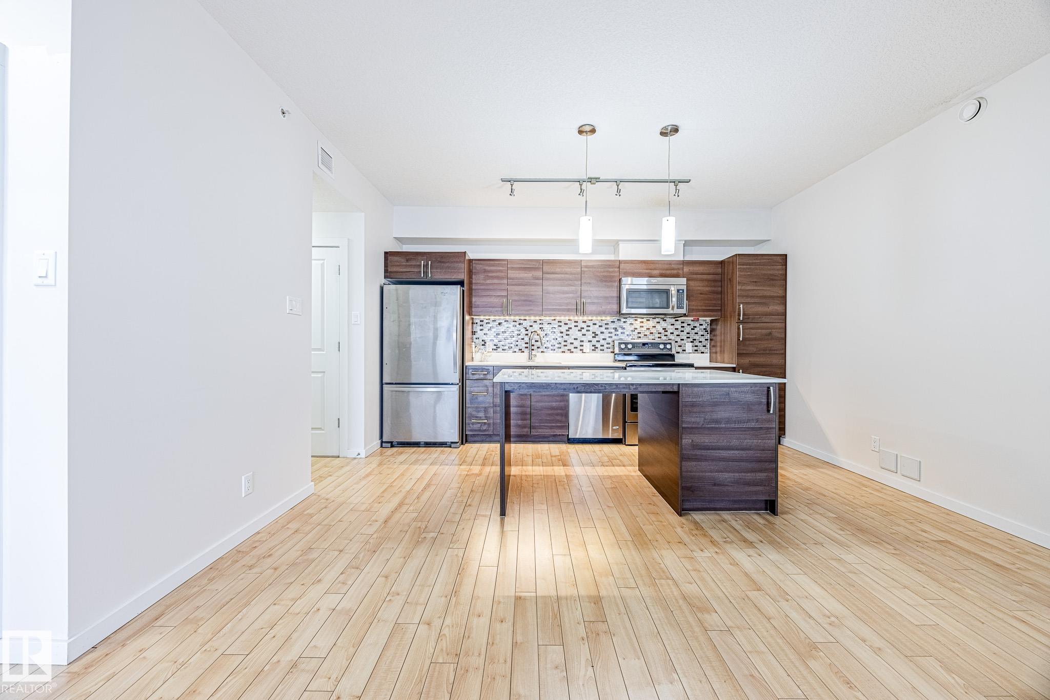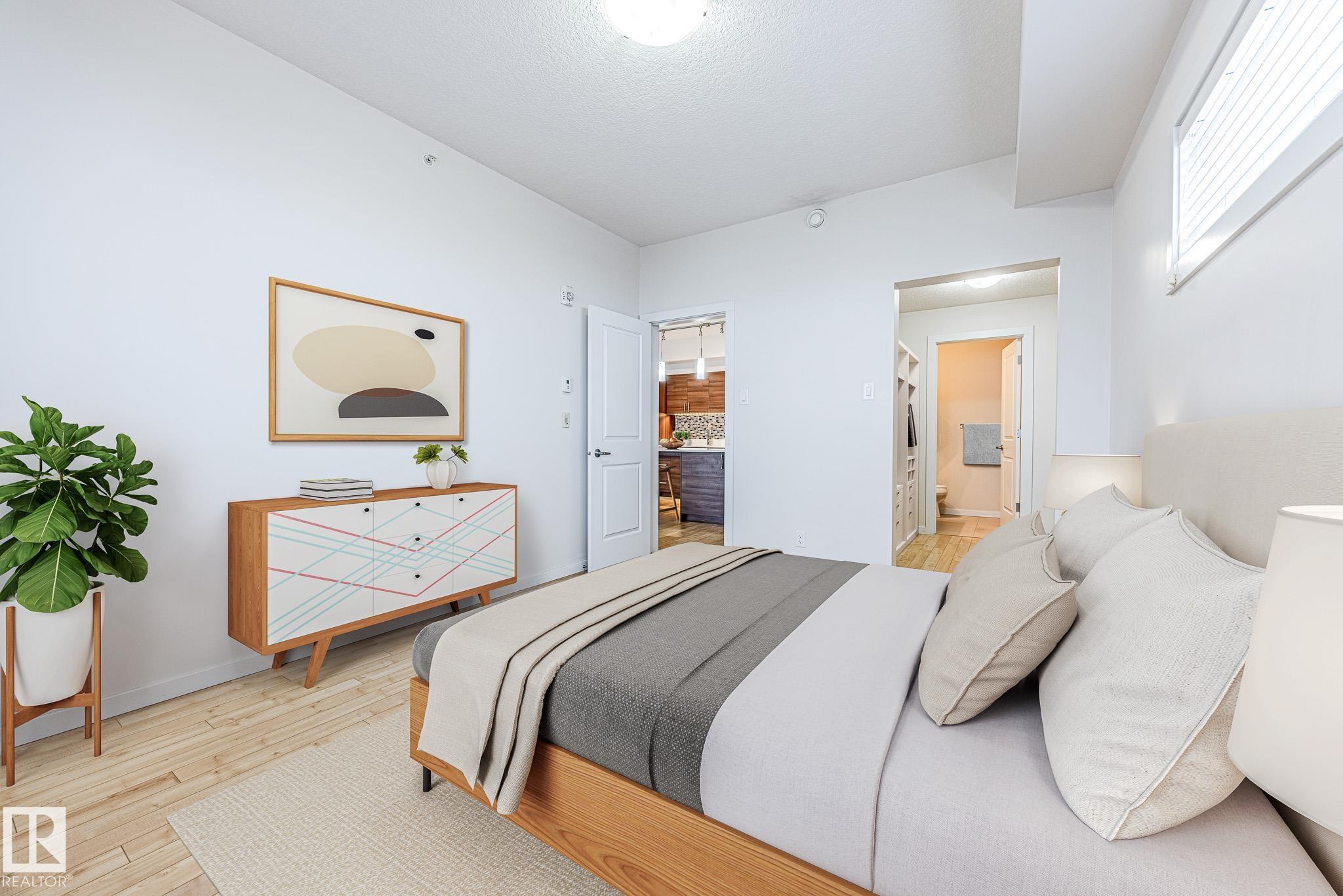 Looking for a well-maintained home in a solid condo complex? This is it! This bright top-floor 2 bedroom, 2 bath home offers upgraded laminate flooring, a stunning quartz island with eating bar, and beautiful south-facing views. Freshly painted and modern, the open-concept layout features a well-designed kitchen with ample storage, quartz countertops, stainless steel appliances, and a large island with seating for four. The space flows seamlessly into the great room, flooded with natural light from sunny south-exposure windows?perfect for dining, entertaining, or simply relaxing. The spacious primary bedroom includes a dual-sided walk-in closet and private ensuite, while the second bedroom and main bath are thoughtfully positioned on the opposite side for added privacy. Enjoy the convenience of in-suite laundry, a large patio ideal for gardening, and a secure underground parking stall. Steps to transit, shopping, and the Henday. Welcome home! Visit the REALTOR®?s website for more details.