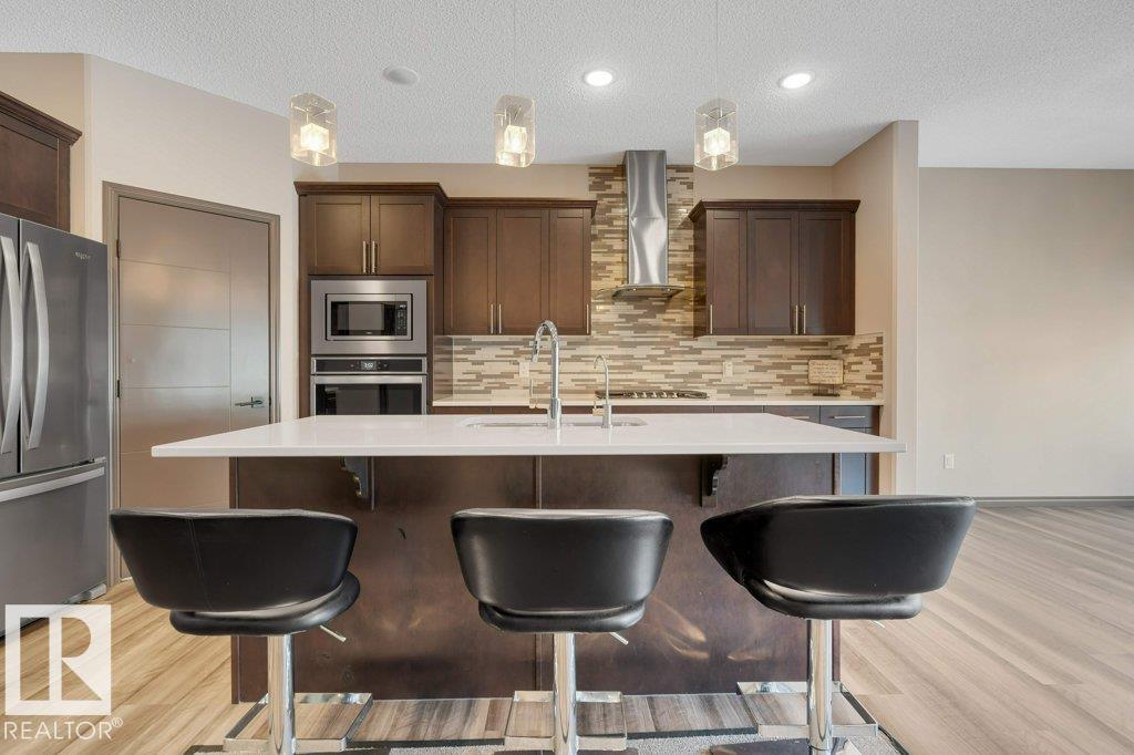 Prime Langdale gem! Over 4,000 sq. ft. of exceptional living space in a family friendly community featuring 7 bedrooms and a fully finished basement in-law suite perfect for multigenerational living. The main floor boasts 9-ft ceilings, durable vinyl flooring, a cozy fireplace, and a versatile bedroom/office with full 3-pc bath. The gourmet kitchen shines with premium stainless steel appliances, entertainer?s island, and walk-through pantry. Upstairs, you will find a spacious bonus room, luxurious primary suite with a 5-pc ensuite and walk-in closet, 3 additional bedrooms, a full bath with dual sinks, and laundry for ultimate convenience. Fully developed, the lower level offers a second kitchen, private laundry, full bath, 2 more bedrooms, and a separate entrance. Enjoy parks, ponds, shopping, and dining nearby in this highly sought after area!