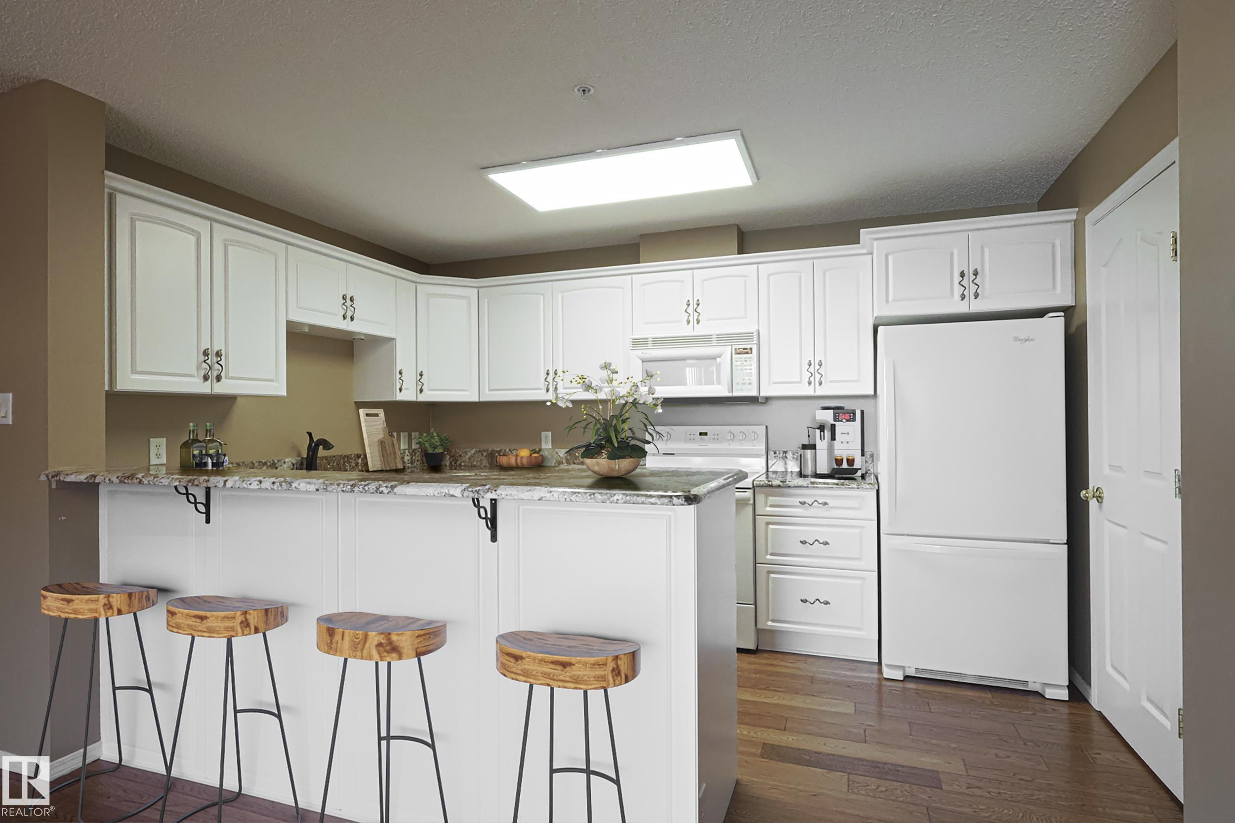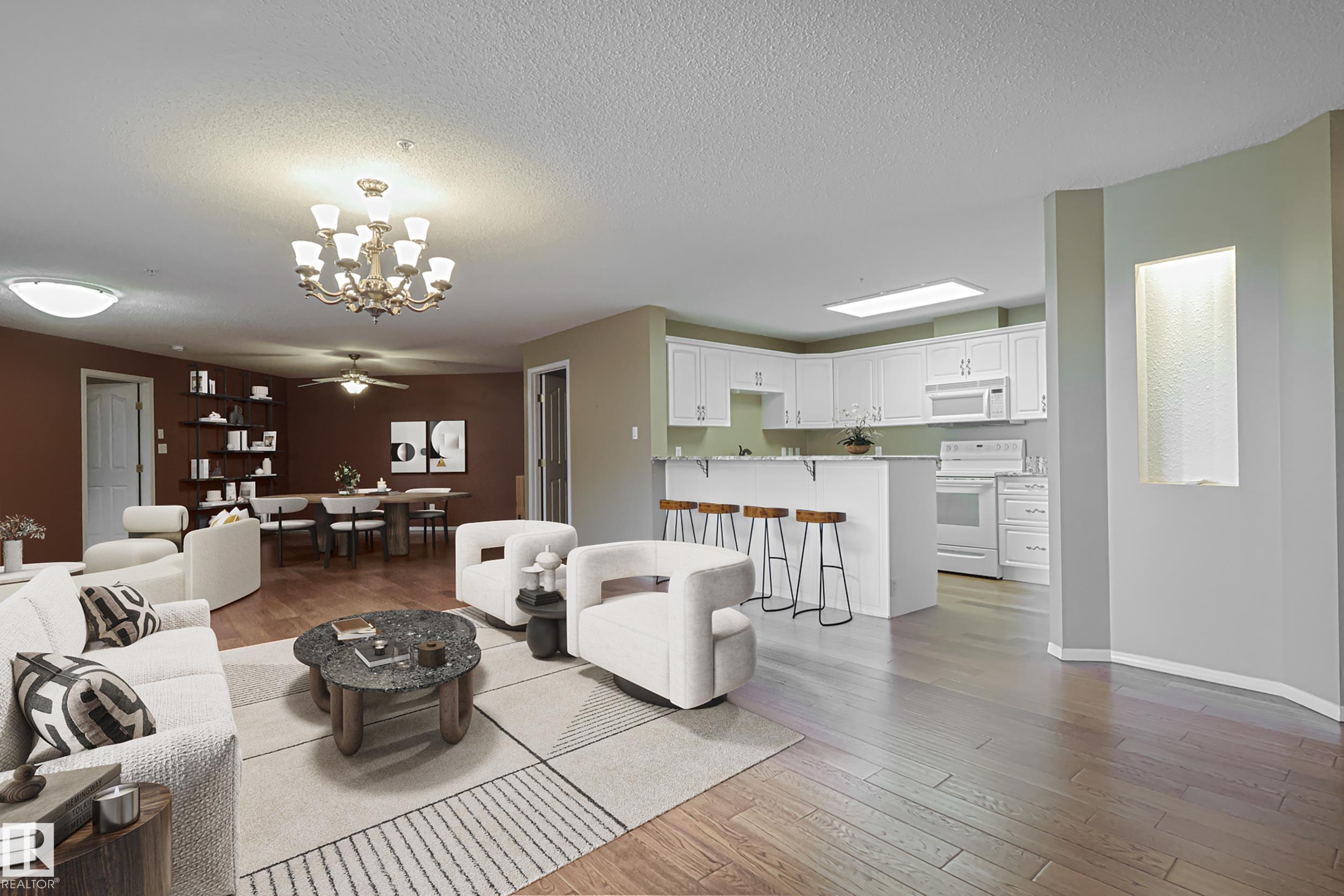 Don't miss this exceptional lakefront condominium at Foxhaven Grande! With 1,815 square feet (168.43 m²), it features three bedrooms, a den, a spacious living & dining room, and a primary suite with a walk-in closet and ensuite bathroom. The bright kitchen has granite countertops & a peninsula design with eating bar, while the great room showcases engineered hardwood flooring. Bedrooms 2 & 3 are located near the main bathroom with a new walk in jetted tub. Enjoy stunning lake views from the large balcony, take advantage of in-suite laundry & storage, and central air conditioning! Building amenities include a gym, library, party room, pool table, shuffleboard & ping pong. Enjoy nature walks along the Heritage Trail too! This unit comes with 2 heated underground parking stalls and a storage cage. Foxhaven Grande is pet friendly, 1 cat or one dog allowed (no larger than 15" at shoulder) . 55+ Age restriction, non smoking building. Condo fees: $1028/monthly, includes heat, power & more. (Virtually staged).