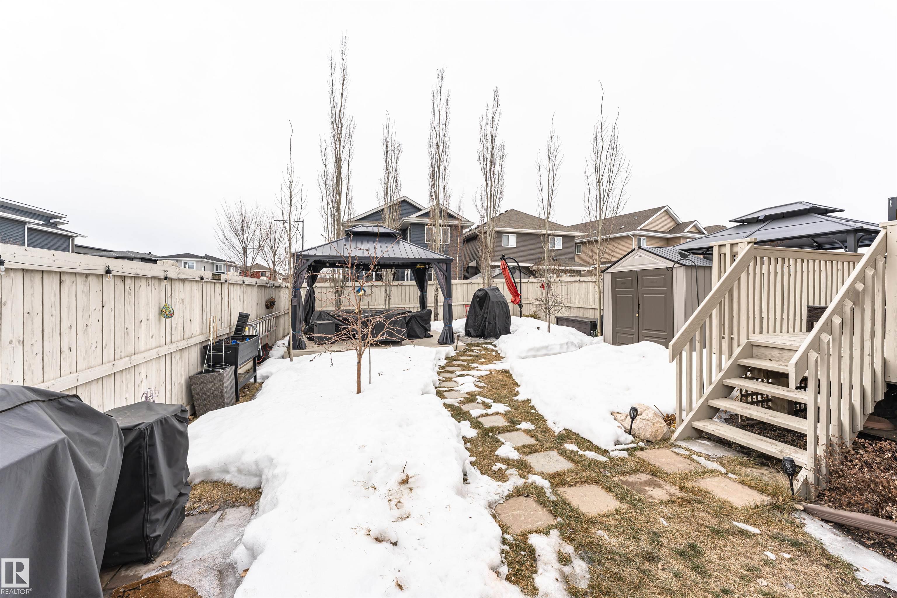 ABSOLUTLY STUNNING 1/2 DUPLEX! This charming well looked after 1872 total sq. ft. home is located on a corner lot in the sought-after SCHONSEE neighborhood, close to the Anthony Henday and all amenities. This spotless well maintained home features 9-foot ceilings & gorgeous hardwood floors on both the main and upper levels. California knockdown ceilings add a stylish touch, while the bright, open kitchen offers granite countertops & a spacious walk-in pantry. Patio doors with roll shutters lead to a sunny deck & a beautifully landscaped backyard. The living rm features a cozy gas fireplace with plenty of windows that fill the space with natural light. Upstairs, you?ll find a convenient laundry area, lrg primary bedroom with 4-piece ensuite & walk-in closet, plus roomy second bdrms with possibility of a 3rd. The fully finished basement includes lino flooring, a full 4-piece bathroom huge family room & storage/utility. Outside is the fully fenced yard, a single attached garage & plenty of street parking!