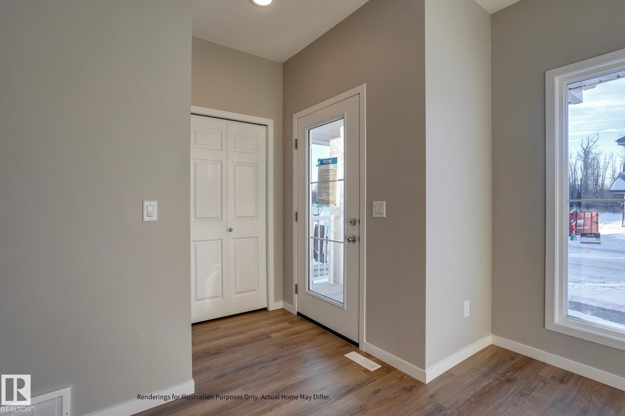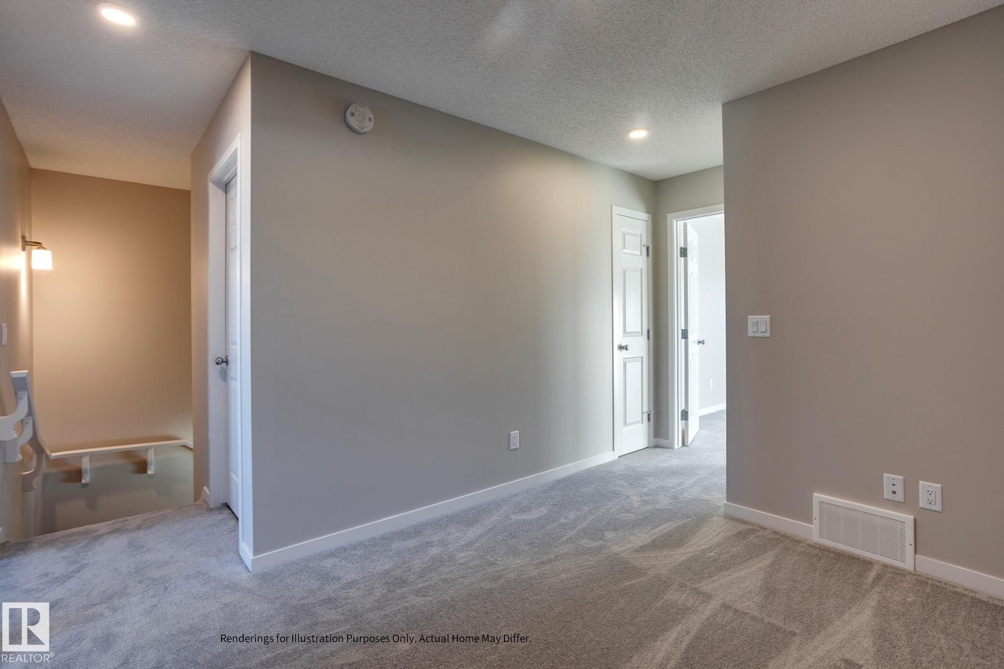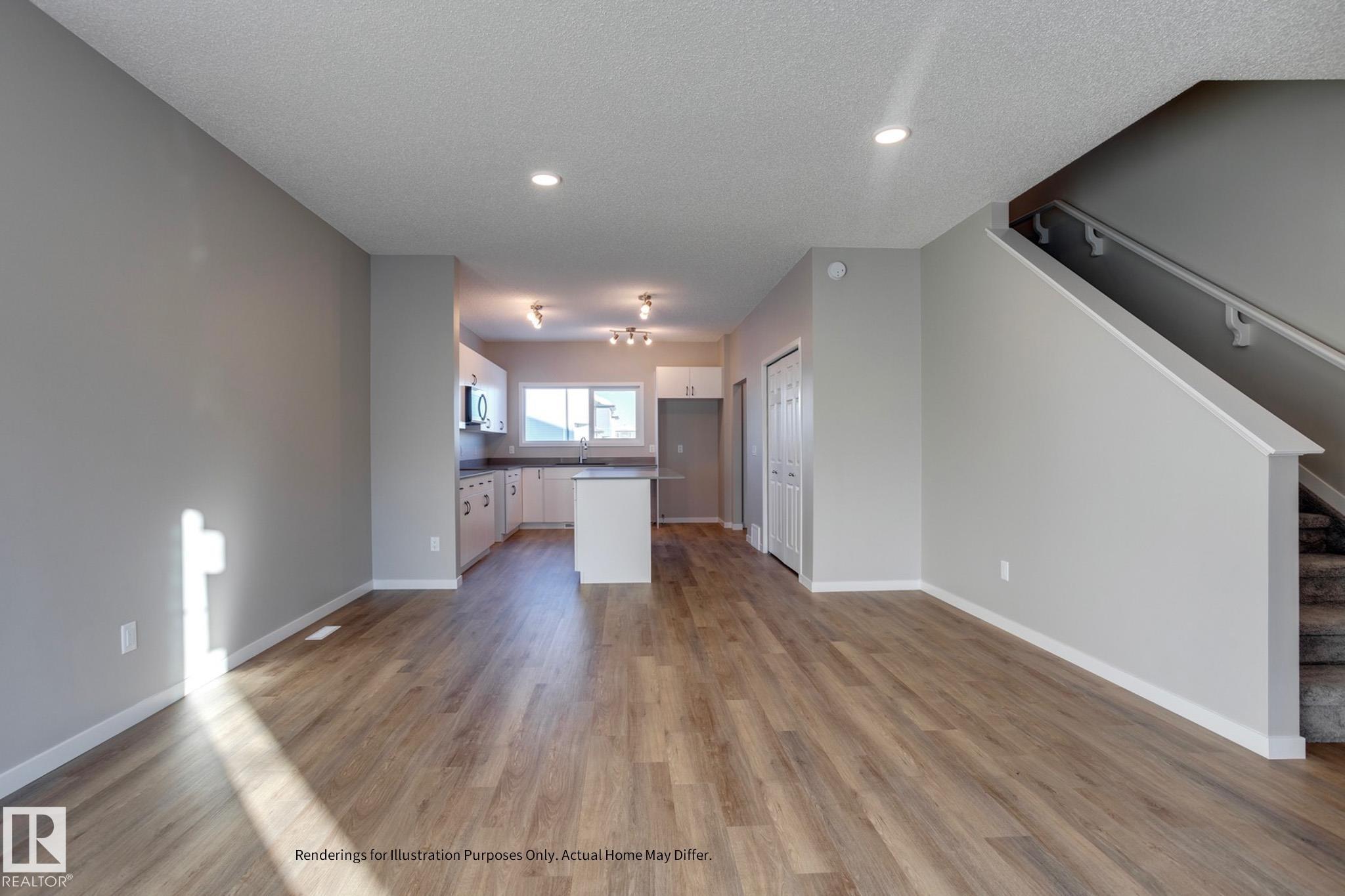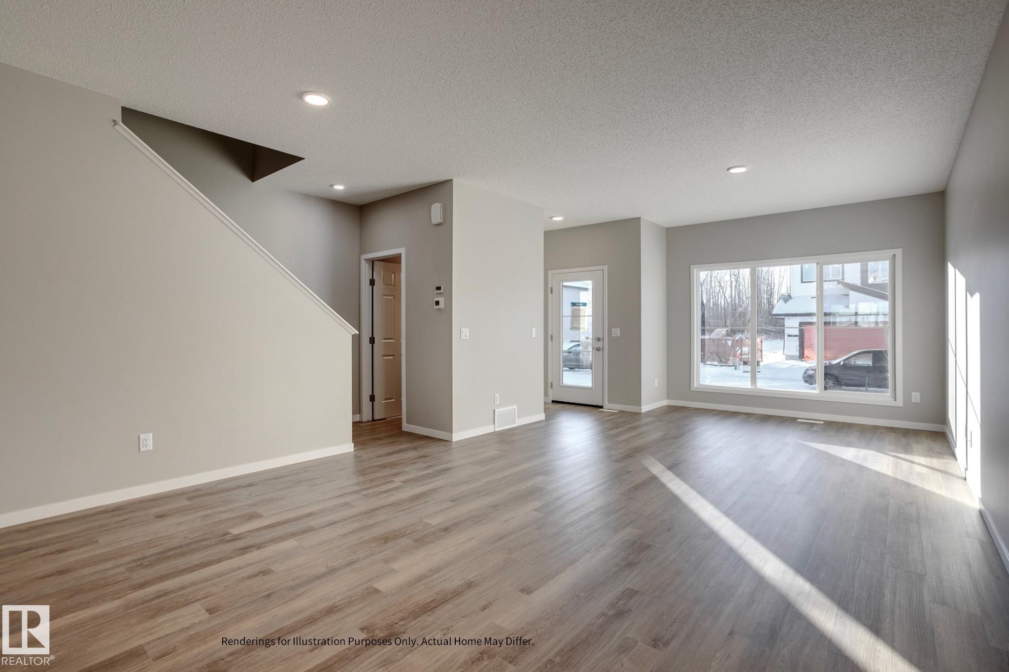 Built by Sterling Homes, this bright laned home in McConachie offers modern comfort near schools, parks, and amenities. Triple-pane windows and 9? ceilings fill the open main floor with light. The kitchen features quartz countertops, island seating, upgraded cabinetry, tile backsplash, soft-close drawers, and a spacious pantry, while a rear dining nook and half bath add function. Upstairs, the primary suite features a walk-in closet and a 3-piece en-suite, as well as two bedrooms, a full bath, laundry facilities, and a loft. Complete with vinyl plank flooring, side entrance, parking pad, and basement rough-ins.