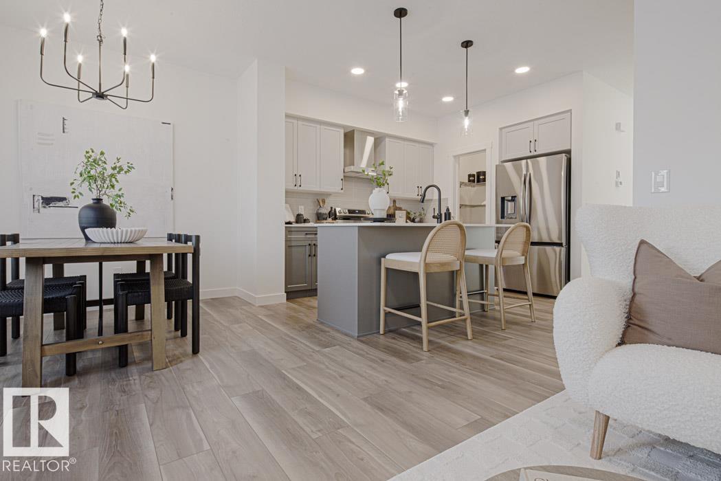 Built by Sterling Homes, this bright, thoughtfully designed duplex in Aster offers modern comfort in a growing southeast community near parks, schools, and shopping. Triple pane windows and 9? ceilings fill the main floor with light. A welcoming foyer leads to an open layout with a stylish kitchen featuring quartz counters, island seating, upgraded cabinets, tile backsplash, corner pantry, and built-in microwave. The dining nook opens to the backyard. Upstairs offers a bonus room, upper laundry, full bath, two bedrooms, and a primary suite with walk-in closet and 3-piece ensuite. Double garage and side entry included.