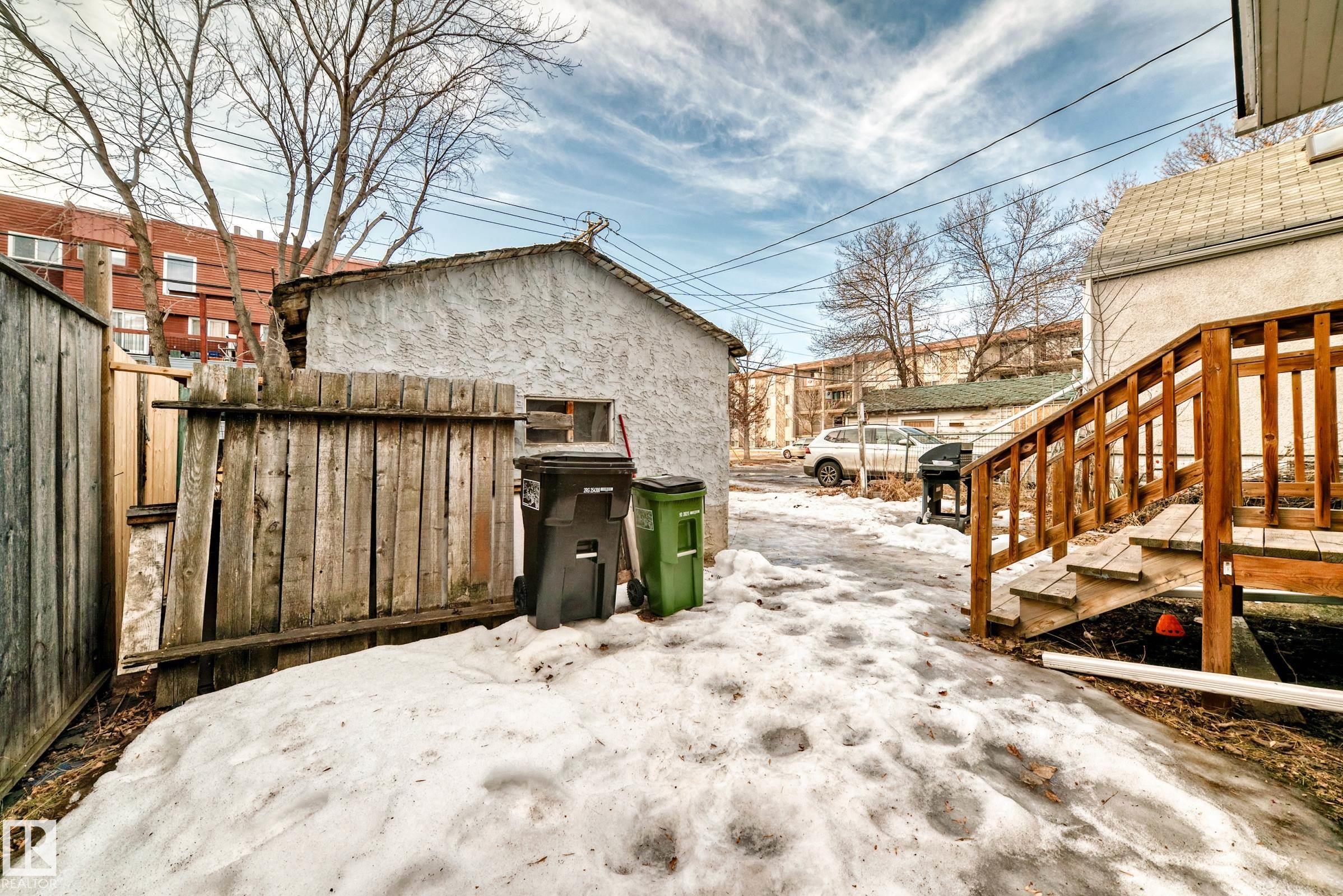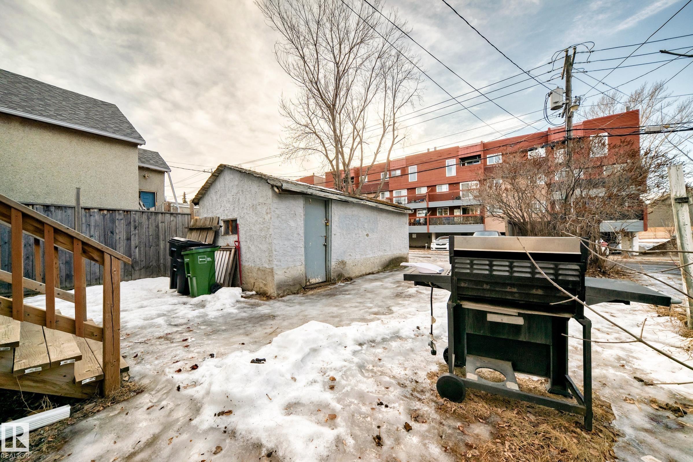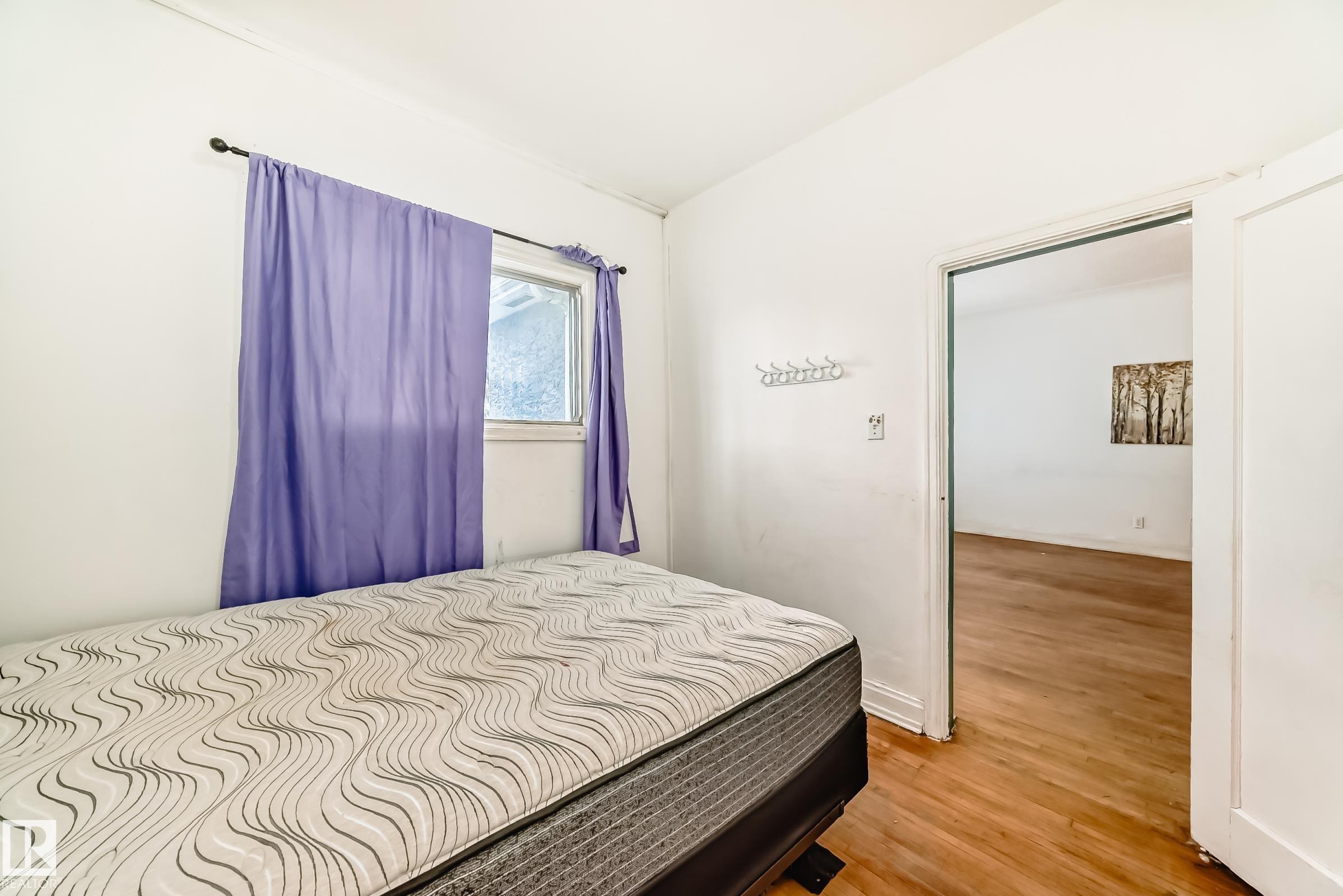 Investors & starter home buyers' alert! Build your own equity! Live in or rent it. Welcome to this lovely bungalow single detached house situated across from a park & near the river valley! Main floor greets you with bright living room and hardwood floorings throughout. kitchen offers white-color cabinets, ceramic tile floorings adjacent to eating area. 2 sizable bedrooms & a 4pc bathroom. Good-sized yard where you can relax and enjoy with back lane to a single detached garage. Easy access to public transportation, playground, school, downtown, Royal Alex Hospital, Kingsway Garden Mall & all amenities. Come check this out and make this house YOURS!