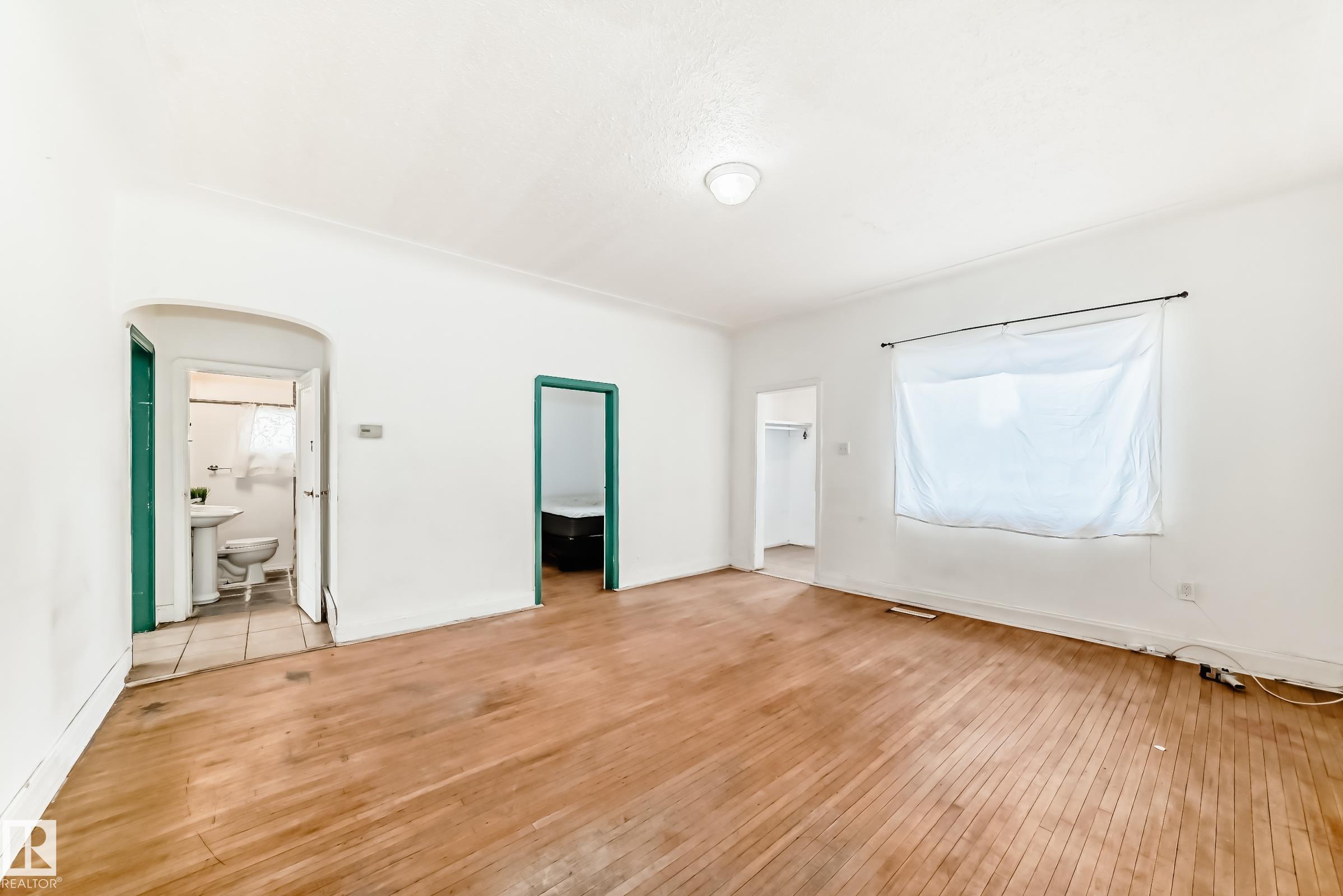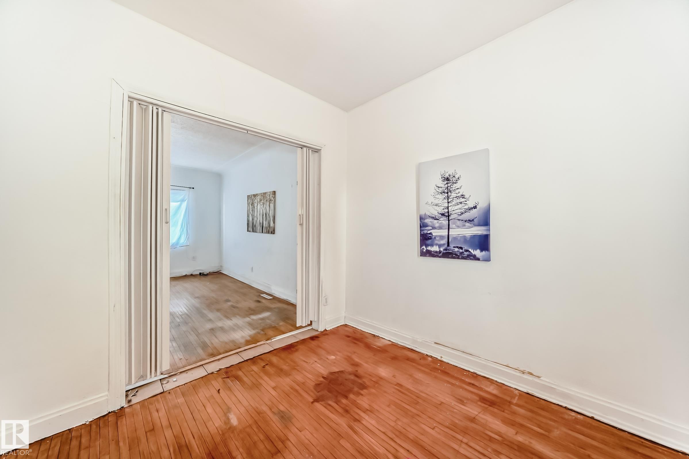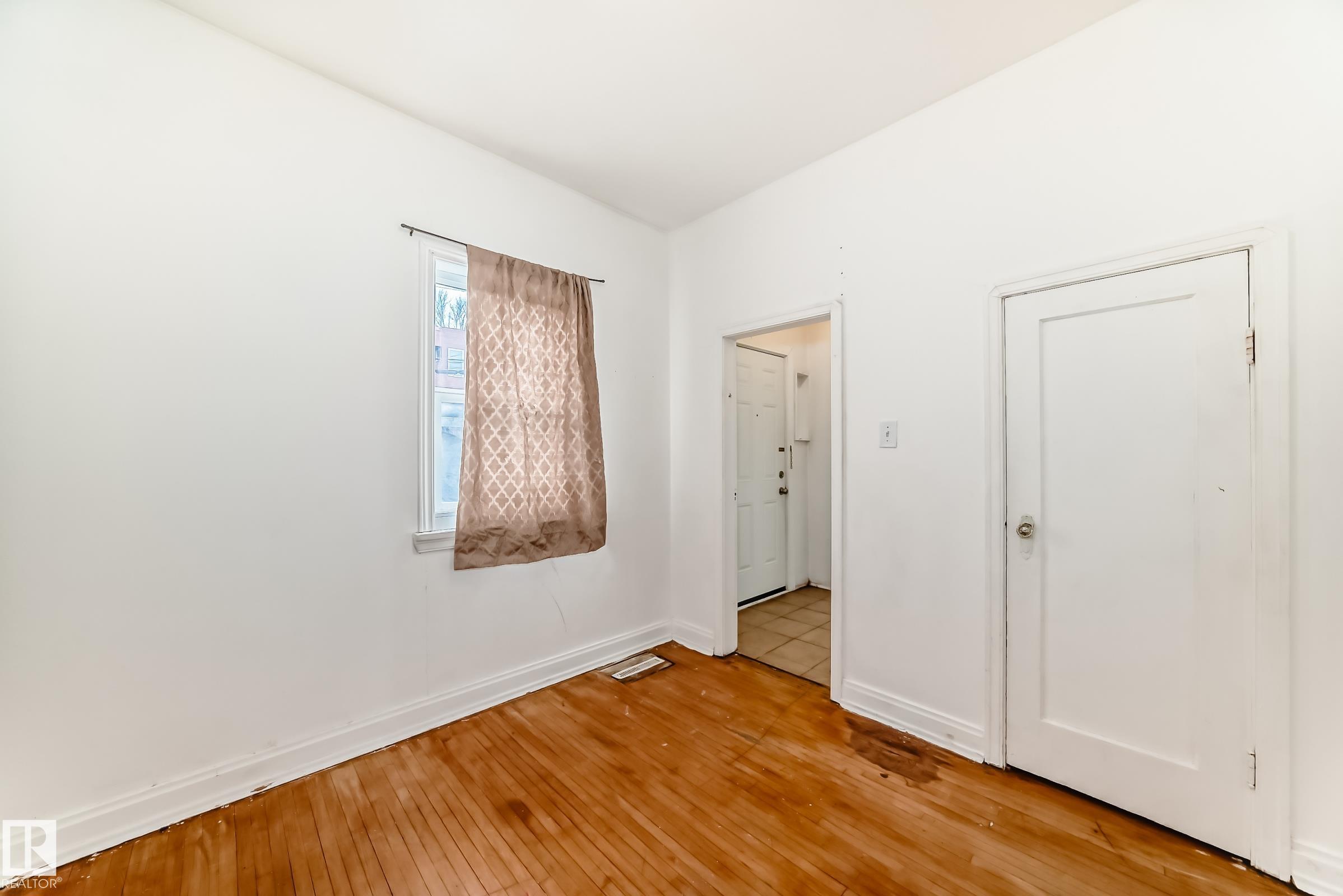 Investors & starter home buyers' alert! Build your own equity! Live in or rent it. Welcome to this lovely bungalow single detached house situated across from a park & near the river valley! Main floor greets you with bright living room and hardwood floorings throughout. kitchen offers white-color cabinets, ceramic tile floorings adjacent to eating area. 2 sizable bedrooms & a 4pc bathroom. Good-sized yard where you can relax and enjoy with back lane to a single detached garage. Easy access to public transportation, playground, school, downtown, Royal Alex Hospital, Kingsway Garden Mall & all amenities. Come check this out and make this house YOURS!