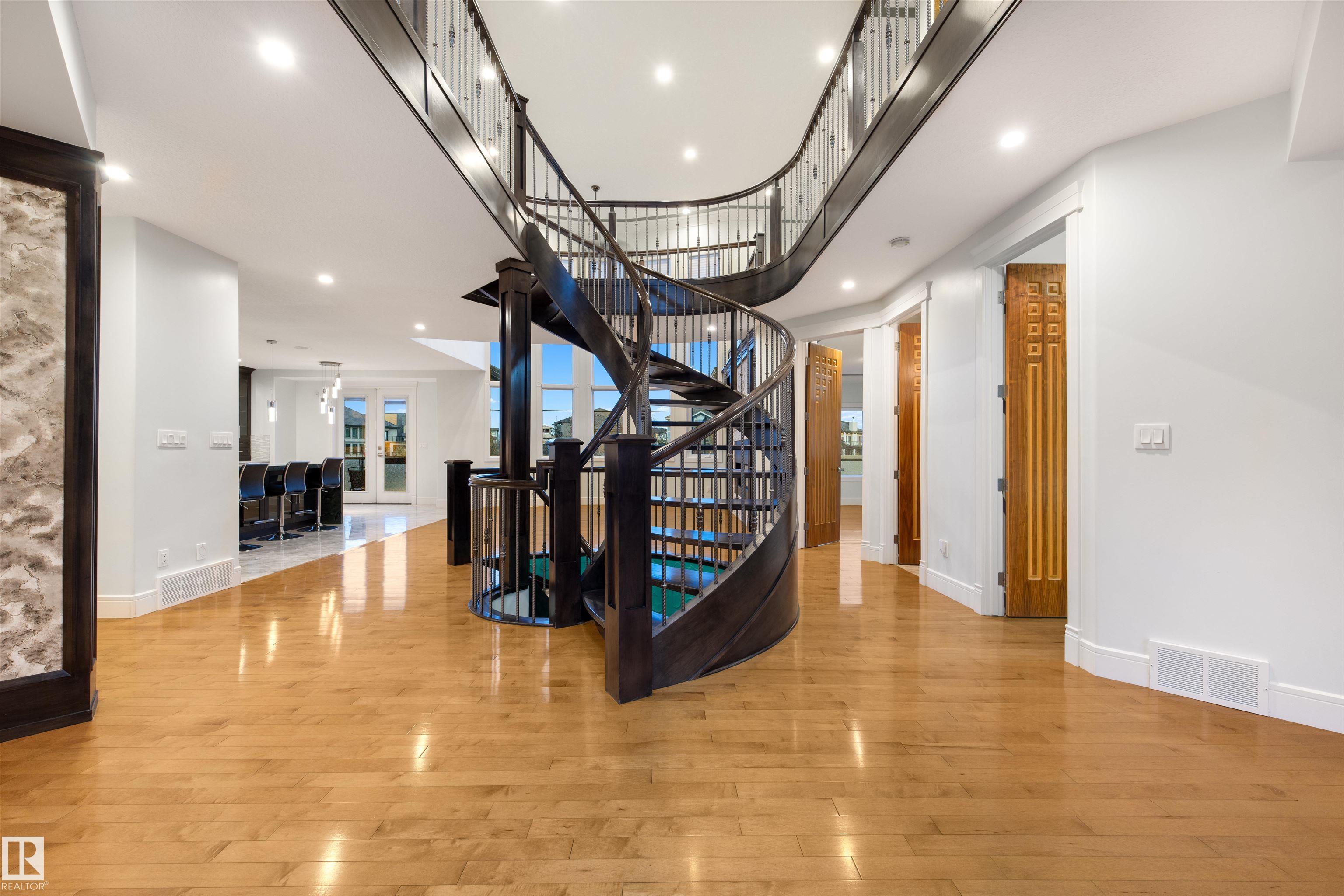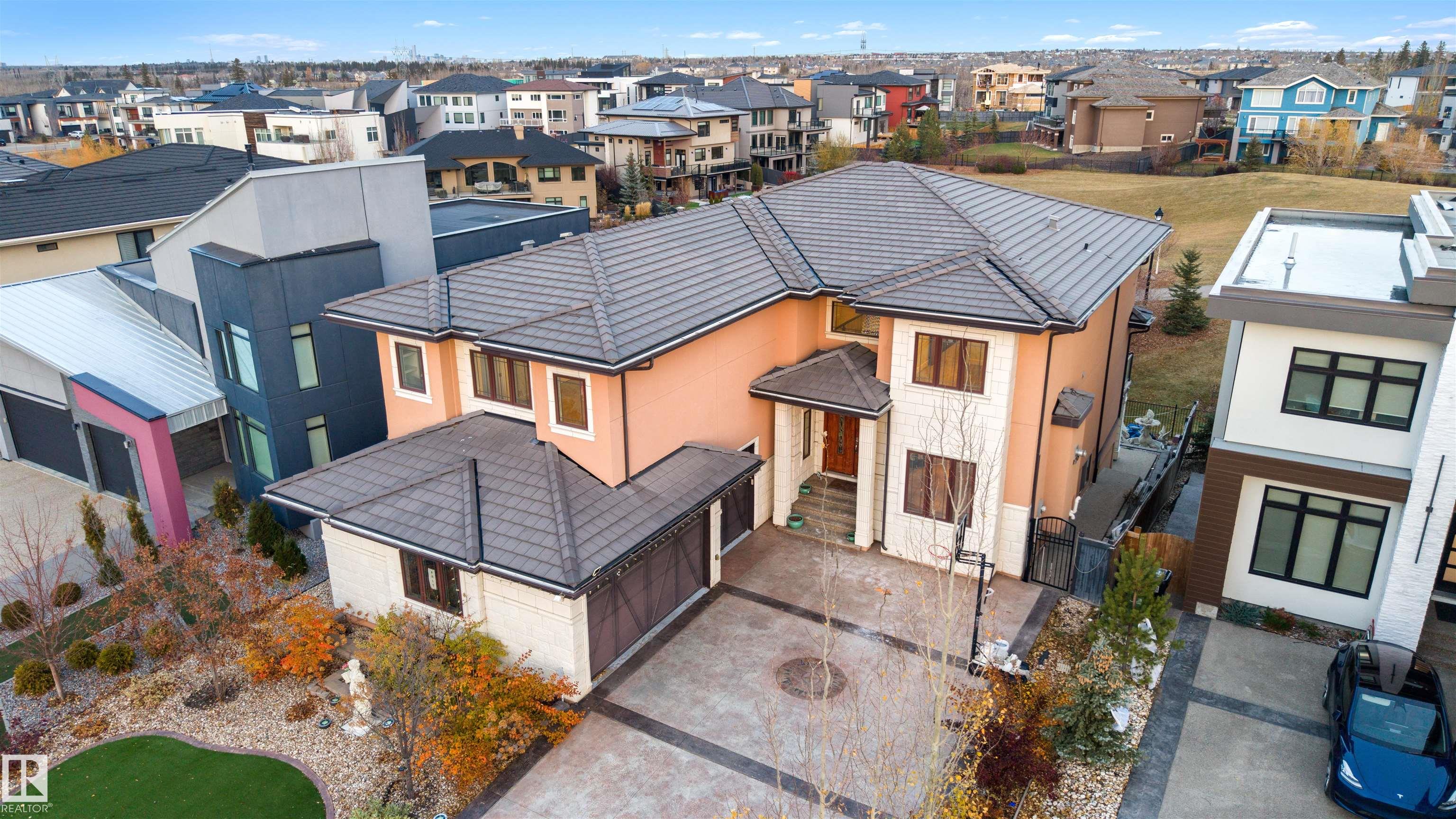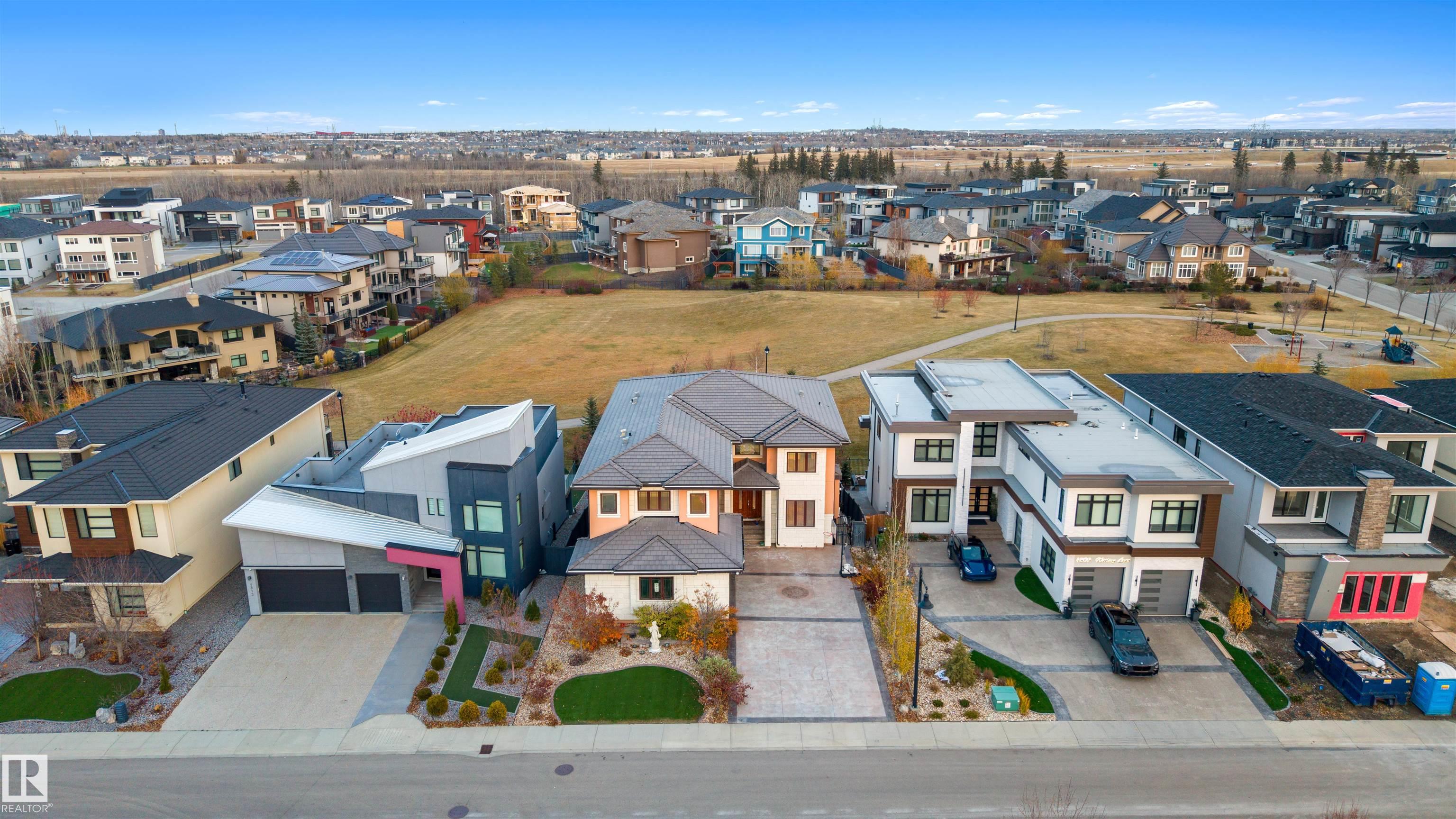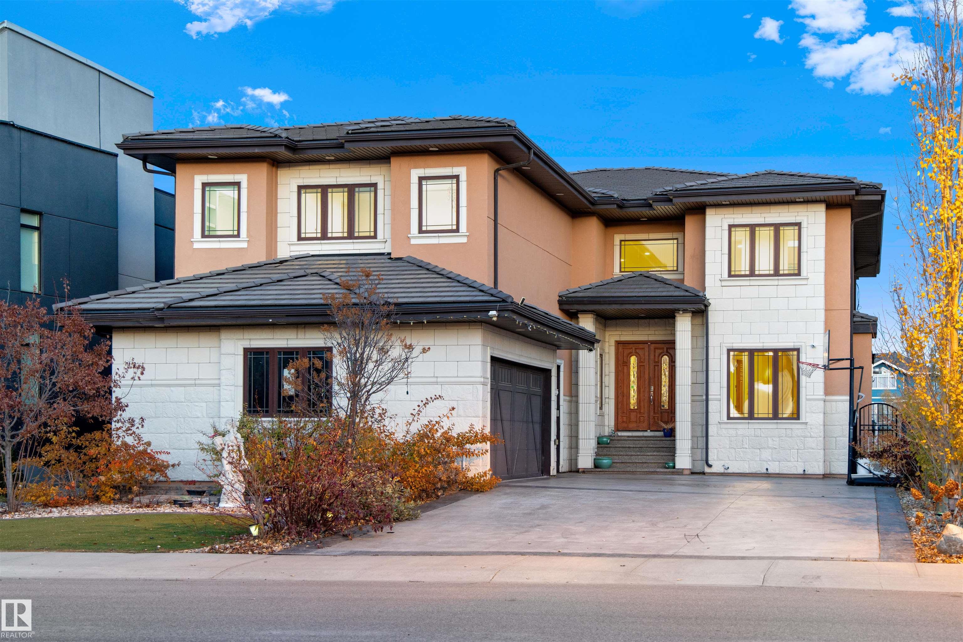 Exquisite WALKOUT ESTATE in prestigious WESTPOINTE OF WINDERMERE, offering 6,152 sq.ft. of living space and BACKING ONTO SERENE GREEN SPACE. This thoughtfully designed custom home features: spacious 6 bedrooms, 6 baths (including 5 en-suites) HEATED TRIPLE GARAGE, central A/C, high-end appliances, spice kitchen, elegant feature walls, open-to-above living area, formal dining & living rooms, BALCONY, HEATED BASEMENT FLOOR, incl. a main-floor bedroom with full bath. The upper level includes: a bonus room overlooking the park and a luxurious primary suite with spa-style ensuite, jacuzzi, fireplace, and steam shower. The walkout lower level is designed for entertainment with a large recreation room, gym/bedroom, theatre room, full bath, and access to a covered patio. Fully landscaped with statues and a fountain, this exceptional home combines elegance, comfort, and craftsmanship!