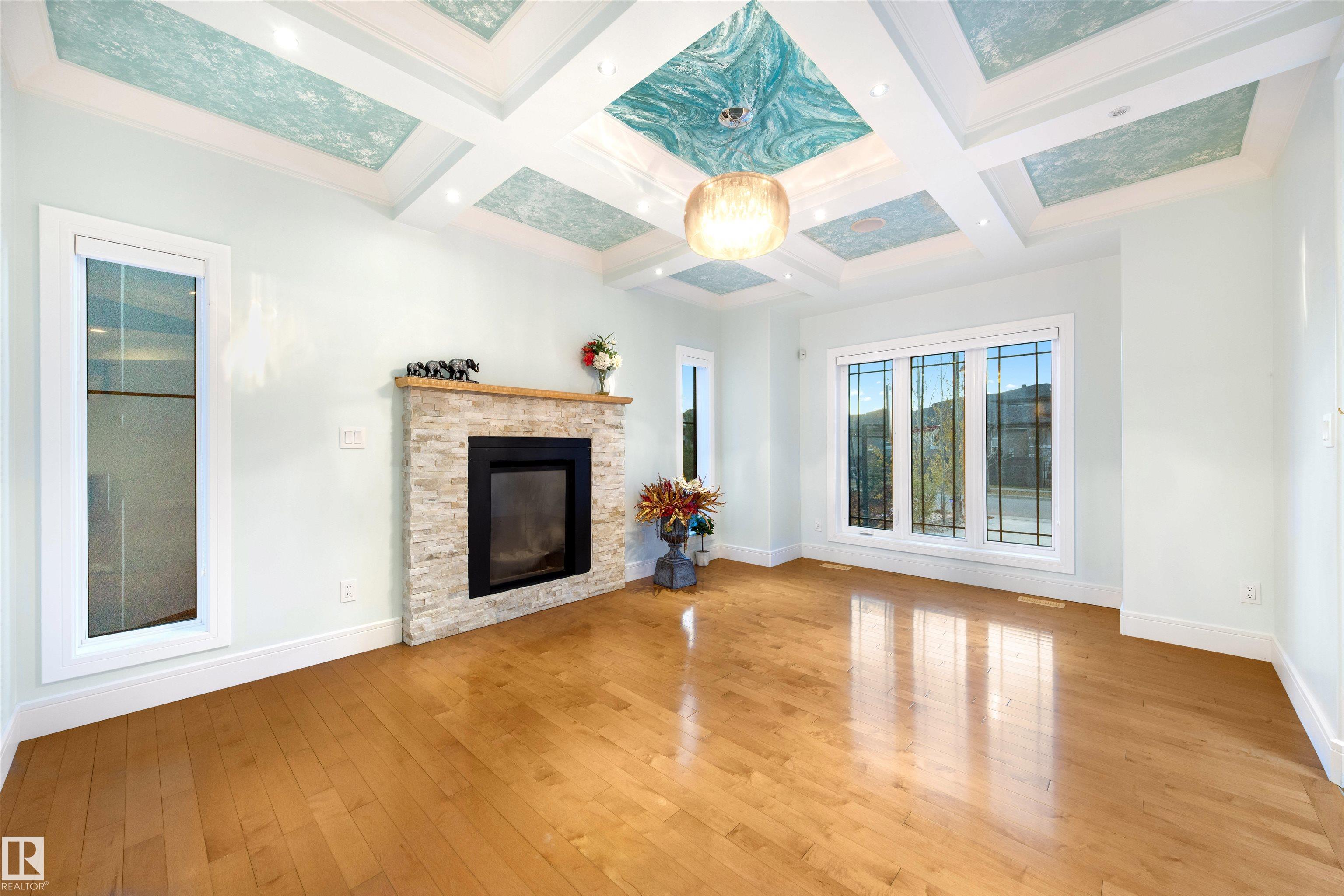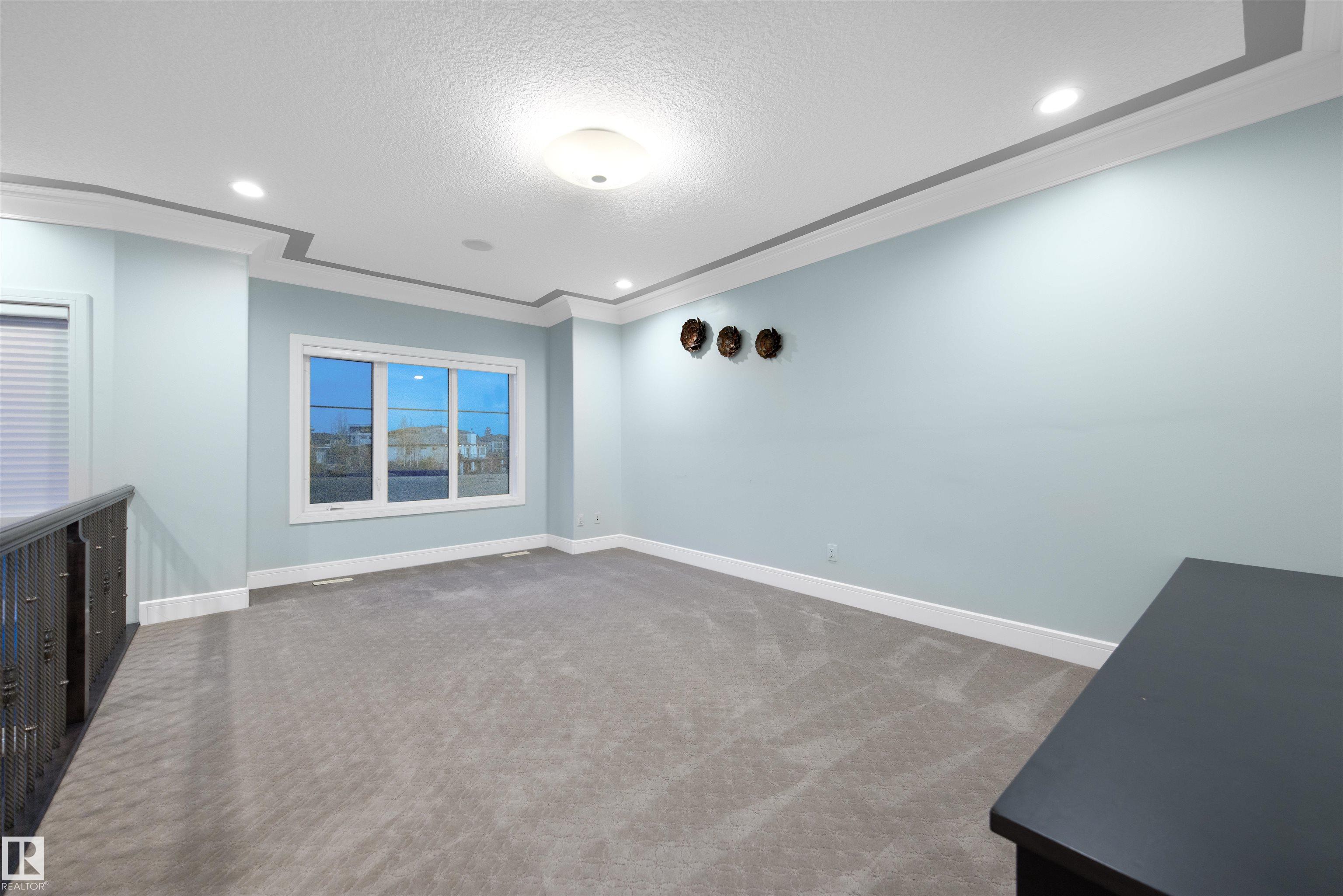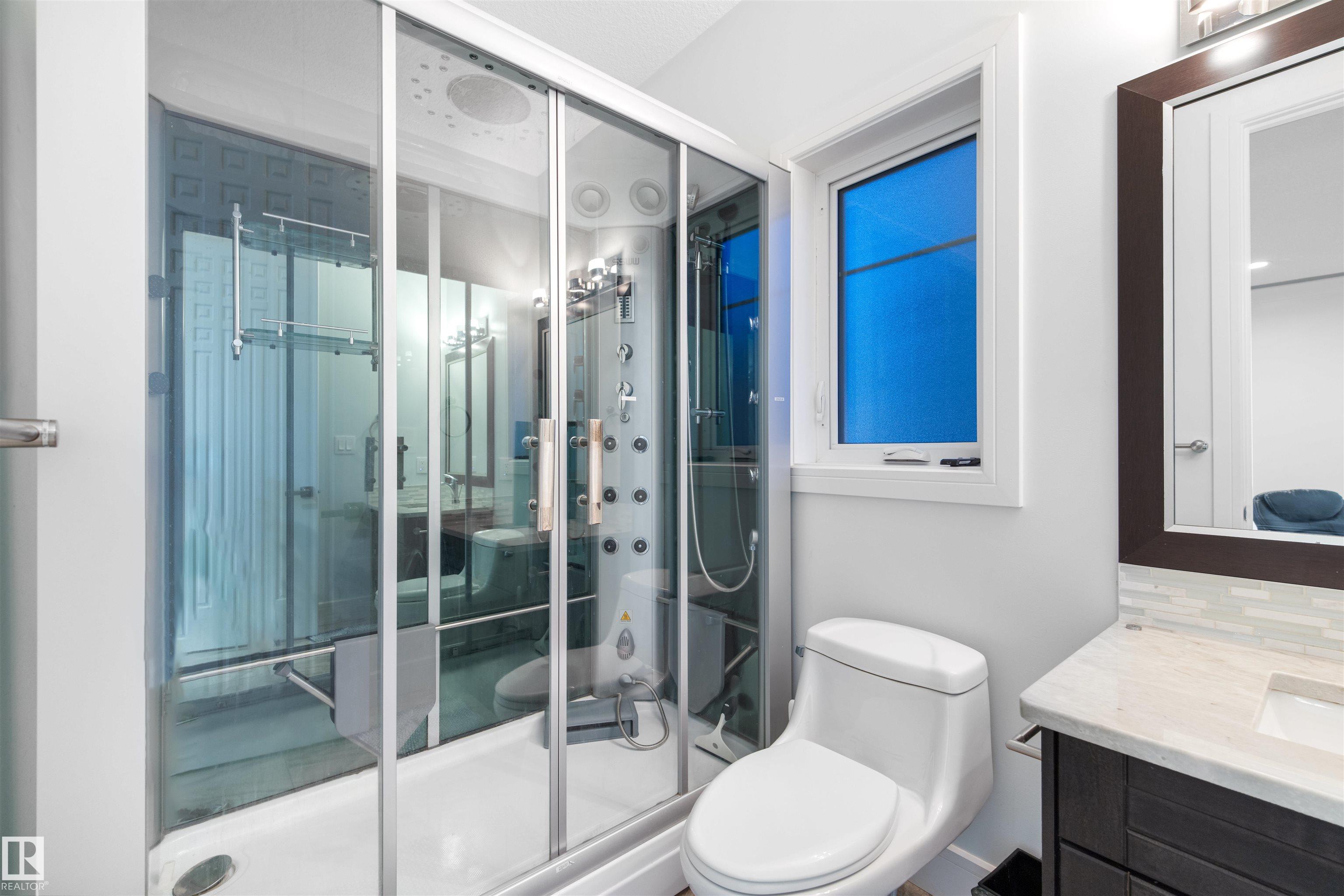 Exquisite WALKOUT ESTATE in prestigious WESTPOINTE OF WINDERMERE, offering 6,152 sq.ft. of living space and BACKING ONTO SERENE GREEN SPACE. This thoughtfully designed custom home features: spacious 6 bedrooms, 6 baths (including 5 en-suites) HEATED TRIPLE GARAGE, central A/C, high-end appliances, spice kitchen, elegant feature walls, open-to-above living area, formal dining & living rooms, BALCONY, HEATED BASEMENT FLOOR, incl. a main-floor bedroom with full bath. The upper level includes: a bonus room overlooking the park and a luxurious primary suite with spa-style ensuite, jacuzzi, fireplace, and steam shower. The walkout lower level is designed for entertainment with a large recreation room, gym/bedroom, theatre room, full bath, and access to a covered patio. Fully landscaped with statues and a fountain, this exceptional home combines elegance, comfort, and craftsmanship!
