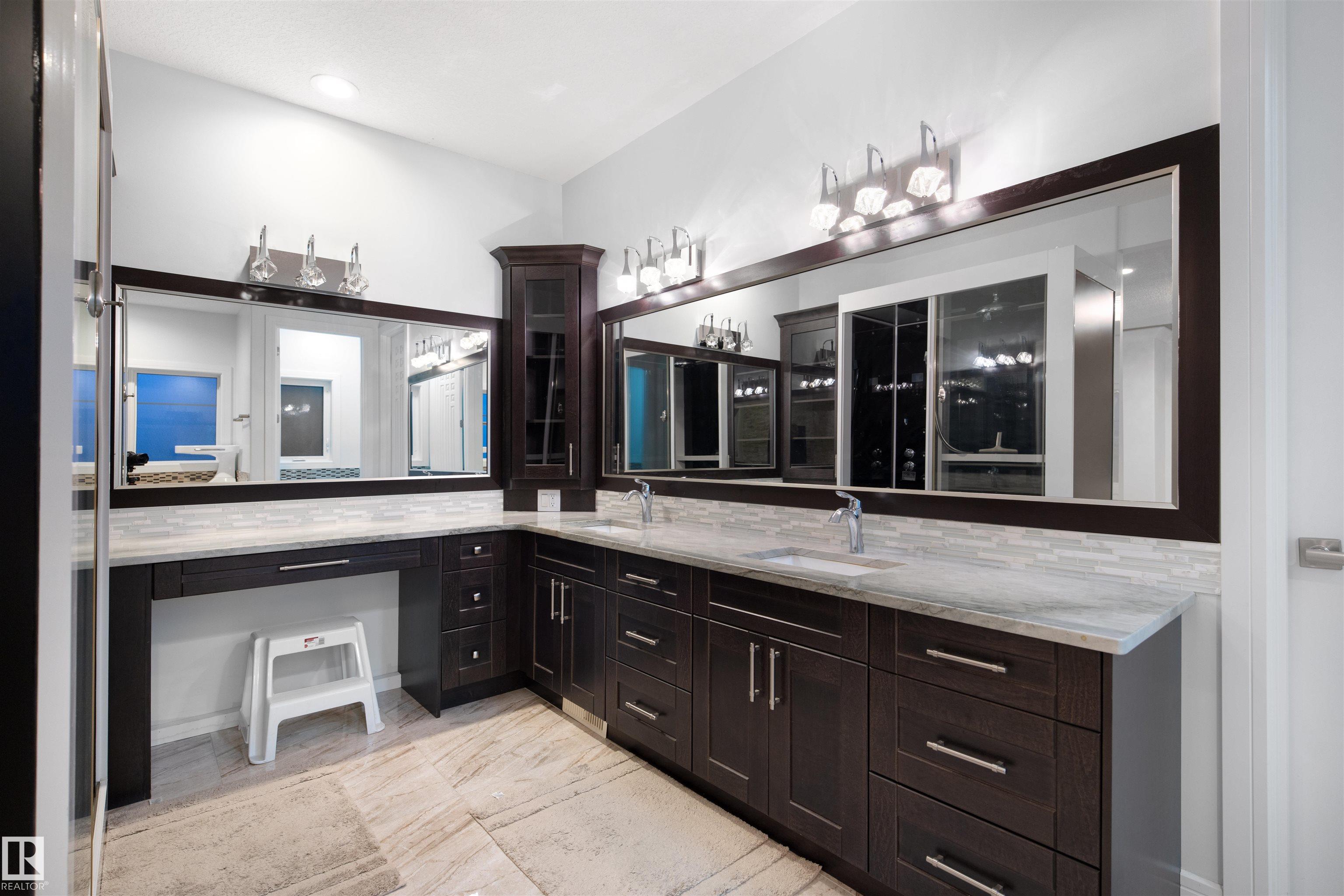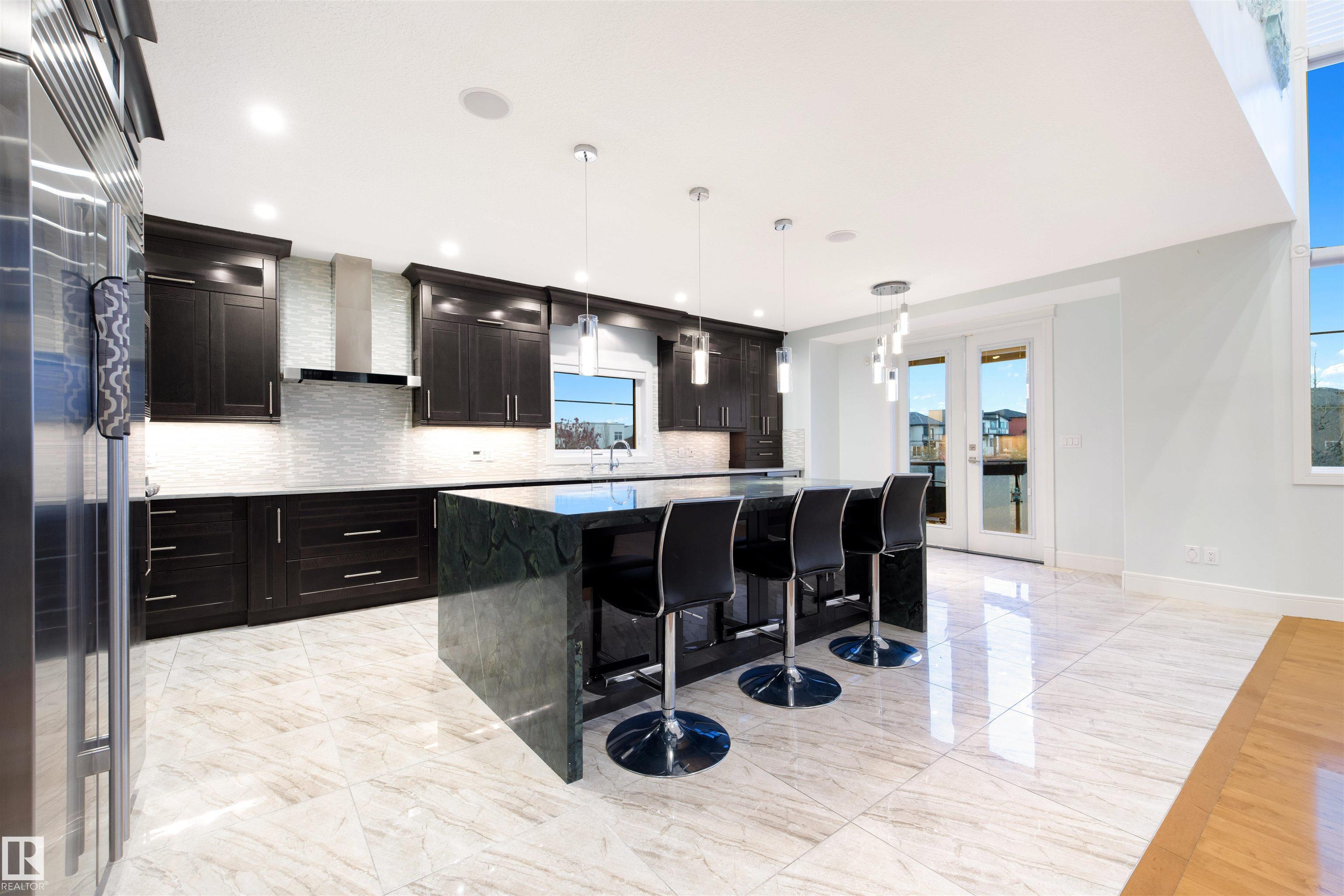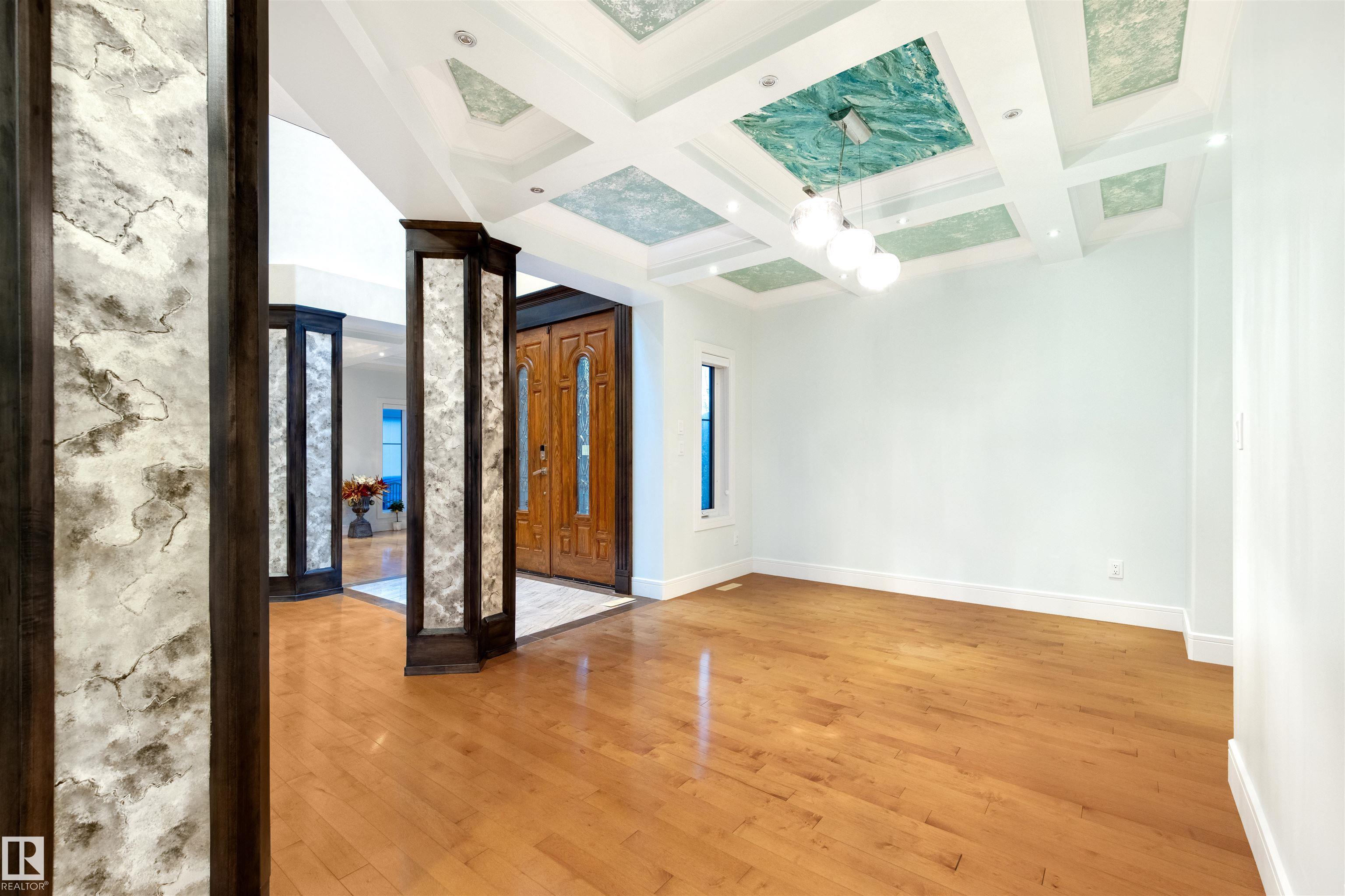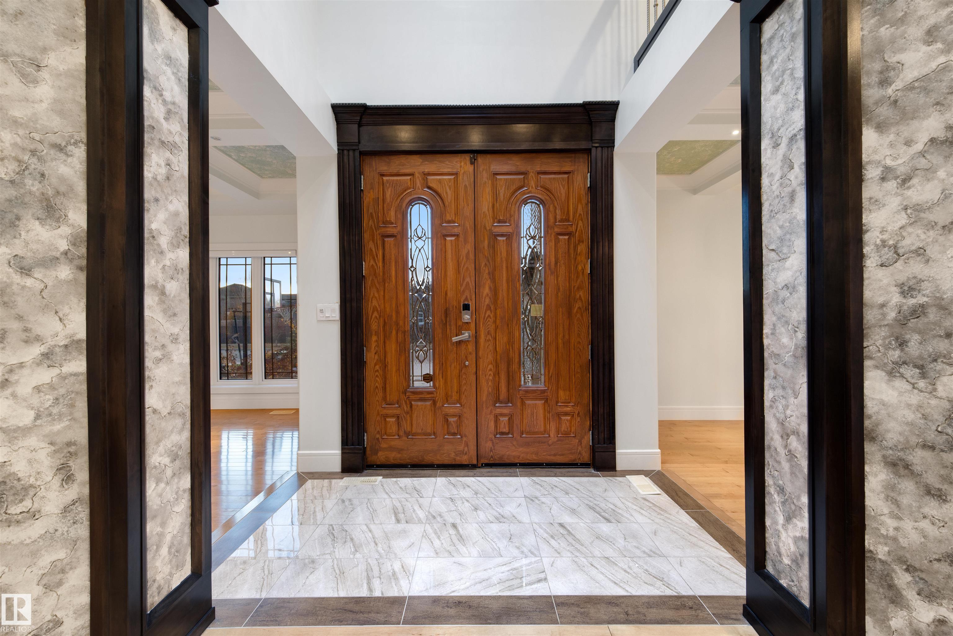 Exquisite WALKOUT ESTATE in prestigious WESTPOINTE OF WINDERMERE, offering 6,152 sq.ft. of living space and BACKING ONTO SERENE GREEN SPACE. This thoughtfully designed custom home features: spacious 6 bedrooms, 6 baths (including 5 en-suites) HEATED TRIPLE GARAGE, central A/C, high-end appliances, spice kitchen, elegant feature walls, open-to-above living area, formal dining & living rooms, BALCONY, HEATED BASEMENT FLOOR, incl. a main-floor bedroom with full bath. The upper level includes: a bonus room overlooking the park and a luxurious primary suite with spa-style ensuite, jacuzzi, fireplace, and steam shower. The walkout lower level is designed for entertainment with a large recreation room, gym/bedroom, theatre room, full bath, and access to a covered patio. Fully landscaped with statues and a fountain, this exceptional home combines elegance, comfort, and craftsmanship!
