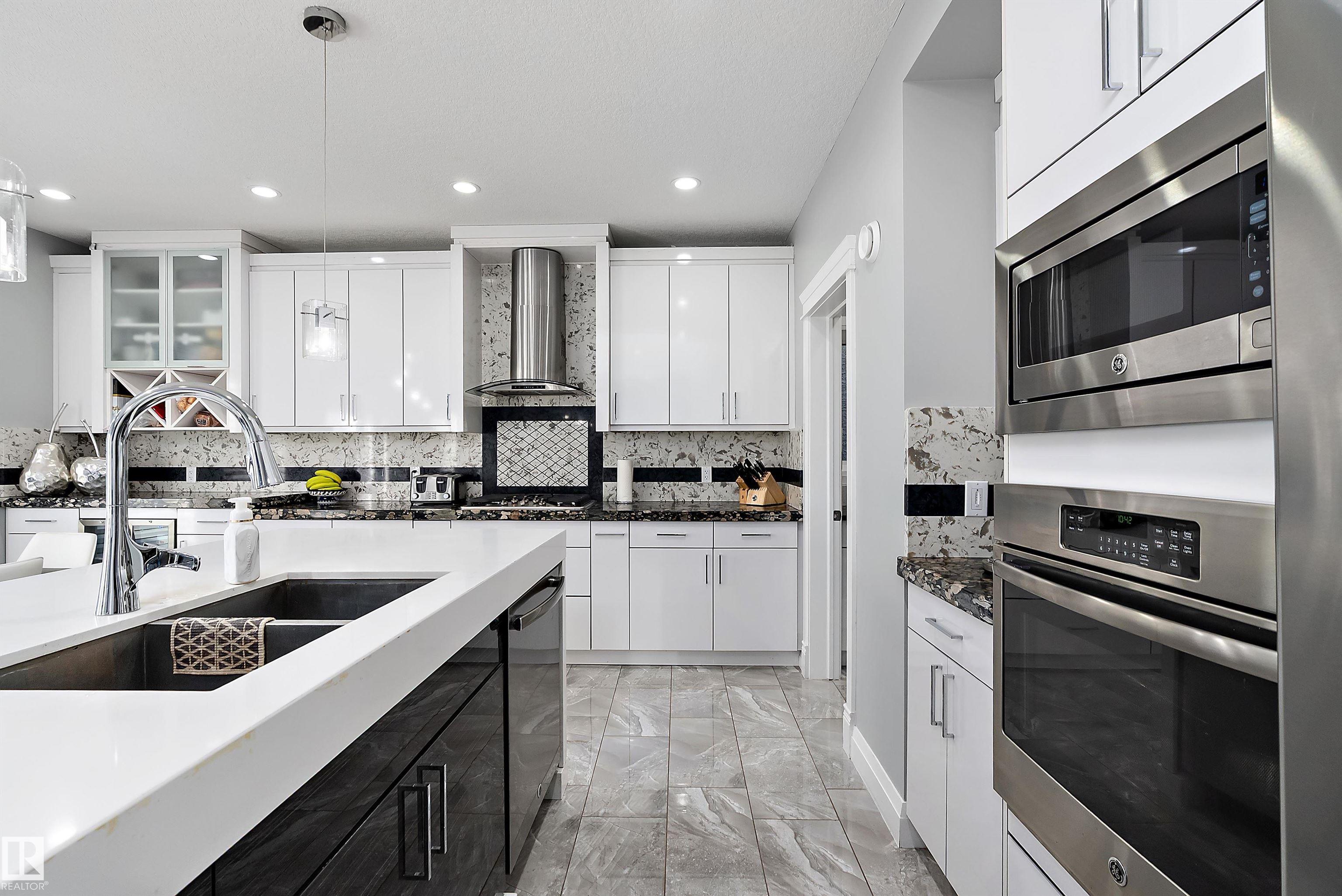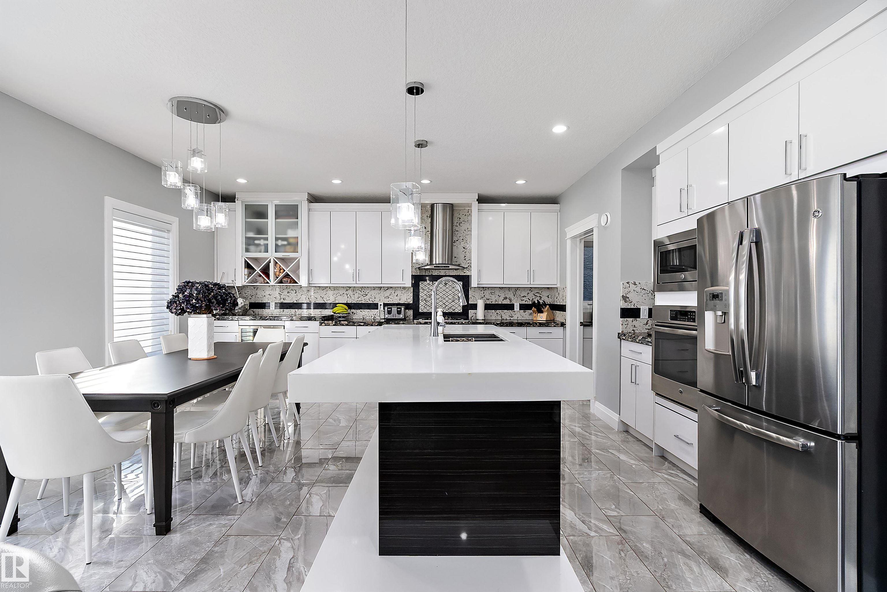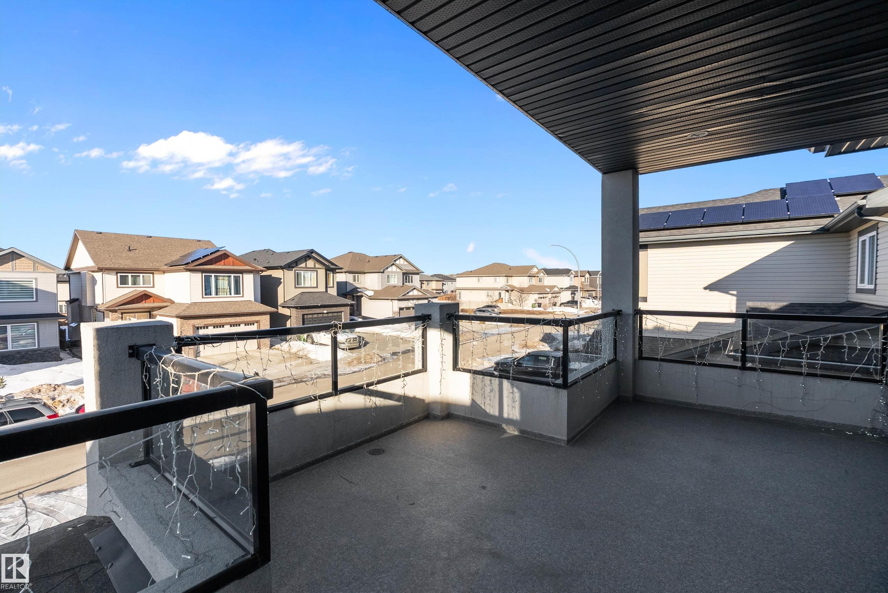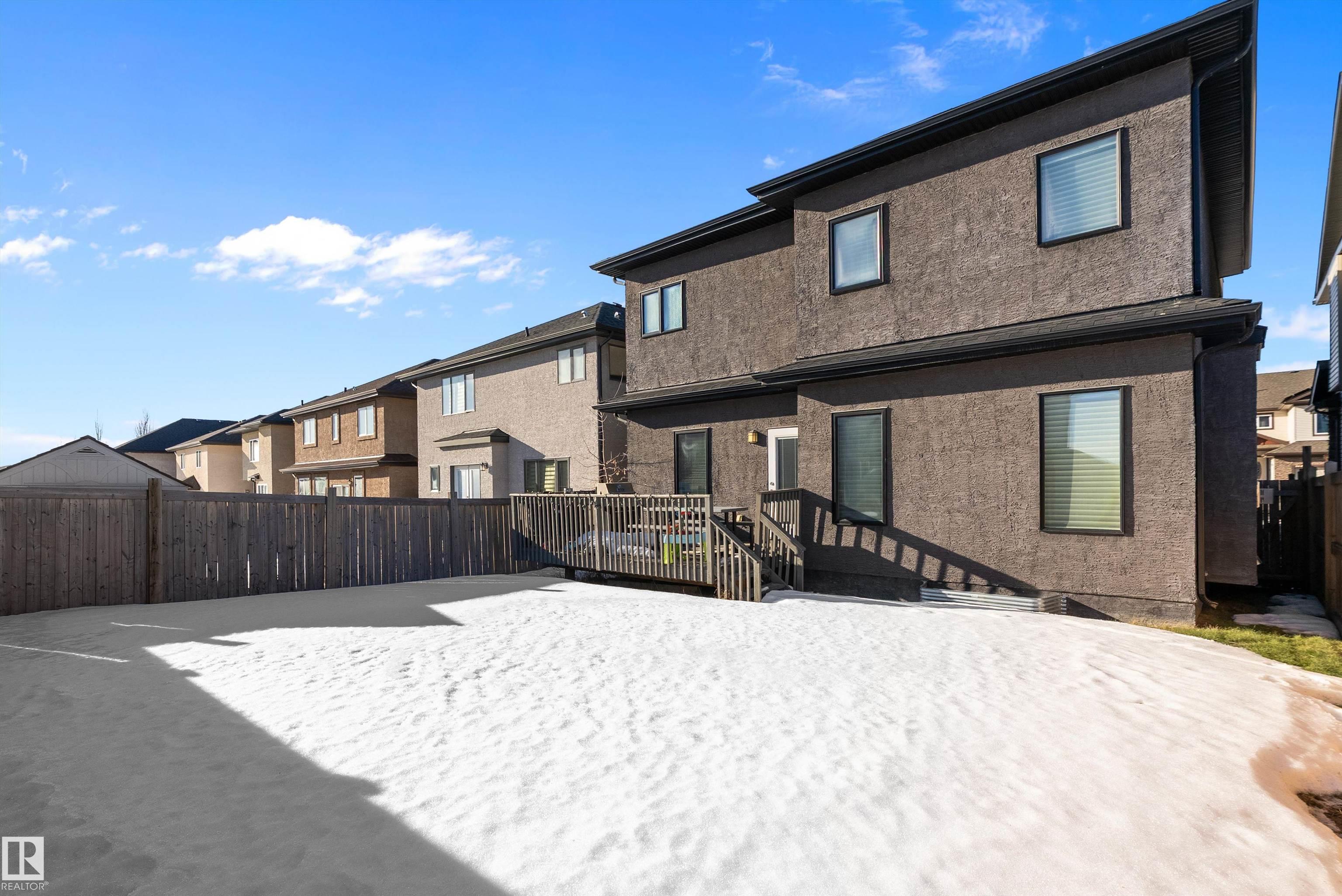 Located in the highly desired community of Oxford. This stunning, 2711 sqft modern home offers great curb appeal and grand entry. High ceilings and stylish light fixtures create a bright, welcoming atmosphere throughout. The kitchen features white cabinetry, sleek island, dining space, pantry and a separate spice kitchen, perfect for everyday cooking and entertaining. A separate entrance adds extra flexibility. The main floor includes a bedroom and full bathroom, ideal for guests or extended family, along with a laundry room complete with sink and storage. Upstairs offers a bonus room with a large balcony and 3 bedrooms, two with private ensuites. The primary bedroom includes double sinks, a soaker tub, and a walk-in closet. An additional 4-piece bathroom completes the upper level. Enjoy air conditioning, a double oversized heated garage that fits 3 vehicles, plus a large backyard and deck. Located close to the Anthony Henday, schools, shopping, parks, public transportation and all other major amenities.