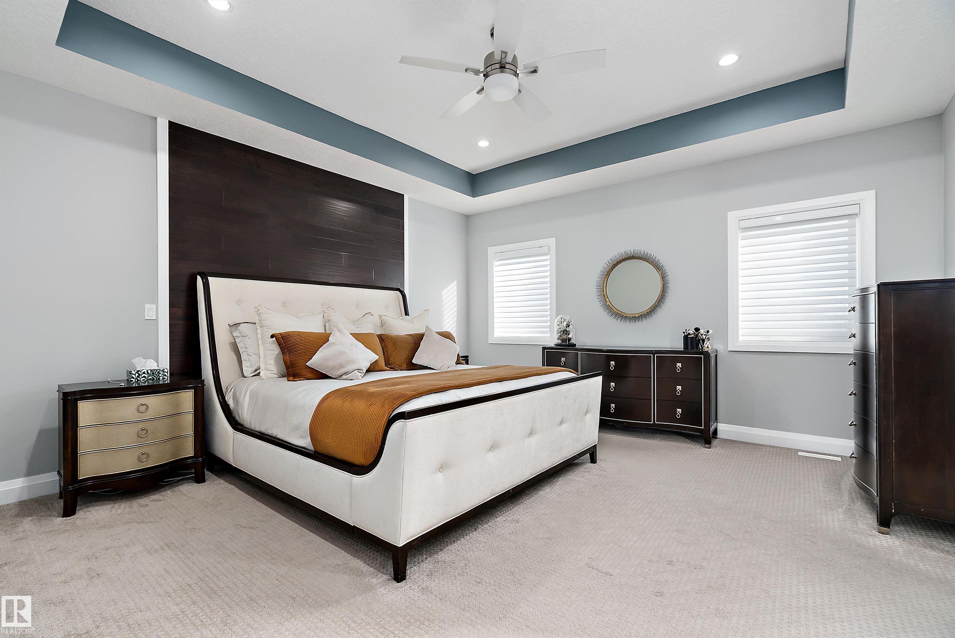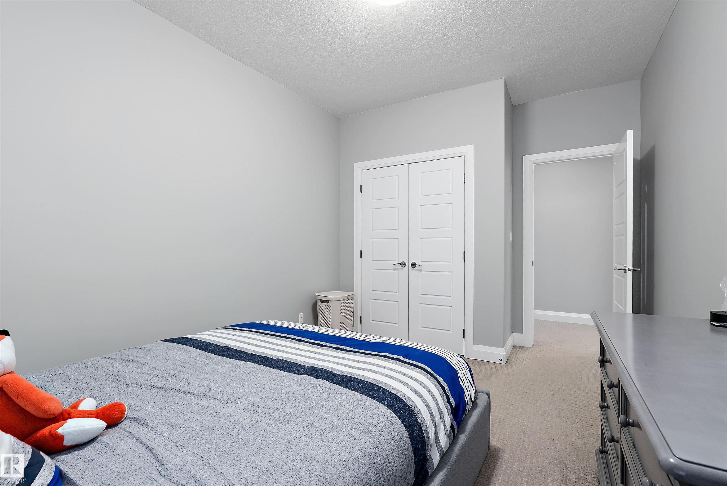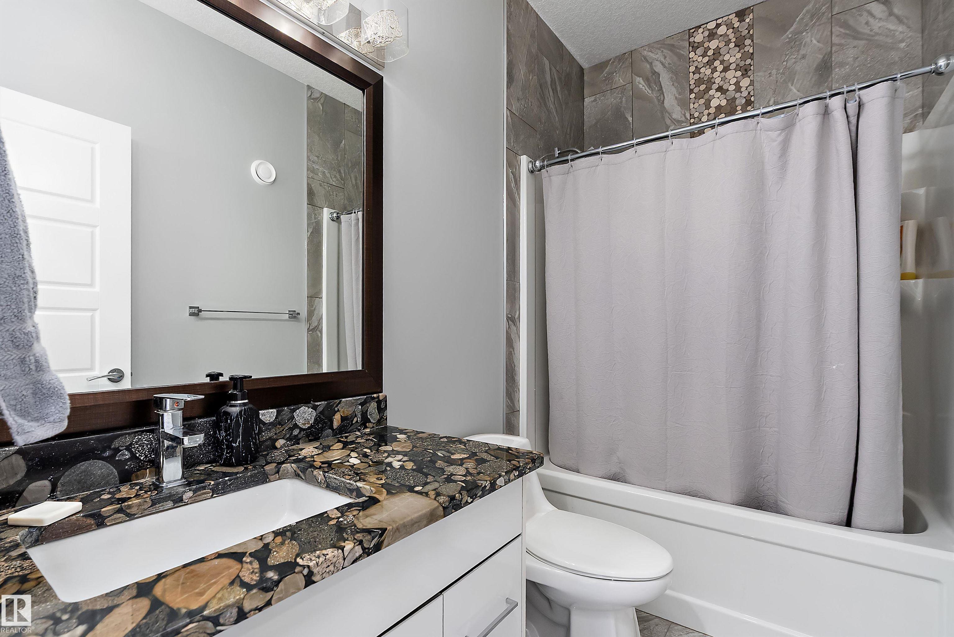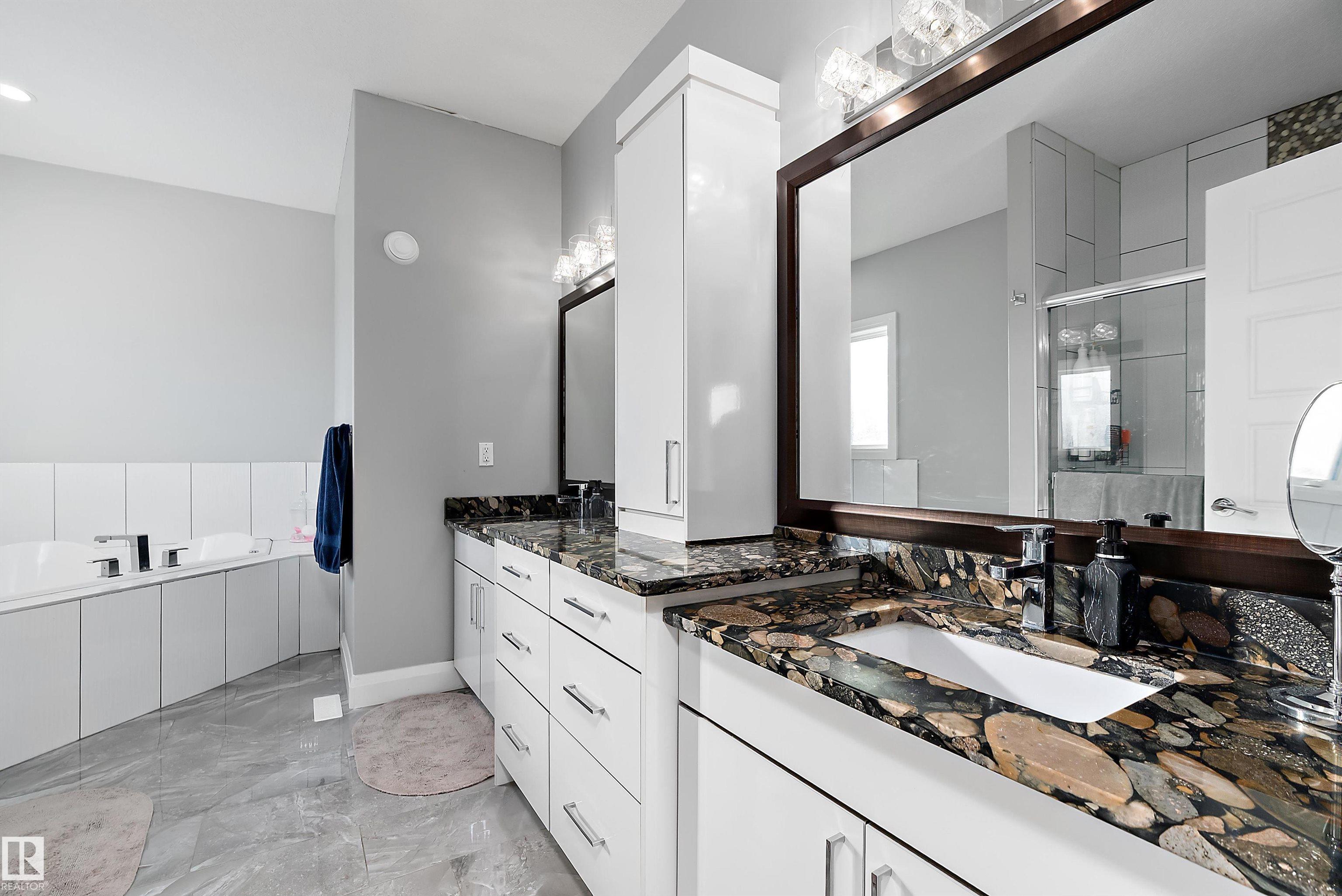 Located in the highly desired community of Oxford. This stunning, 2711 sqft modern home offers great curb appeal and grand entry. High ceilings and stylish light fixtures create a bright, welcoming atmosphere throughout. The kitchen features white cabinetry, sleek island, dining space, pantry and a separate spice kitchen, perfect for everyday cooking and entertaining. A separate entrance adds extra flexibility. The main floor includes a bedroom and full bathroom, ideal for guests or extended family, along with a laundry room complete with sink and storage. Upstairs offers a bonus room with a large balcony and 3 bedrooms, two with private ensuites. The primary bedroom includes double sinks, a soaker tub, and a walk-in closet. An additional 4-piece bathroom completes the upper level. Enjoy air conditioning, a double oversized heated garage that fits 3 vehicles, plus a large backyard and deck. Located close to the Anthony Henday, schools, shopping, parks, public transportation and all other major amenities.