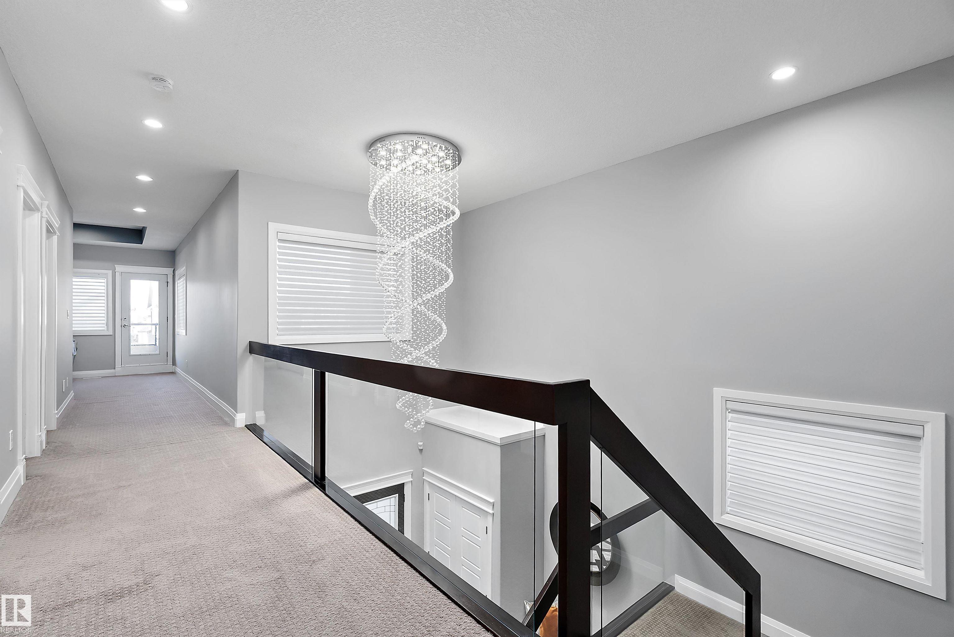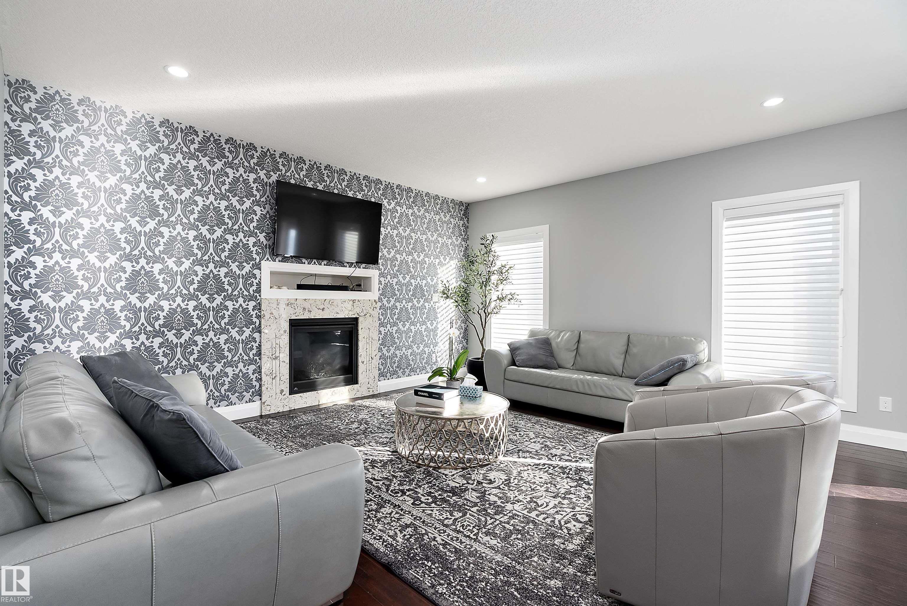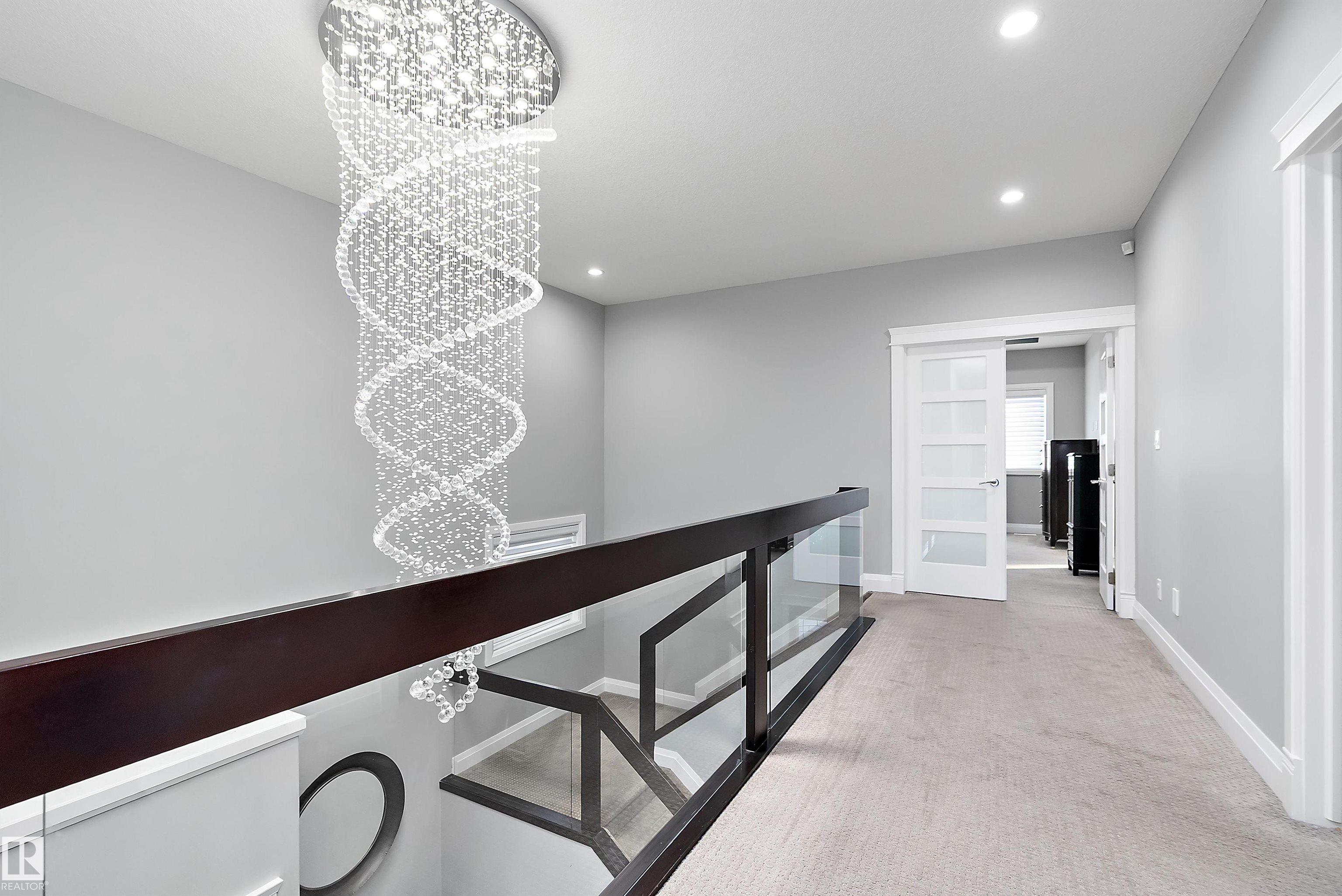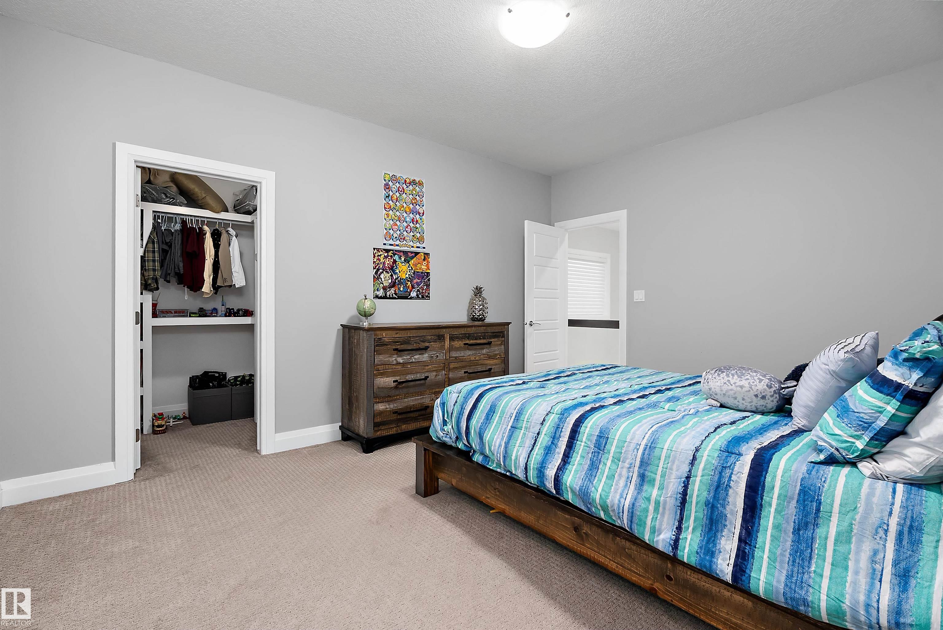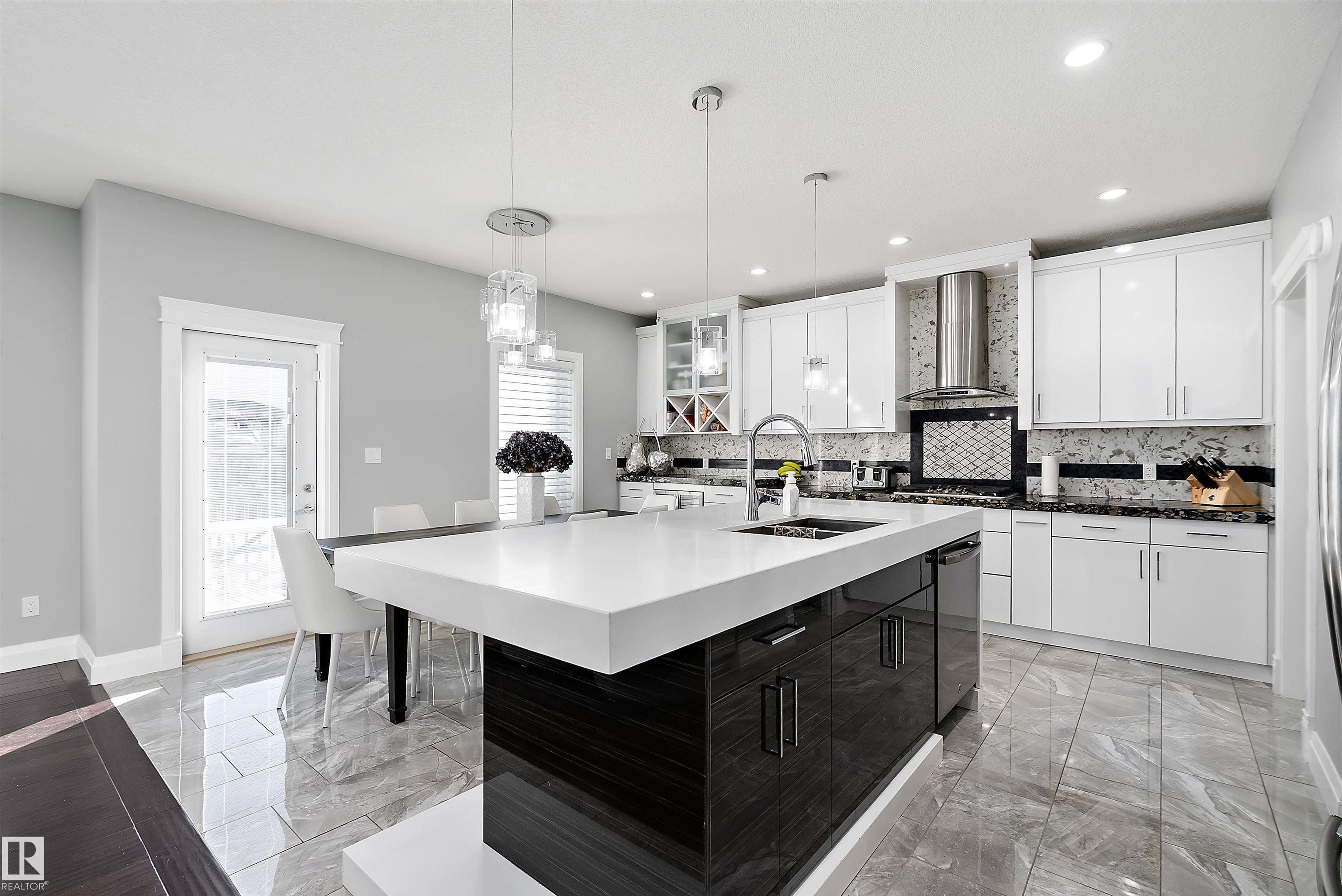 Located in the highly desired community of Oxford. This stunning, 2711 sqft modern home offers great curb appeal and grand entry. High ceilings and stylish light fixtures create a bright, welcoming atmosphere throughout. The kitchen features white cabinetry, sleek island, dining space, pantry and a separate spice kitchen, perfect for everyday cooking and entertaining. A separate entrance adds extra flexibility. The main floor includes a bedroom and full bathroom, ideal for guests or extended family, along with a laundry room complete with sink and storage. Upstairs offers a bonus room with a large balcony and 3 bedrooms, two with private ensuites. The primary bedroom includes double sinks, a soaker tub, and a walk-in closet. An additional 4-piece bathroom completes the upper level. Enjoy air conditioning, a double oversized heated garage that fits 3 vehicles, plus a large backyard and deck. Located close to the Anthony Henday, schools, shopping, parks, public transportation and all other major amenities.