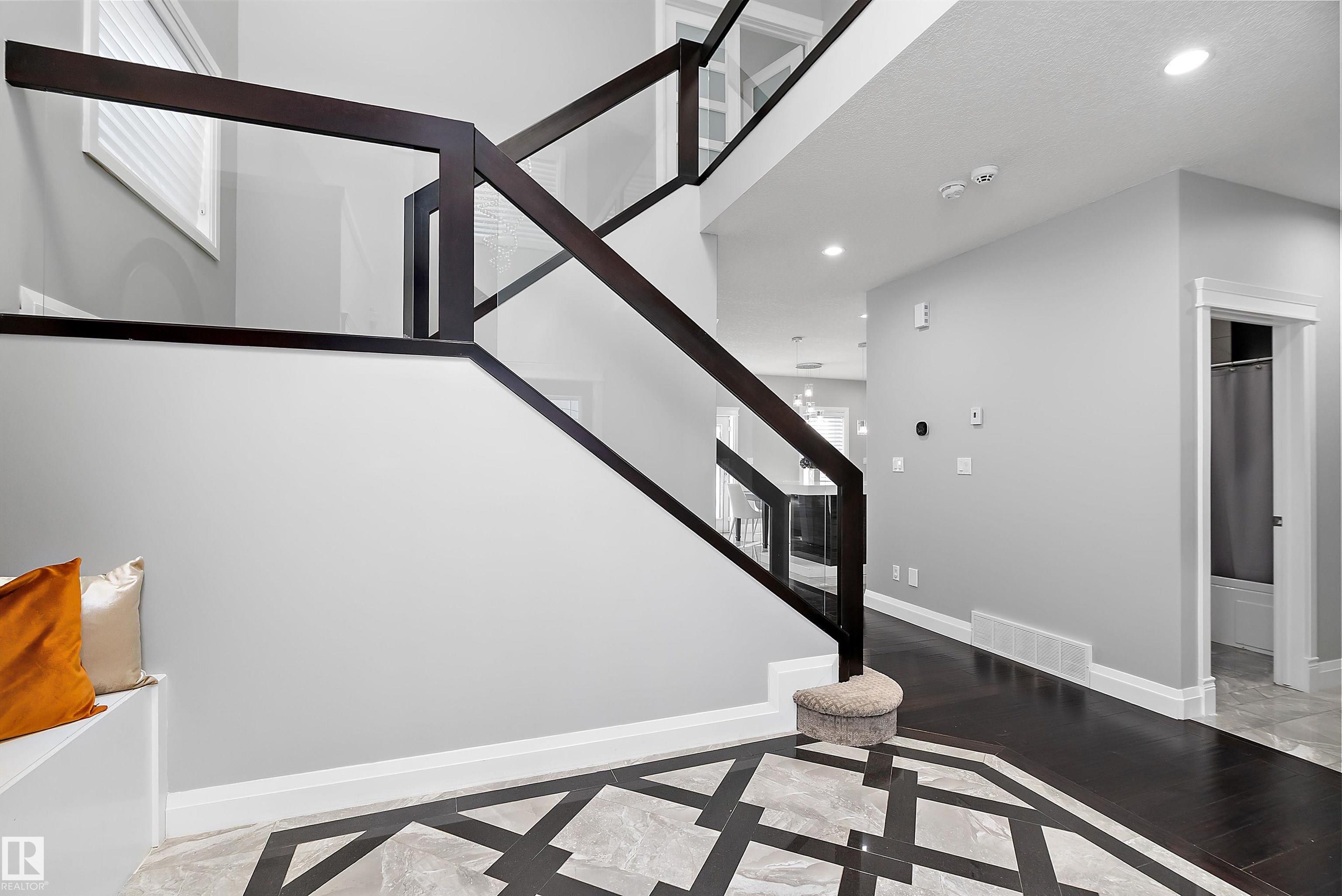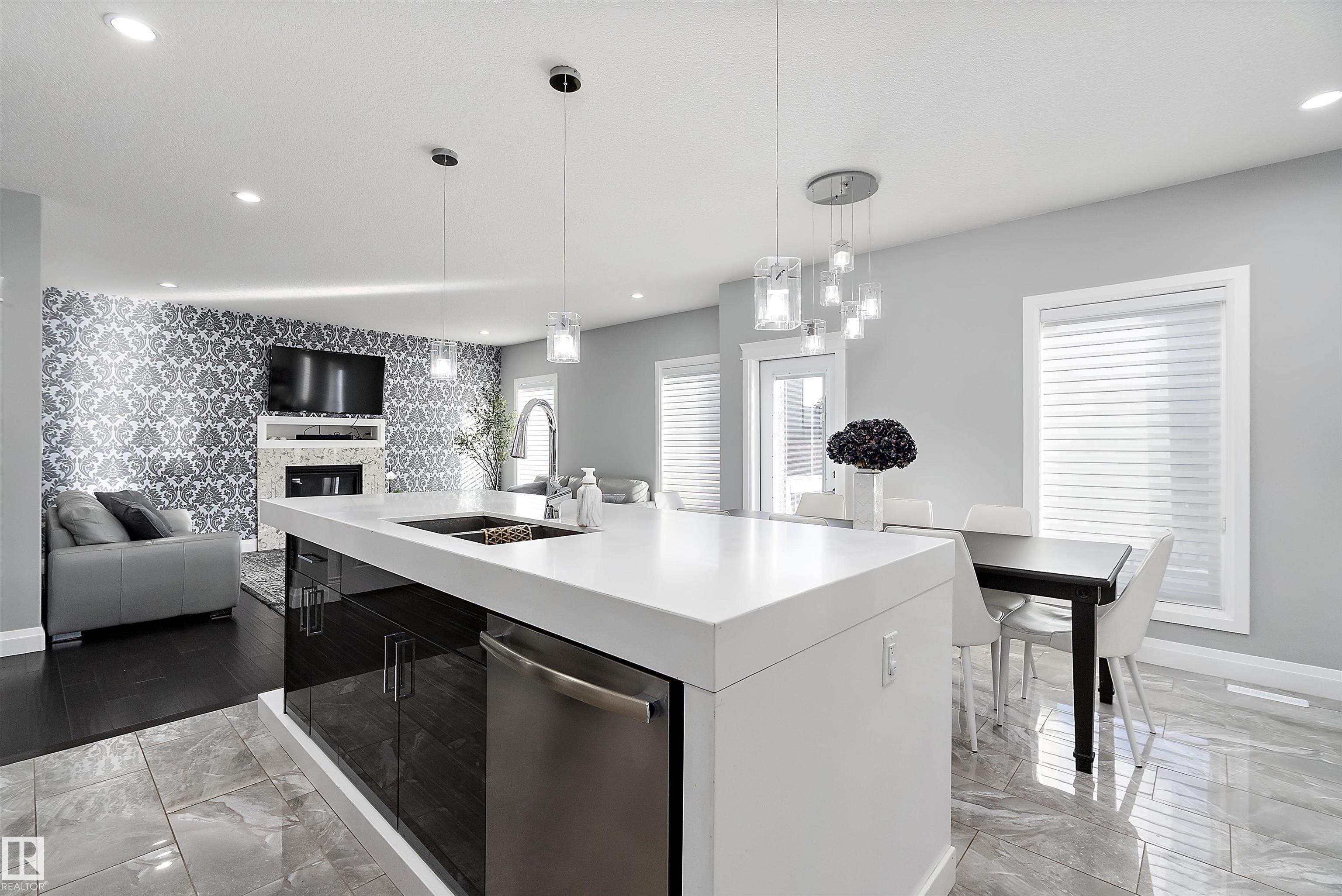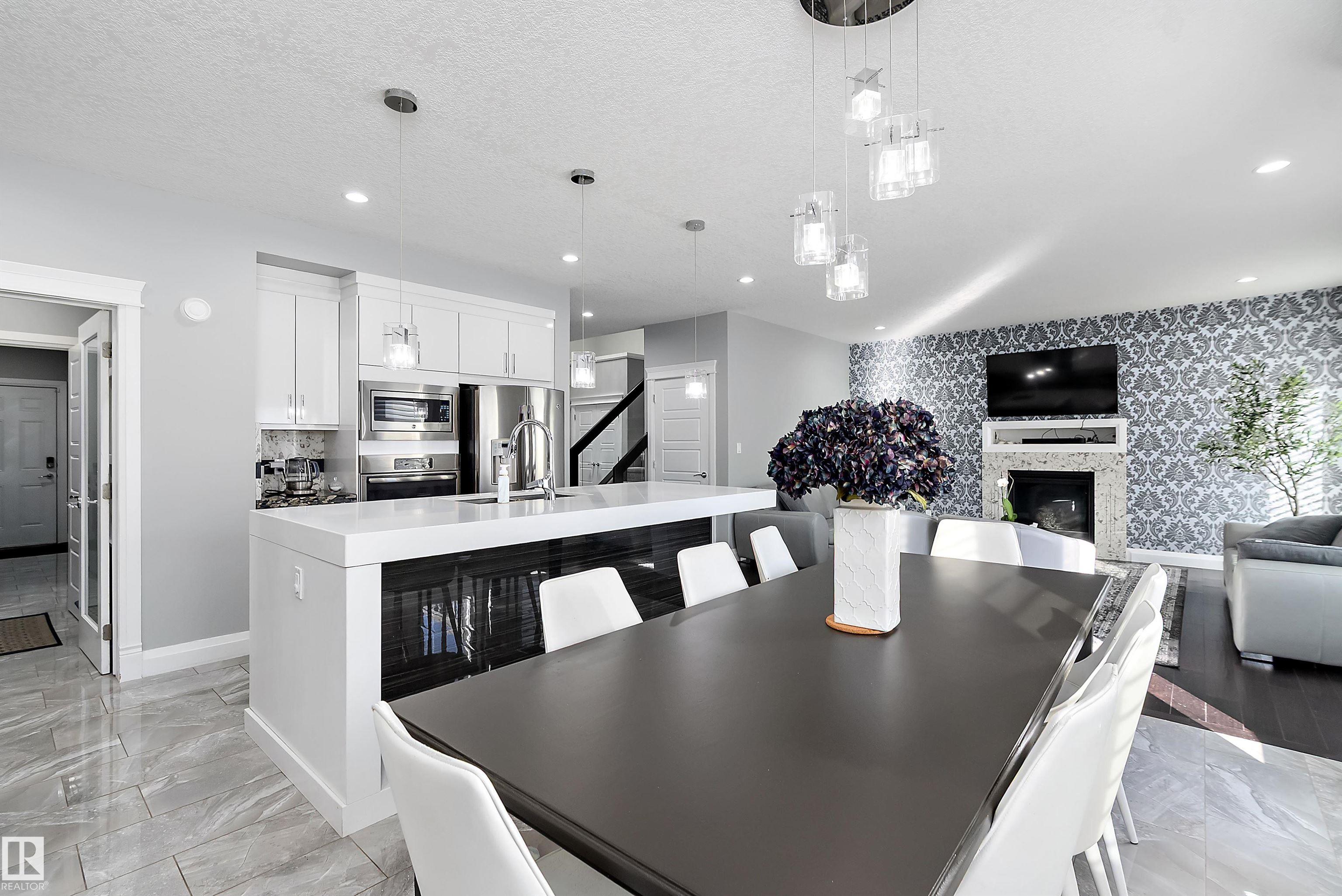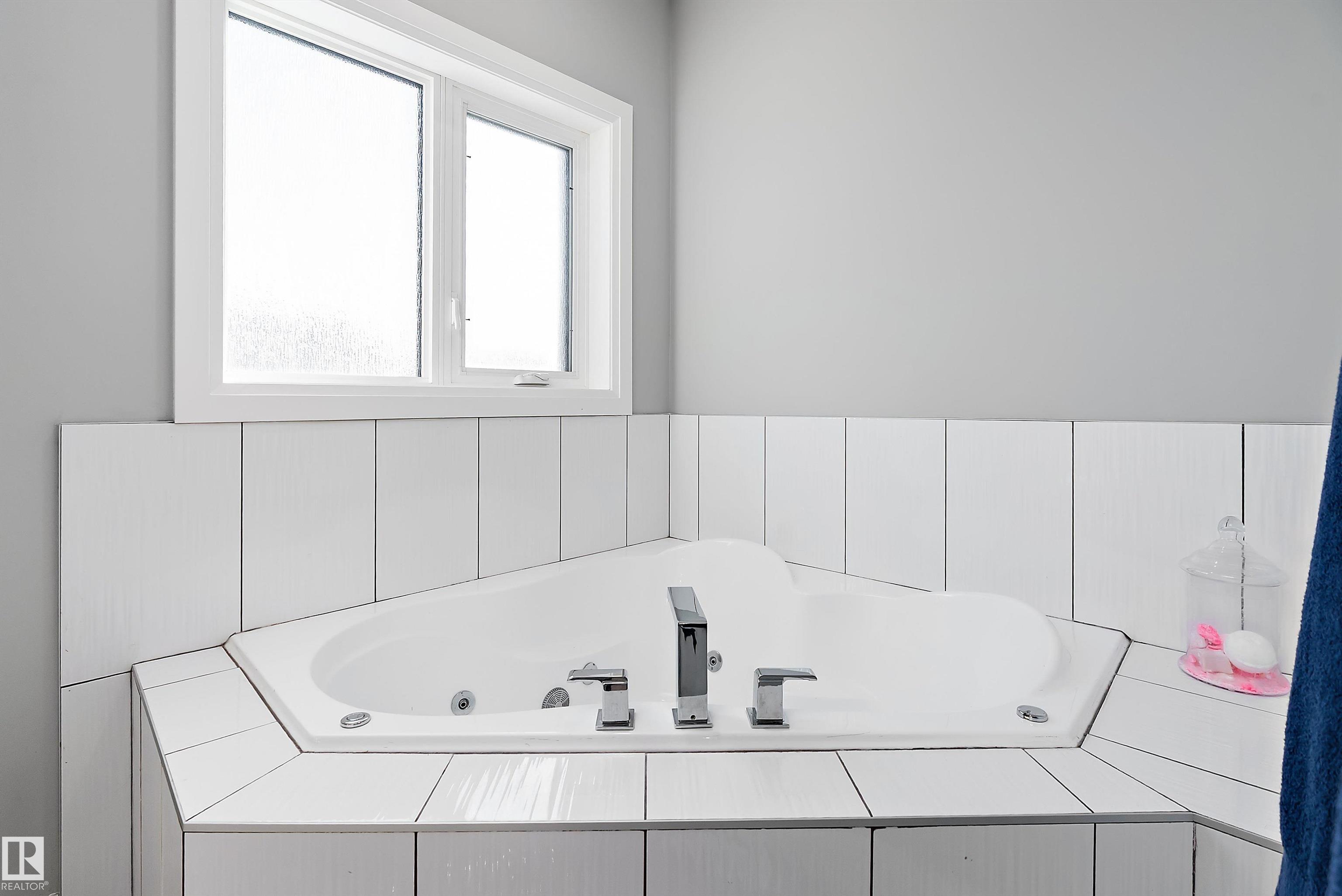 Located in the highly desired community of Oxford. This stunning, 2711 sqft modern home offers great curb appeal and grand entry. High ceilings and stylish light fixtures create a bright, welcoming atmosphere throughout. The kitchen features white cabinetry, sleek island, dining space, pantry and a separate spice kitchen, perfect for everyday cooking and entertaining. A separate entrance adds extra flexibility. The main floor includes a bedroom and full bathroom, ideal for guests or extended family, along with a laundry room complete with sink and storage. Upstairs offers a bonus room with a large balcony and 3 bedrooms, two with private ensuites. The primary bedroom includes double sinks, a soaker tub, and a walk-in closet. An additional 4-piece bathroom completes the upper level. Enjoy air conditioning, a double oversized heated garage that fits 3 vehicles, plus a large backyard and deck. Located close to the Anthony Henday, schools, shopping, parks, public transportation and all other major amenities.