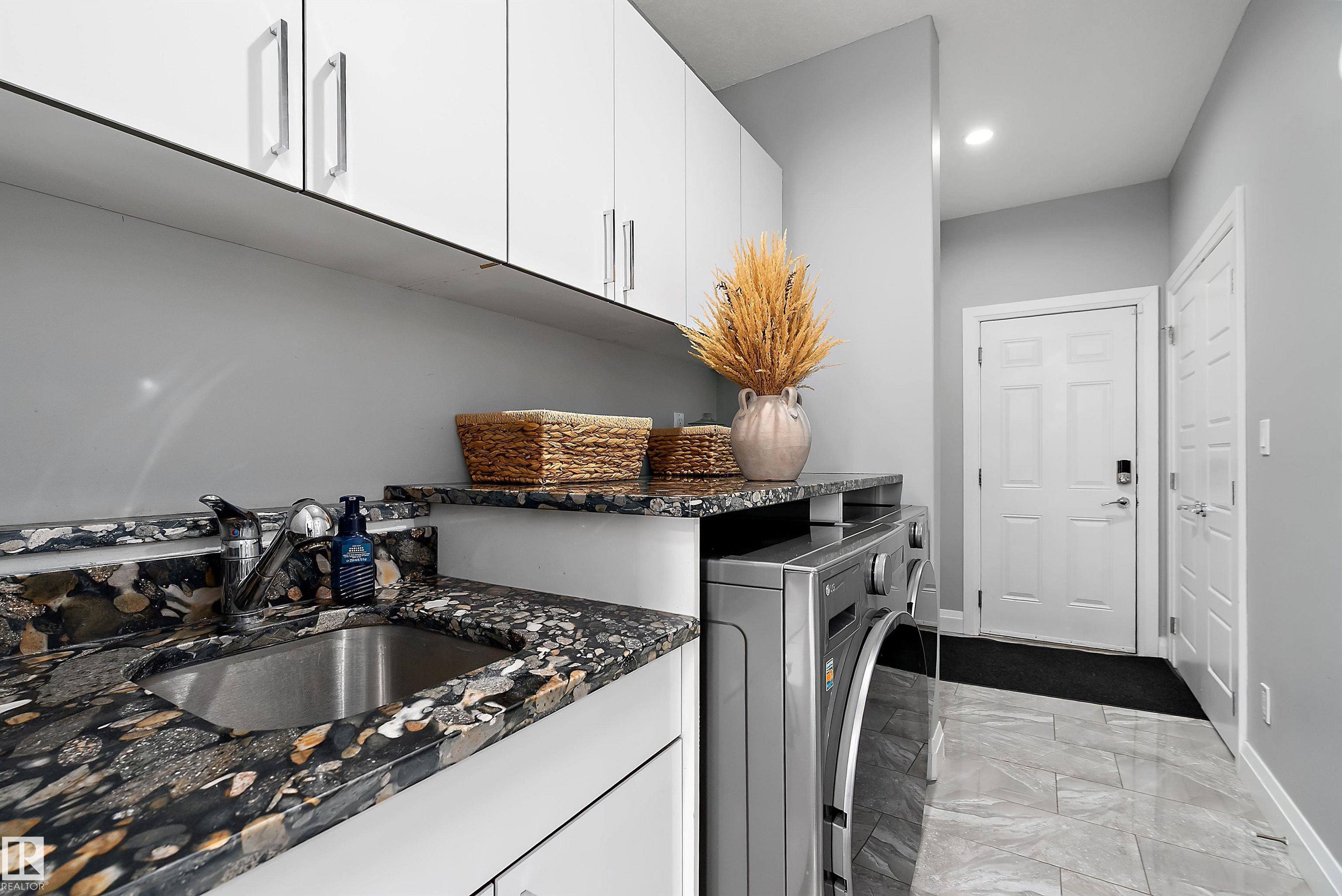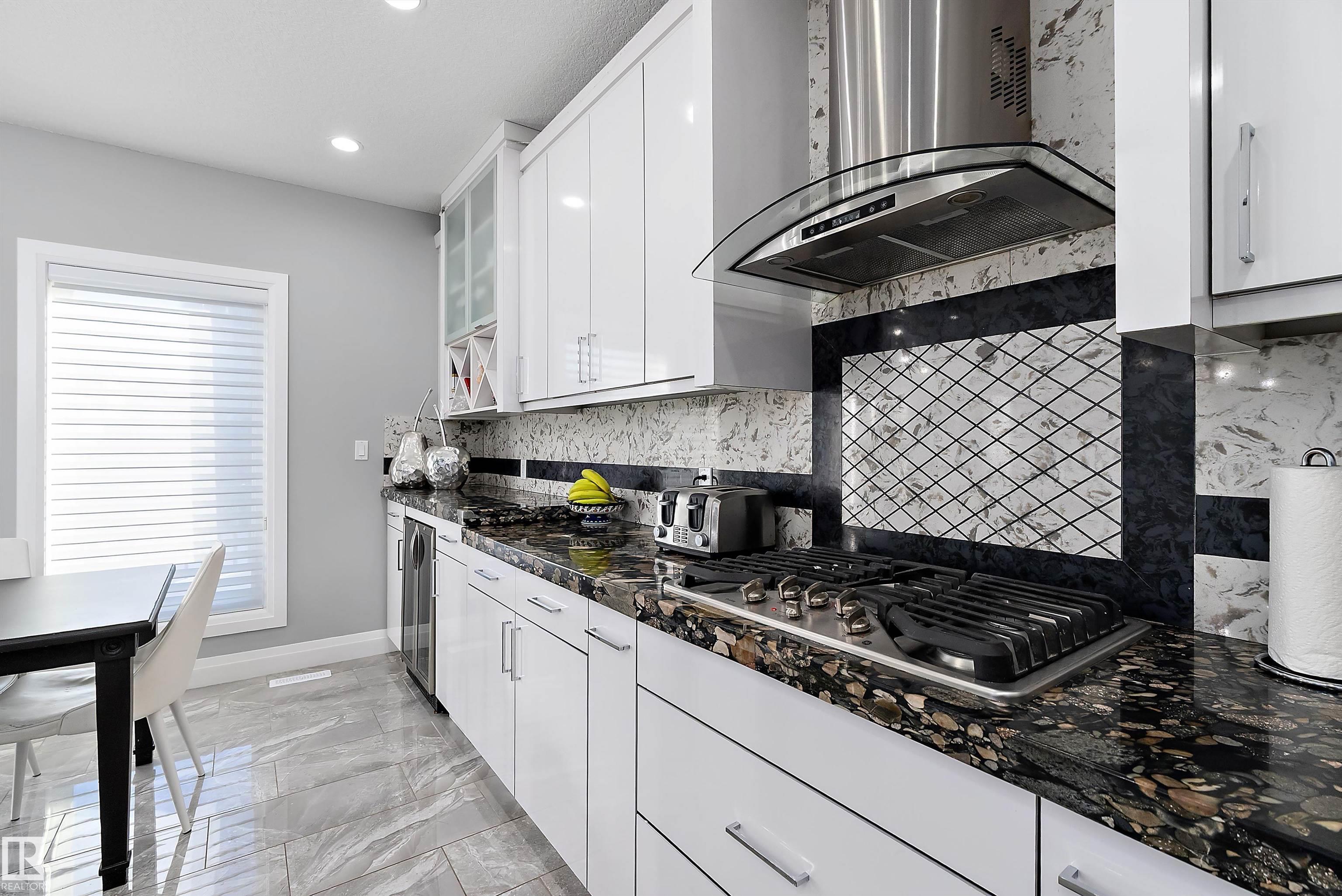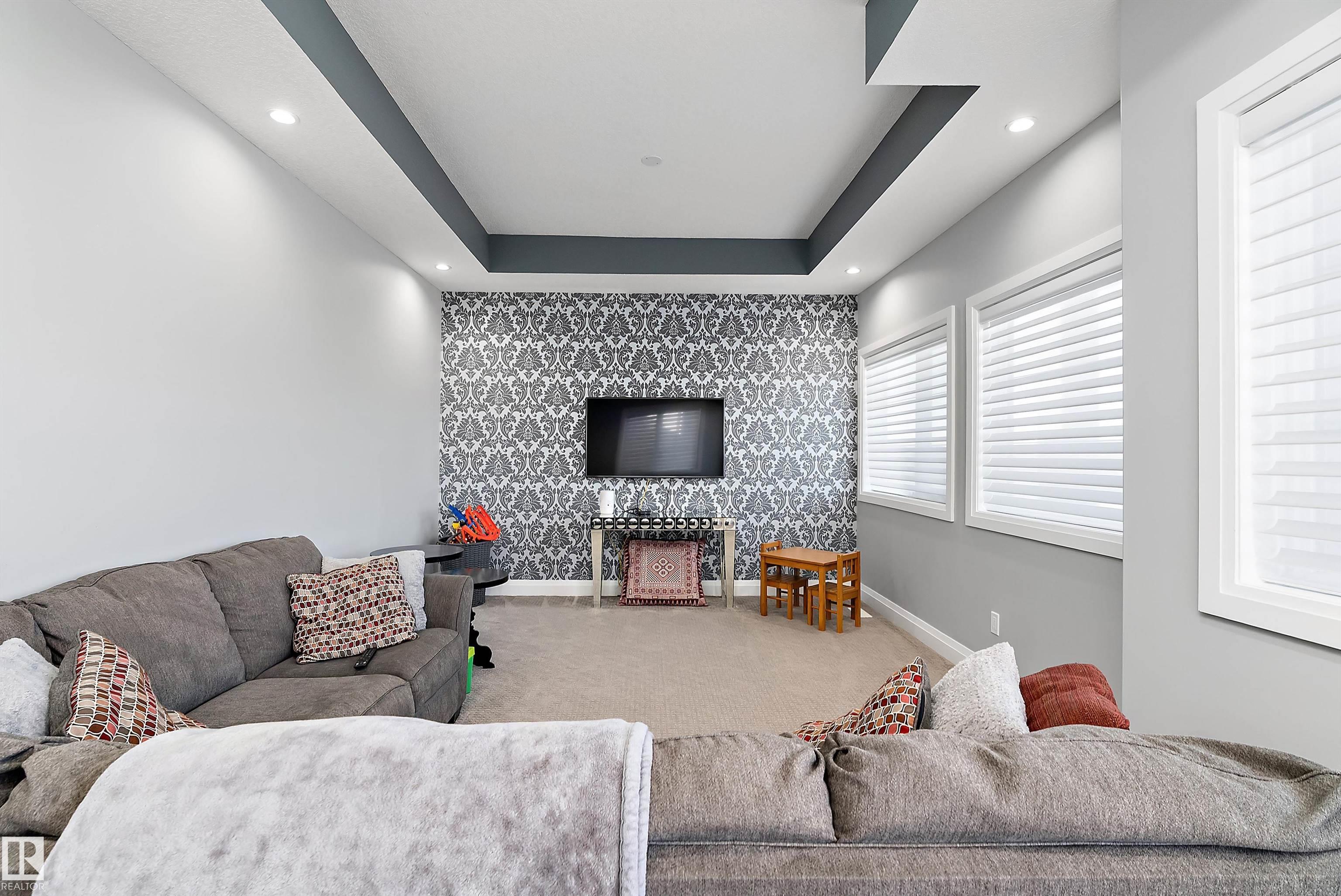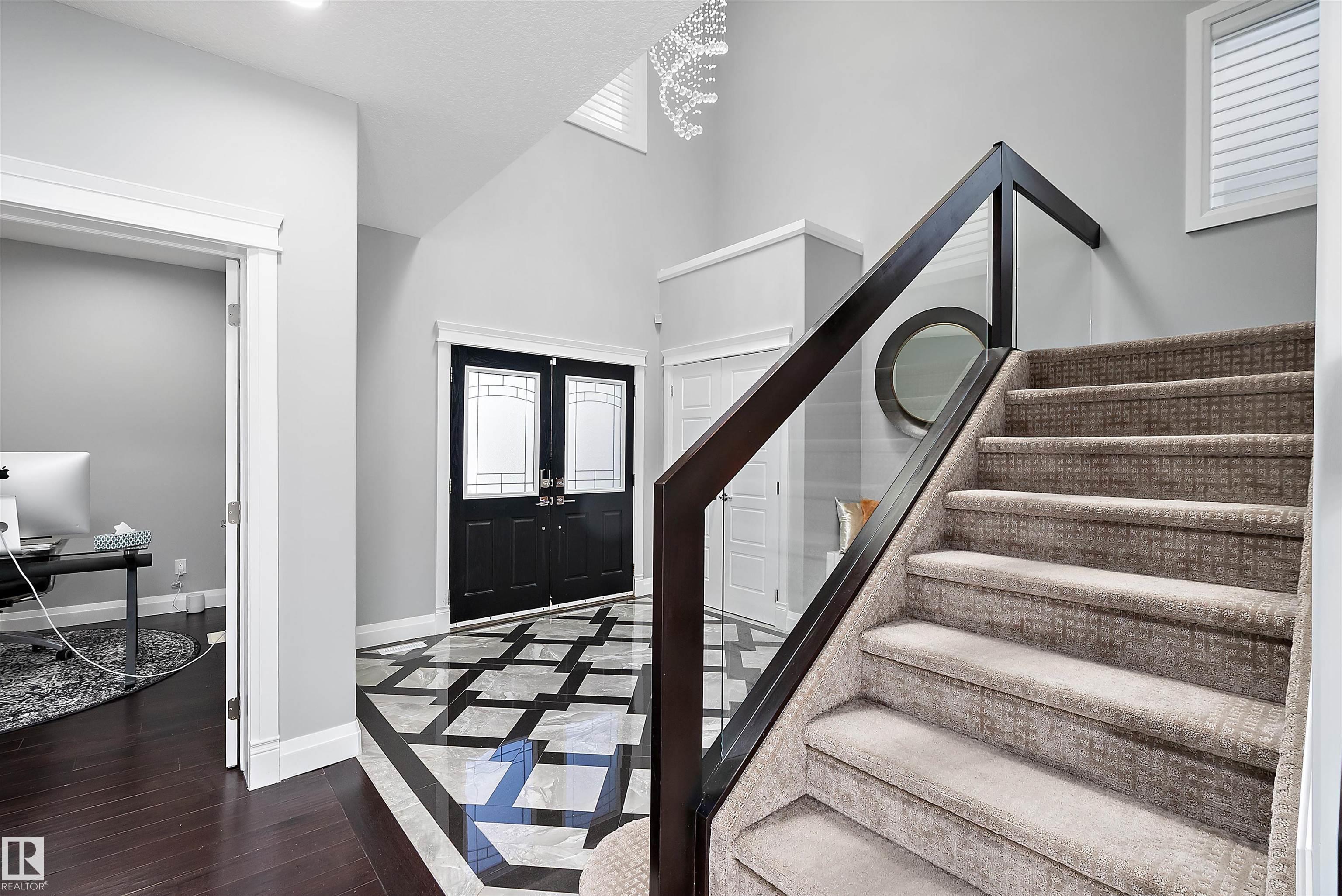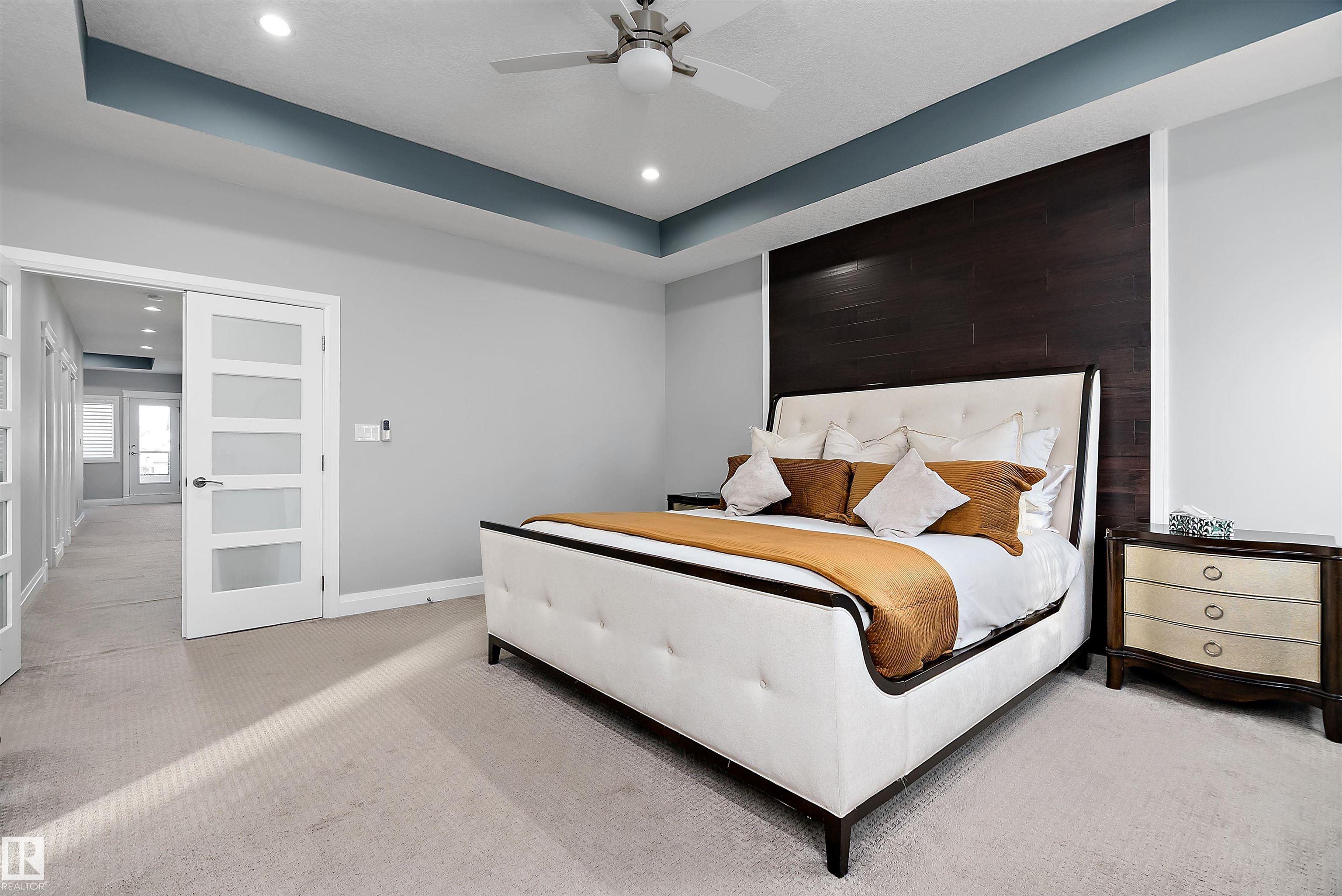 Located in the highly desired community of Oxford. This stunning, 2711 sqft modern home offers great curb appeal and grand entry. High ceilings and stylish light fixtures create a bright, welcoming atmosphere throughout. The kitchen features white cabinetry, sleek island, dining space, pantry and a separate spice kitchen, perfect for everyday cooking and entertaining. A separate entrance adds extra flexibility. The main floor includes a bedroom and full bathroom, ideal for guests or extended family, along with a laundry room complete with sink and storage. Upstairs offers a bonus room with a large balcony and 3 bedrooms, two with private ensuites. The primary bedroom includes double sinks, a soaker tub, and a walk-in closet. An additional 4-piece bathroom completes the upper level. Enjoy air conditioning, a double oversized heated garage that fits 3 vehicles, plus a large backyard and deck. Located close to the Anthony Henday, schools, shopping, parks, public transportation and all other major amenities.