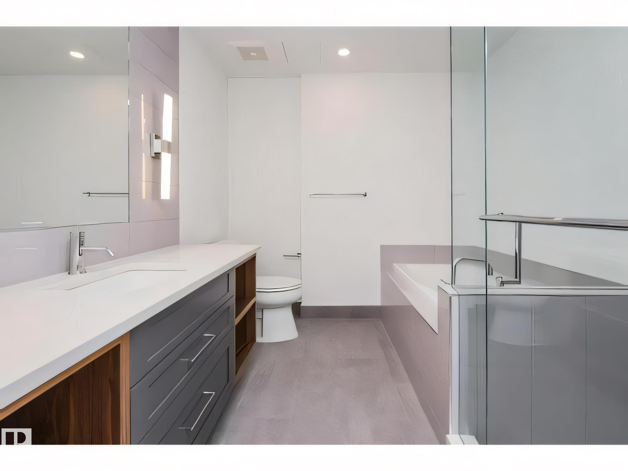 Welcome to elevated living at West Block! Perched on the 9th floor, this exquisite 2-bedroom, 2-bath condo showcases sweeping city views through dramatic floor-to-ceiling windows and soaring ceilings that flood the space with natural light. From breathtaking winter sunrises to peaceful evenings on the expansive balcony, every moment feels extraordinary. Enjoy the convenience of two titled parking stalls and a titled storage unit. Residents indulge in premium amenities, including a state-of-the-art fitness centre, boardroom, stylish party lounge, outdoor sundeck with a cozy fire table, dog run, and a private guest suite for visitors. Ideally located steps from top restaurants, boutique shopping, and the river valley, West Block offers the perfect balance of sophistication, comfort, and urban convenience. Some photos are virtually staged**
