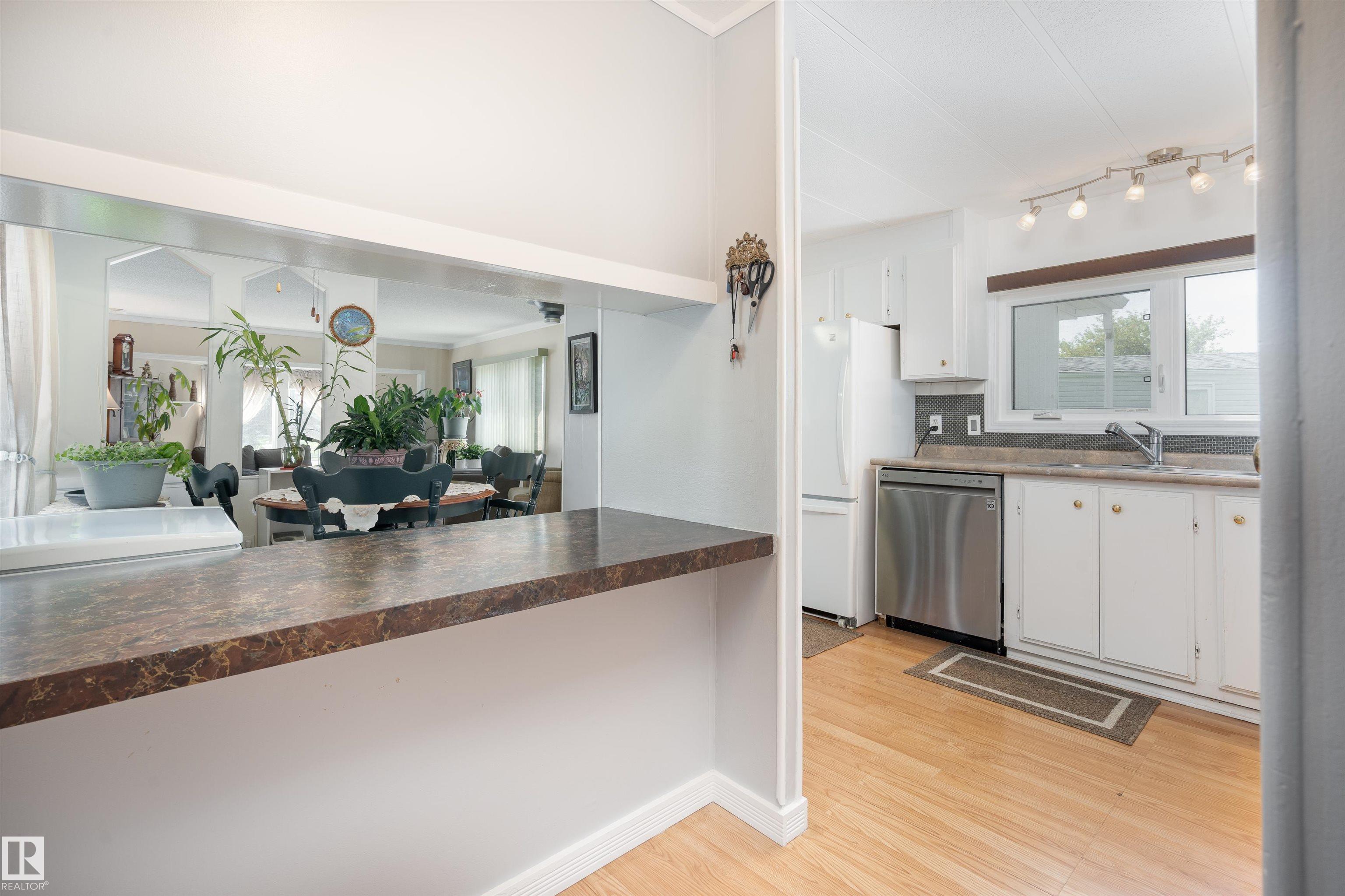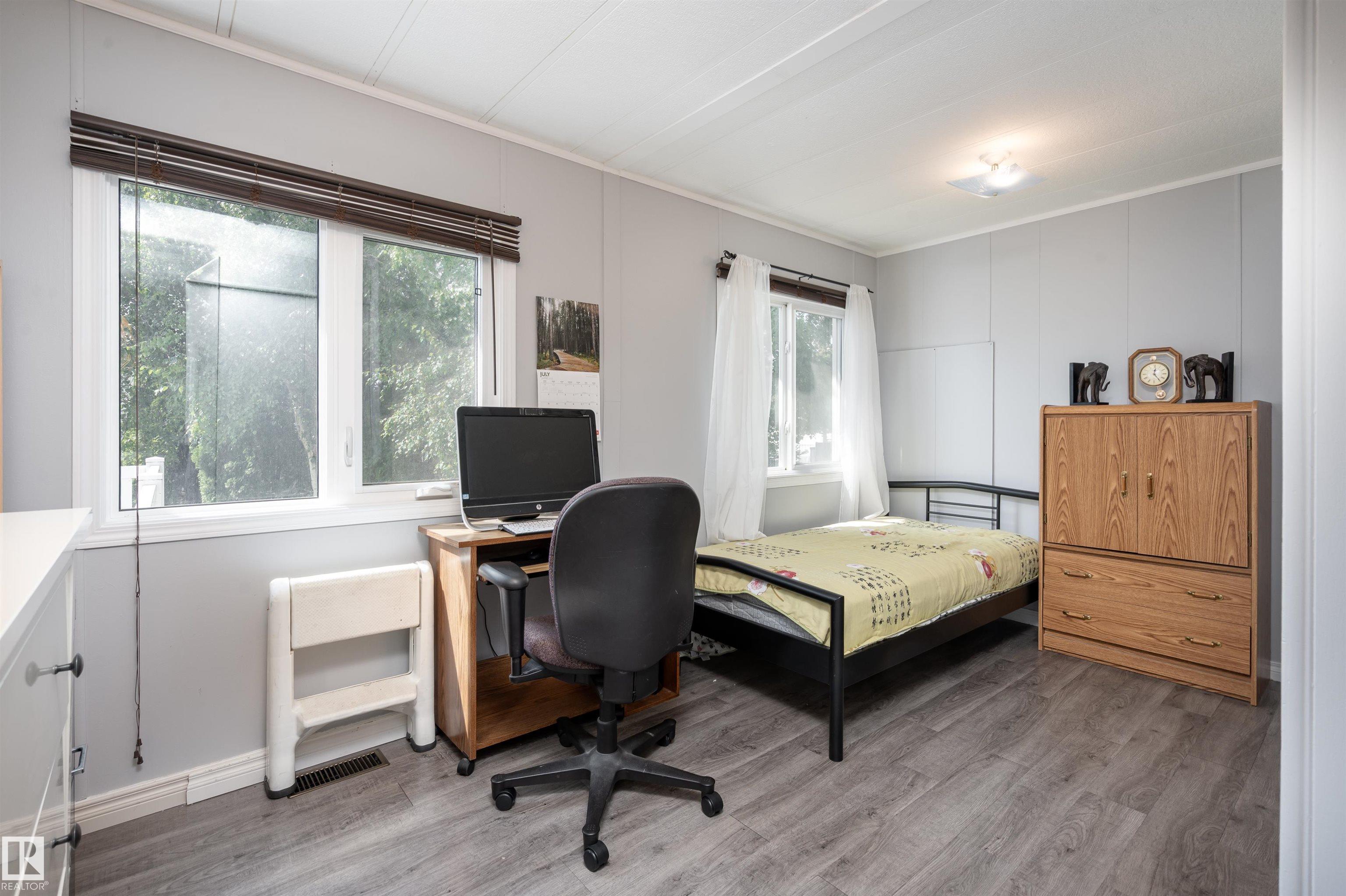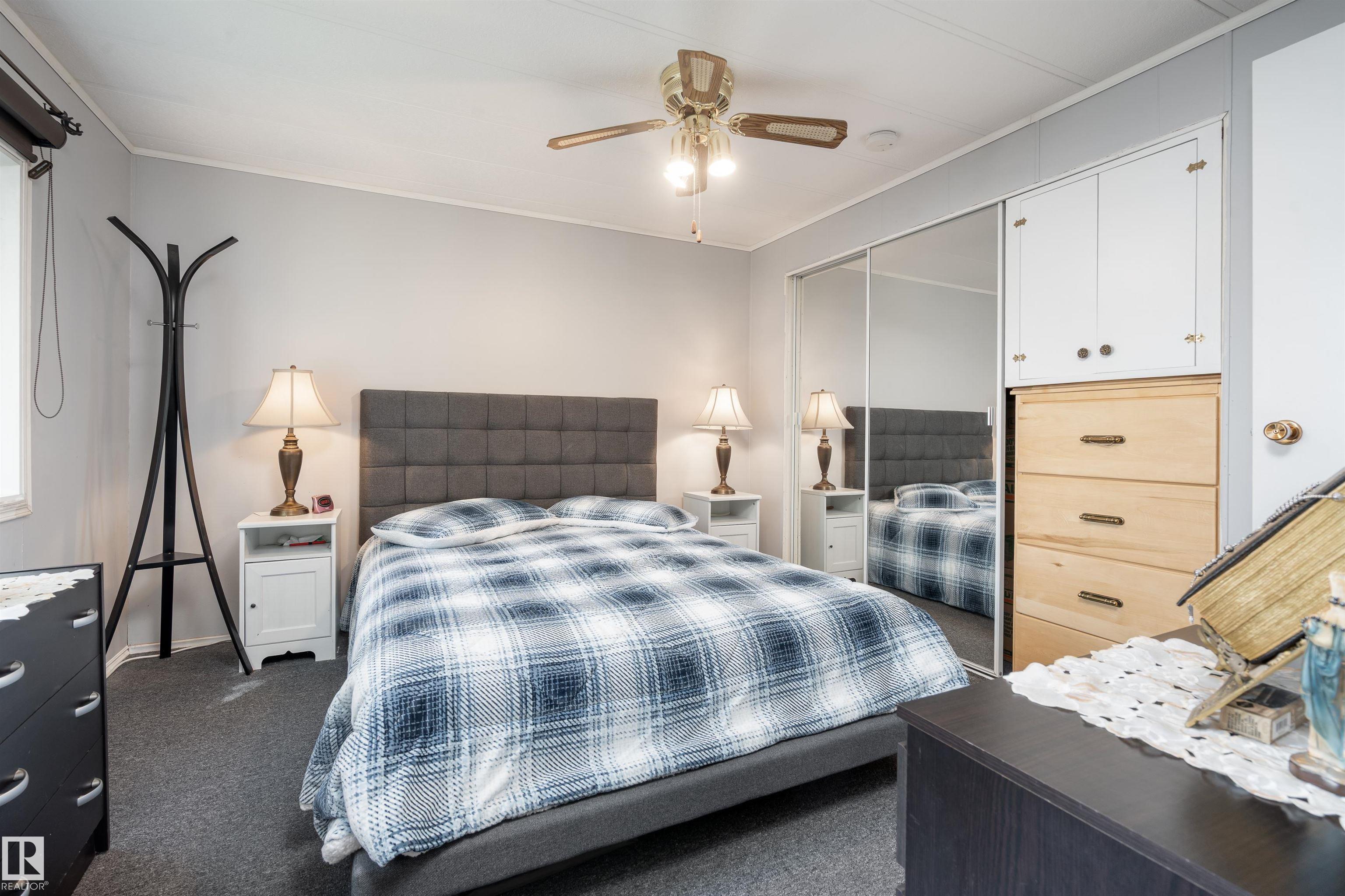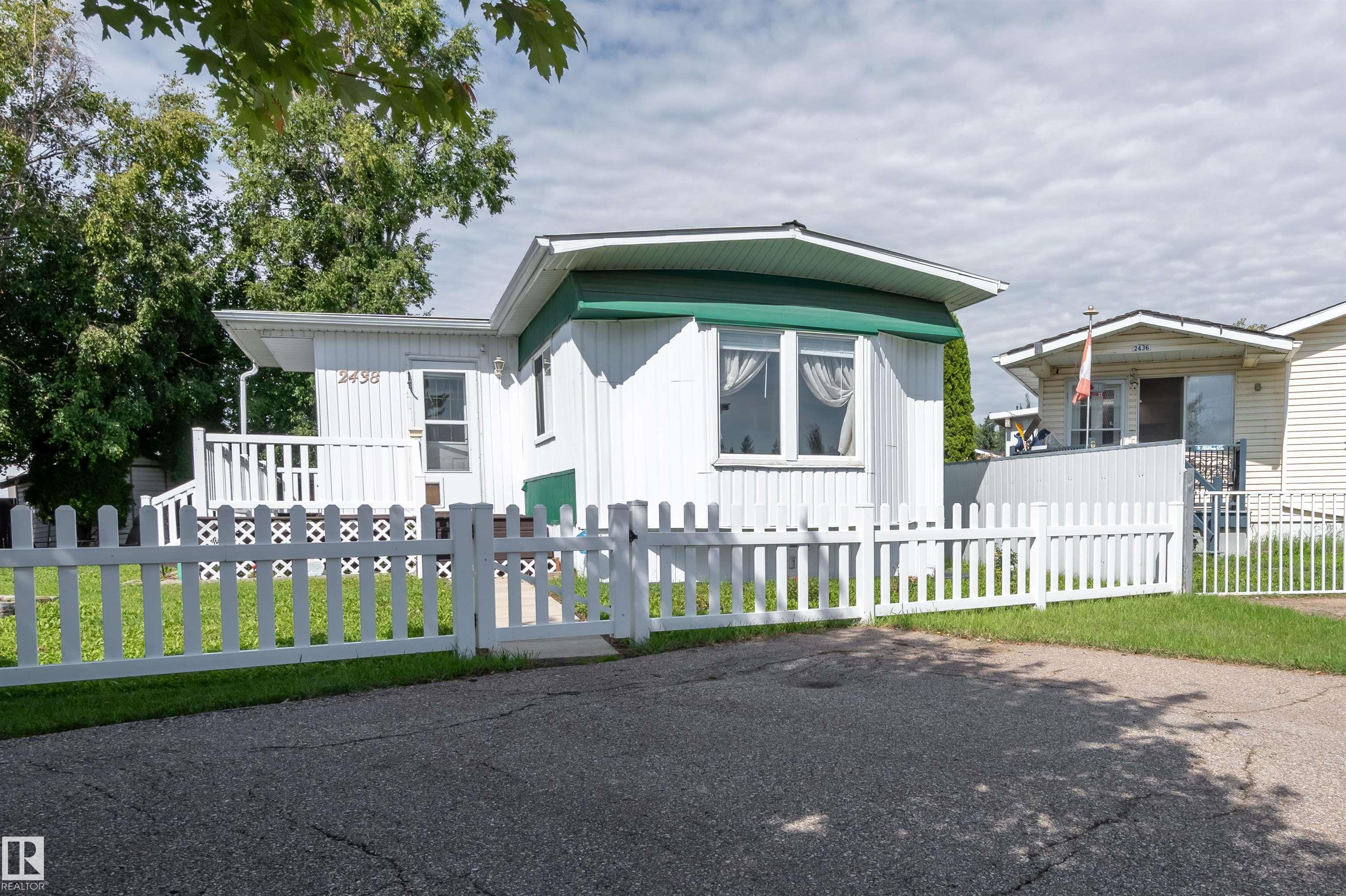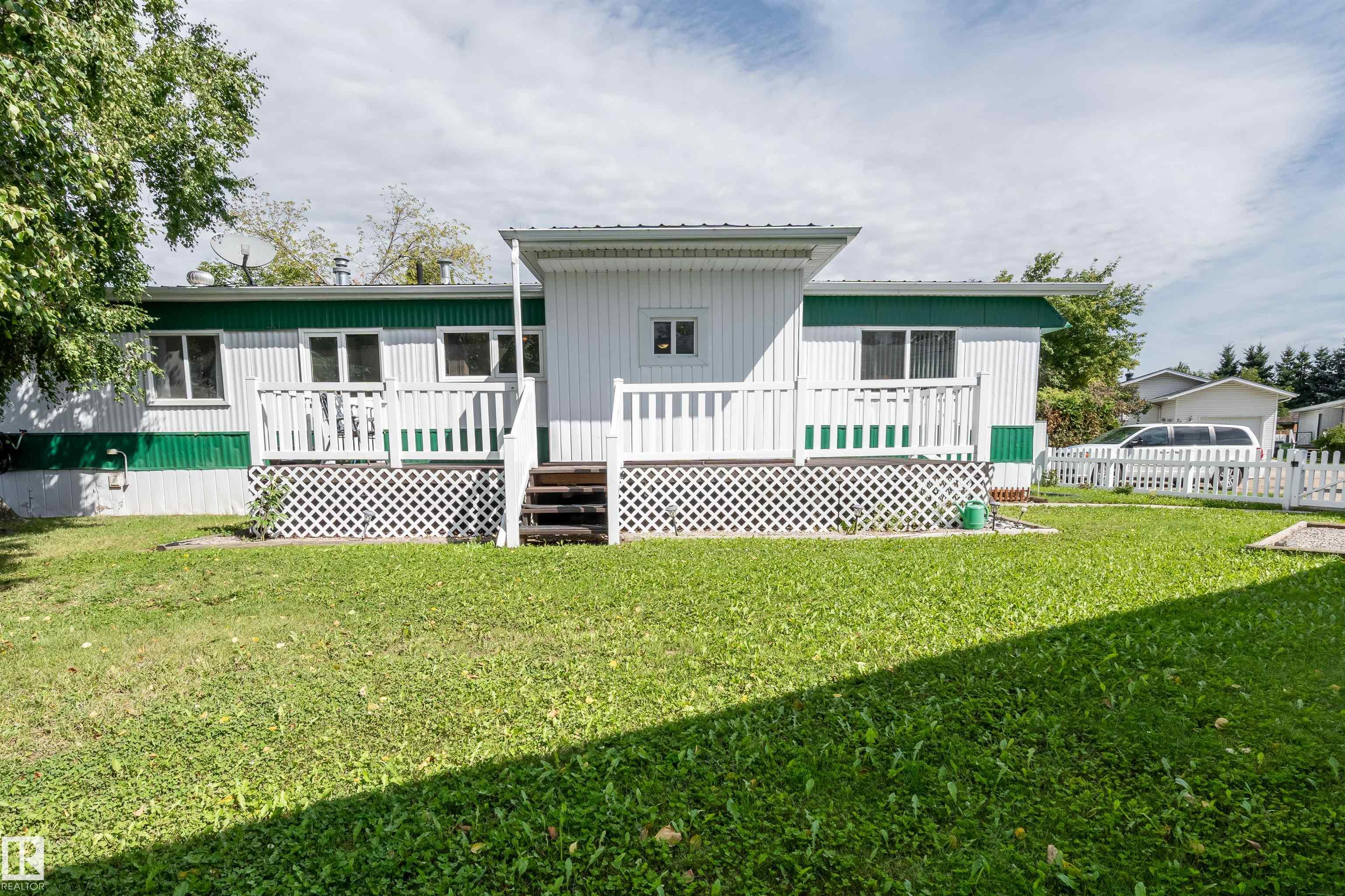 Discover easy living in this well cared for 1,037 sq ft home located in Westview Village. Designed for comfort and functionality, the bright open floor plan flows naturally between the main living spaces, while large windows fill the home with natural light. The kitchen offers generous cabinet storage and overlooks the spacious living room, complete with AC for year round comfort. The primary bedroom provides ample closet space and bright windows, the second bedroom is well sized and versatile, and a full 4 piece bathroom completes the interior. Outside, the fully fenced yard and wraparound deck create the perfect space for summer evenings or quiet mornings outdoors. Residents enjoy access to a fitness centre, hall, pond with walking paths, outdoor rink, sports courts, ball fields, playgrounds, plus an on site store, gas bar, pub, and restaurant. Just minutes from Lewis Estates Golf Course and with access to Anthony Henday Drive. An ideal place to call home in a location that truly has it all.