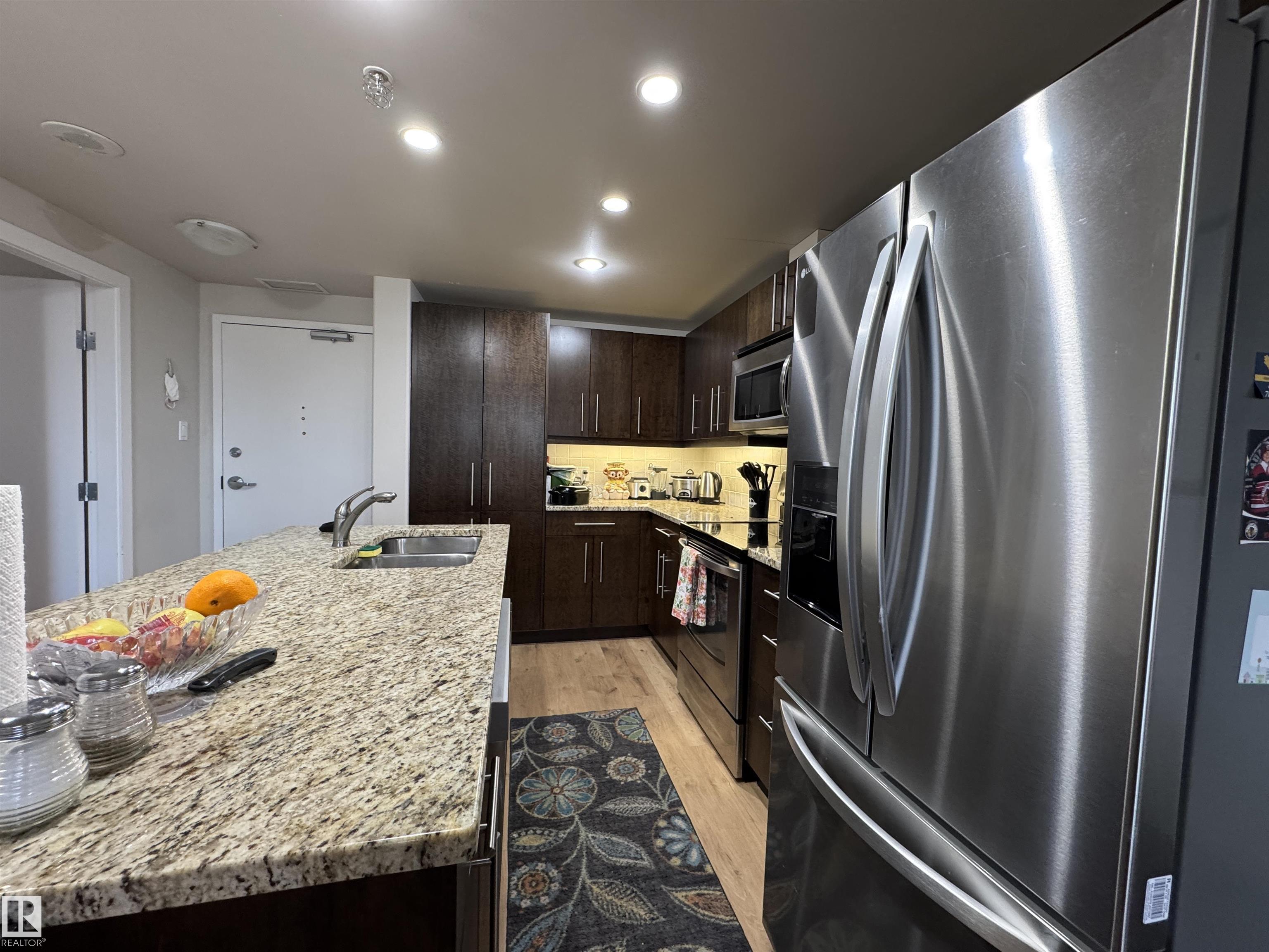 Investor opportunity with a long-term tenant already in place. This bright 1-bedroom, 1-bath unit with a den offers a functional open-concept layout filled with natural east-facing light. The modern kitchen features stainless steel appliances, granite countertops, ample cupboard space plus recently upgraded refrigerator & dishwasher (2025). New Vinyl Plank Flooring throughout the kitchen & living room in 2025 as well. The unit includes in-suite laundry, central A/C and an easy-access walk-in shower. The versatile den is ideal for a home office or craft room. A well-appointed space that?s comfortable, practical, and easy to call home. Condo fees include Heat, A/C, power, classic cable package and more!! (Photos from prior to tenant move-in).