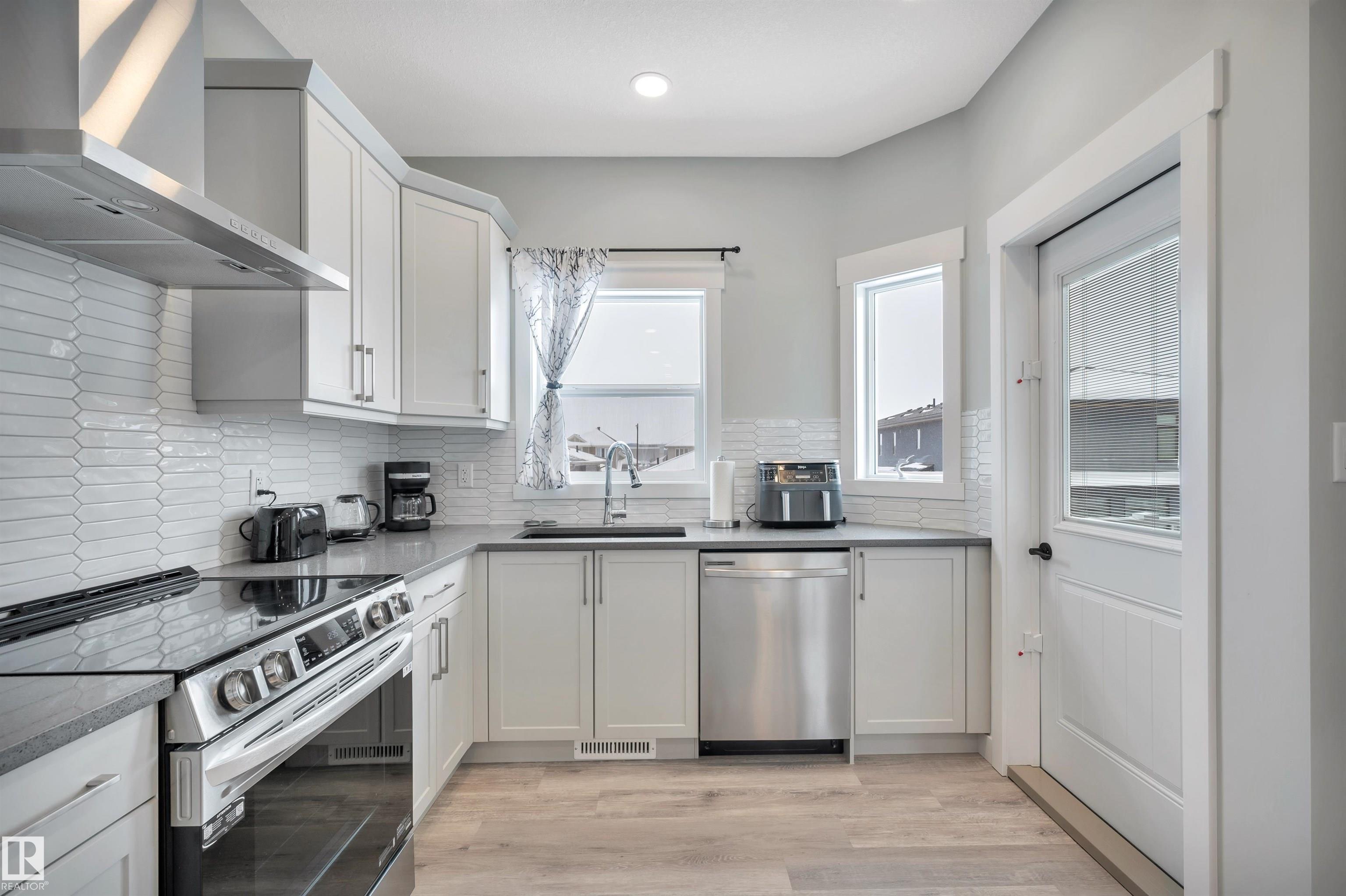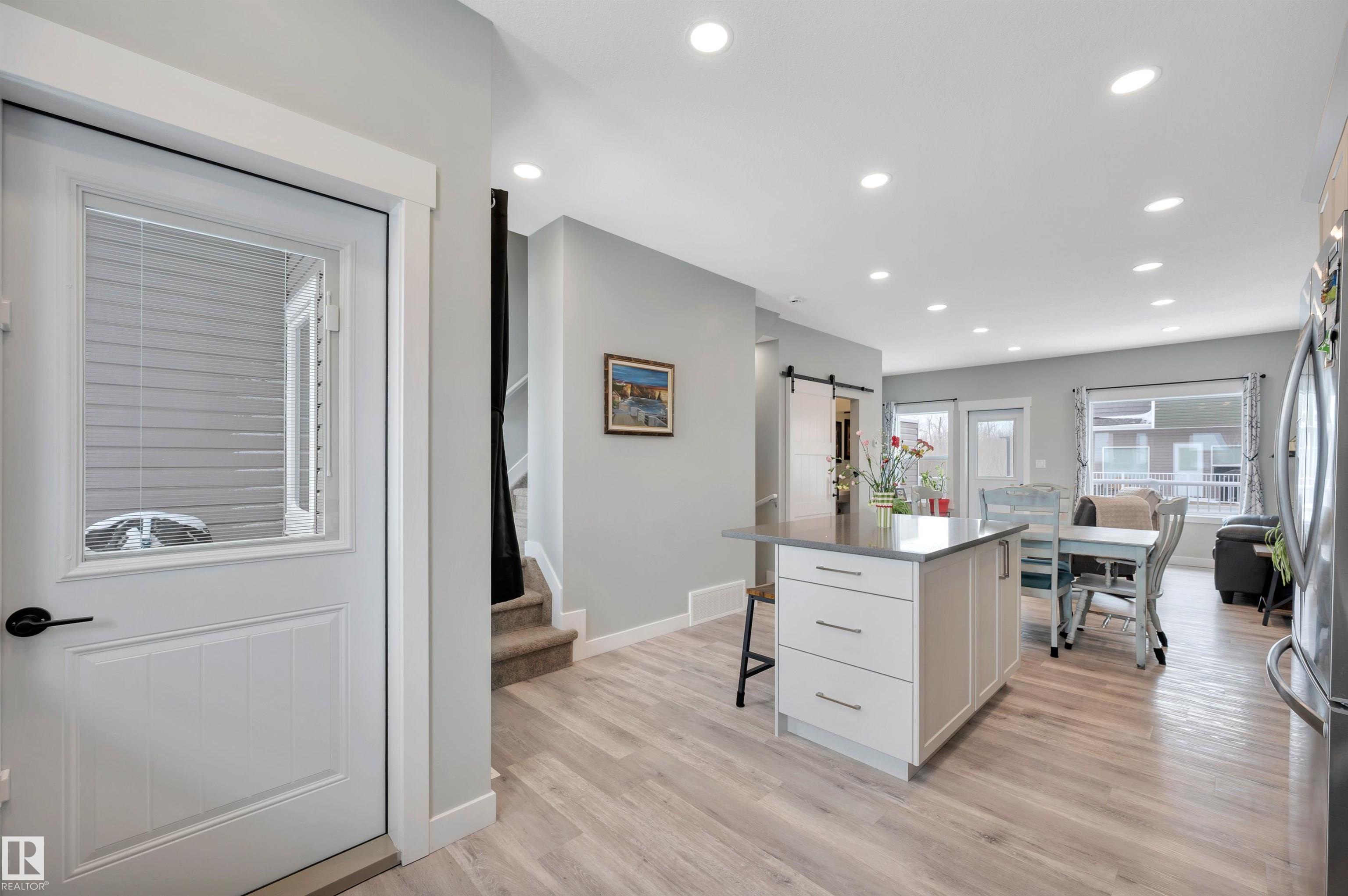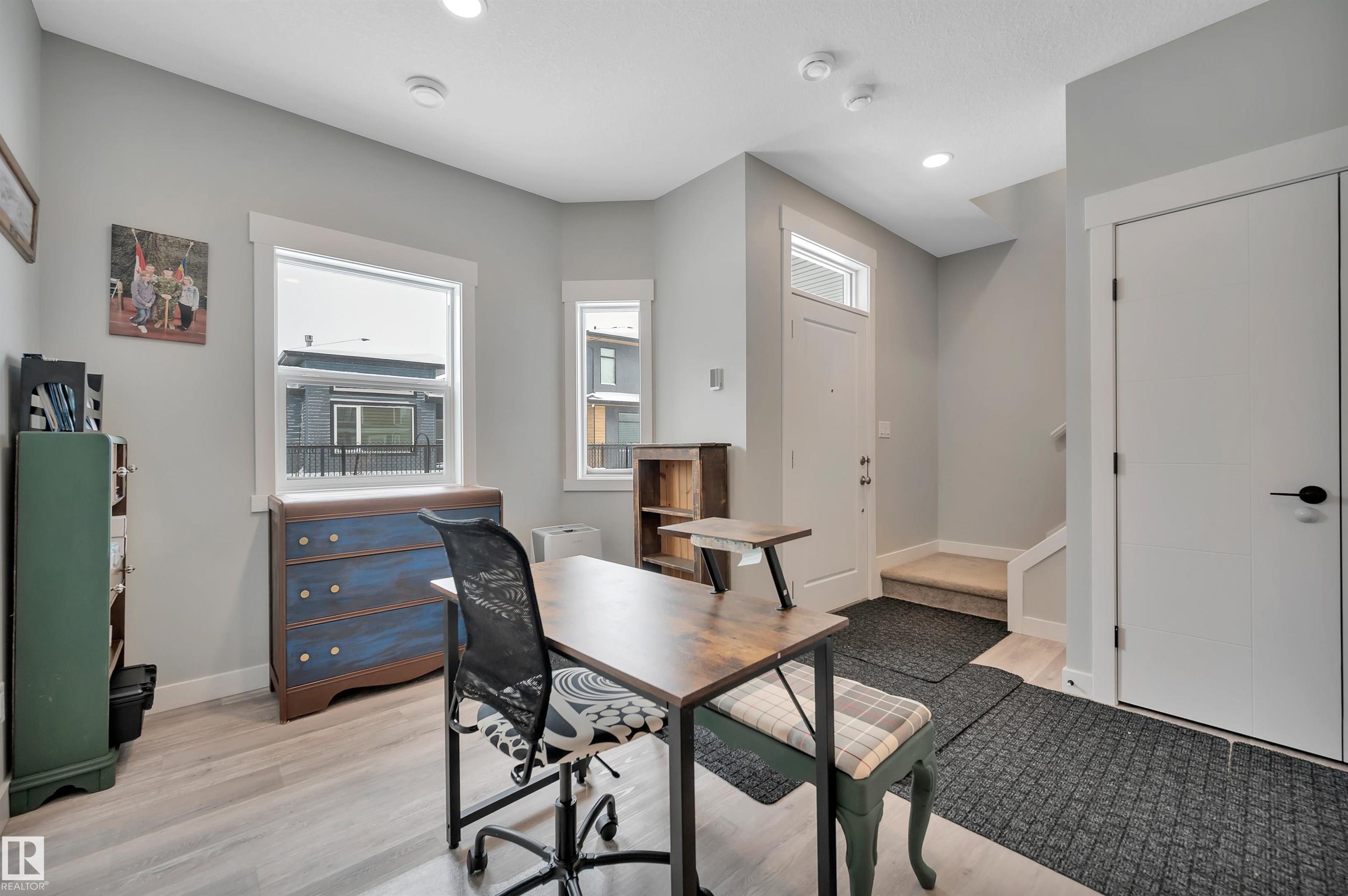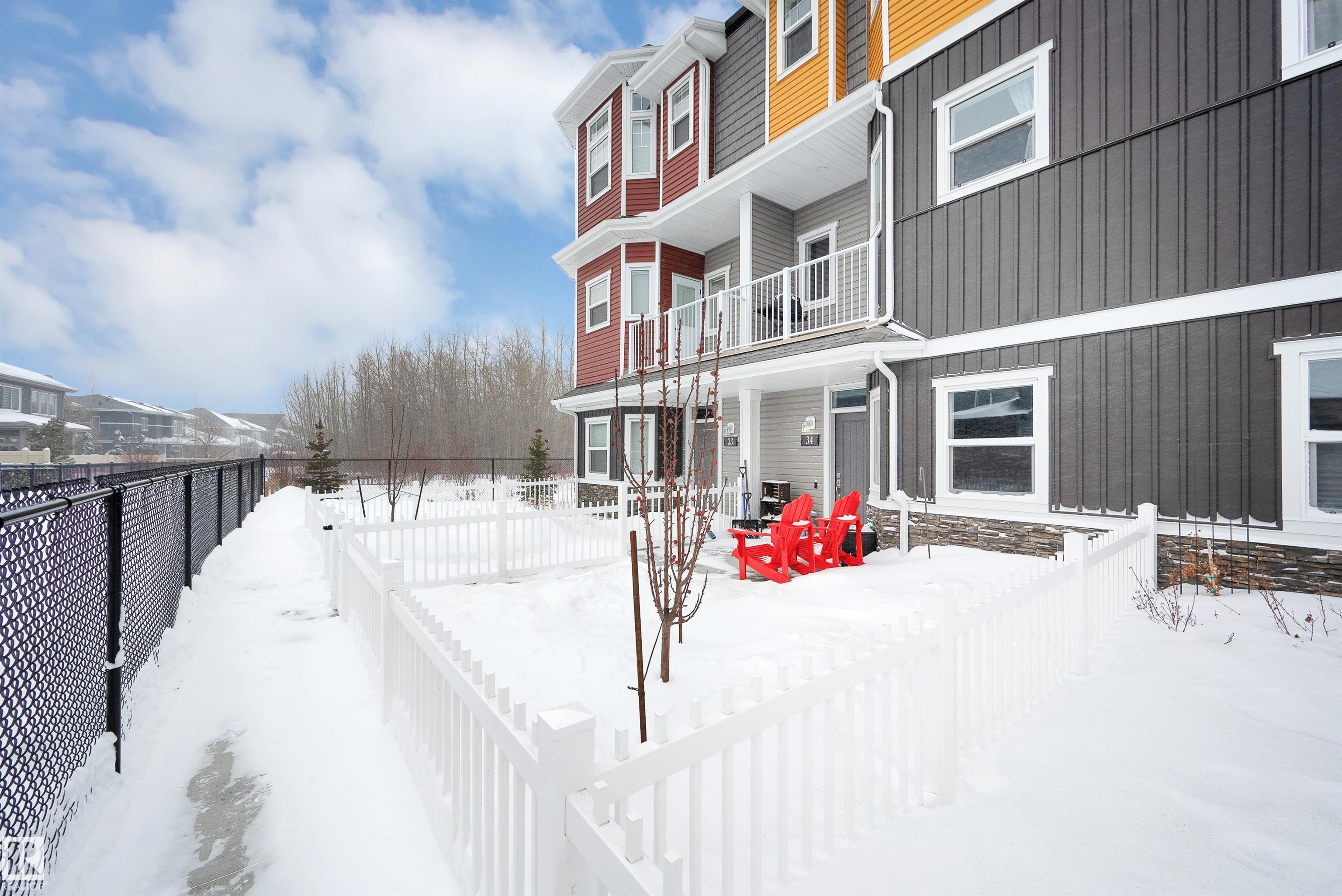 Welcome to Valencia on the Park, where style meets lifestyle in this virtually brand new 3 Bedroom unit that fronts a walking trail. You will appreciate the thoughtful layout The main level has direct access to your Double Garage, In floor Heating in the bright Office Space, ideal for working from home, a gym nook or creative studio. Upstairs is where the home truly shines. The show stopping kitchen features quartz countertops, grand island, stainless appliances, endless cabinetry, and oversized windows that flood this floor with natural light. The open concept flows effortlessly in to the dining and living room area. And the Bonus? 2 private balconies. Upstairs has 3 bedrooms, 4 pc bath and the primary suite has walk in closet and 3 pc ensuite as well as Laundry. Valencia on the Park is minutes from Shopping and Amenities along St. Albert Trail. This unit is move in ready, low maintenance and lifestyle focussed. Welcome home.