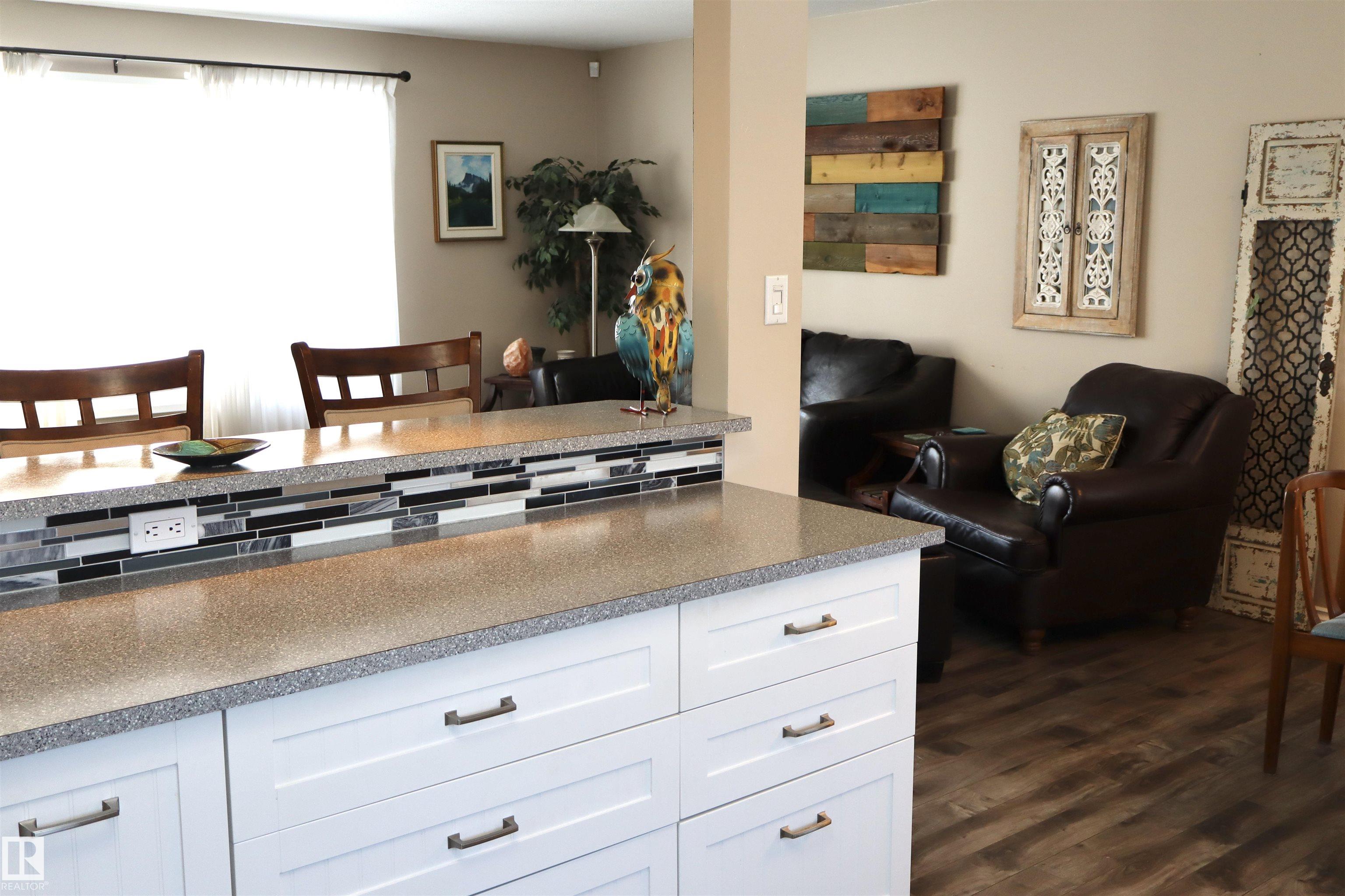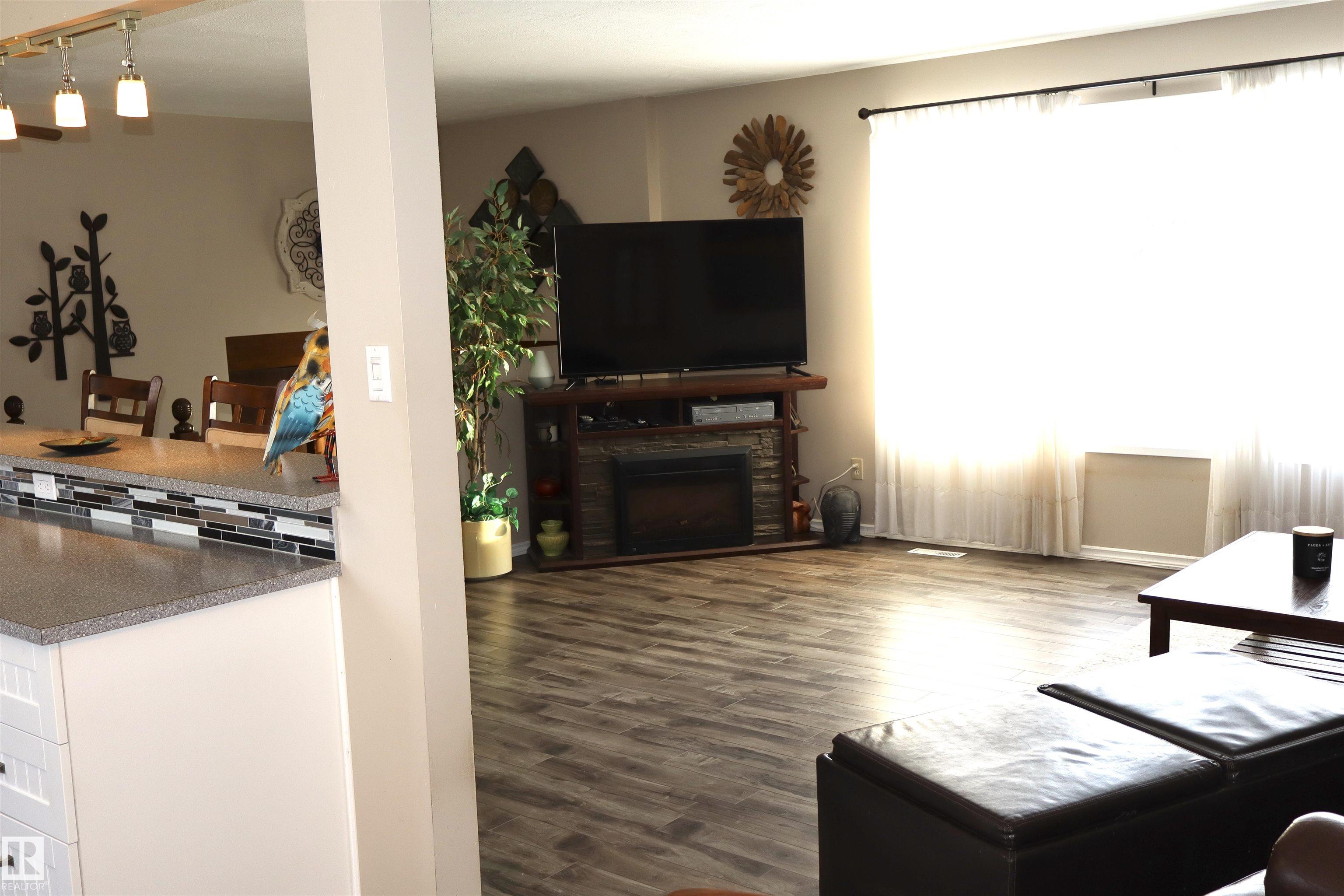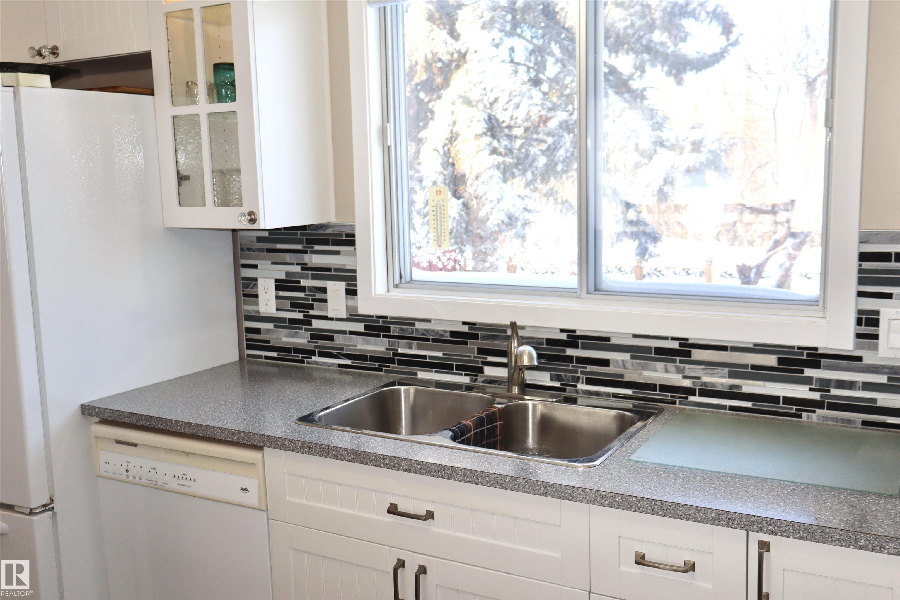 Welcome to this beautifully maintained bi-level home backing onto mature trees and scenic walking trails, offering privacy and a peaceful setting. Inside, you?ll find a stunning new kitchen with modern white cabinetry, sleek countertops, and stylish backsplash, perfectly designed for everyday living and entertaining.The upper level features two bedrooms and large family bathroom as well. Large windows fill the home with natural light, creating a warm and inviting atmosphere.The lower level has an abundance of potential and space! Step outside to an amazingly landscaped backyard retreat featuring a hot tub and cozy outdoor fireplace area?ideal for relaxing or hosting guests year-round. Completing the property is an oversized double detached garage with plenty of room for vehicles, storage, or workspace. A perfect blend of updated interior comfort and exceptional outdoor living in a sought-after location! A lovely home in a wonderful location and community!