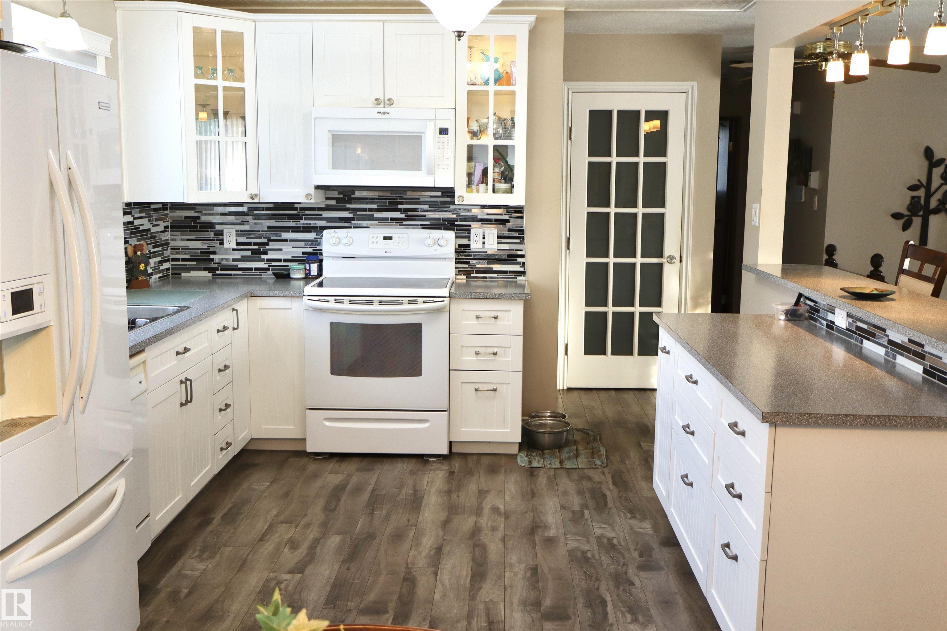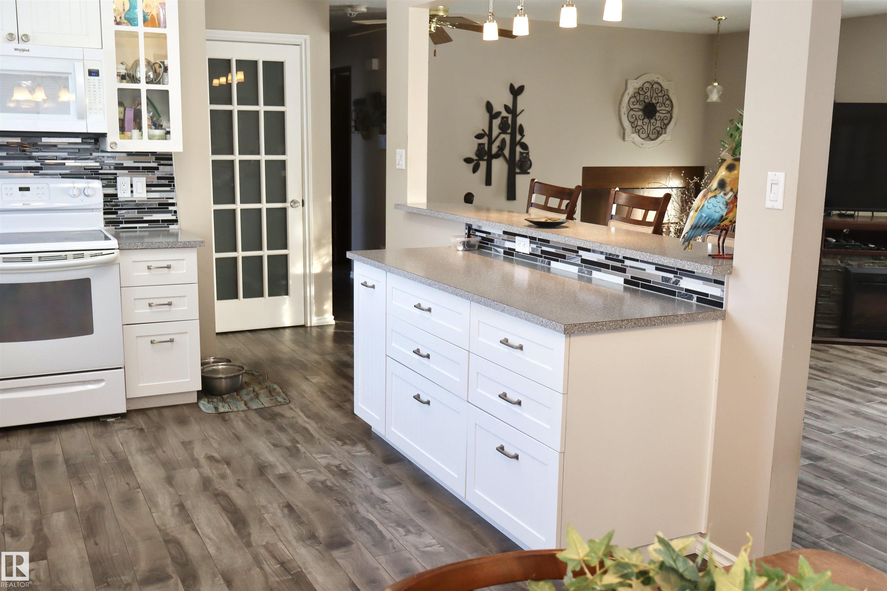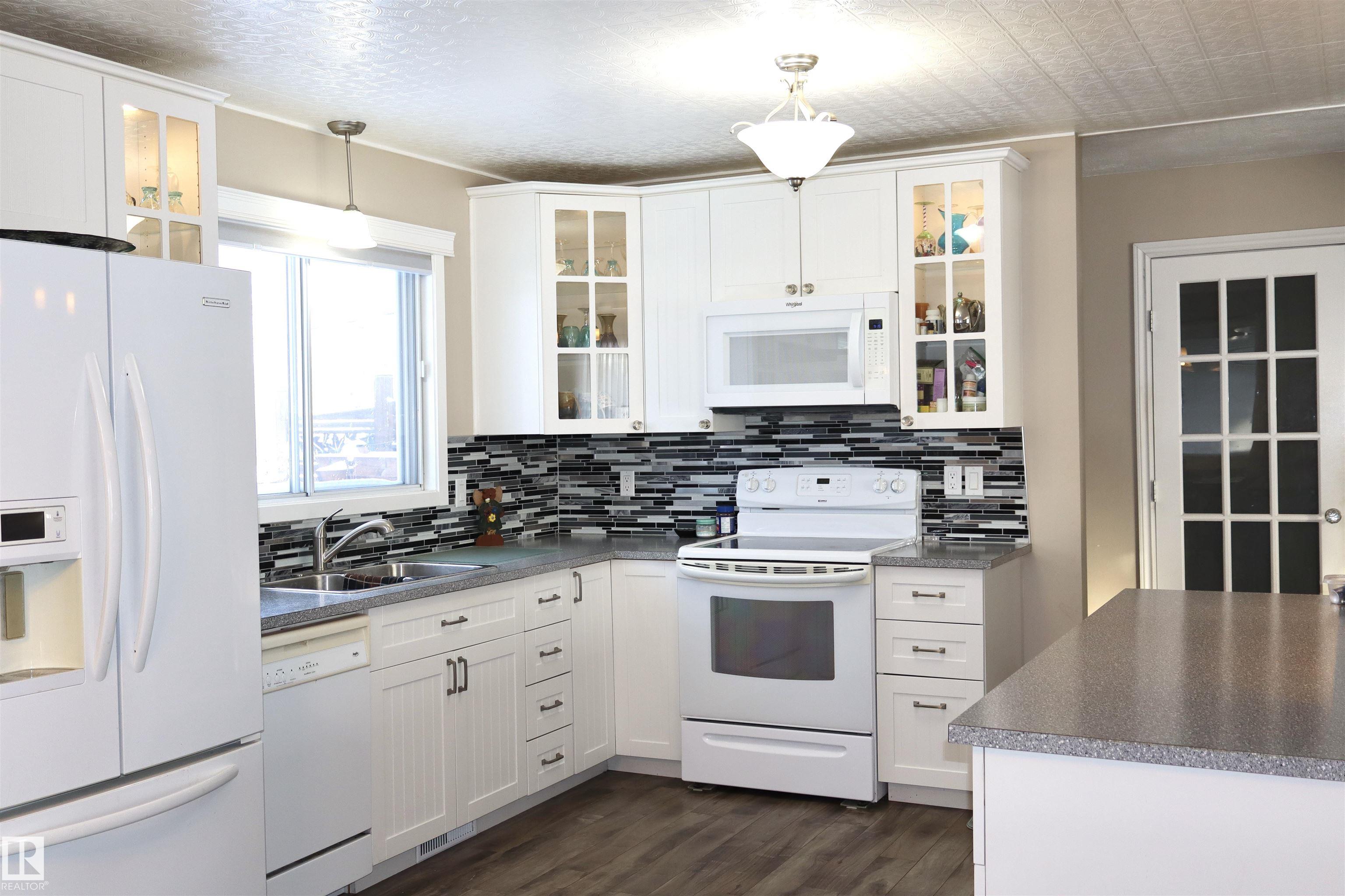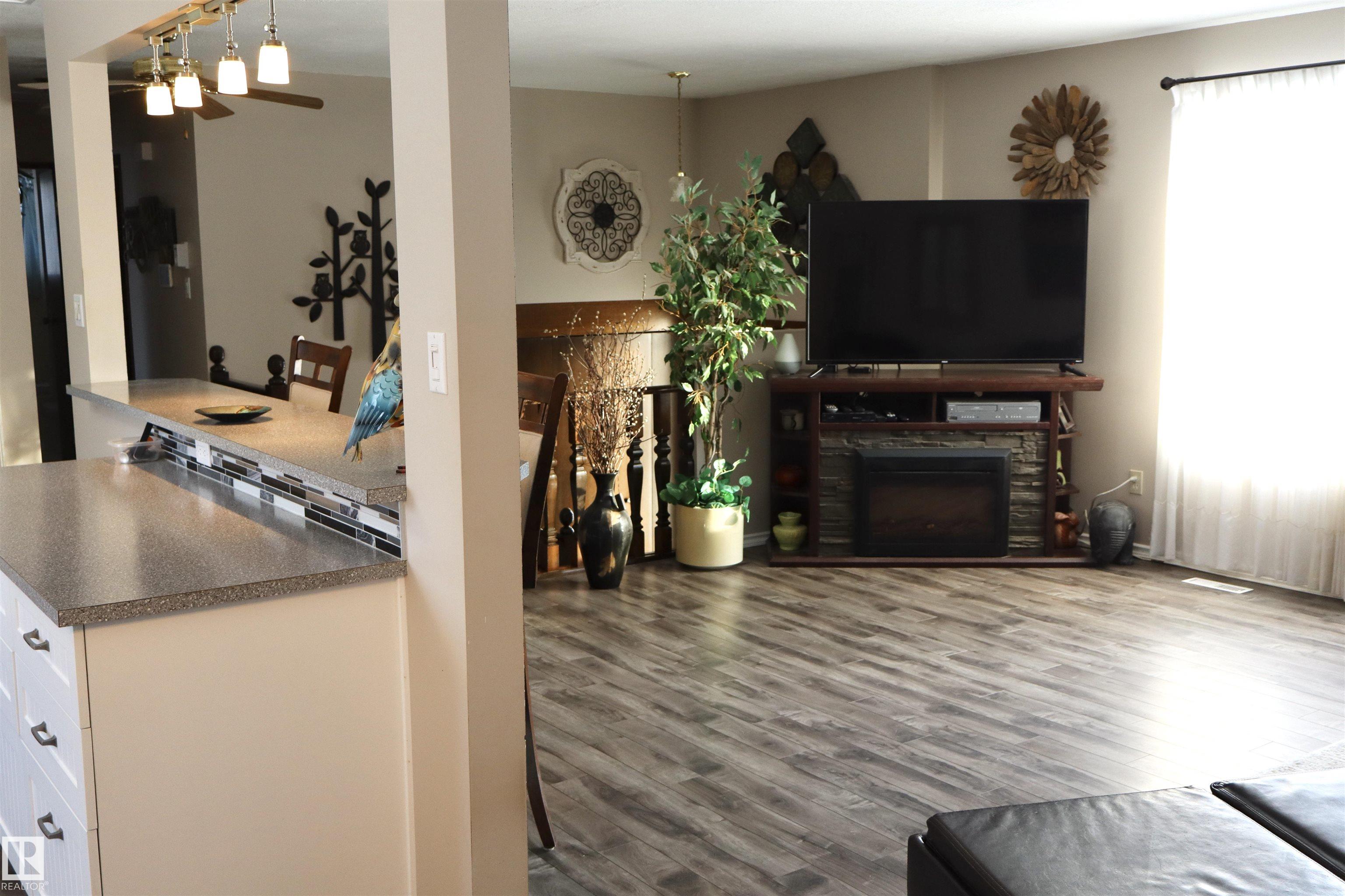 Welcome to this beautifully maintained bi-level home backing onto mature trees and scenic walking trails, offering privacy and a peaceful setting. Inside, you?ll find a stunning new kitchen with modern white cabinetry, sleek countertops, and stylish backsplash, perfectly designed for everyday living and entertaining.The upper level features two bedrooms and large family bathroom as well. Large windows fill the home with natural light, creating a warm and inviting atmosphere.The lower level has an abundance of potential and space! Step outside to an amazingly landscaped backyard retreat featuring a hot tub and cozy outdoor fireplace area?ideal for relaxing or hosting guests year-round. Completing the property is an oversized double detached garage with plenty of room for vehicles, storage, or workspace. A perfect blend of updated interior comfort and exceptional outdoor living in a sought-after location! A lovely home in a wonderful location and community!