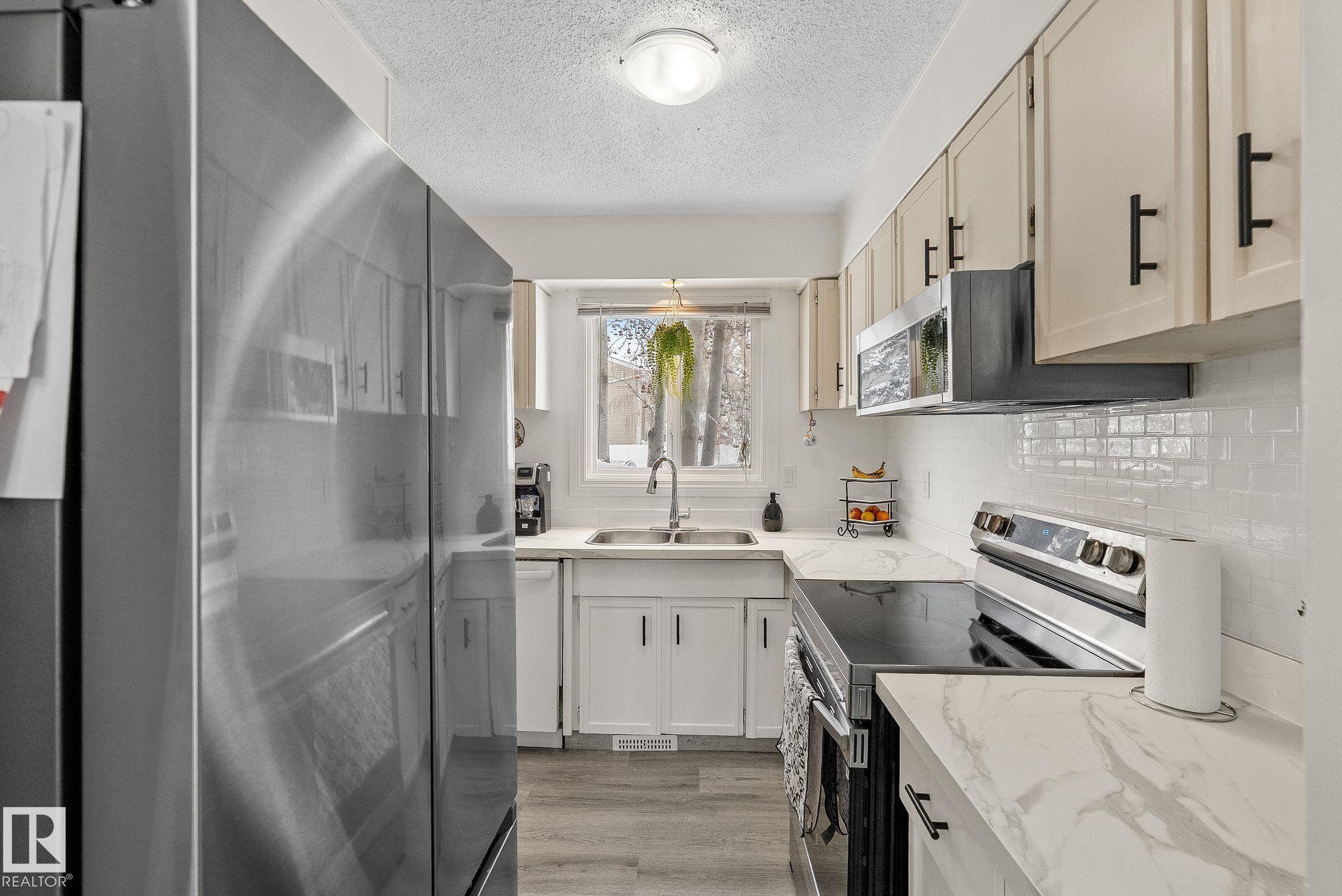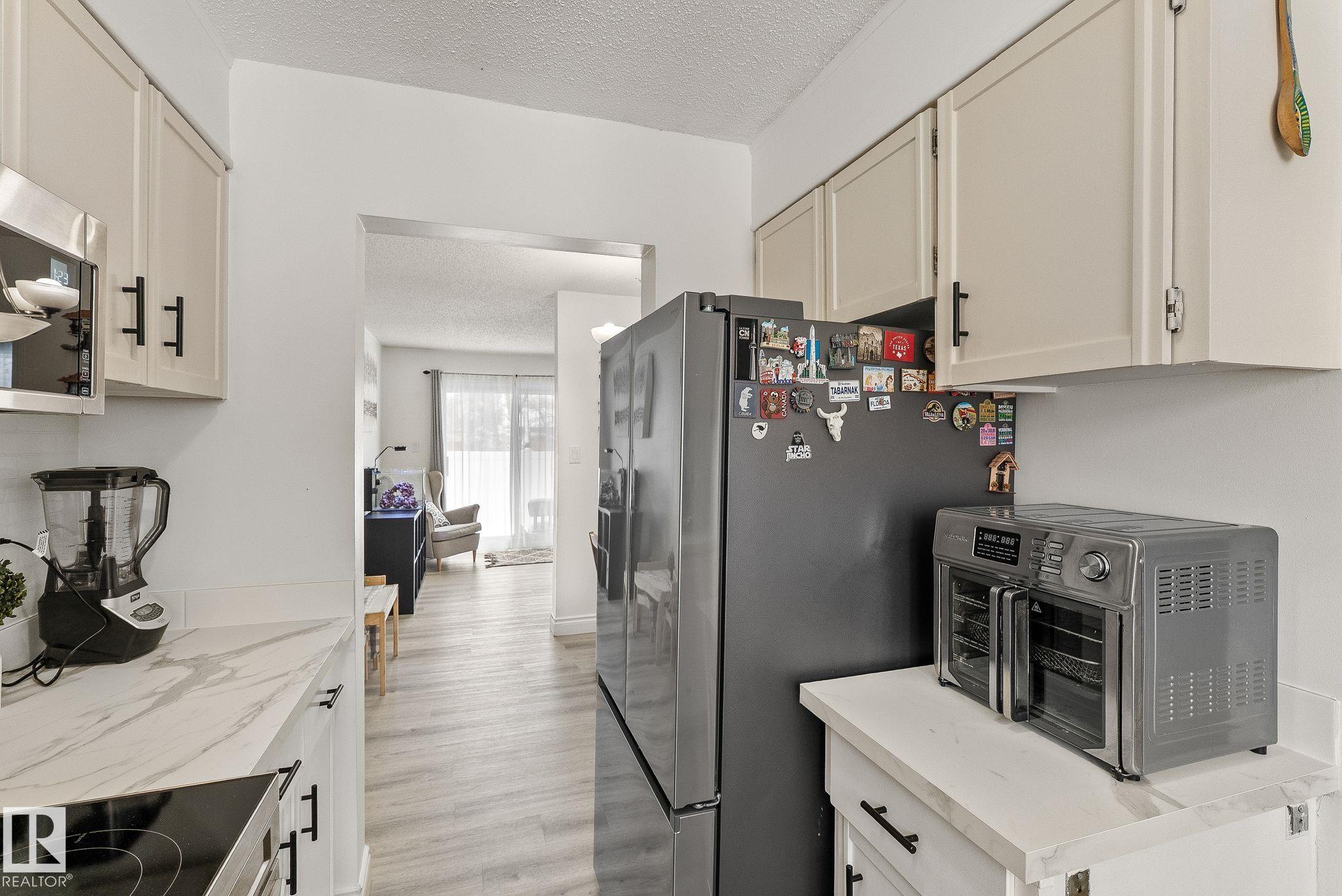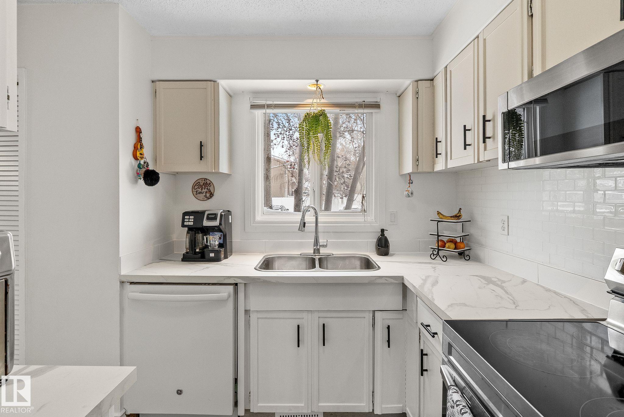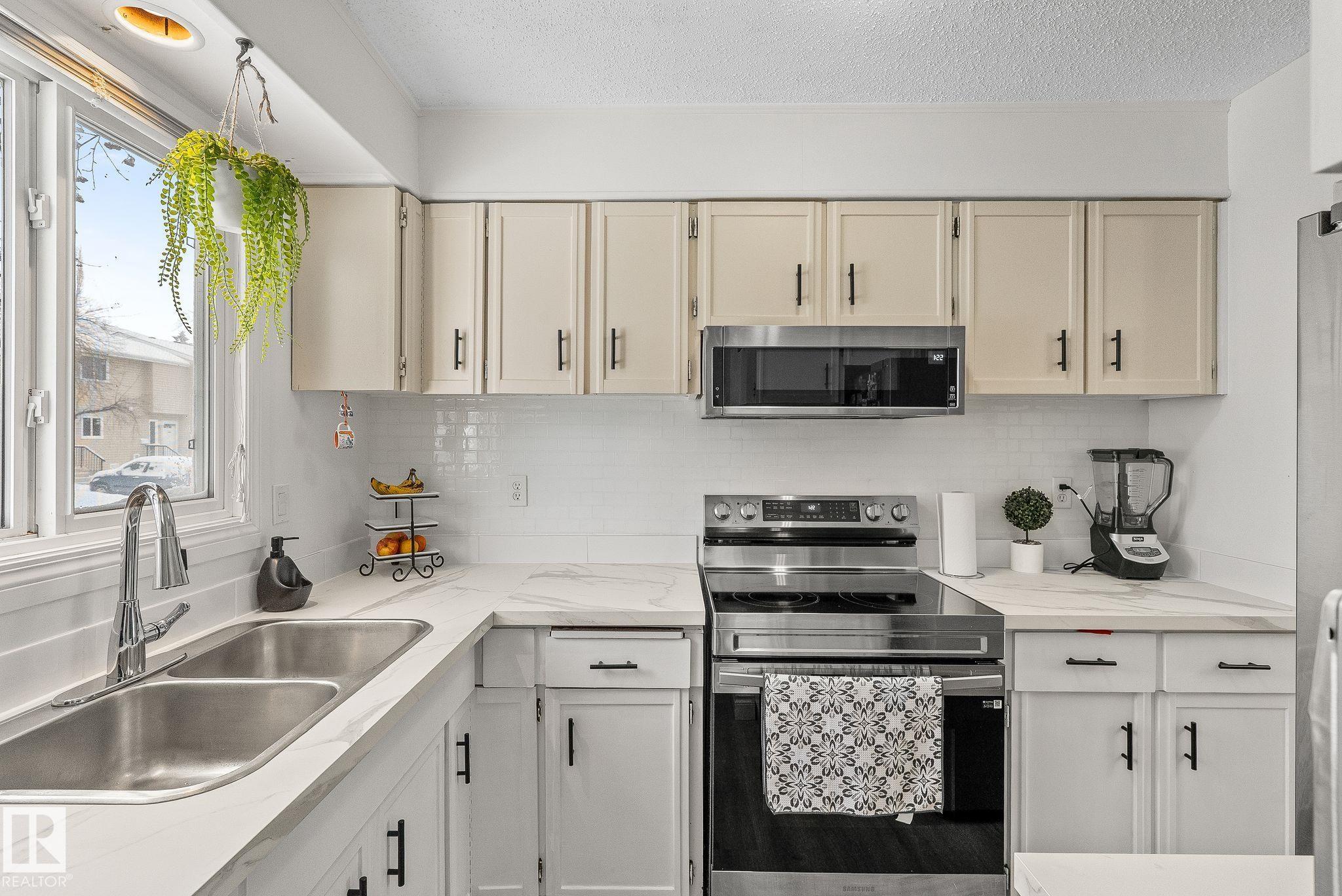 Perfect for empty nesters or first-time home buyers, this cozy 3 bed|1.5 bath two-storey townhouse offers incredible value and comfort. Enjoy a west-facing, fully fenced, low-maintenance backyard. This well-maintained home has many upgrades: LVP FLOORING, APPLIANCES, COUNTERTOPS, and BATHROOM VANITIES. It is centrally located, sitting right beside elementary and junior high schools with plenty of amenities just steps away.The bright main floor features a functional L-shaped kitchen, a separate dining area, and a spacious living room with large windows overlooking the backyard. Upstairs, you?ll find three generously sized bedrooms?including a primary suite with a large closet, and a 4-piece Jack & Jill bathroom with access from both the hallway and the primary bedroom.The basement offers loads of storage and laundry area. Outside, the home includes one front parking stall, and the condo fees cover landscaping, snow removal, exterior maintenance, and garbage pickup, with plenty of visitor parking available.