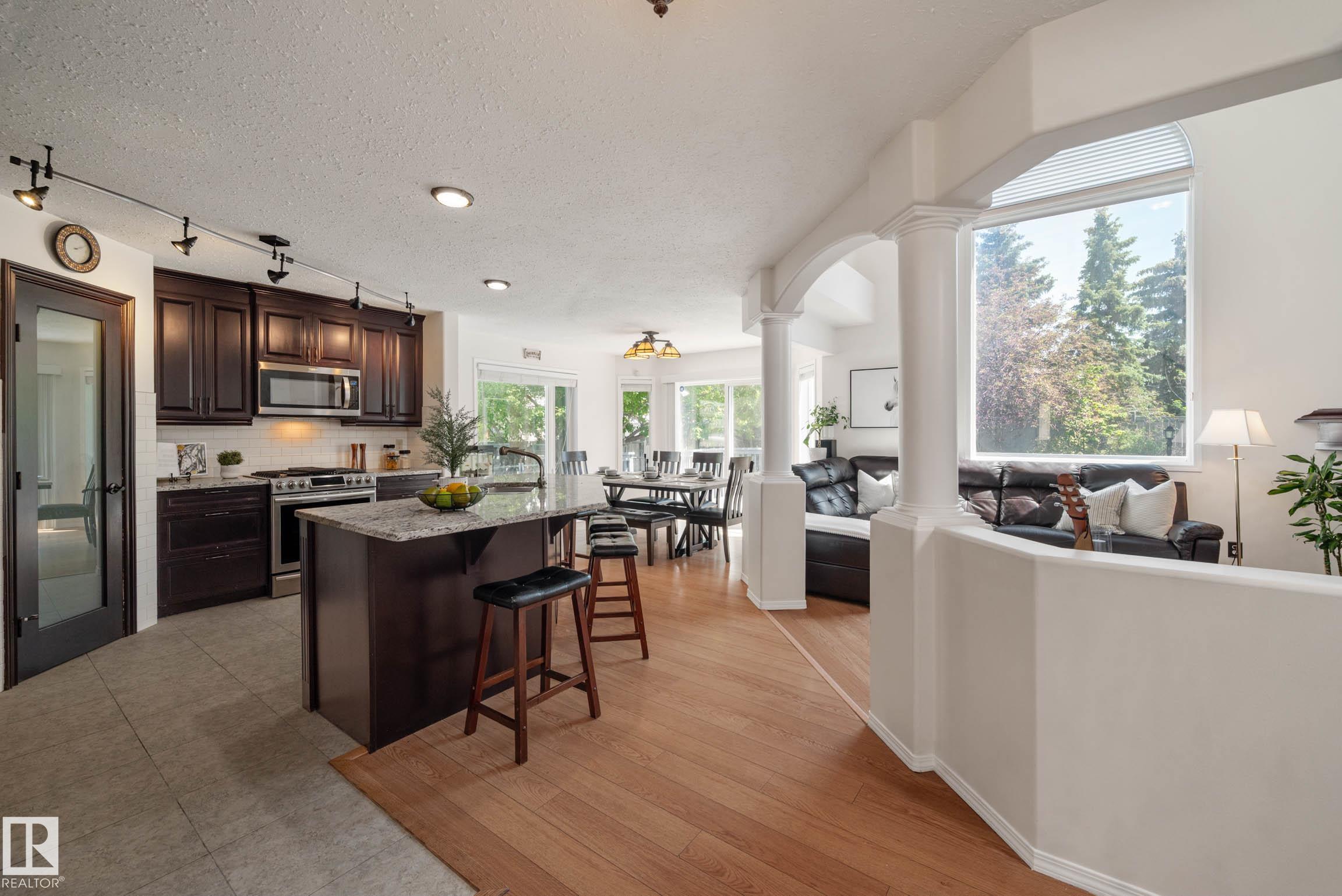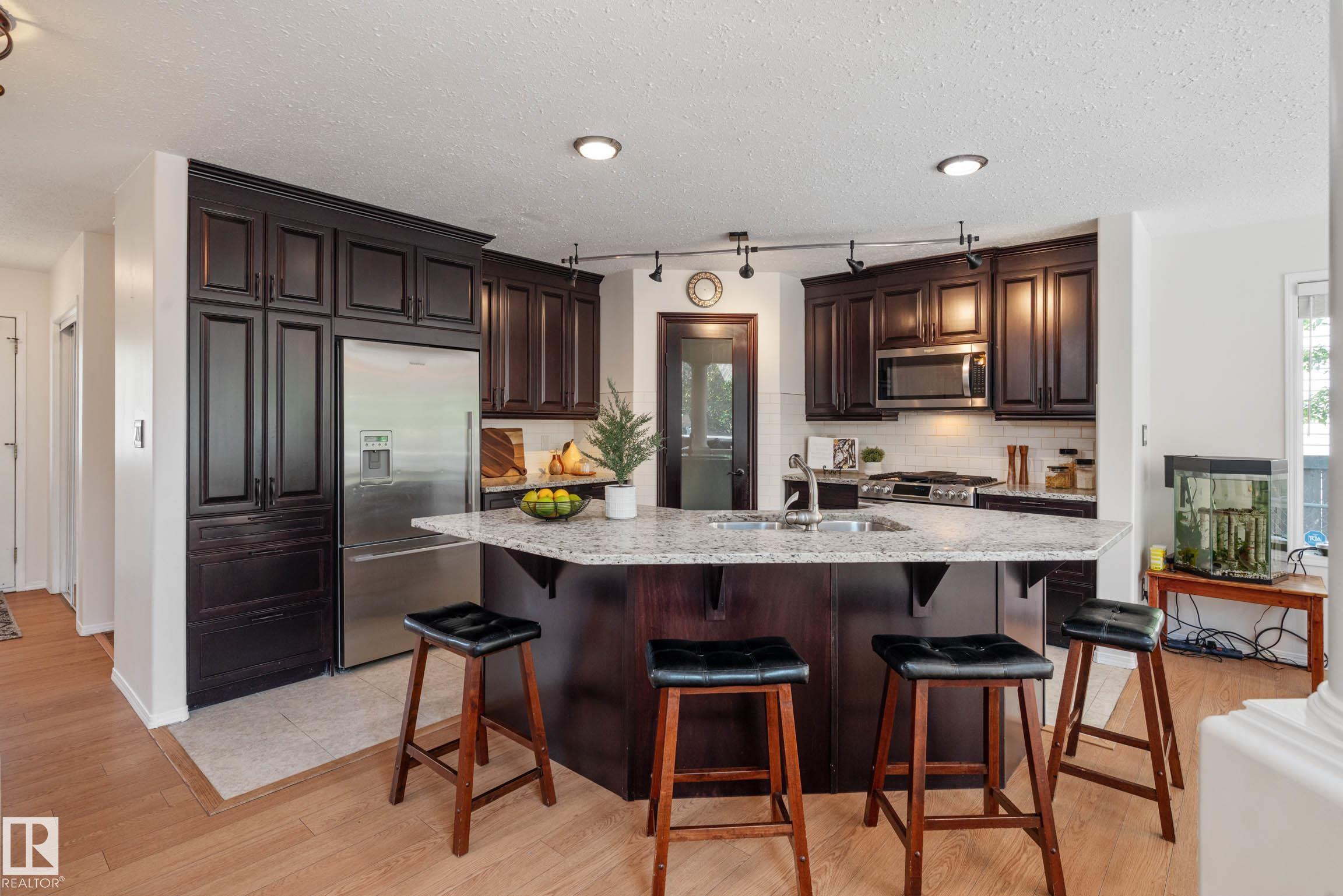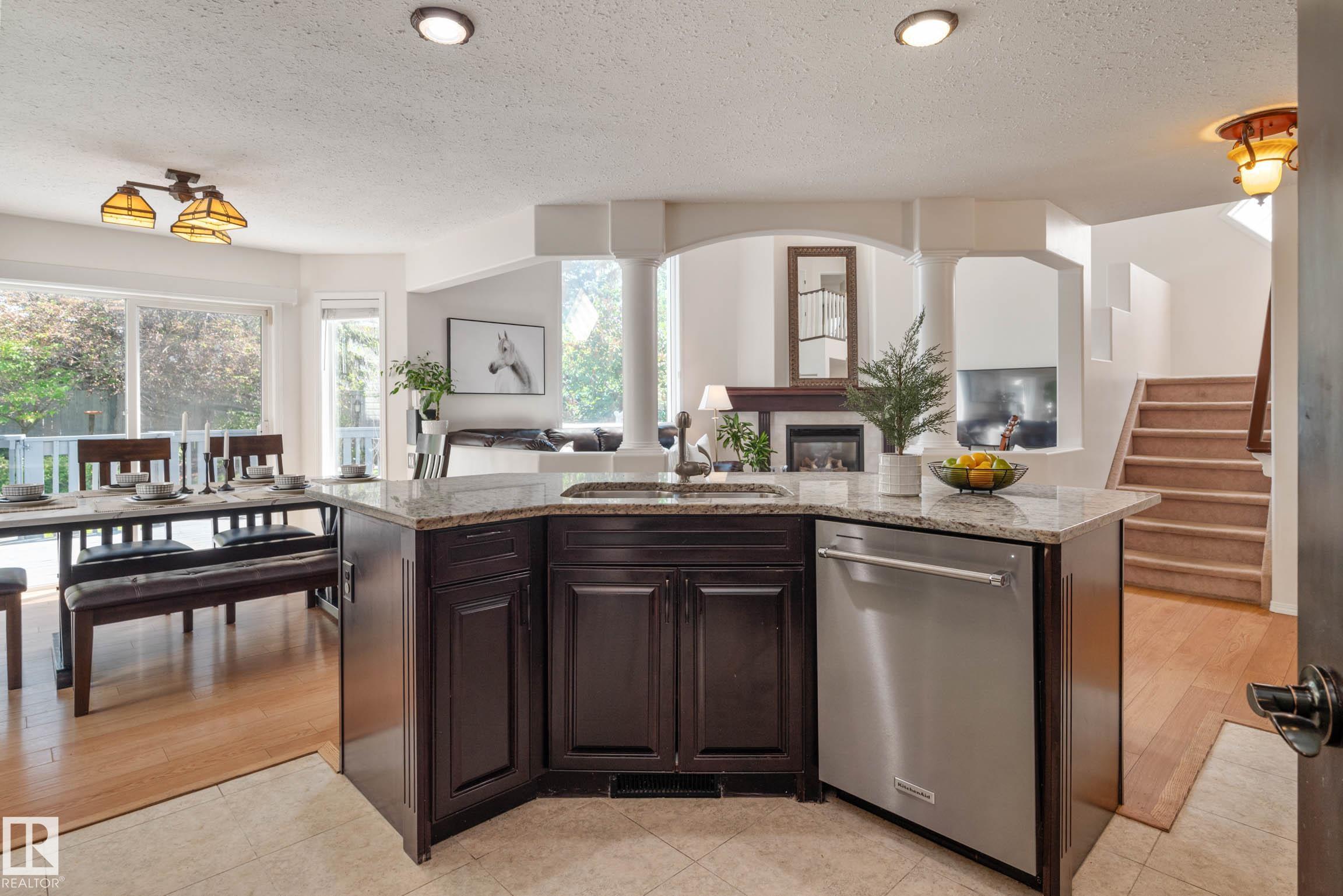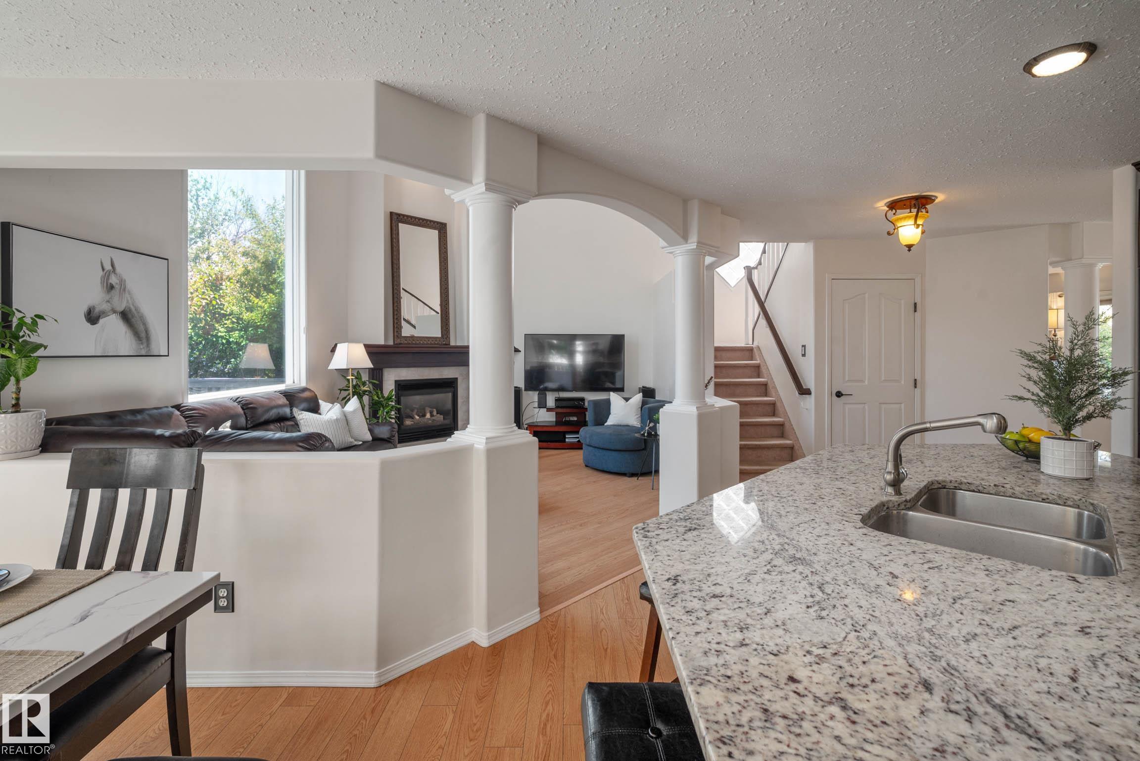 Welcome to Kiniski Gardens with this gorgeous two-storey home built by Coventry Homes. Perfectly located in Cul-de-sac w/walking paths, trails, local amenities, PLUS Kulawy Lake & Creek?s Crossing Park just a stroll away. Recently completed basement features an IN-LAW SUITE W/KITCHENETTE, 2 bedrooms, 4 pc bath & plenty of storage to meet the demands of your growing/extended family. Welcoming foyer is complimented by front office, powder room & convenient main-floor laundry room. Soaring ceilings in GREAT ROOM, oversized picture window & espresso mantle over gas fireplace adds to the grandeur of space. Delightful kitchen showcases, centre island, granite countertops, corner pantry, to-ceiling cabinetry, upscale SS appliances w/gas range & dinette w/amazing views of full width back deck (freshly painted), lush landscaping & dog run. Open-to-below, upper-level greets you w/2 spacious bedrooms, 4pc bath & owner?s suite w/divine 4pc ensuite & WIC. New shingles, central A/C & heated garage w/oversized driveway.