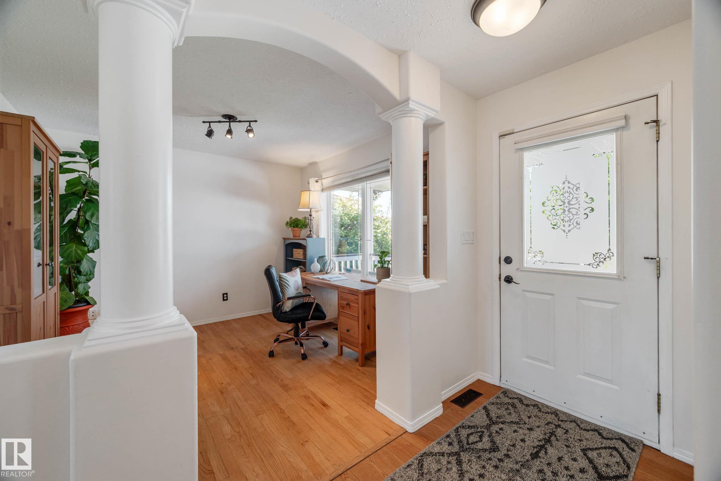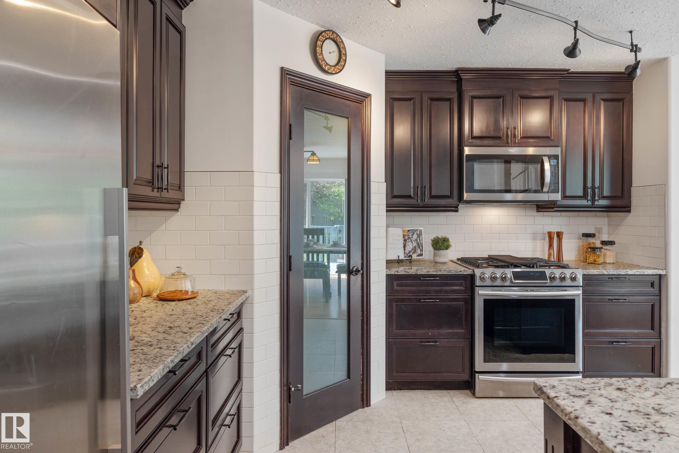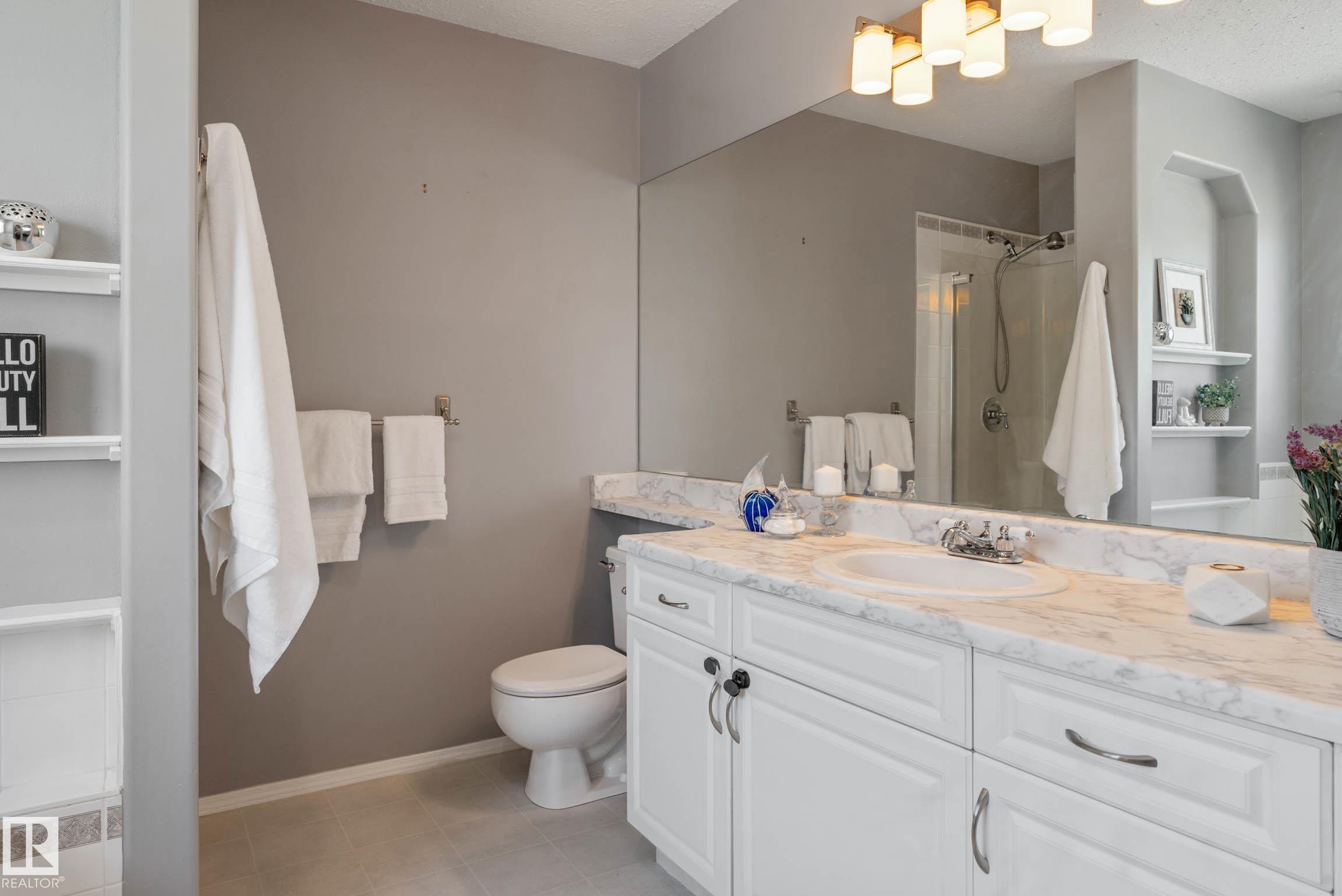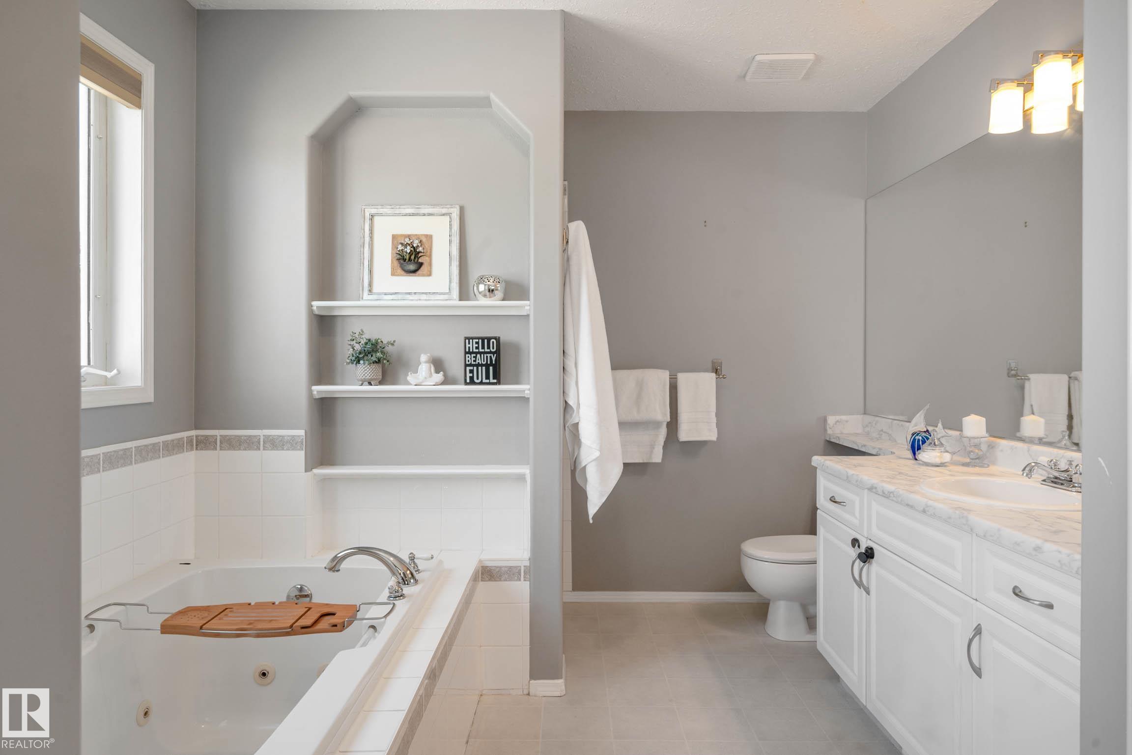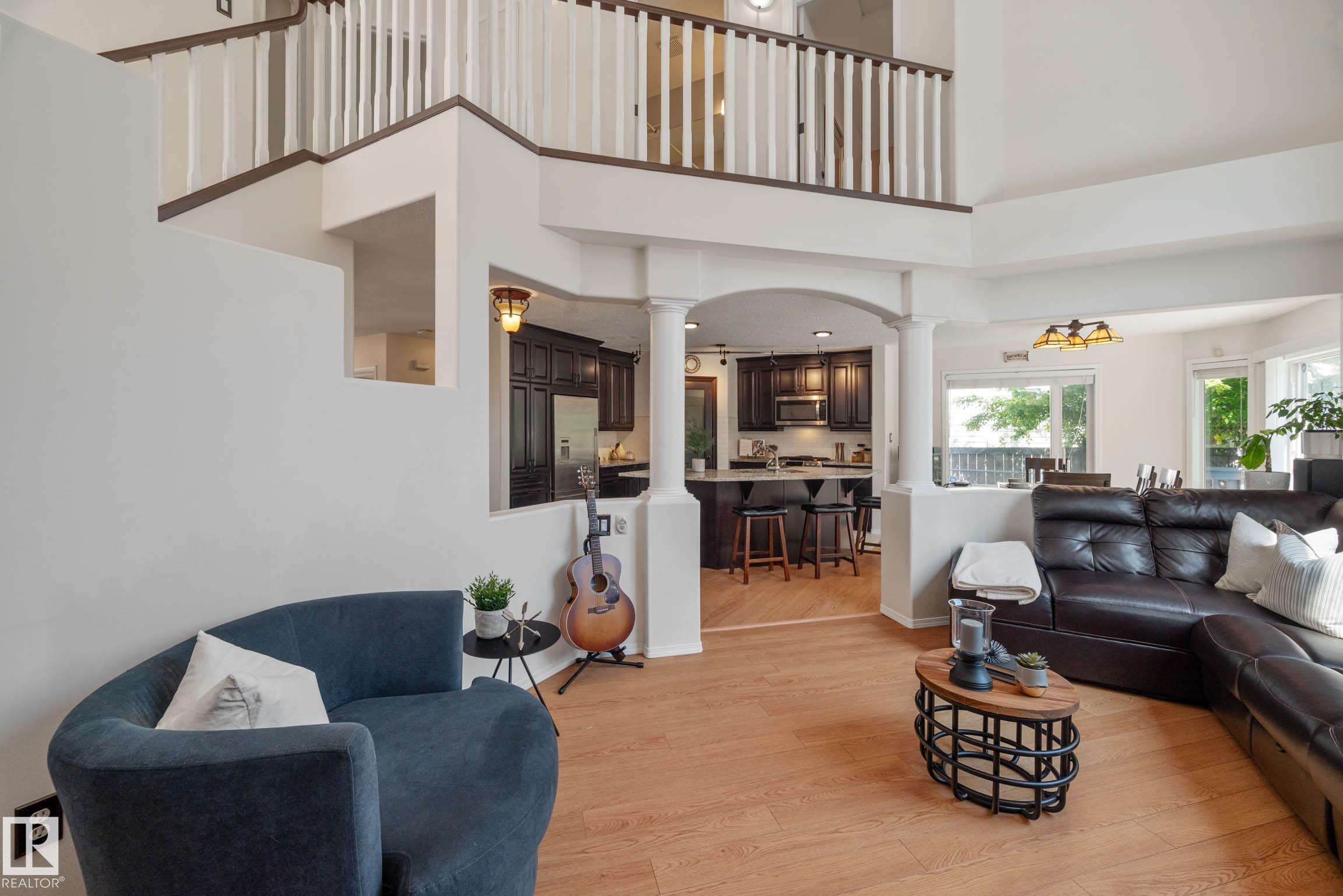 Welcome to Kiniski Gardens with this gorgeous two-storey home built by Coventry Homes. Perfectly located in Cul-de-sac w/walking paths, trails, local amenities, PLUS Kulawy Lake & Creek?s Crossing Park just a stroll away. Recently completed basement features an IN-LAW SUITE W/KITCHENETTE, 2 bedrooms, 4 pc bath & plenty of storage to meet the demands of your growing/extended family. Welcoming foyer is complimented by front office, powder room & convenient main-floor laundry room. Soaring ceilings in GREAT ROOM, oversized picture window & espresso mantle over gas fireplace adds to the grandeur of space. Delightful kitchen showcases, centre island, granite countertops, corner pantry, to-ceiling cabinetry, upscale SS appliances w/gas range & dinette w/amazing views of full width back deck (freshly painted), lush landscaping & dog run. Open-to-below, upper-level greets you w/2 spacious bedrooms, 4pc bath & owner?s suite w/divine 4pc ensuite & WIC. New shingles, central A/C & heated garage w/oversized driveway.