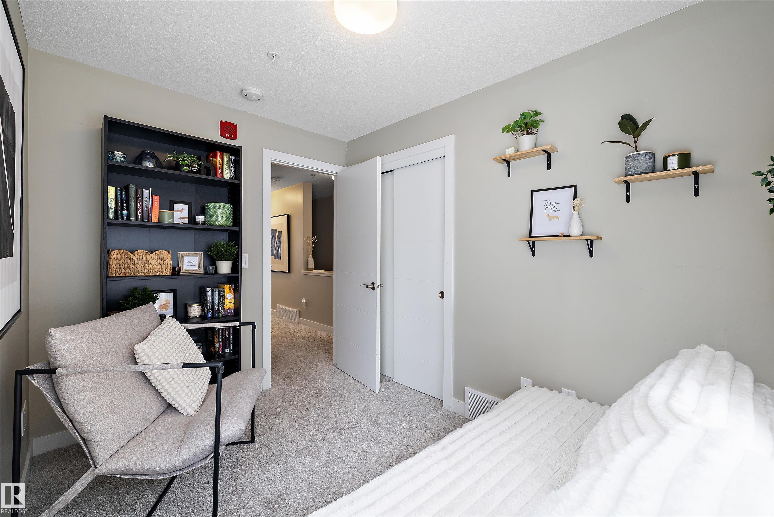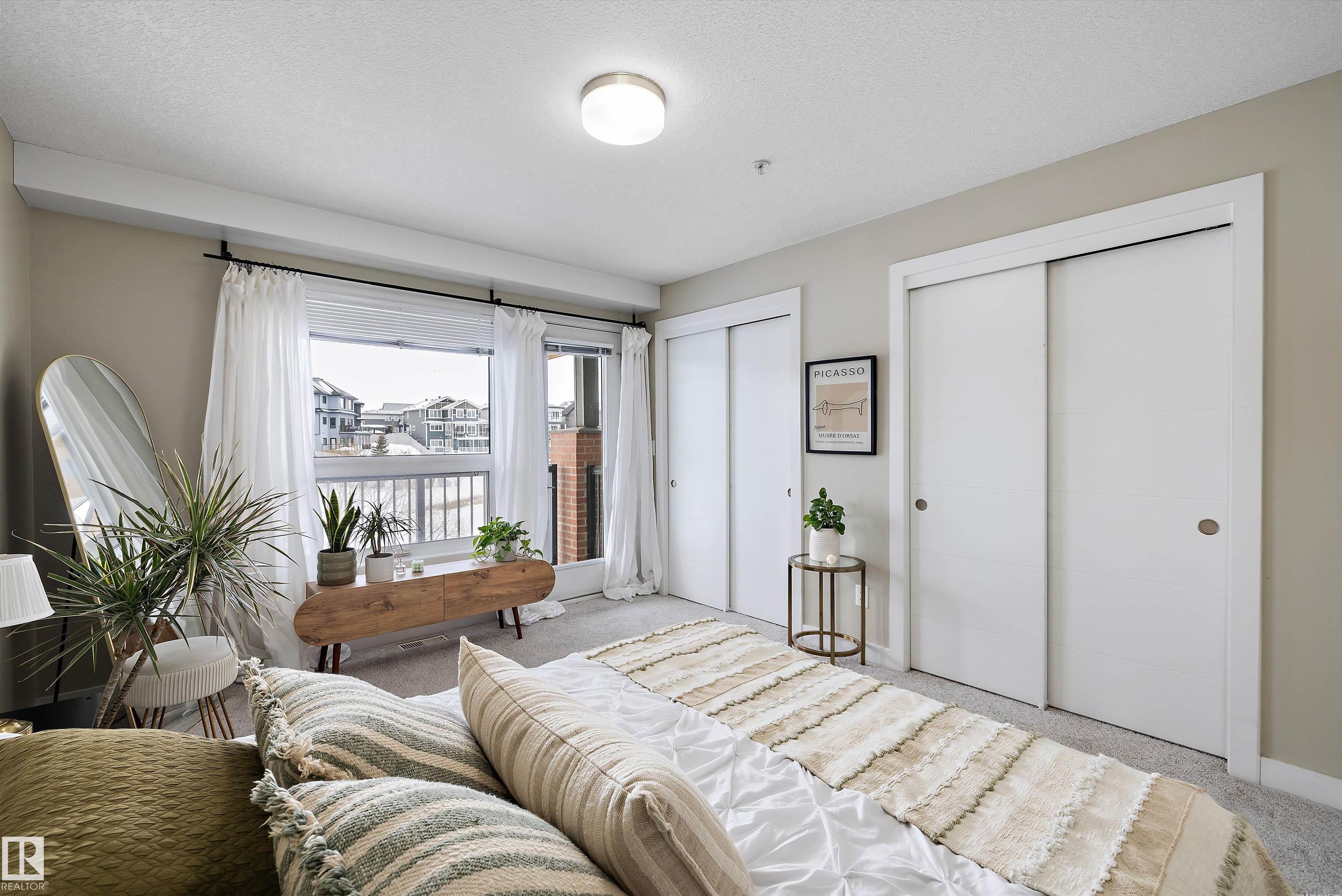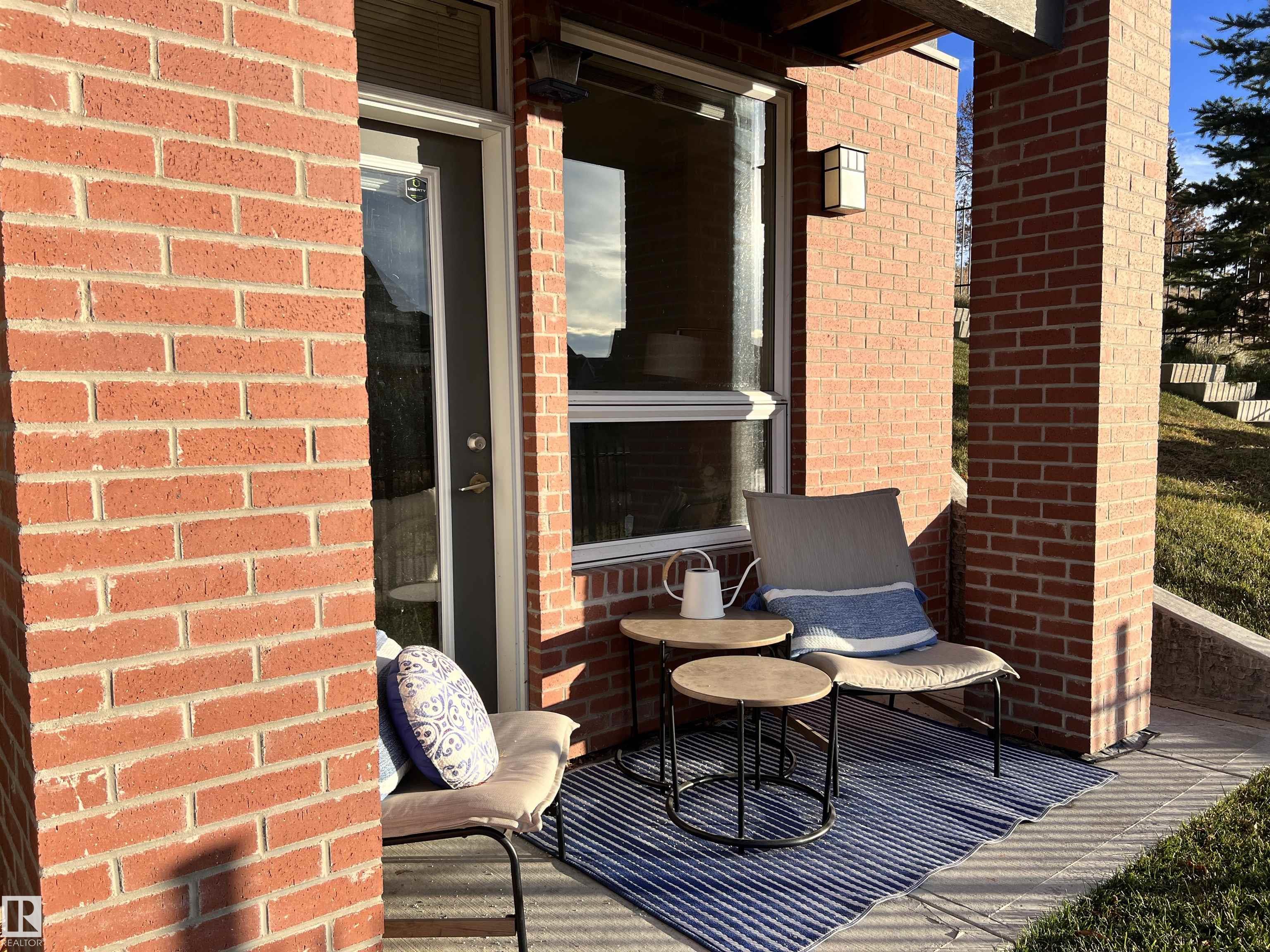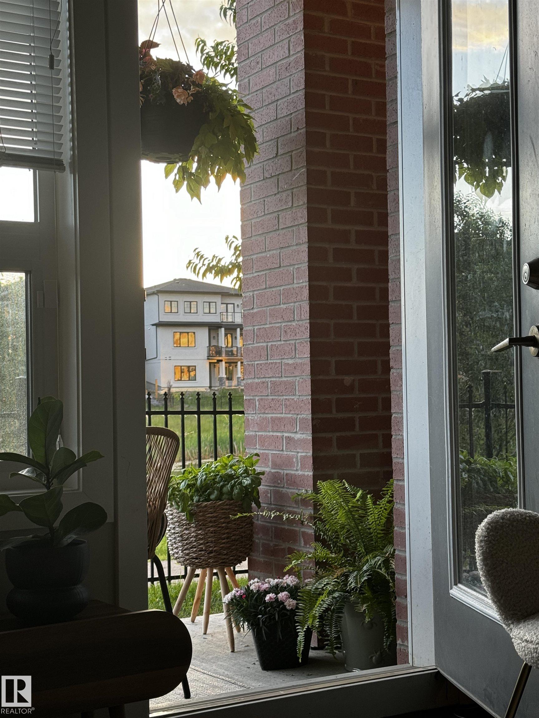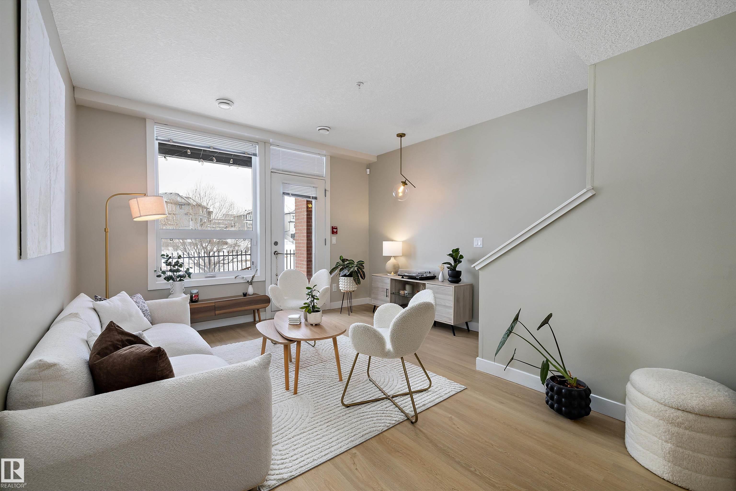 Welcome to this bright and beautifully maintained corner unit townhouse in the sought-after community of Griesbach. Offering nearly 1,000 sq ft of thoughtfully designed living space, this 2-bedroom, 1-bath home features an open-concept main floor with a modern kitchen, spacious living and dining area, and plenty of natural light throughout. One of the standout features is the walk-out patio backing onto a peaceful pond and walking trails, creating a beautiful setting to enjoy morning coffee or evening sunsets. Upstairs you?ll find two generously sized bedrooms, a full bathroom, and convenient upper-floor laundry, while the primary bedroom also features its own private balcony. Located in one of Edmonton?s most desirable communities, surrounded by parks, lakes, and trails with easy access to shopping, transit, and downtown, this home offers the perfect blend of comfort, privacy, and scenic living.