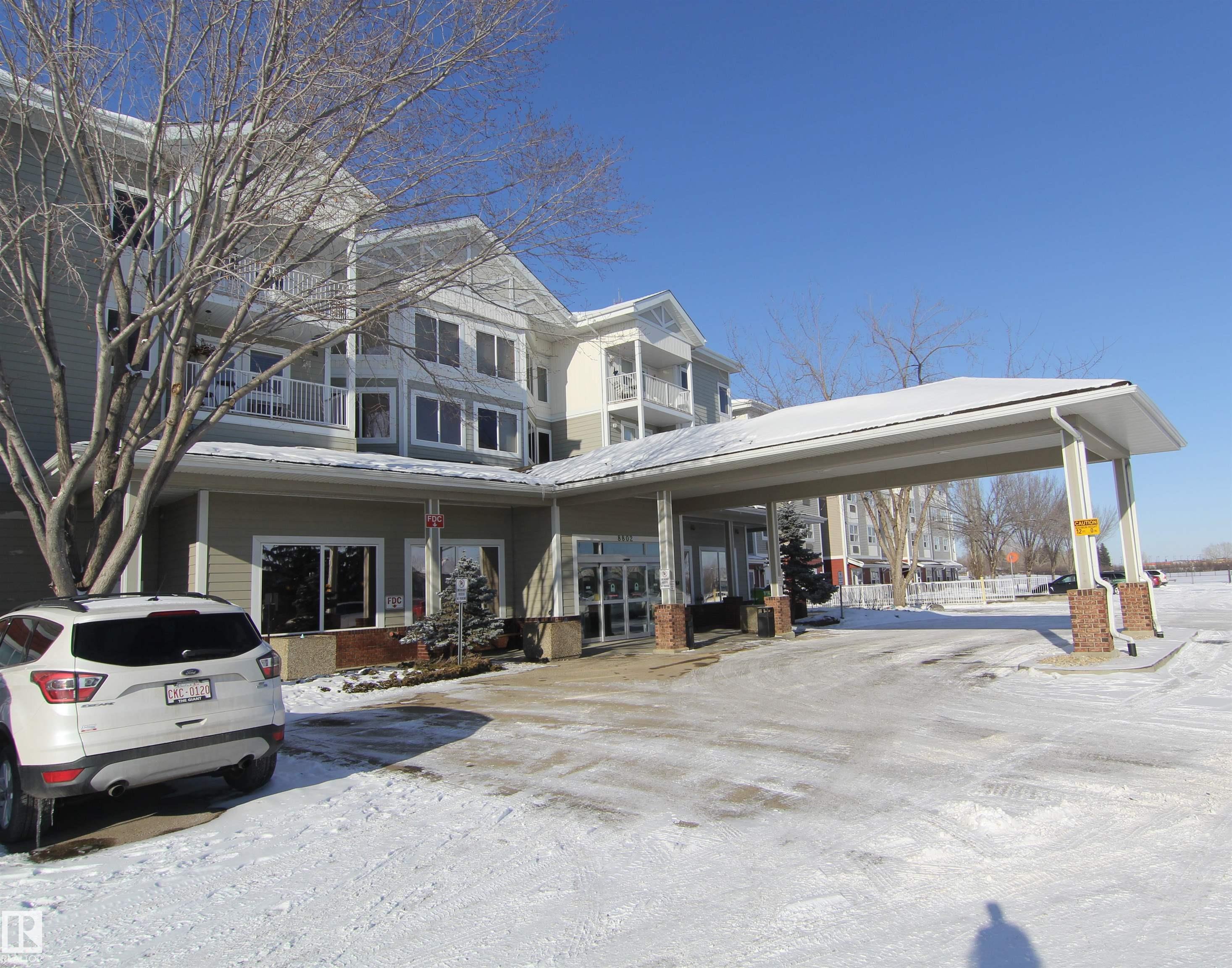 Ideal main floor 1-bedroom condo with quick access to parking and a private concrete patio for a small table and chairs. Bright eat-in kitchen with ample cabinetry and counter space, plus newer ceramic top stove and fridge. Spacious bedroom and 3-piece bath with wide doorway for wheelchair/walker accessibility. Luxurious vinal plank flooring, Newer fridge, electric stove, backsplash, Hunter Douglas blinds, wood baseboards and air-conditioning. Monthly fee of $1,106.50 includes $686.50 condo fee (heat, water, cable, insurance, exterior maintenance, reserve fund, full building amenities) plus $420 meal/service package featuring $12/day meal credit, 24-hour medical monitoring pendant, bi-monthly housekeeping and laundry service. Enjoy excellent amenities at Fort Gardens at Southfort Gardens including dining room, social programs, billiards, shuffleboard, craft room, social lounges, on site hairdresser, fitness room, chapeland guest suites (nominal fee). 15-day possession available!
