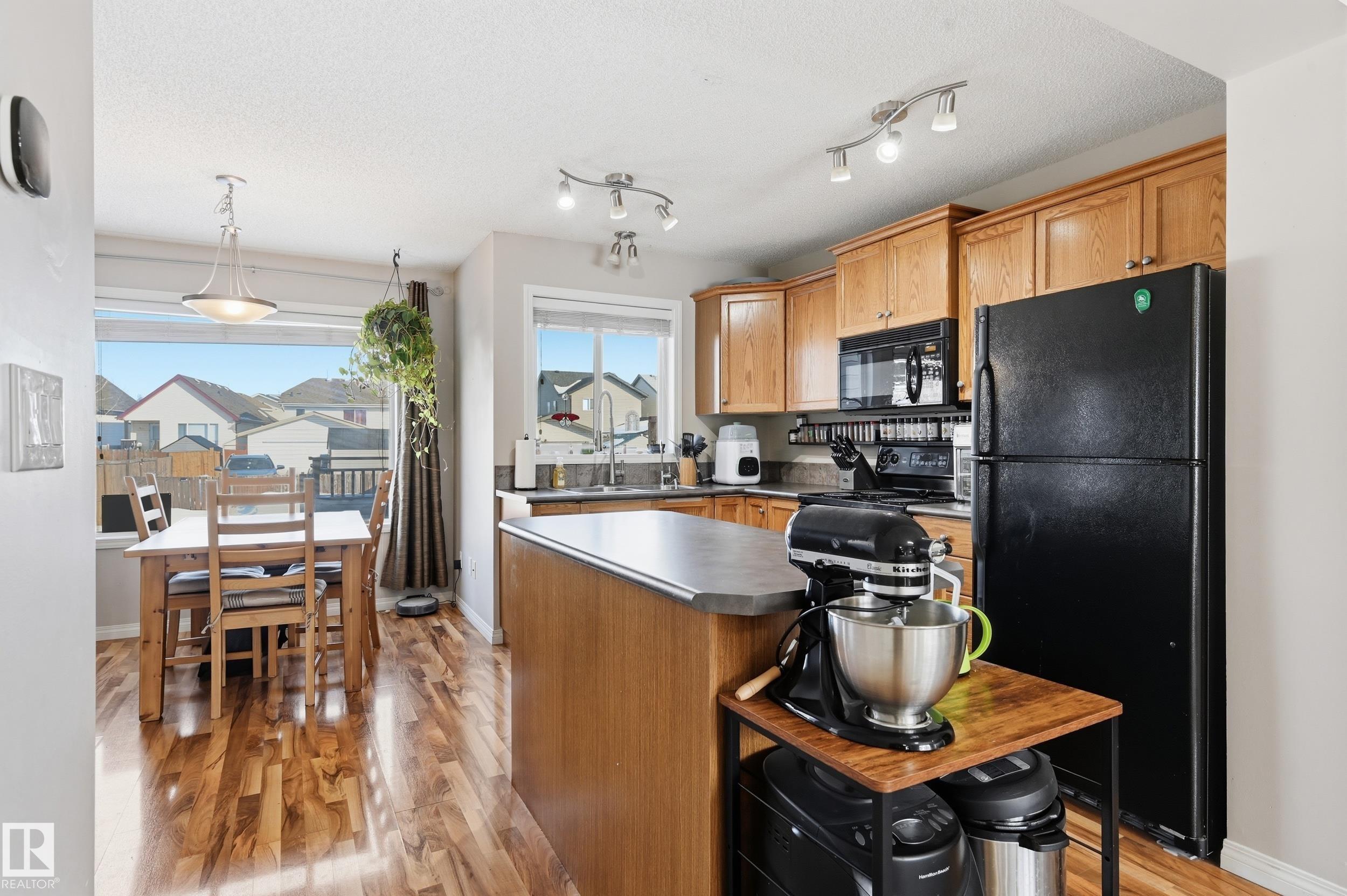 Perfect starter home!This well maintained home features an open concept main floor with rich walnut laminate flooring throughout.The kitchen offers ample cabinetry and a large centre island.The dining area overlooks the fenced backyard and deck while the spacious living room features a cozy gas fireplace with TV niche above.Upstairs you?ll find 3 bedrooms including a primary suite with walk in closet plus a main bathroom with tile flooring and relaxing soaker tub.The basement provides excellent storage with extensive shelving and great potential for future development.Recent upgrades include new shingles,furnace and hot water tank.Step outside to enjoy the large deck overlooking the nicely landscaped yard.The lot is an impressive 135 ft deep ? the largest on the street.The property sits beside a side lane and offers rear drive access to a 20x20 parking pad ready for a future double garage. Close to all schools, parks, transportation and shopping! Quick possession possible.