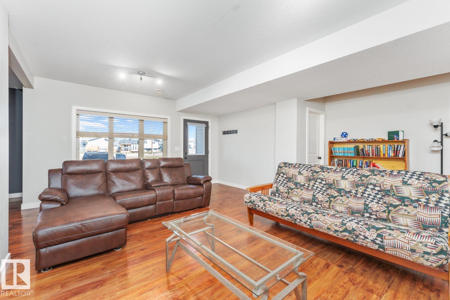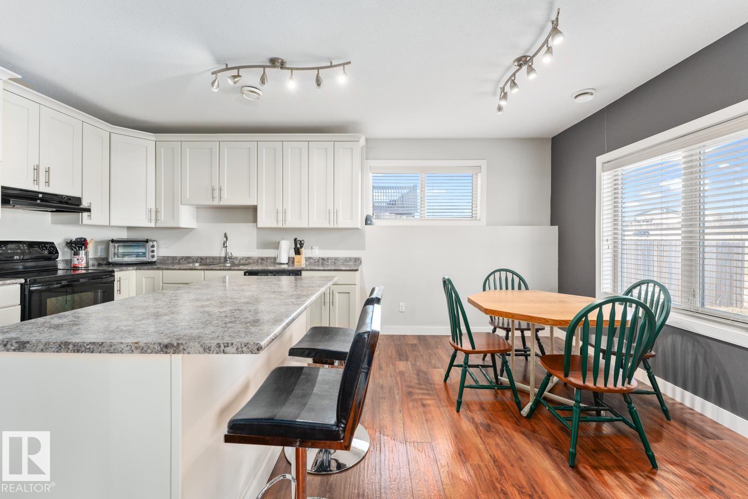 BEAUTIFUL WALKOUT BUNGALOW in Cold Lake North! The upper floor has 2 bedrooms, 2 bathrooms, main floor laundry and full living space including custom kitchen, gas fireplace with slate accent wall, engineered hardwood and direct deck access. The primary has a 3 piece ensuite bathroom. The LOWER level has heated floors with open concept second kitchen, dining & living room space. Modern finishings, eat up middle island, 2 full bedrooms, 4 piece bathroom & in-suite laundry. Big HUGE windows in this space with 9' ceilings and a walkout entry. All appliances included up and down. Located in a cul de sac in a great neighbourhood.