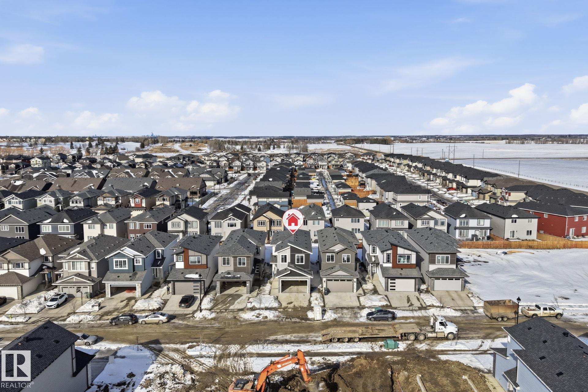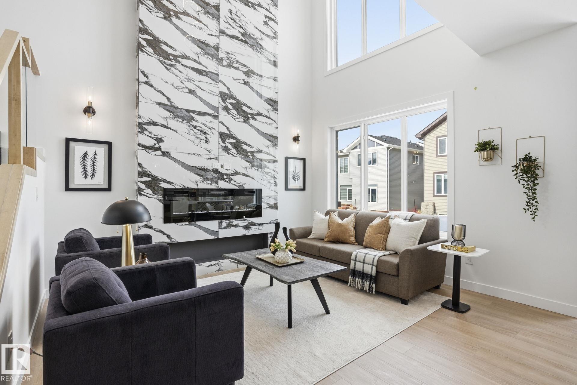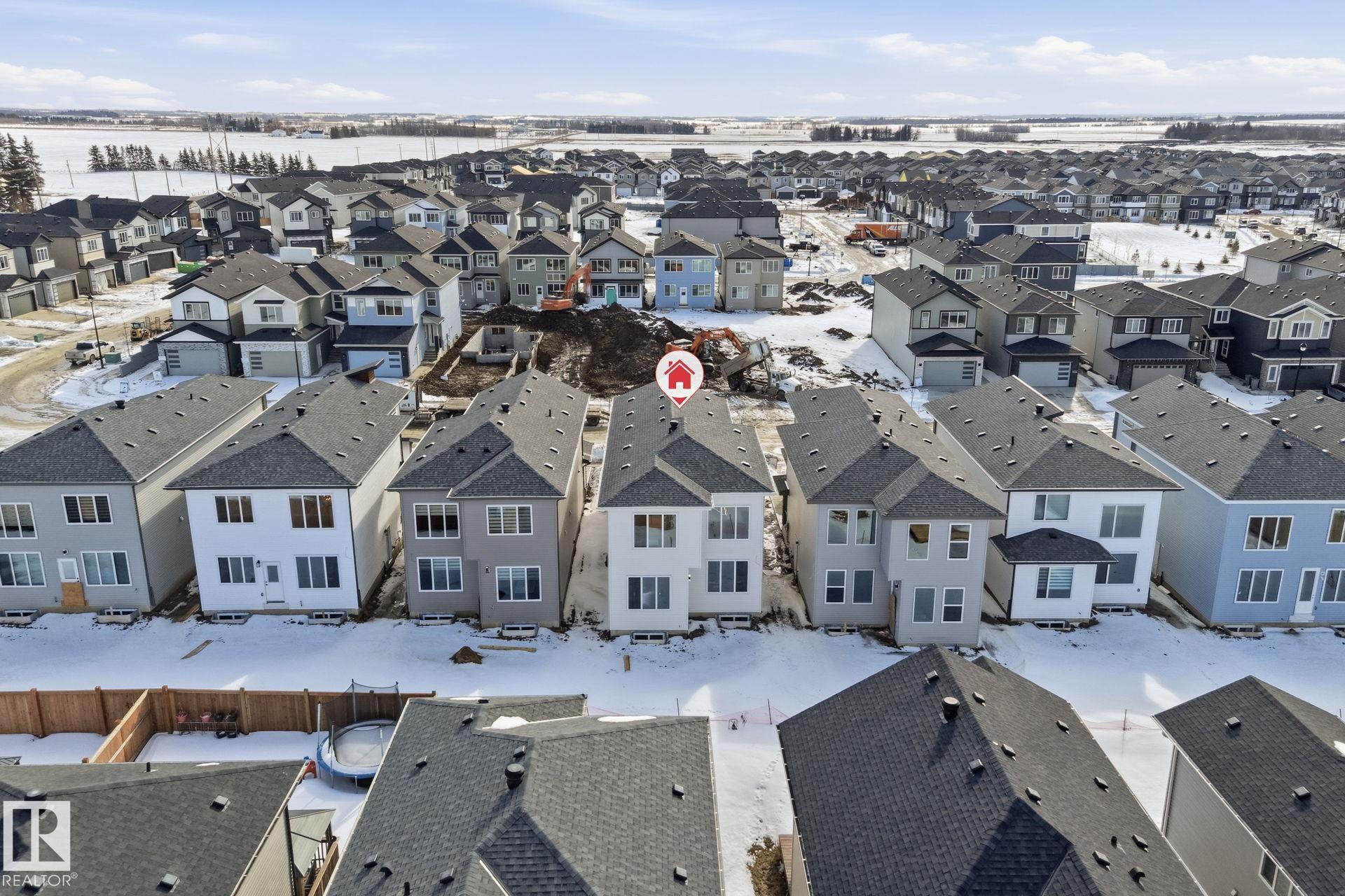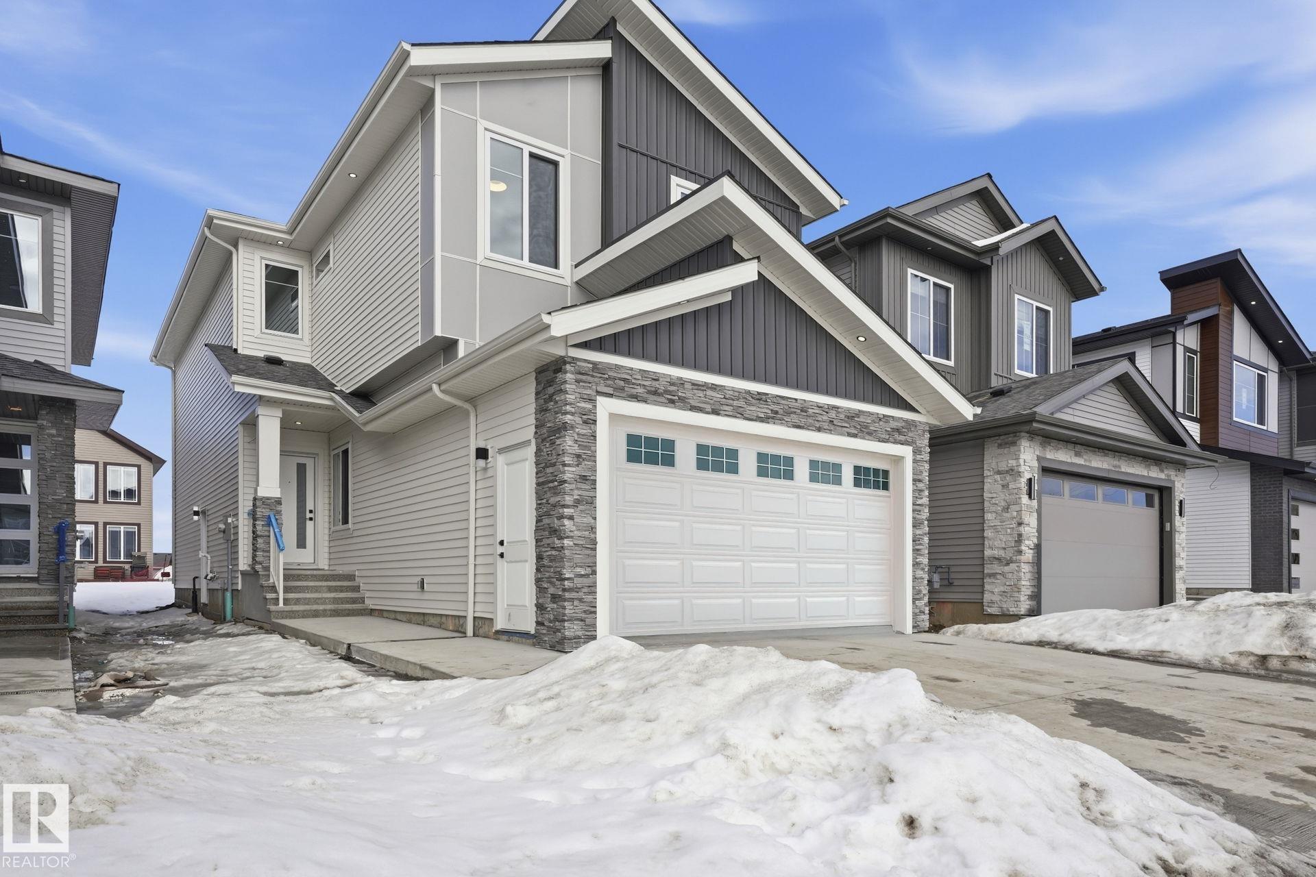 Experience refined living in this quick-possession luxury home in Beaumont, featuring a double attached garage and a separate side entrance. The main floor is thoughtfully designed with a office space, elegant 3-pc bath, and spacious mudroom, leading into a breathtaking open-concept living space. A chef-inspired gourmet kitchen is complemented by a dedicated spice kitchen - perfect hosting the whole family - while the great room impresses with a striking tiled fireplace and dramatic open-to-above ceilings that flood the home with light. Upstairs, discover a beautifully planned retreat with a bonus space, 4pc bath and convenient laundry with sink and quartz countertop. Three bedrooms include a lavish primary suite showcasing a spa-inspired 5-pc ensuite with double sinks, a seated makeup vanity, freestanding tub, and a custom walk-in closet designed for elevated everyday living. $5,000 appliance credit included to select your choice of appliances!