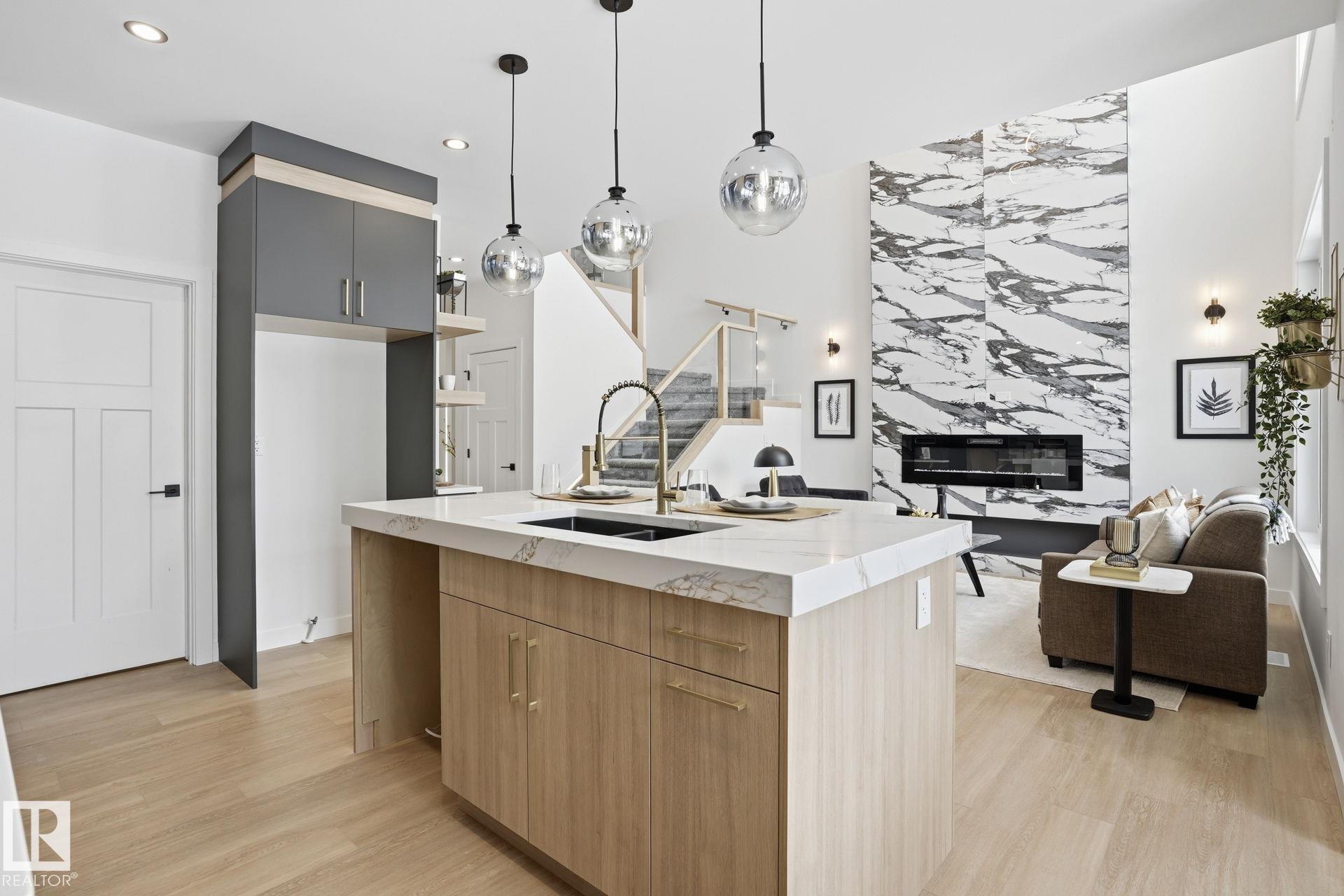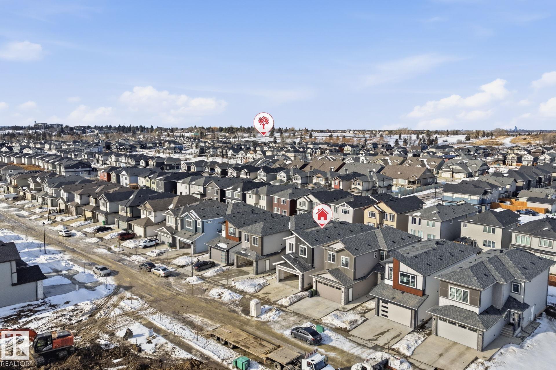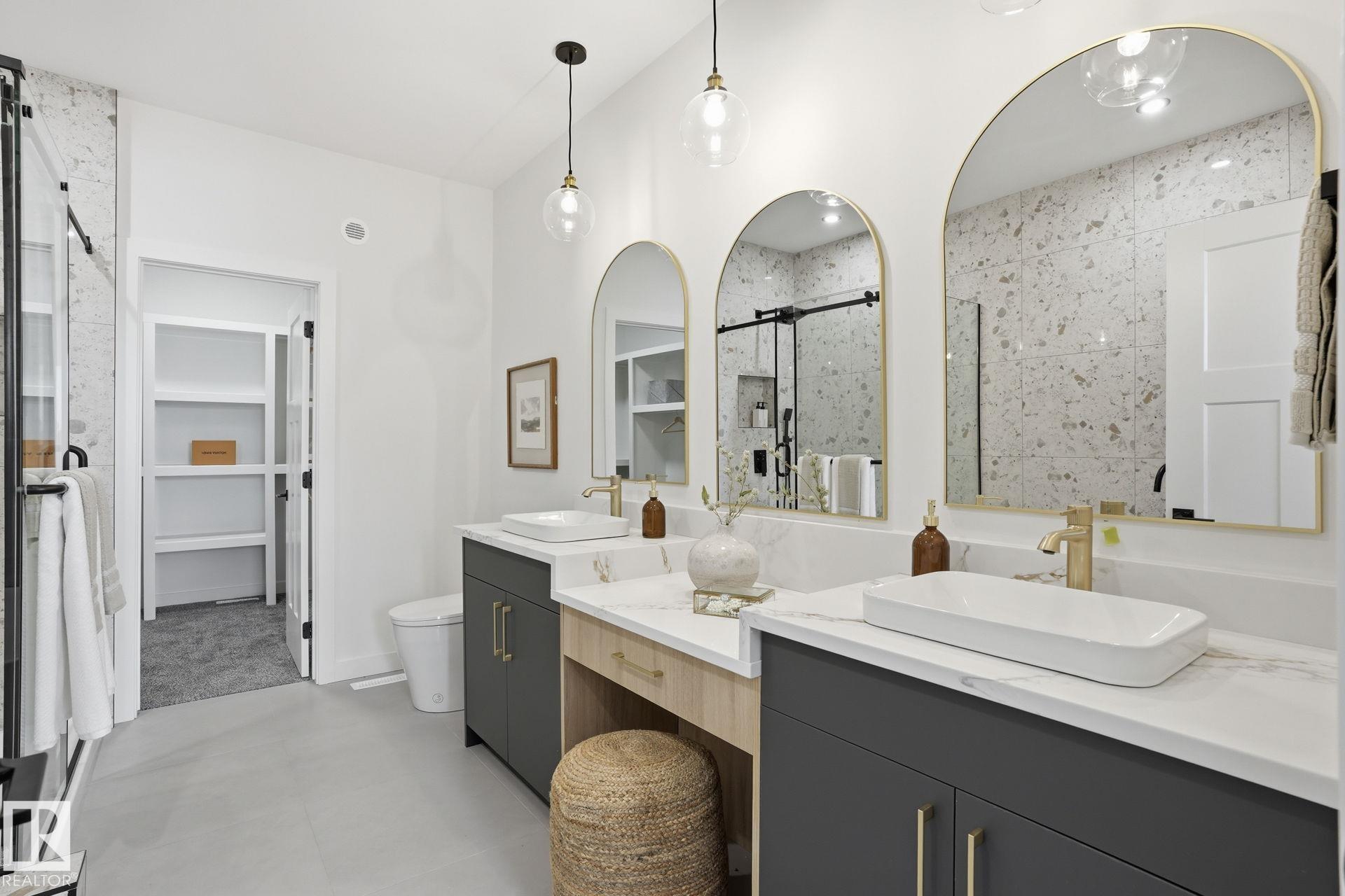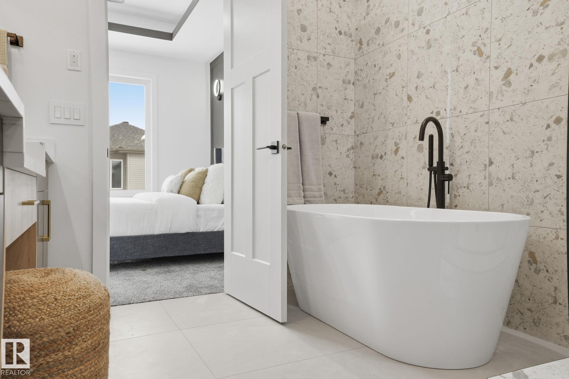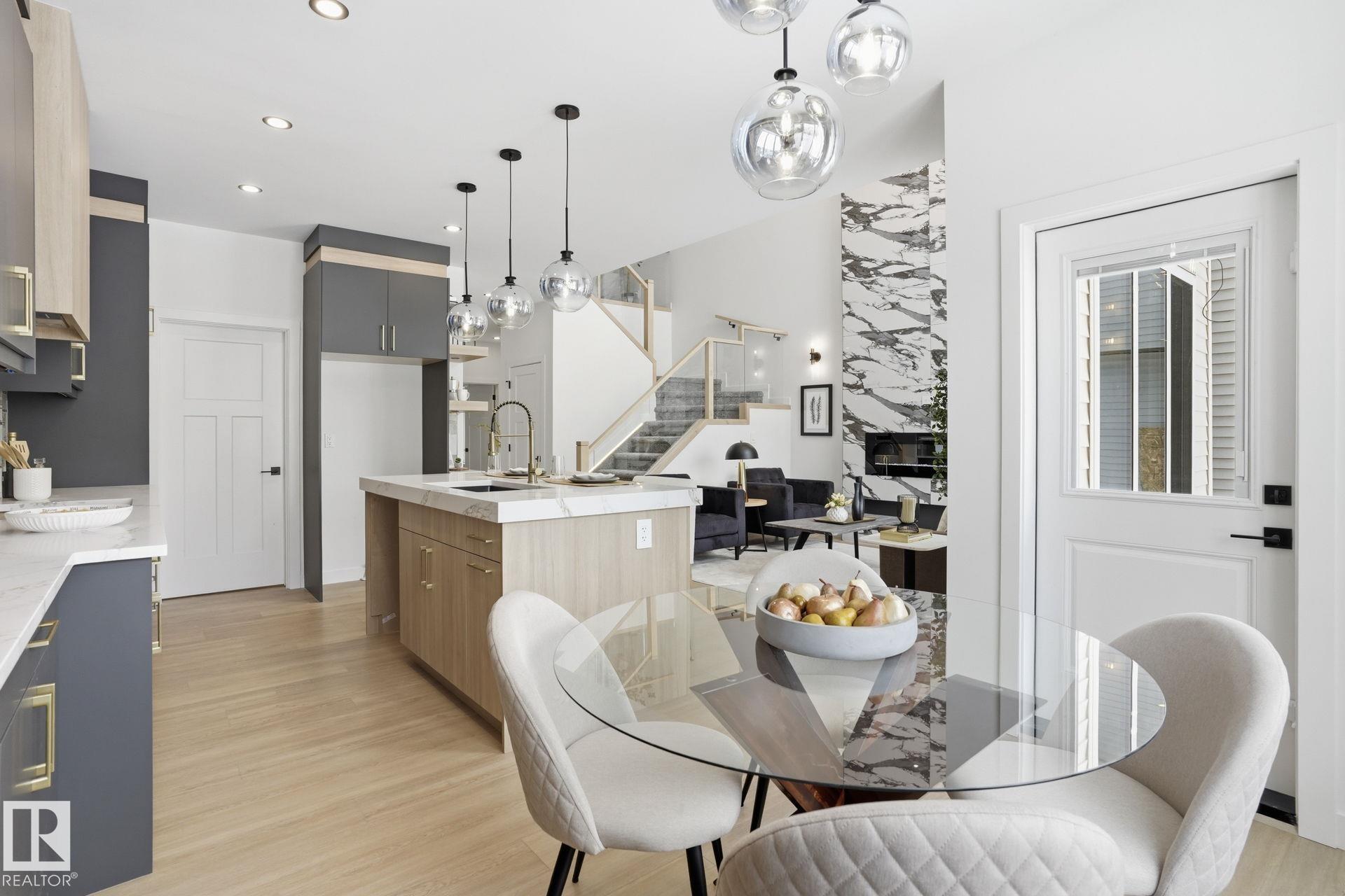 Experience refined living in this quick-possession luxury home in Beaumont, featuring a double attached garage and a separate side entrance. The main floor is thoughtfully designed with a office space, elegant 3-pc bath, and spacious mudroom, leading into a breathtaking open-concept living space. A chef-inspired gourmet kitchen is complemented by a dedicated spice kitchen - perfect hosting the whole family - while the great room impresses with a striking tiled fireplace and dramatic open-to-above ceilings that flood the home with light. Upstairs, discover a beautifully planned retreat with a bonus space, 4pc bath and convenient laundry with sink and quartz countertop. Three bedrooms include a lavish primary suite showcasing a spa-inspired 5-pc ensuite with double sinks, a seated makeup vanity, freestanding tub, and a custom walk-in closet designed for elevated everyday living. $5,000 appliance credit included to select your choice of appliances!