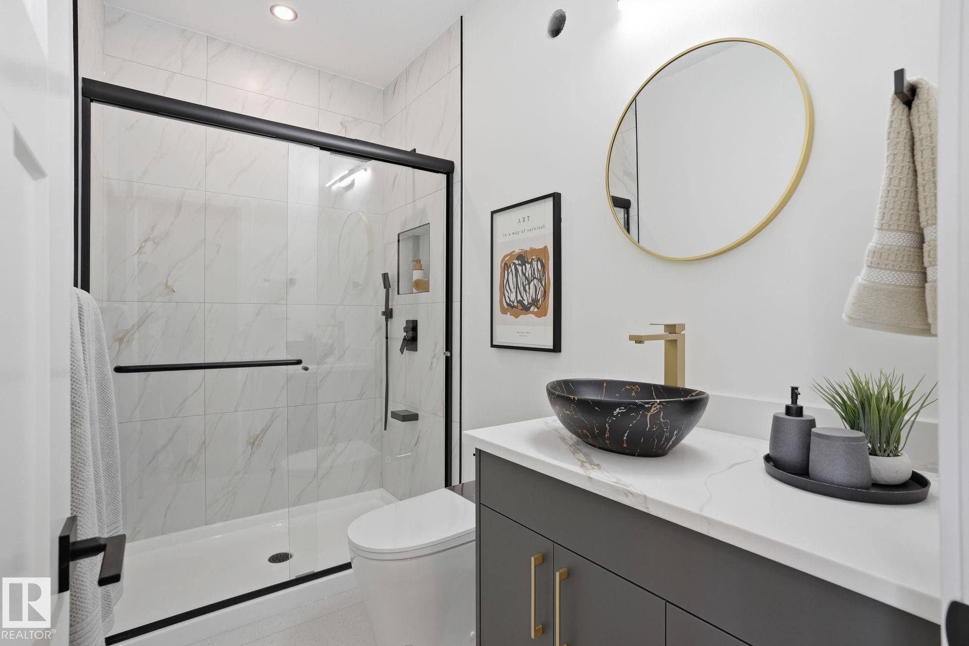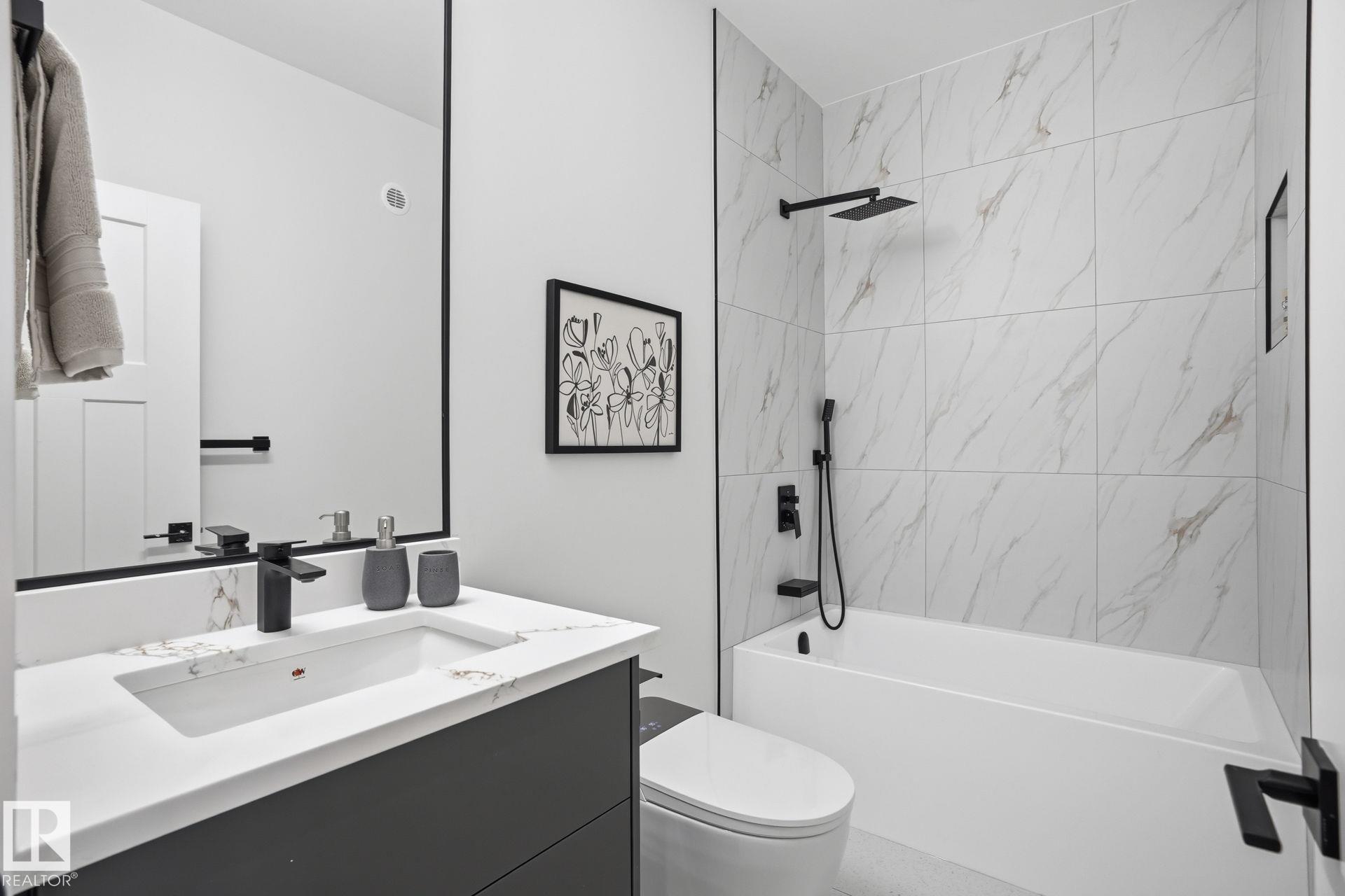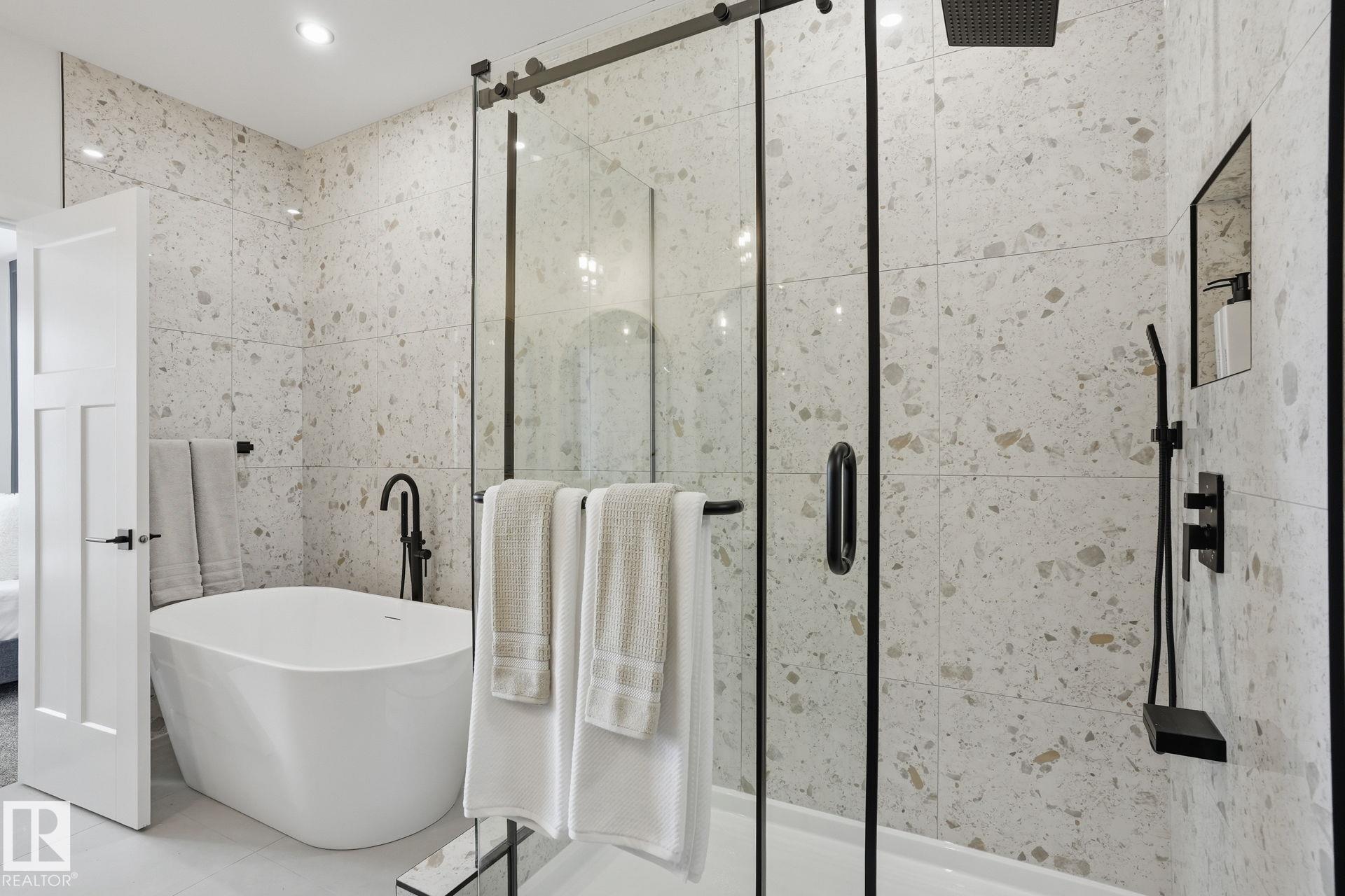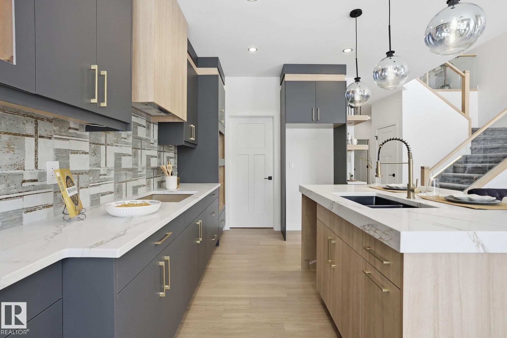 Experience refined living in this quick-possession luxury home in Beaumont, featuring a double attached garage and a separate side entrance. The main floor is thoughtfully designed with a office space, elegant 3-pc bath, and spacious mudroom, leading into a breathtaking open-concept living space. A chef-inspired gourmet kitchen is complemented by a dedicated spice kitchen - perfect hosting the whole family - while the great room impresses with a striking tiled fireplace and dramatic open-to-above ceilings that flood the home with light. Upstairs, discover a beautifully planned retreat with a bonus space, 4pc bath and convenient laundry with sink and quartz countertop. Three bedrooms include a lavish primary suite showcasing a spa-inspired 5-pc ensuite with double sinks, a seated makeup vanity, freestanding tub, and a custom walk-in closet designed for elevated everyday living. $5,000 appliance credit included to select your choice of appliances!
