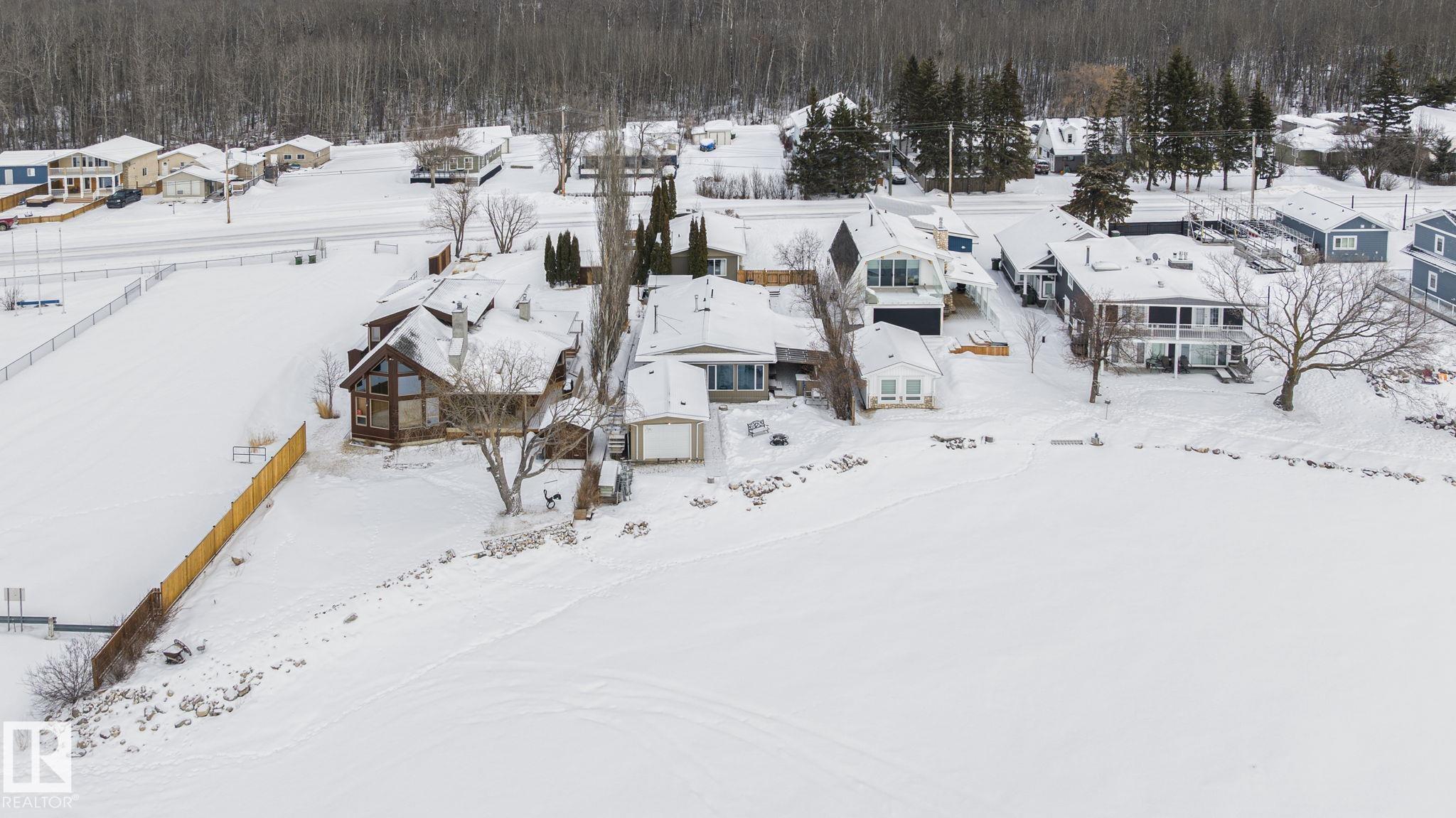 Lakefront, 4-season, and ready to enjoy? welcome to 4536 Sunset Dr on Lac Ste. Anne. The perfect cabin for family weekends, summer memories, or a fantastic Airbnb opportunity! You'll love the classic cabin charm of the vaulted pine ceilings and cozy wood-burning fireplace. Step into the adjoining sunroom to enjoy the stunning lake views year-round. The bright eat-in kitchen offers ample cabinets and prep space. The primary bedroom features a four-piece ensuite and walk-in closet. Two more bedrooms and a three-piece bathroom complete the main cabin. The massive garage fits two cars plus an ATV. The adjoining bunkhouse has room for your extra guests and potential for a 3rd bathroom. The lakefront boathouse keeps all your lake toys handy. Fully furnished, new pressure tank, new HWT, just minutes from all the amenities at Alberta Beach and less than an hour drive from Edmonton. Opportunities like this on Lac Ste. Anne don't come around often! Is this the one you have been waiting for?