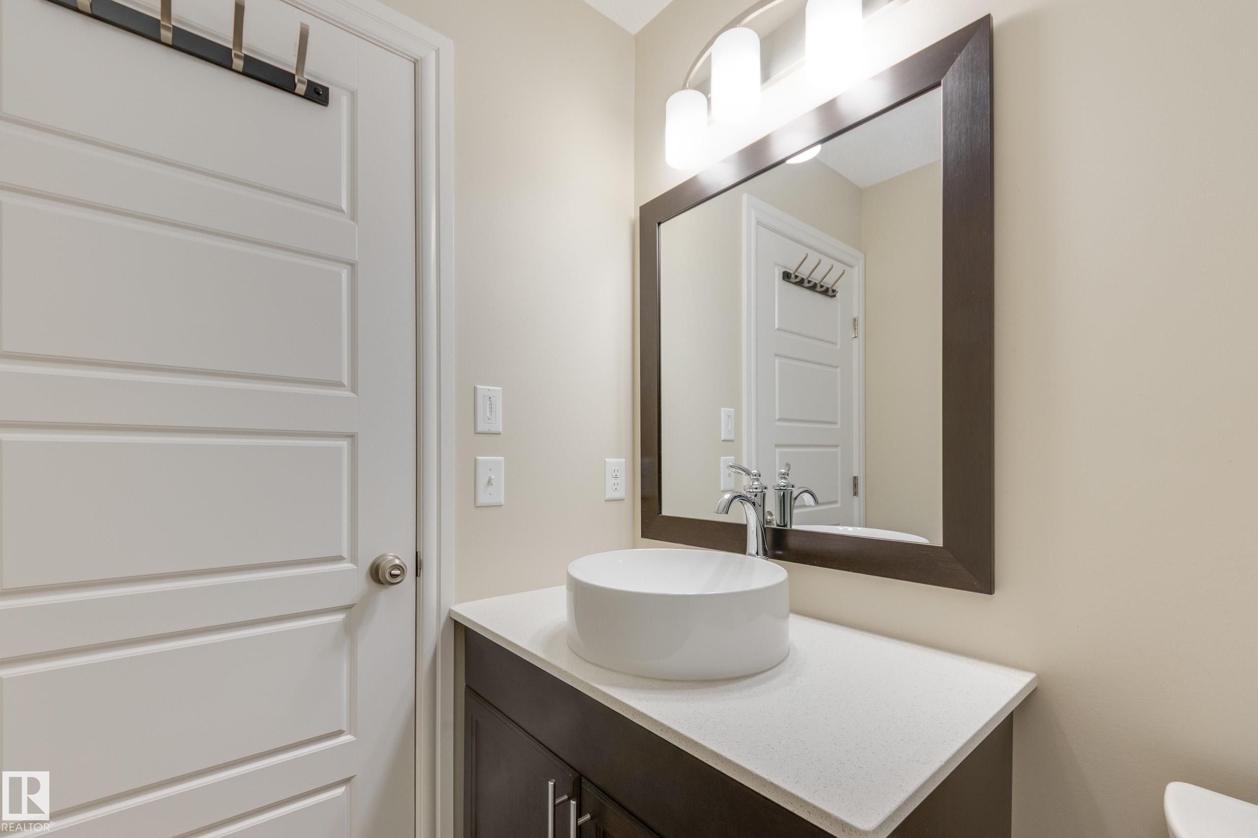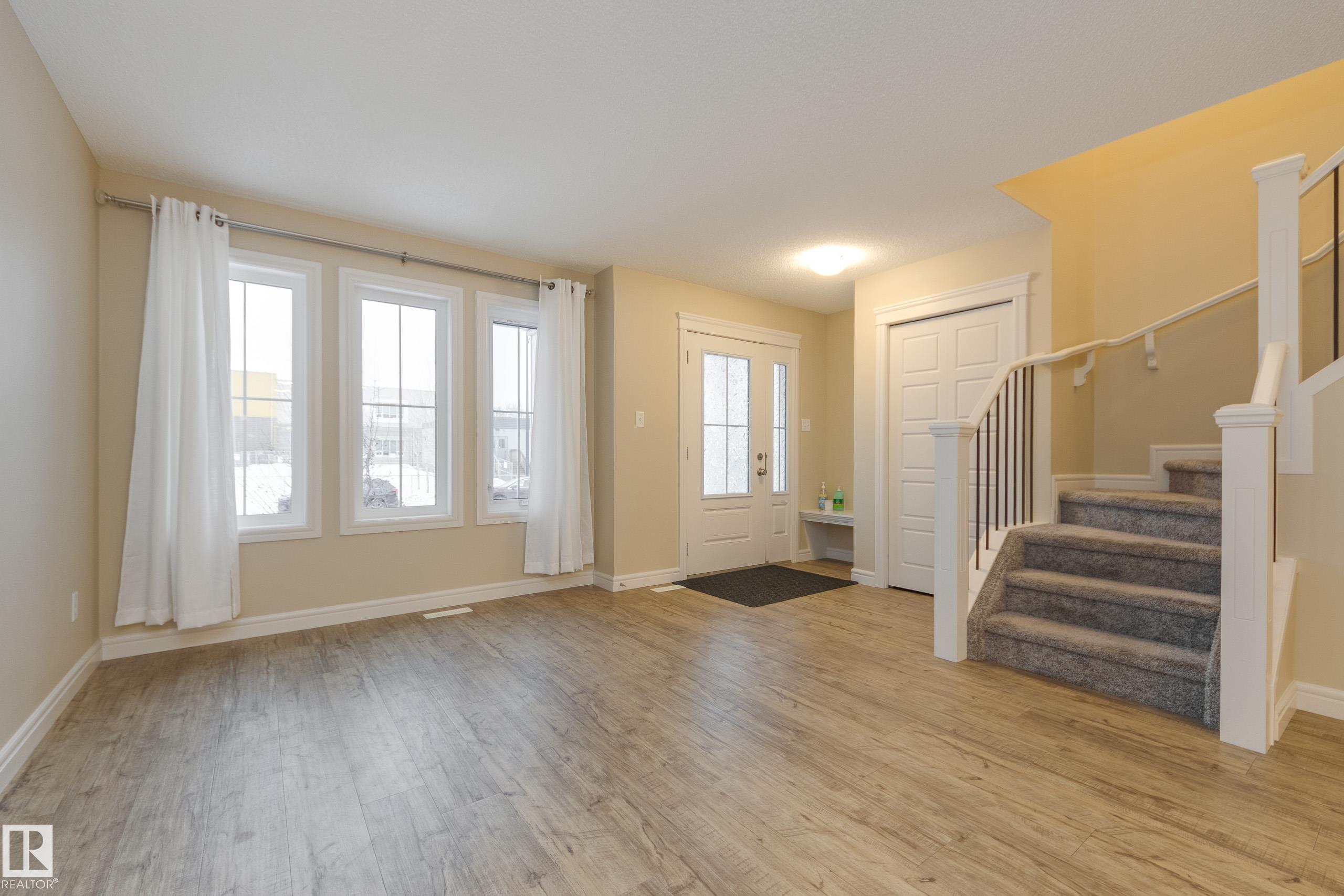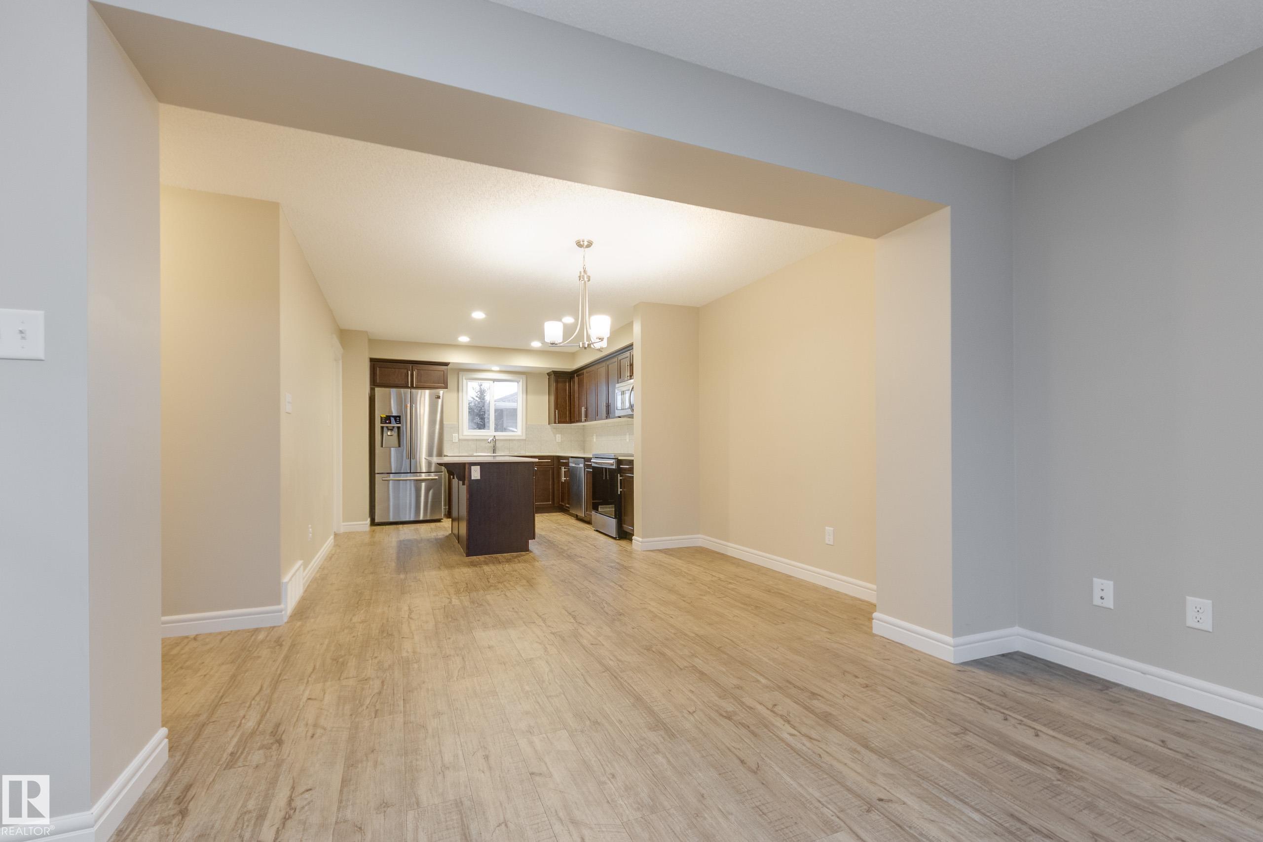 Delightful Desrochers townhome has NO CONDO FEES! Everything you could ask for PLUS a double detached garage. Great location across from the school and park. Spacious front foyer and a very open main floor with living room flowing through to dining and the kitchen at the back has a large island, quartz counter tops and lots of cabinets. Stainless steel appliances are included. Main floor laundry room at the back entrance and the half bath is strategically located at the basement entry. Basement is not developed but potential is there for adding more living space in future! The staircase to the second floor has spindle rails and an open area at the top of the stairs plus two good sized bedrooms share a full bathroom. The primary suite is large with a full ensuite bath and a large walk-in closet. This is a perfect affordable home in an exceptional location. Also includes water treatment!!